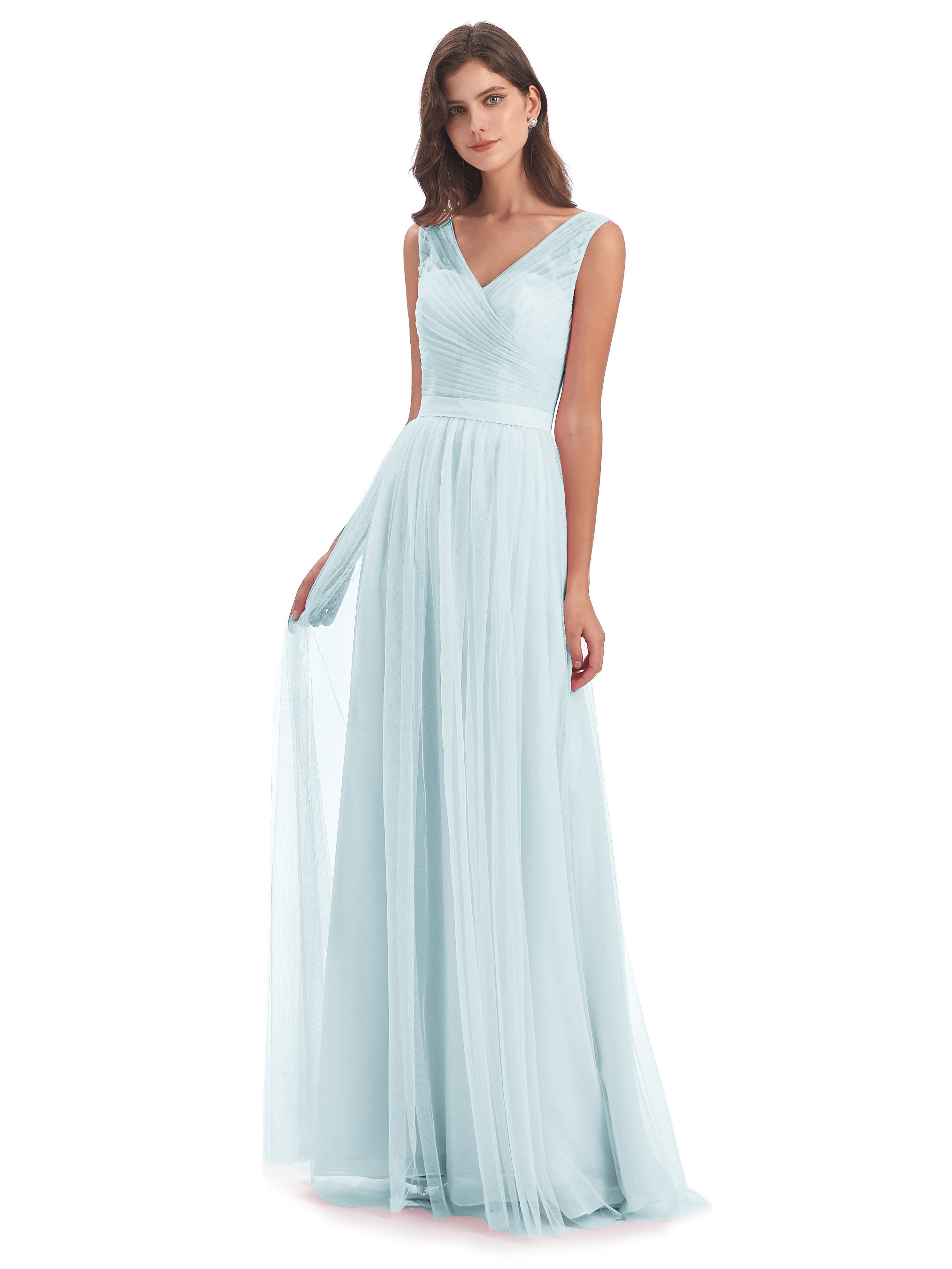 Zara Tulle V-Neck Long Affordable Chiffon Bridesmaid Dresses