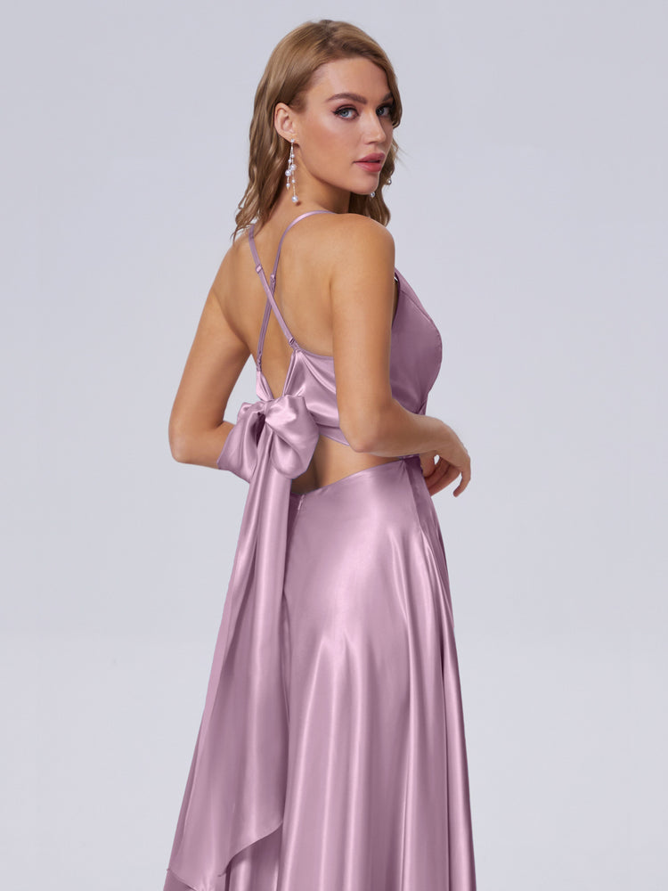 You’ll be an instant eye candy while wearing this lush A-line silk dress that is flattering to all body types. It has charming crisscross straps and ribbon details in the back that elevates the overall look.
