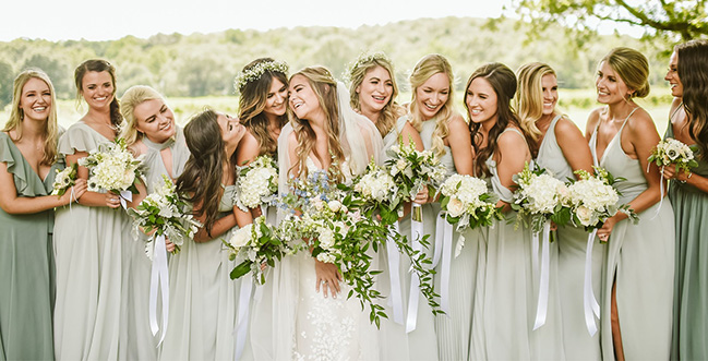 Da Vinci’s form-flattering pieces created with rich fabric and outstanding beadwork have made them a favourite when it comes to bridesmaid dresses and wedding gowns. Their classic and contemporary designs are available in a whopping 50 different colours and feature beautiful bodices, dreamy embroidery, and romantic necklines. Da Vinci delivers pretty and fab creations perfect for just about any entourage and theme.
