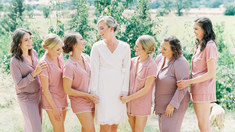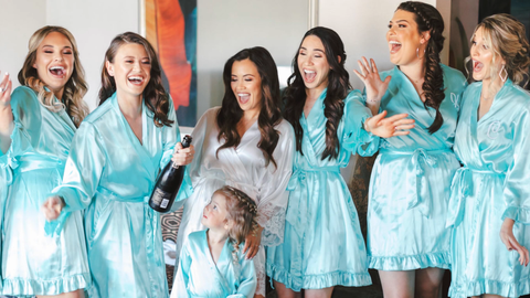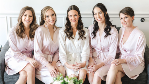 Have cute robes or pajamas for you and your group to wear. Have something that is going to look really cute in your pictures. Have some sort of cute outfit for them to wear. Or if you can't splurge that in your budget and they can't either, let them know everybody arrive in black leggings and a white shirt something that looks more cohesive. Or say wear pastels wear a wedding color. So if you can't afford to get outfits for the wedding day morning, specify to everybody to wear a certain color palette and then at least you'll look really cohesive in those wedding photos. Because again having your gallery look cohesive like it was very intentional, and everything was purposefully selected, looks so beautiful than if you've got a like weird set of colors bouncing throughout the day.