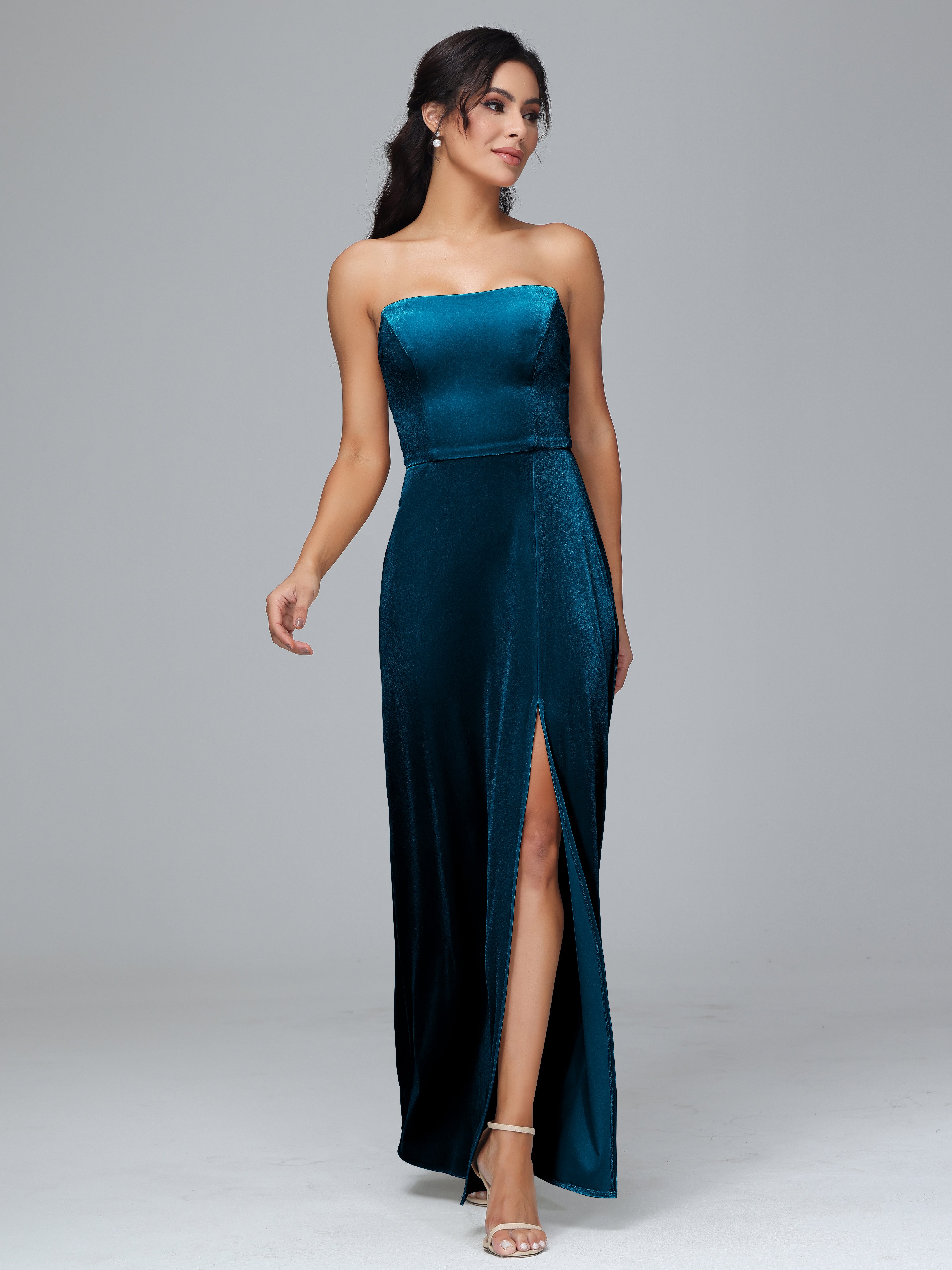 Sheath/Column Sleeveless Long Velvet Bridesmaid Dresses