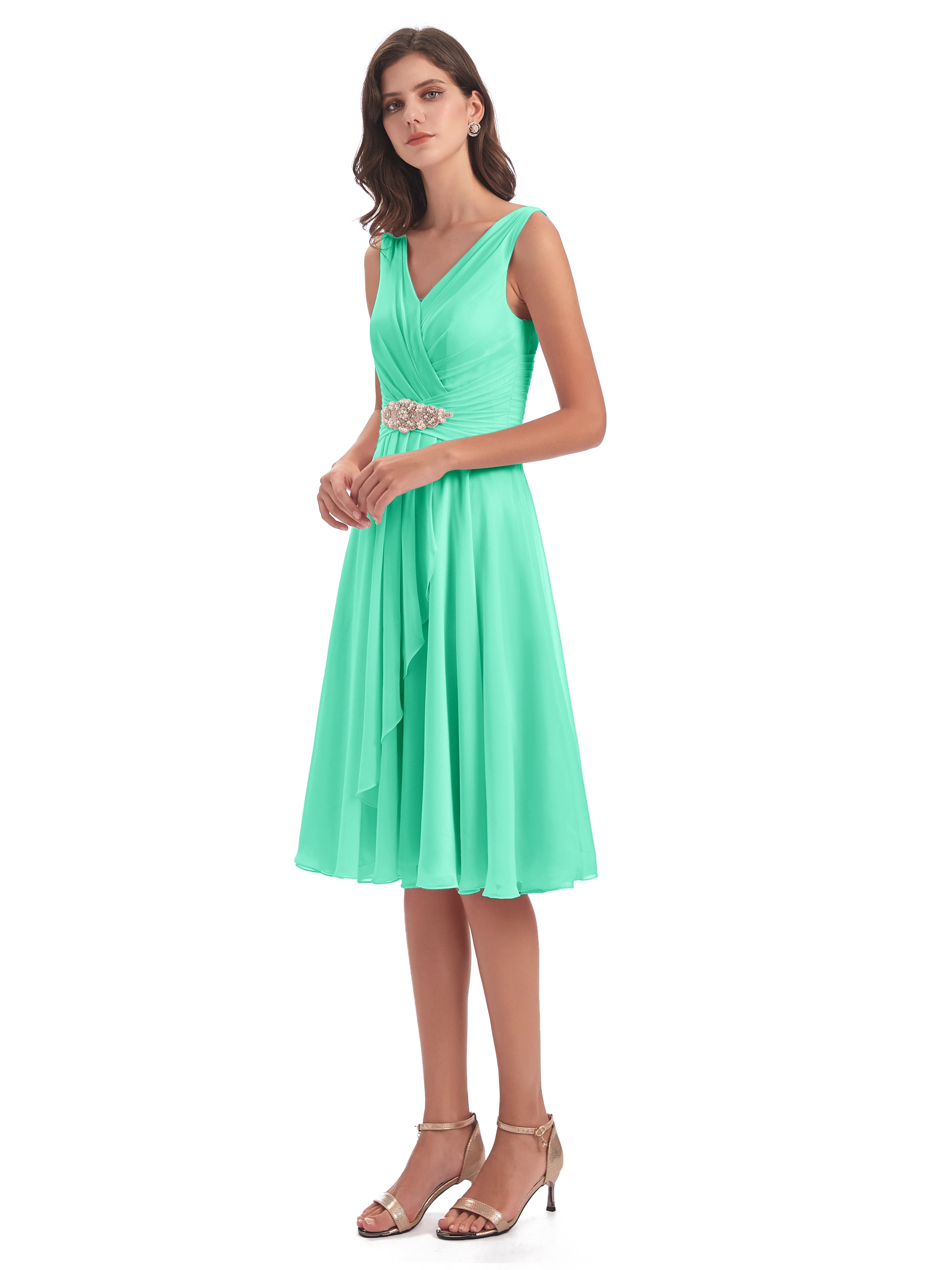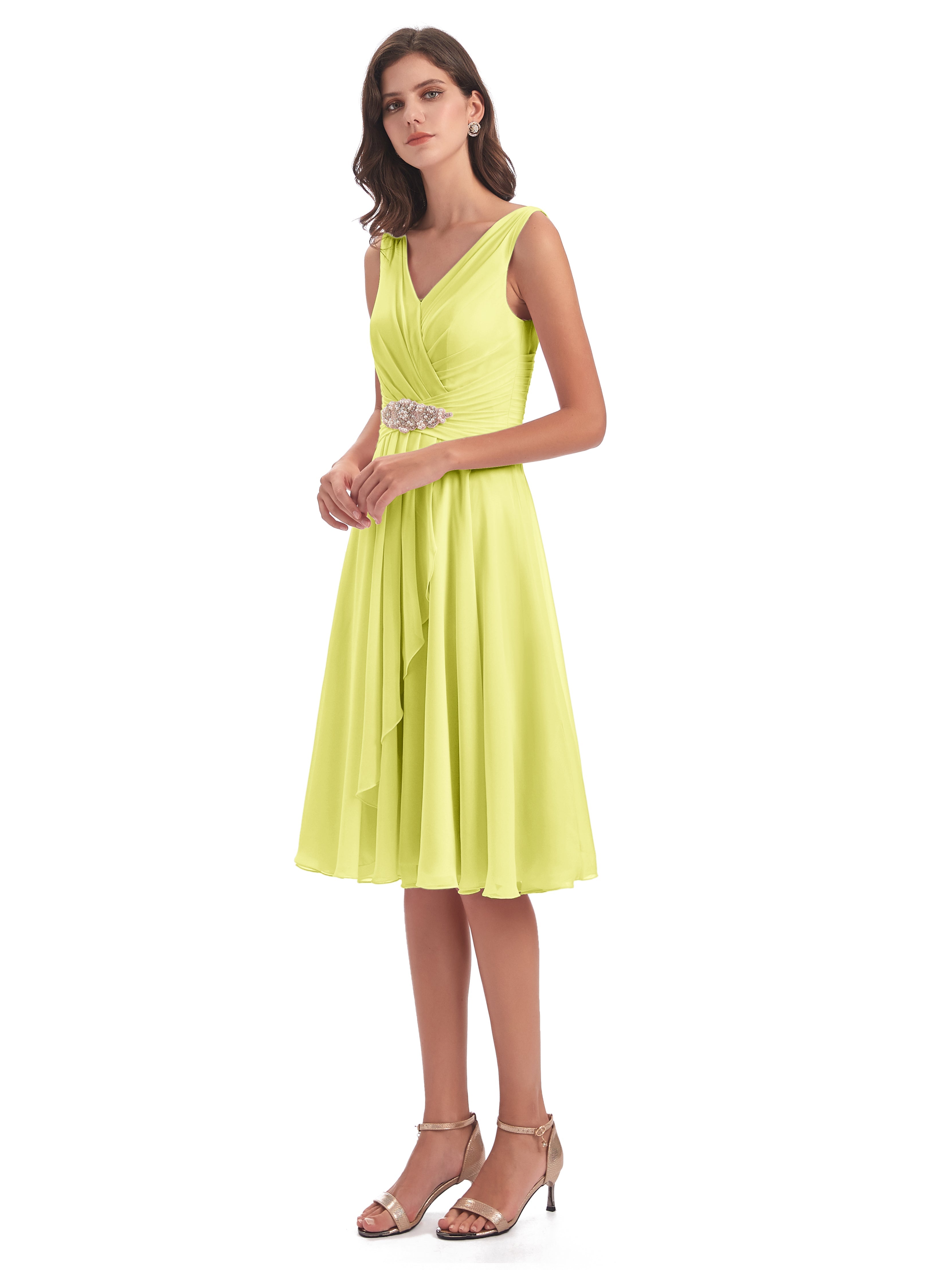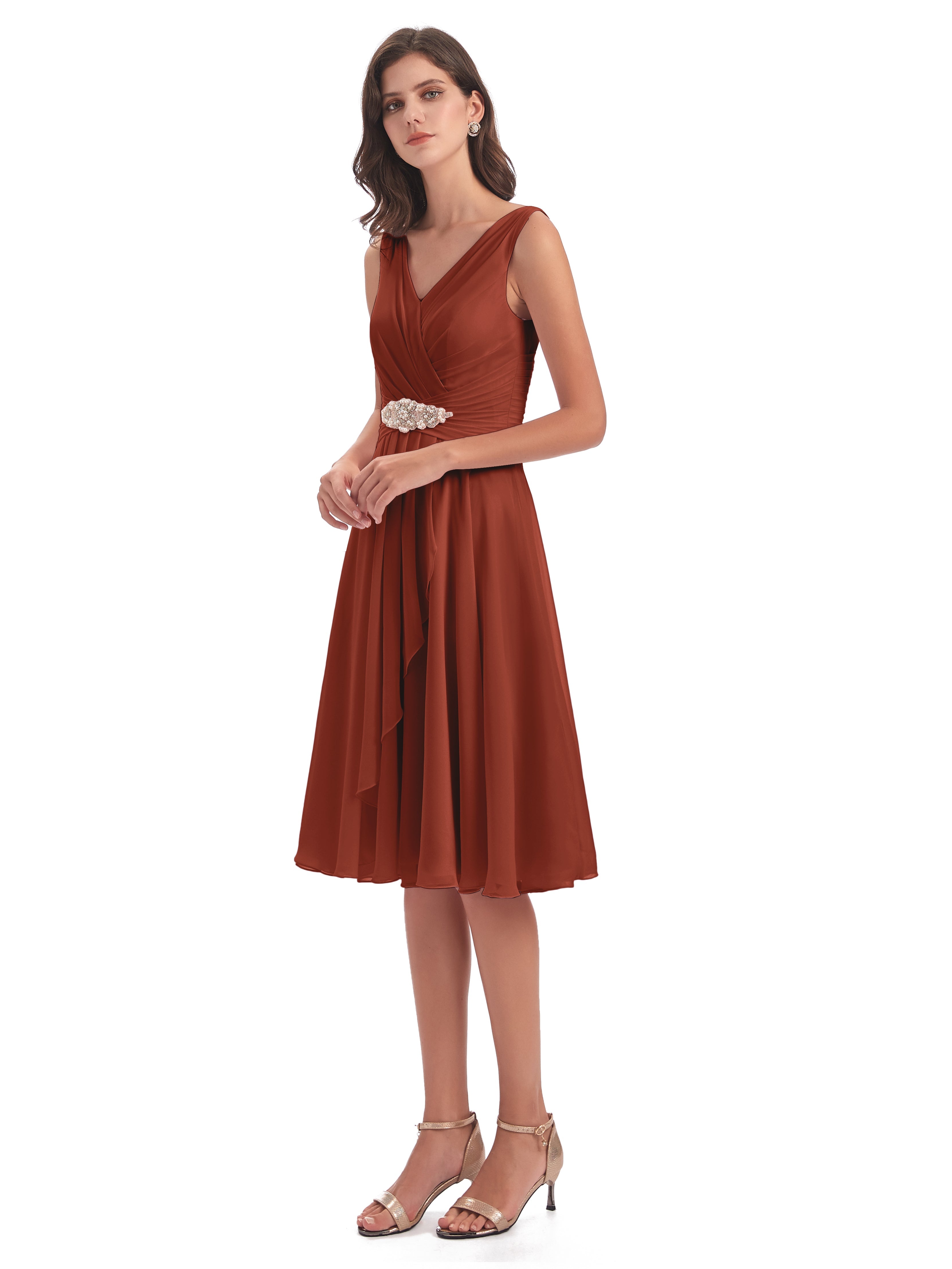 Sophie Affordable Chiffon V-neck Knee-Length Bridesmaid Dresses