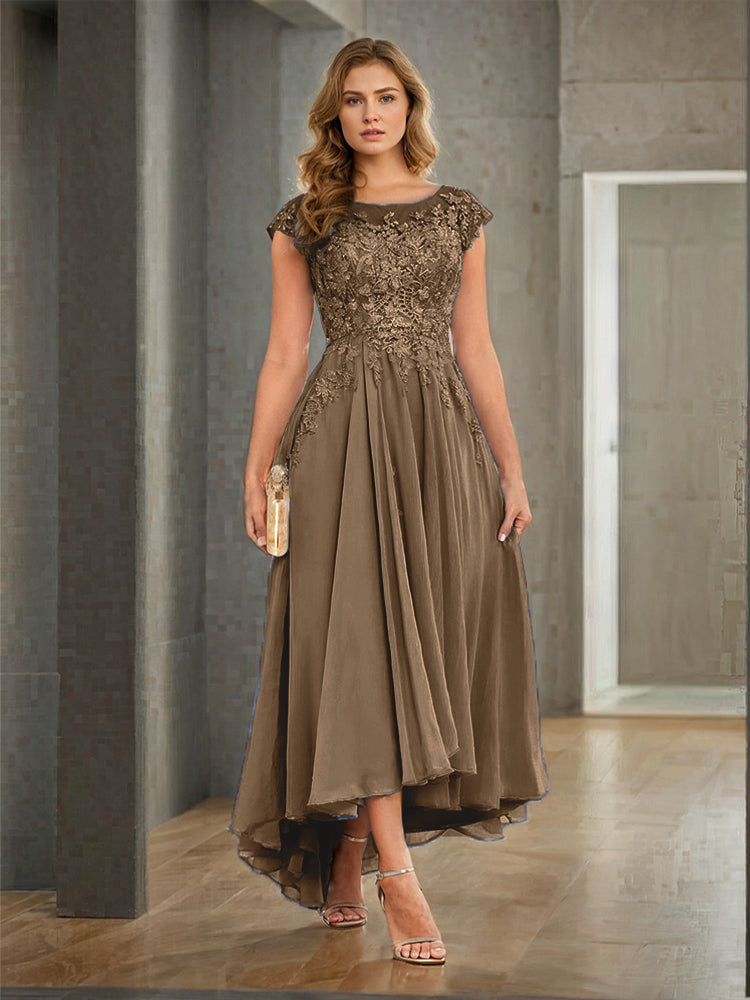 Cap Sleeves Lace Appliques Chiffon Mother of the Bride Dresses