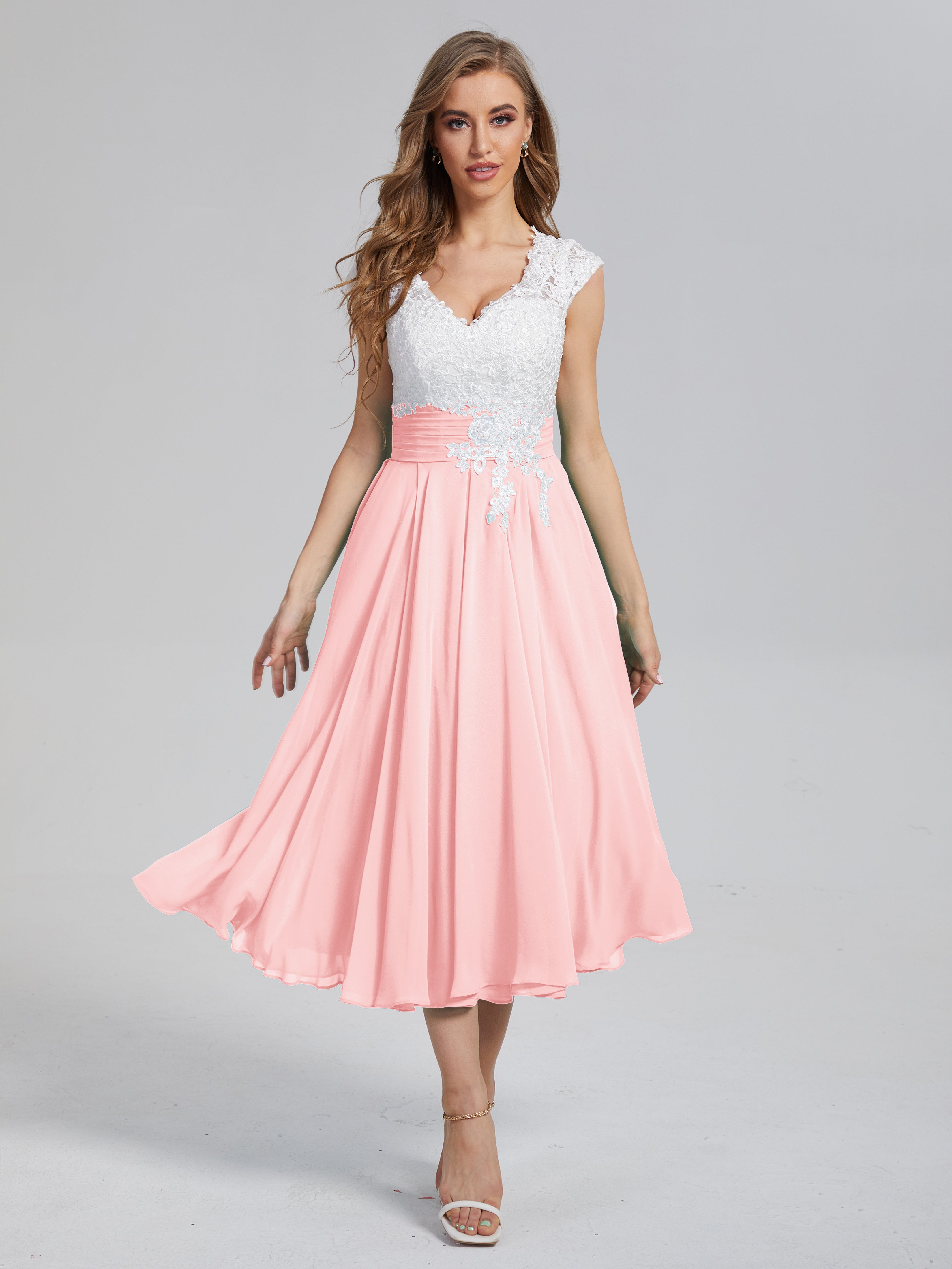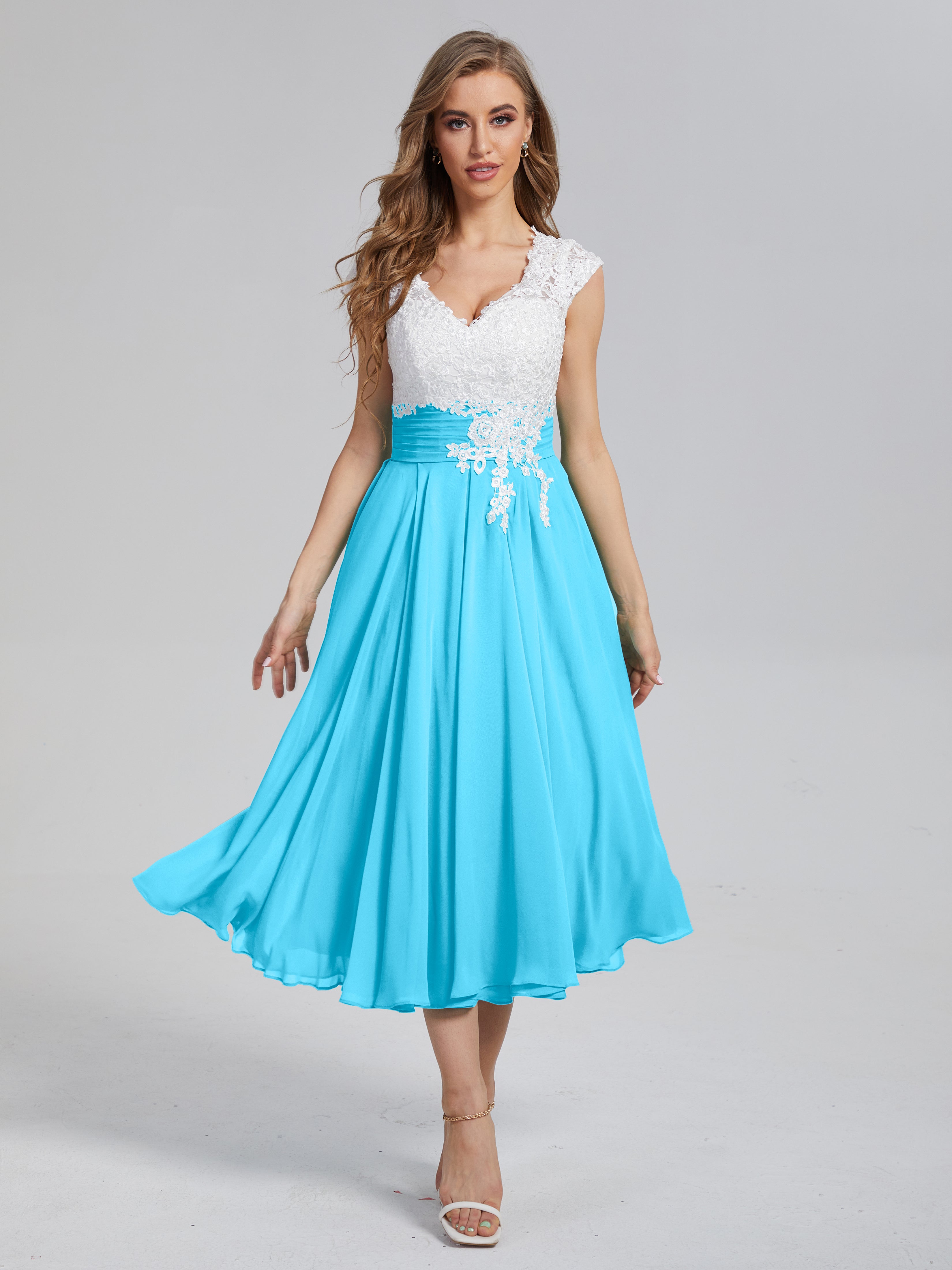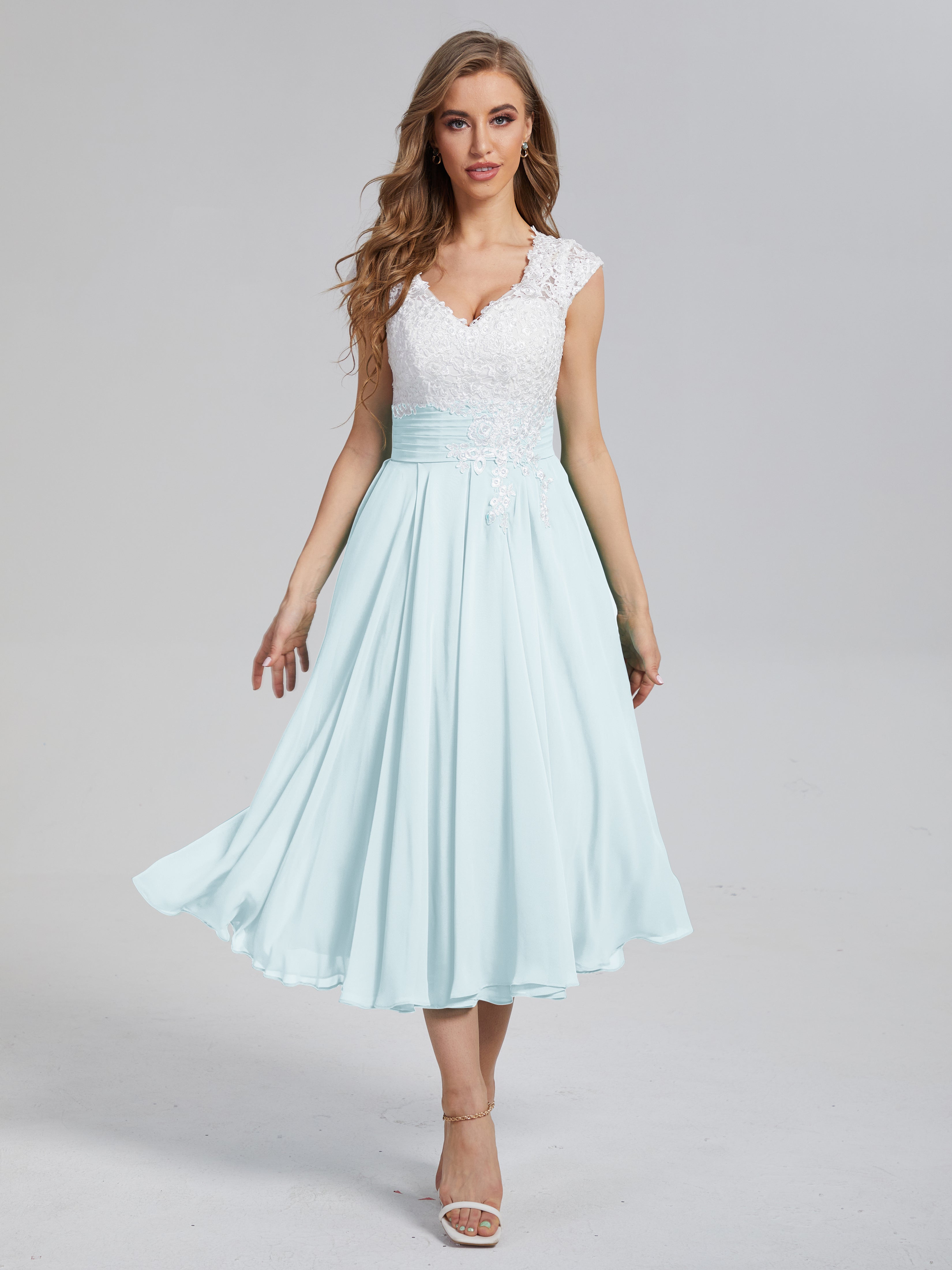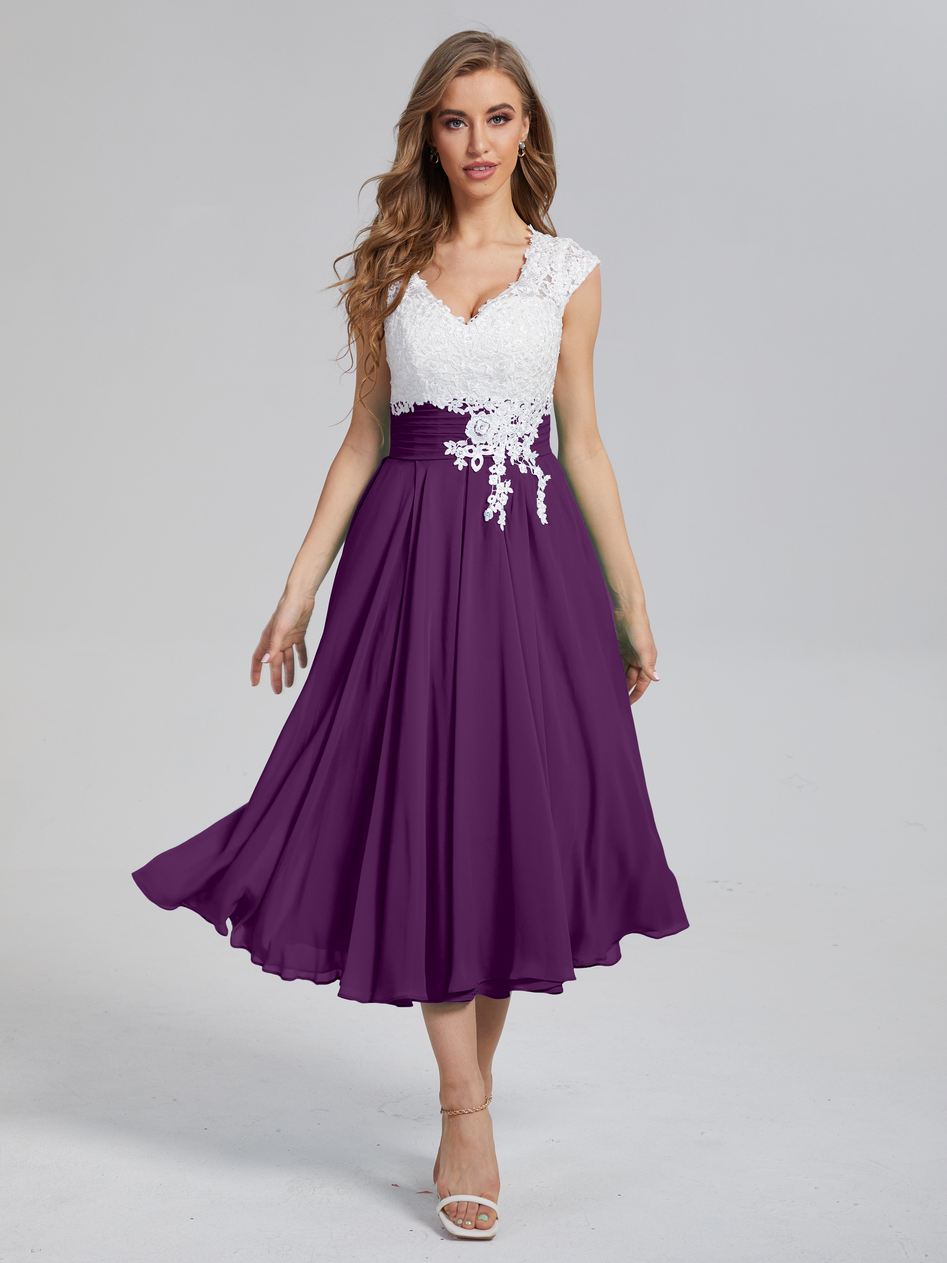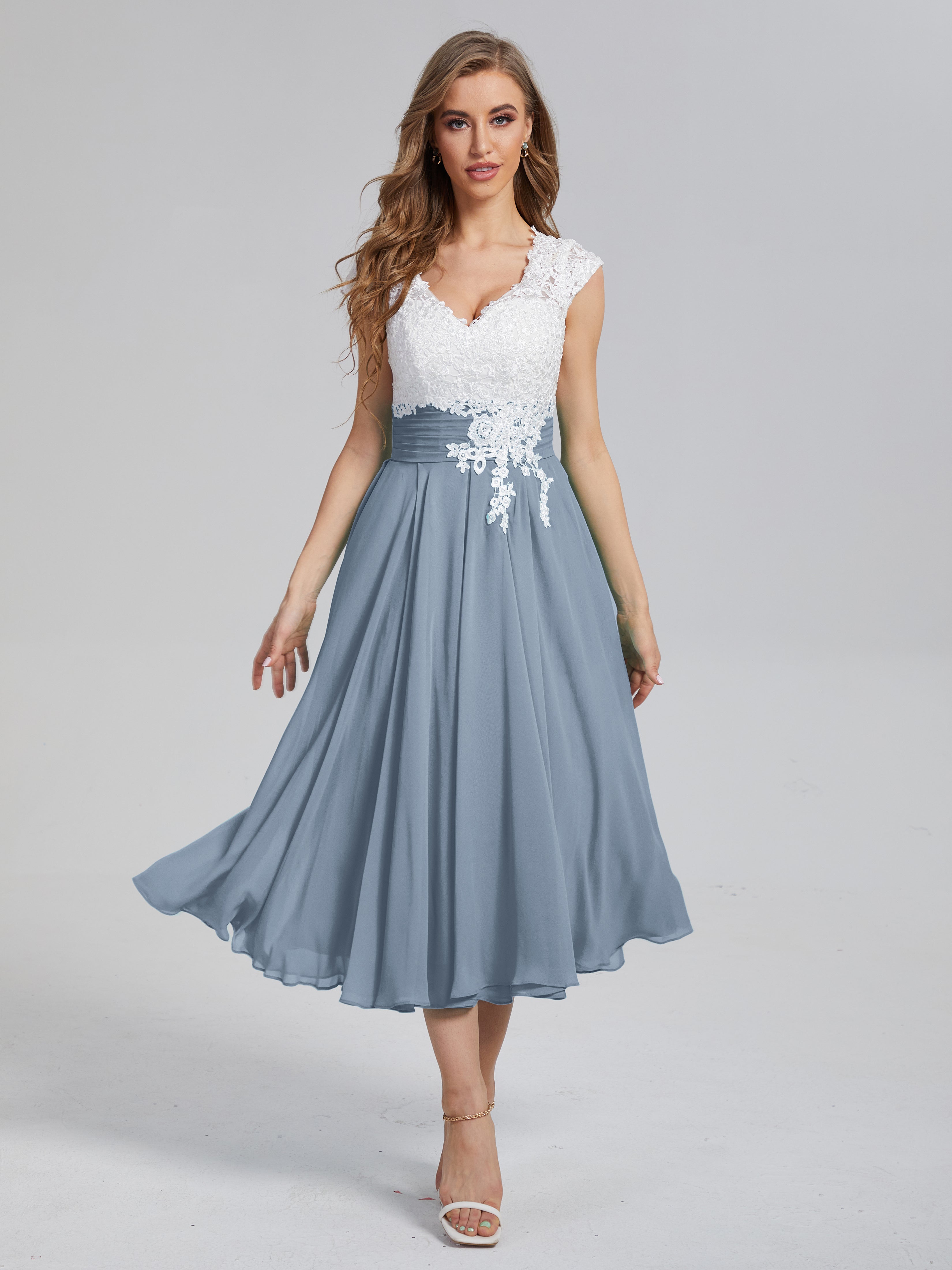 Graceful Lace Tea Length Chiffon Mother of the Bride Dresses