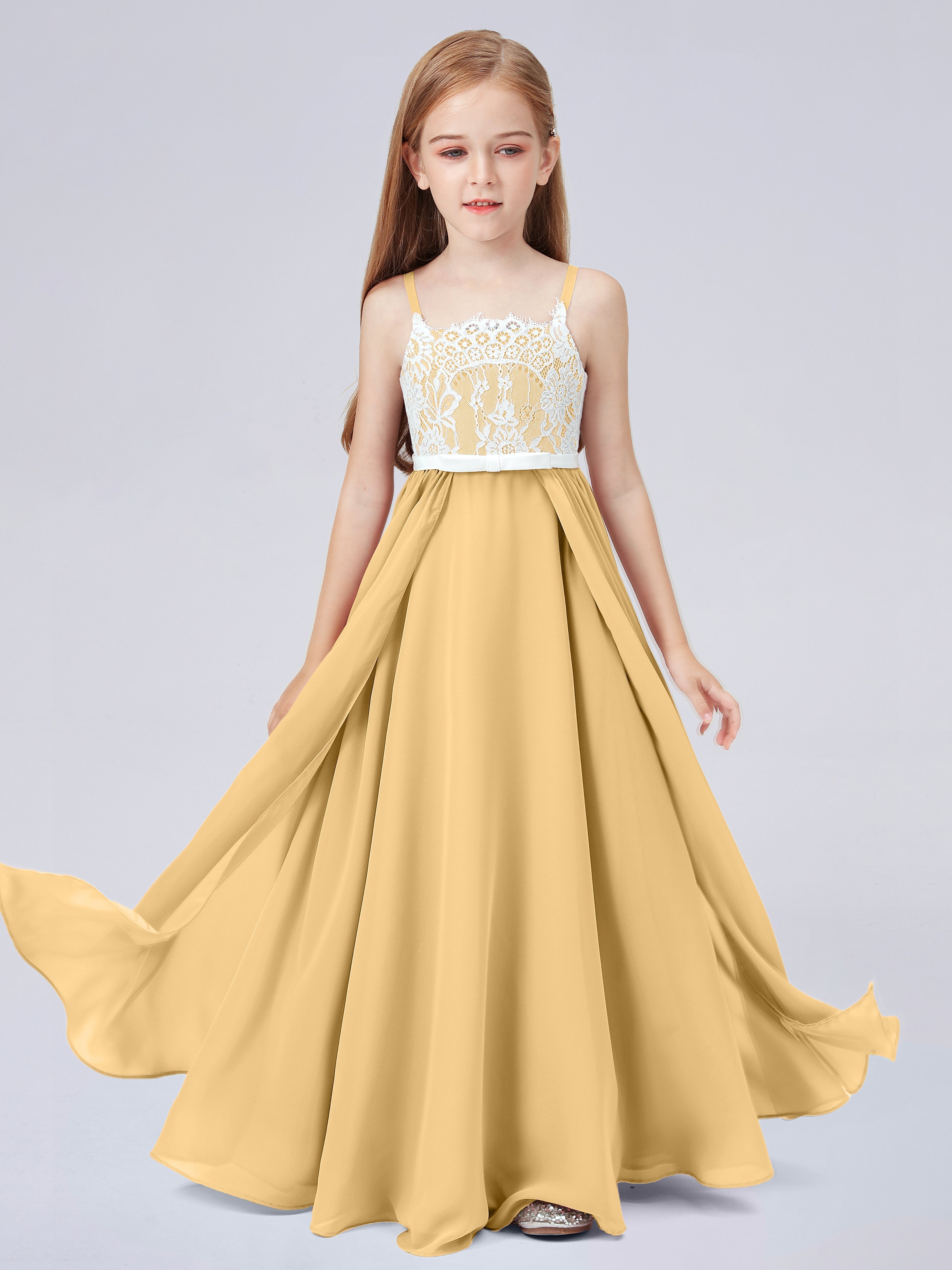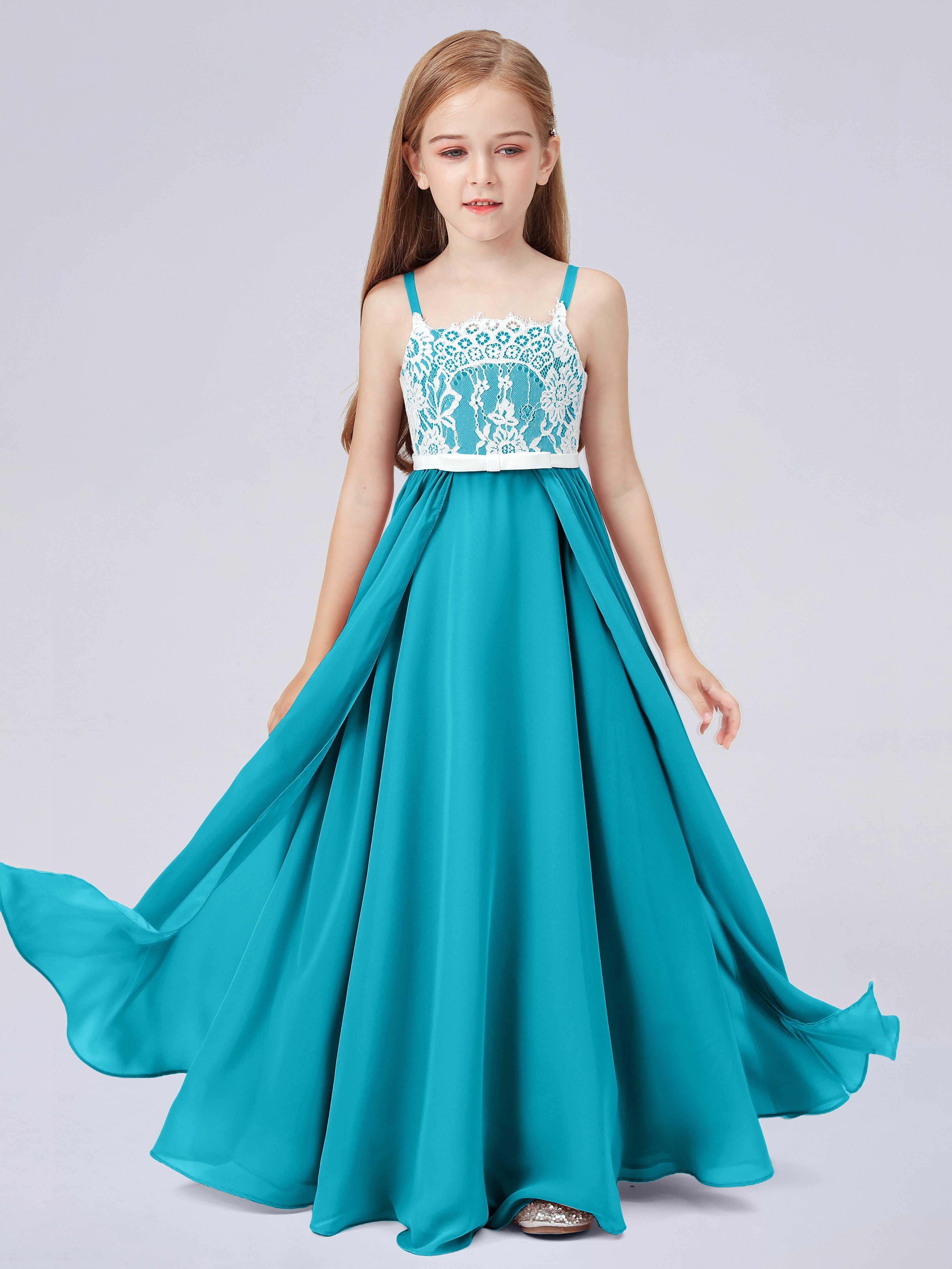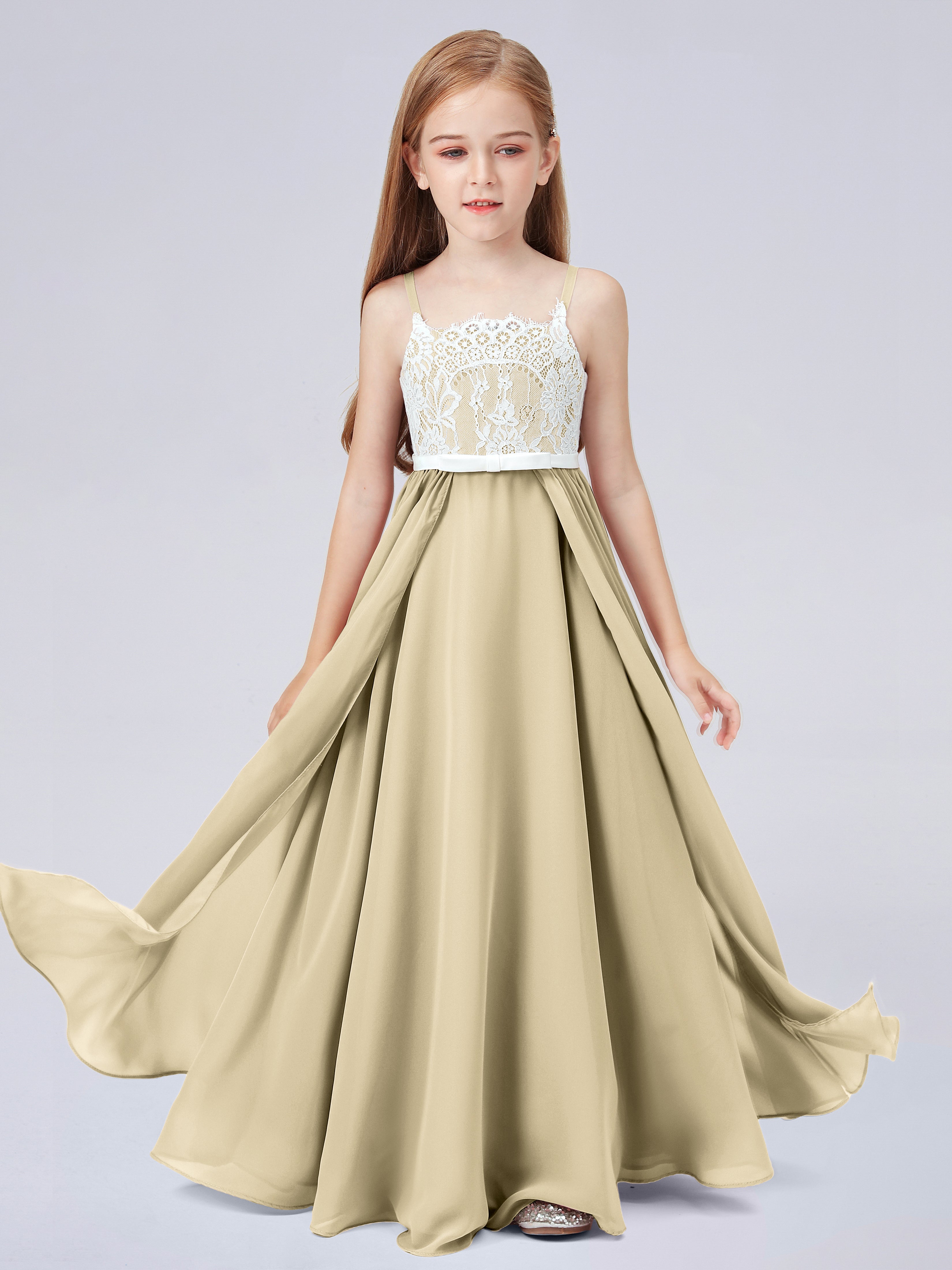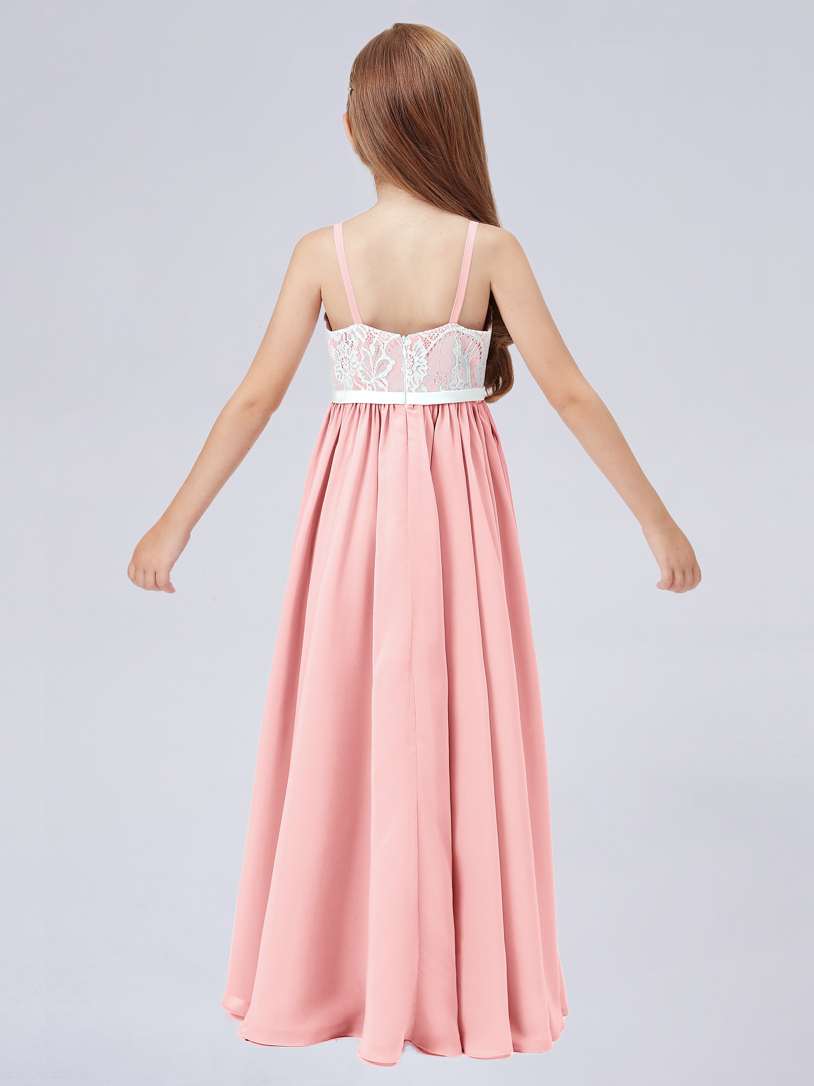 Lace Junior Bridesmaid Dress with Spaghetti Straps
