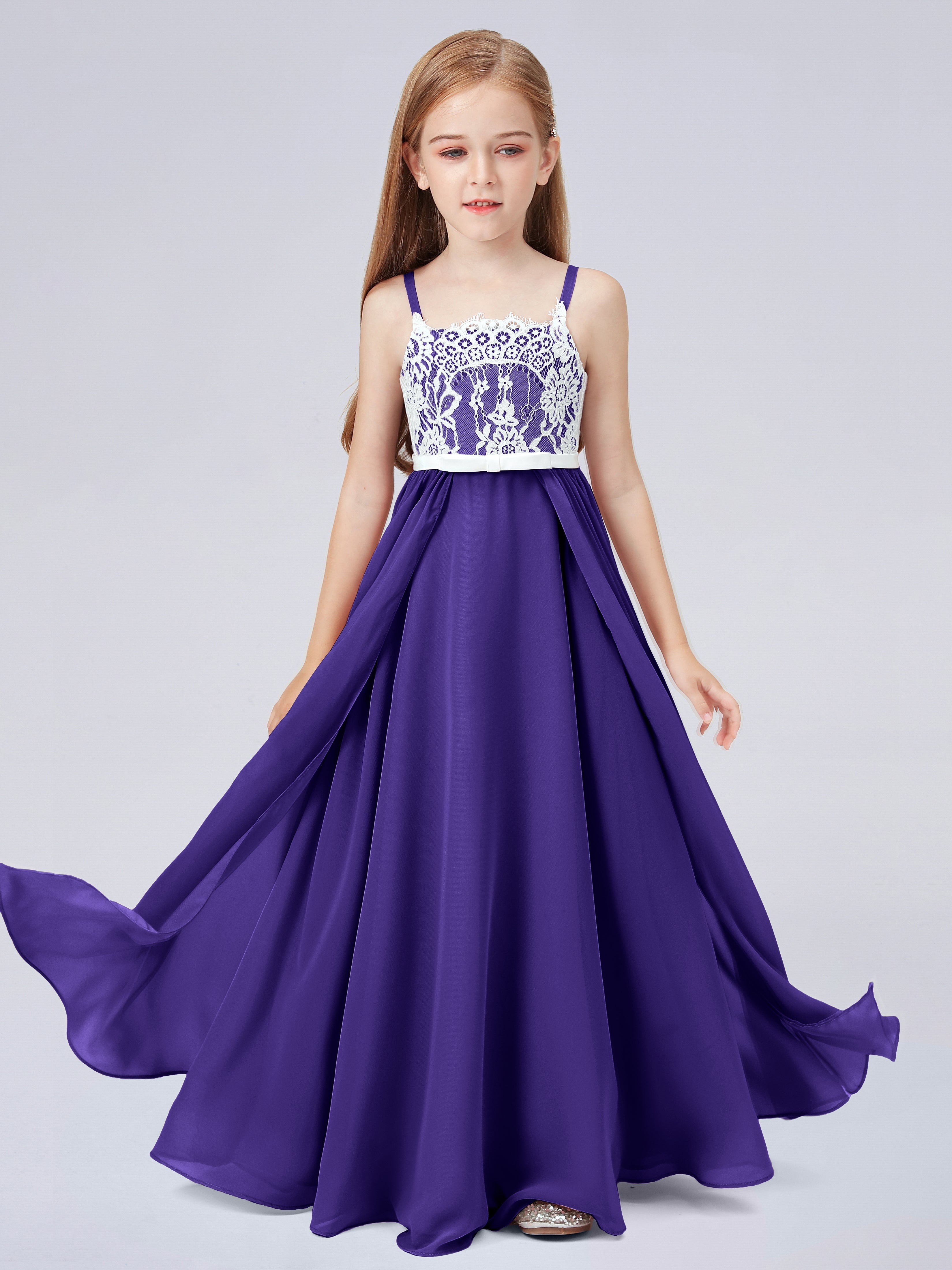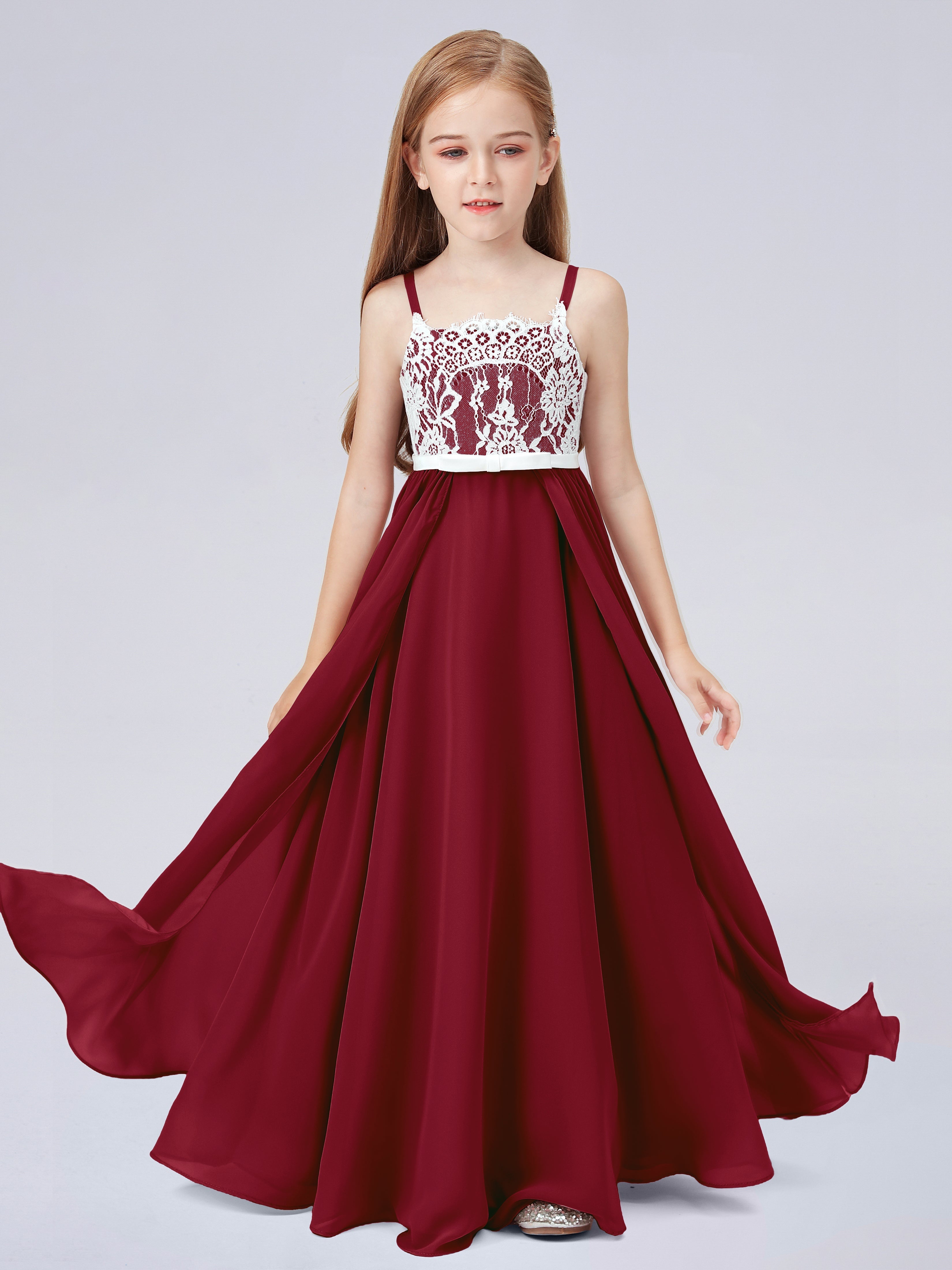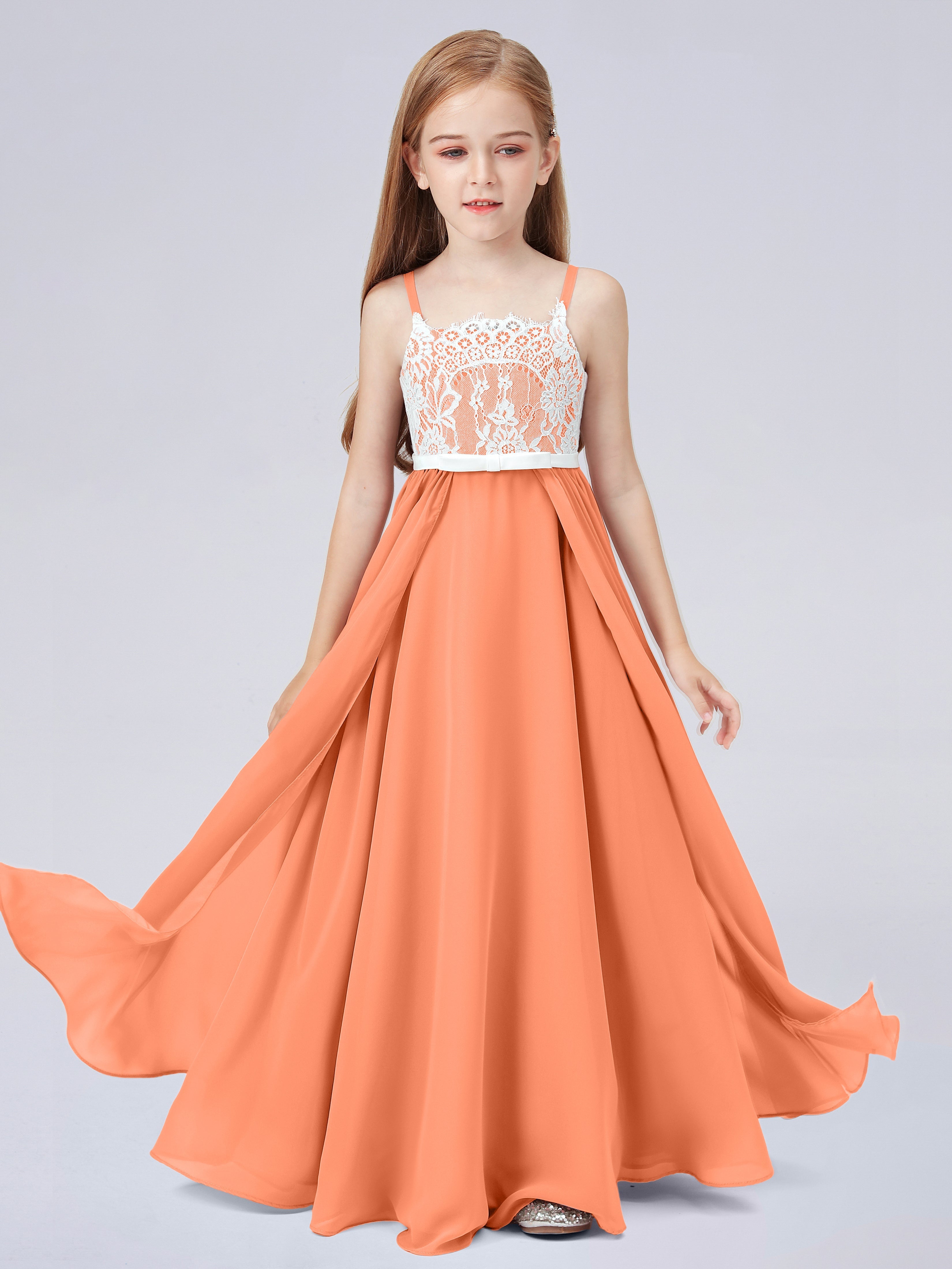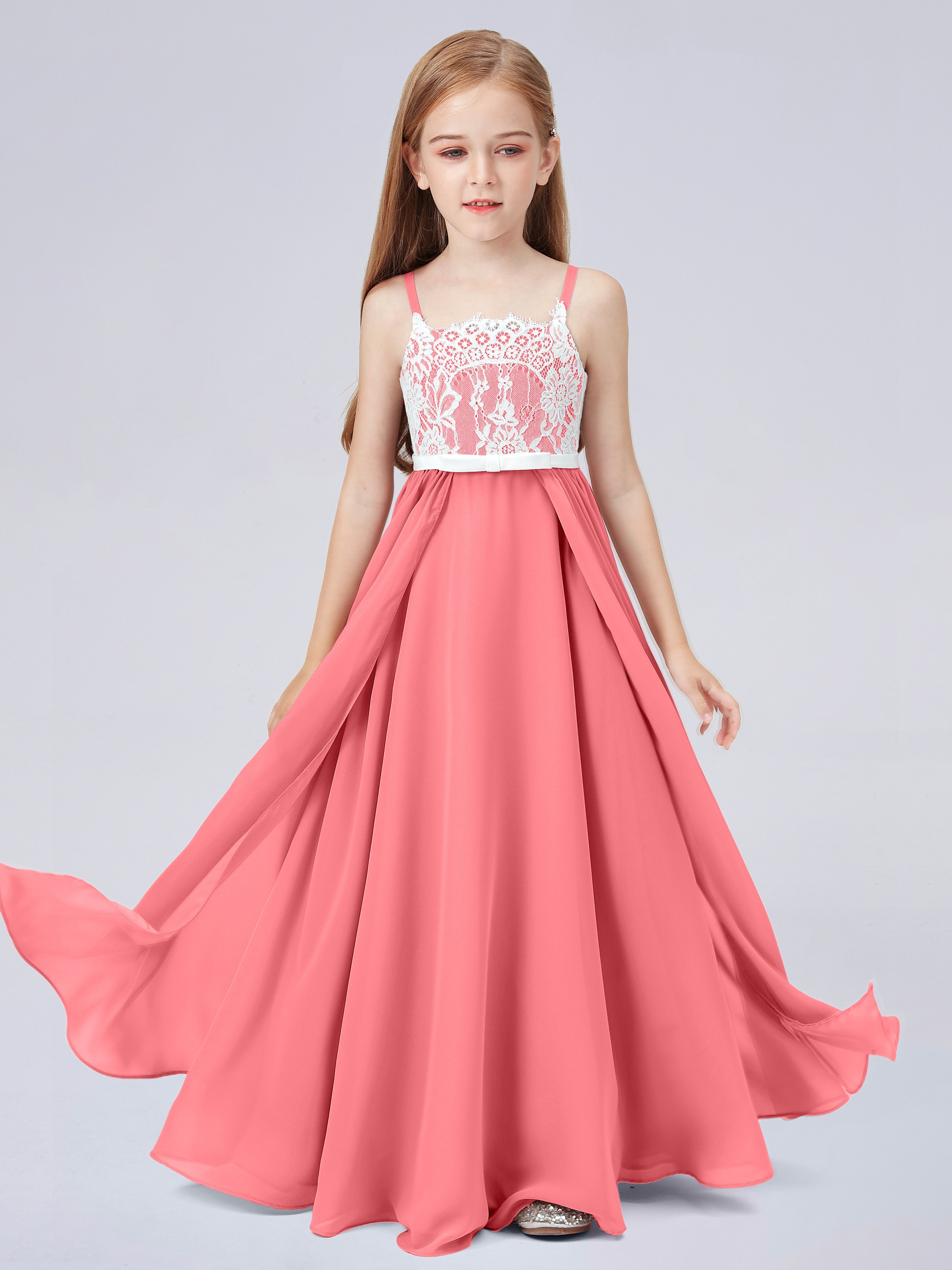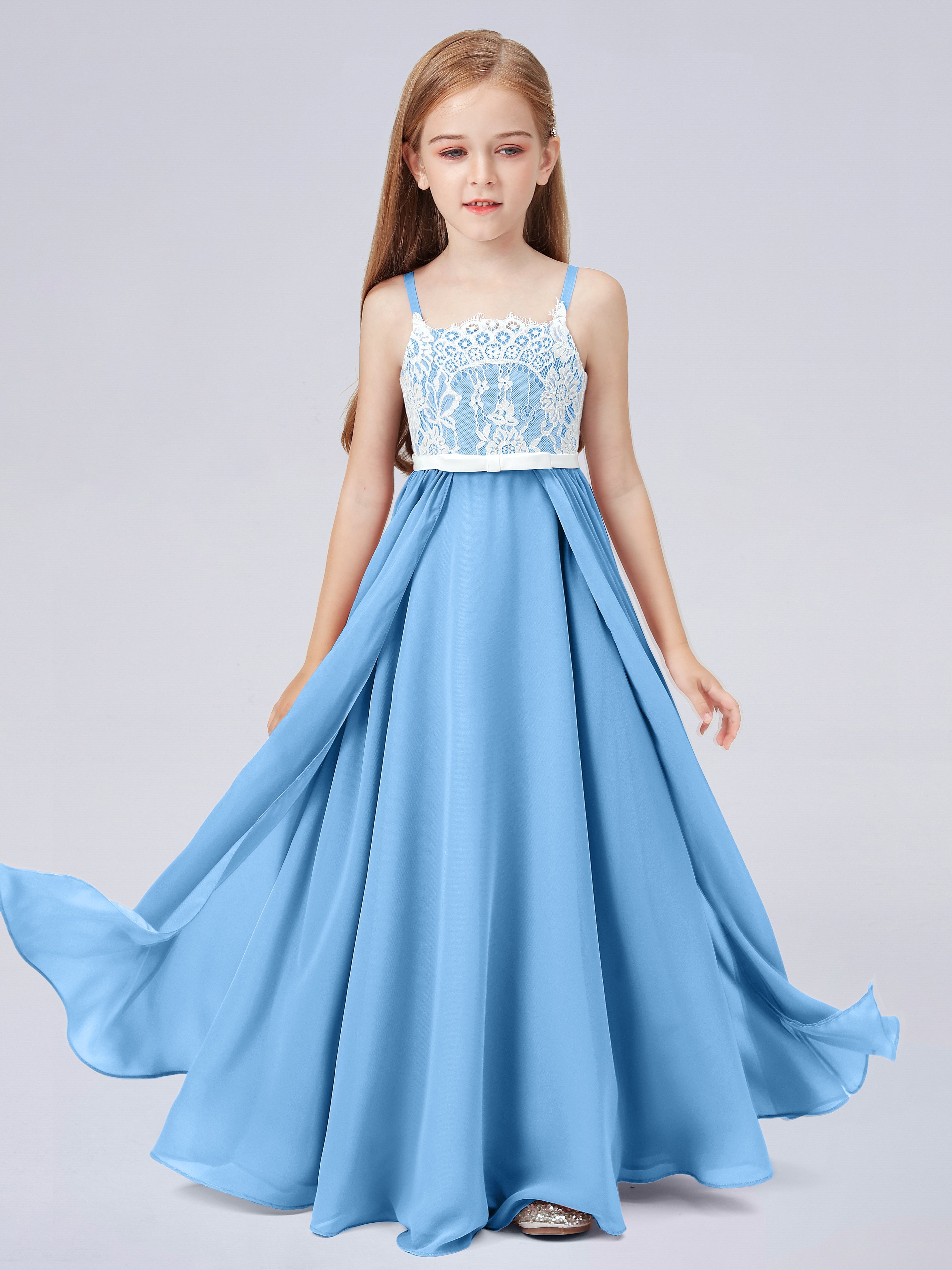 Lace Junior Bridesmaid Dress with Spaghetti Straps
