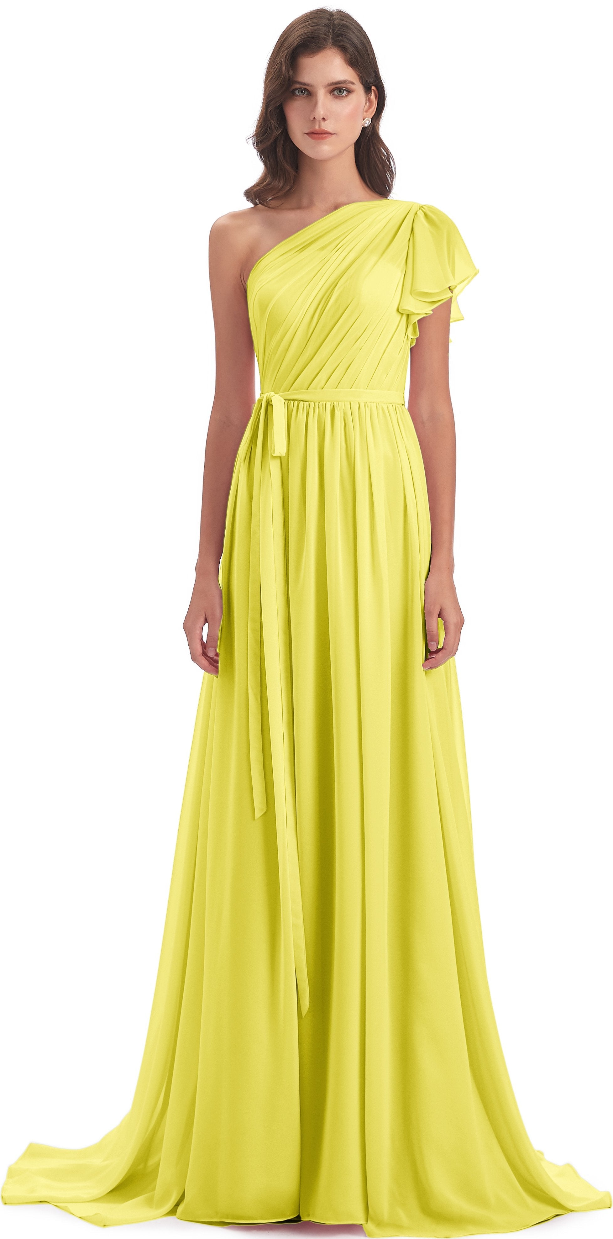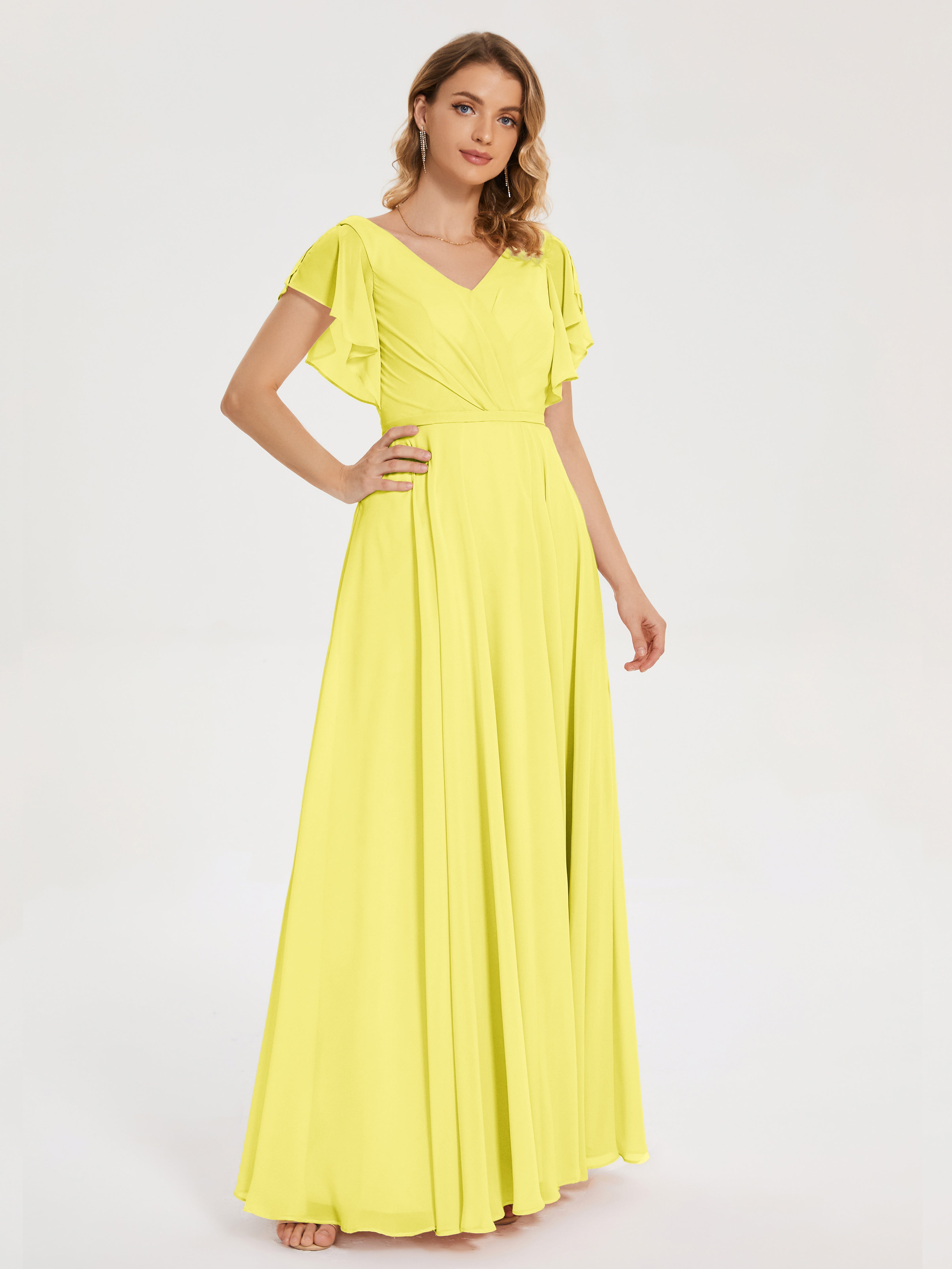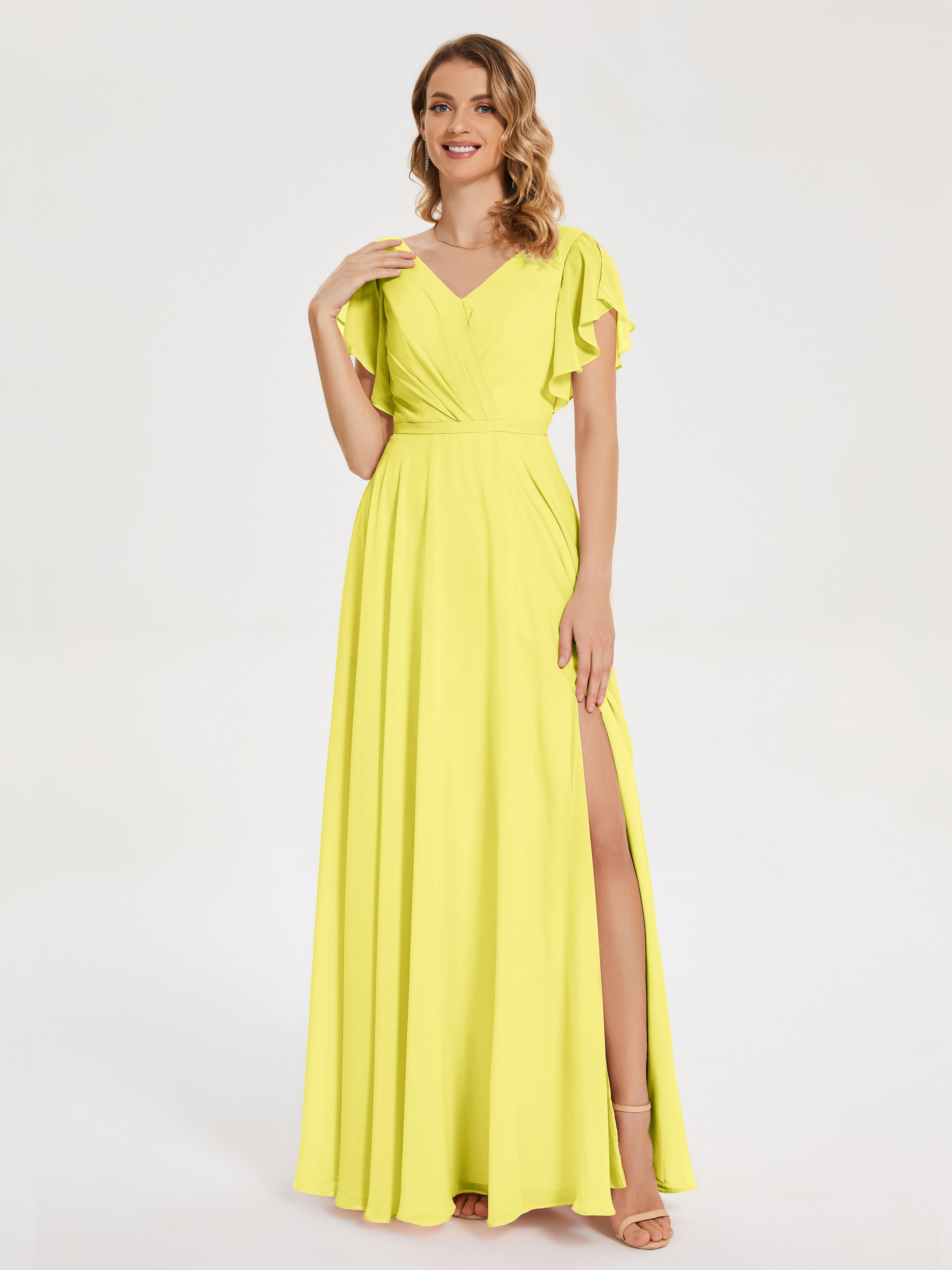 Lemon Bridesmaids Bonnie V-Neck Chiffon Bridesmaid Dresses With Ruffle Sleeves