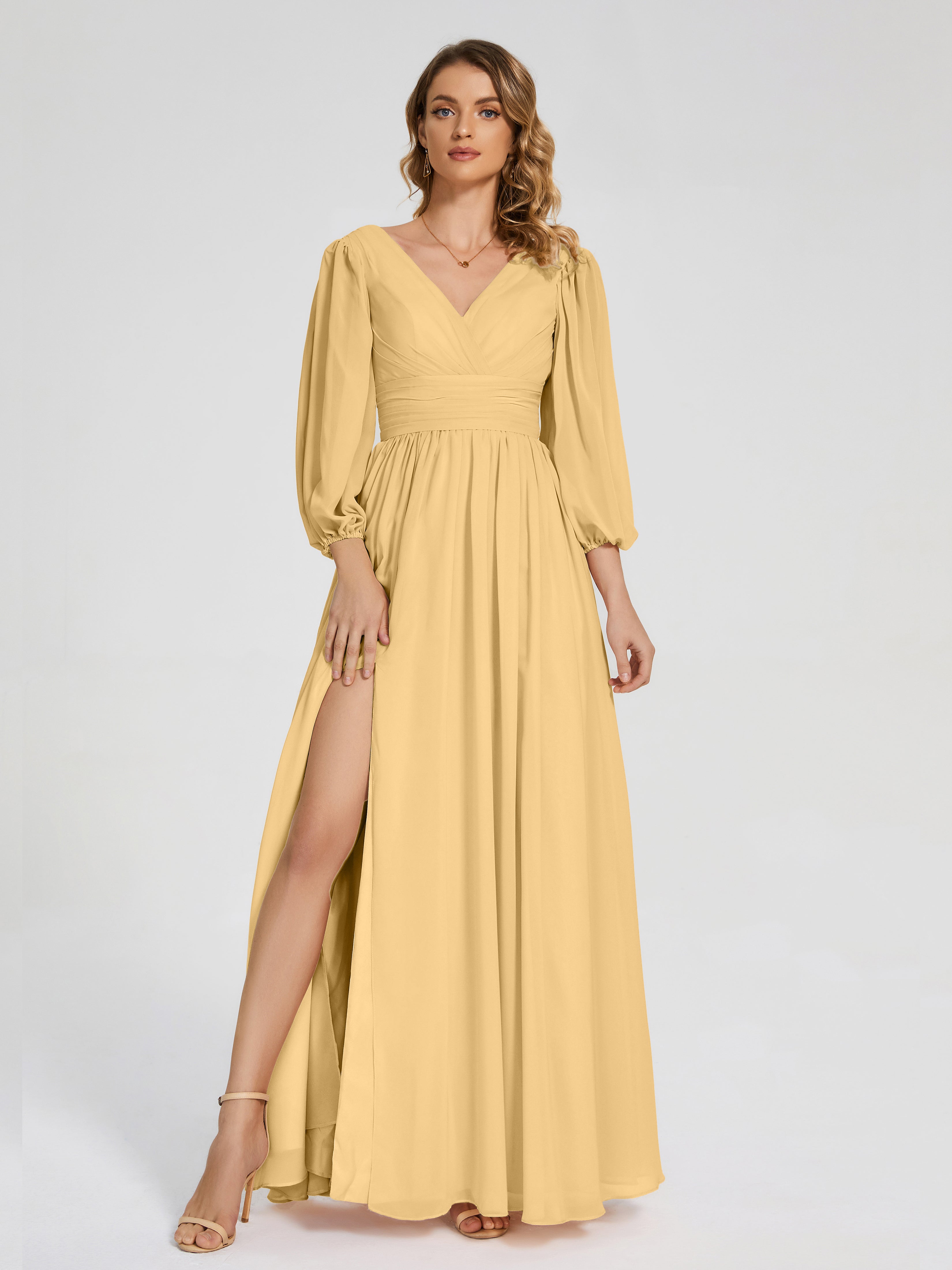 Daffodil Bridesmaid Dress Bonnie V-Neck Chiffon Bridesmaid Dresses With Ruffle Sleeves