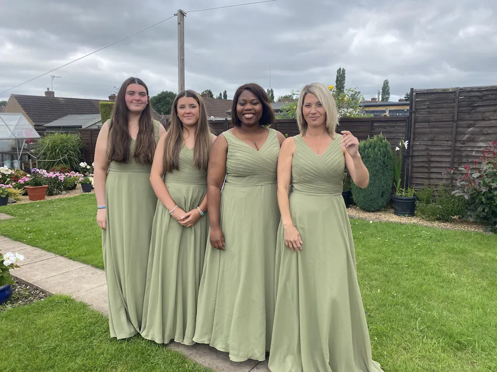 My bridesmaids absolutely loved these dresses, very flattering for all shapes and sizes. Sizes were spot on and the customer services was fantastic. The colour matched our colour theme perfectly which was brilliant. The material was very soft which kept the girls comfy all day. The dresses even looked fab when the girls were doing flips on the bouncy castle.