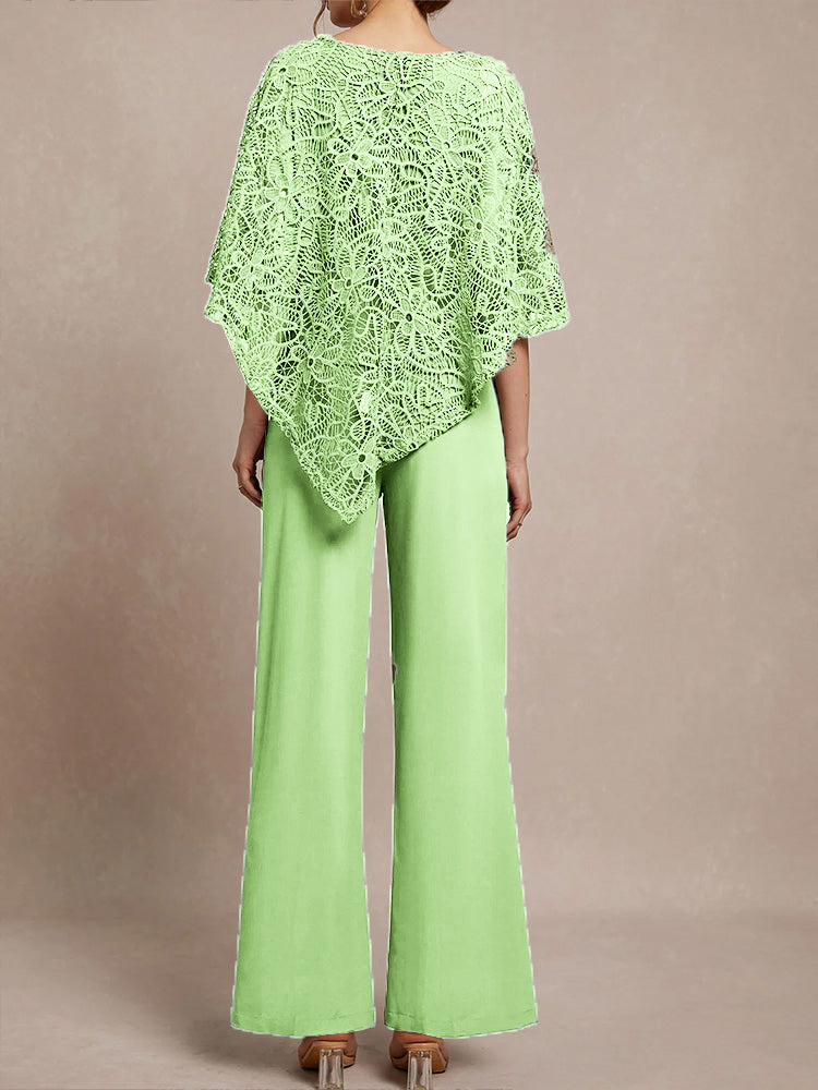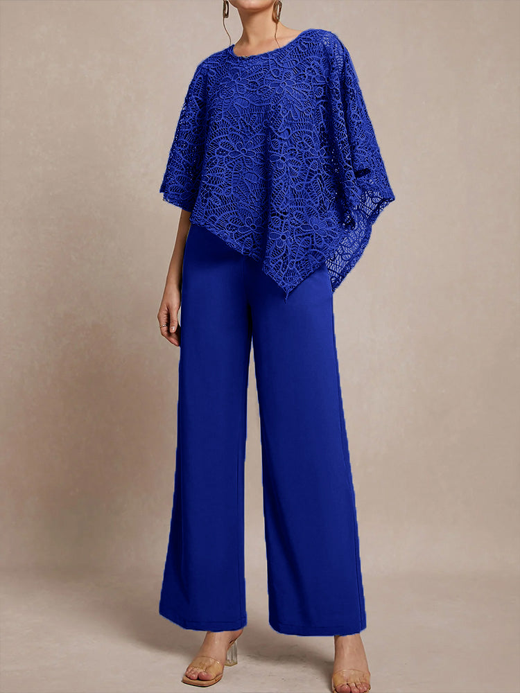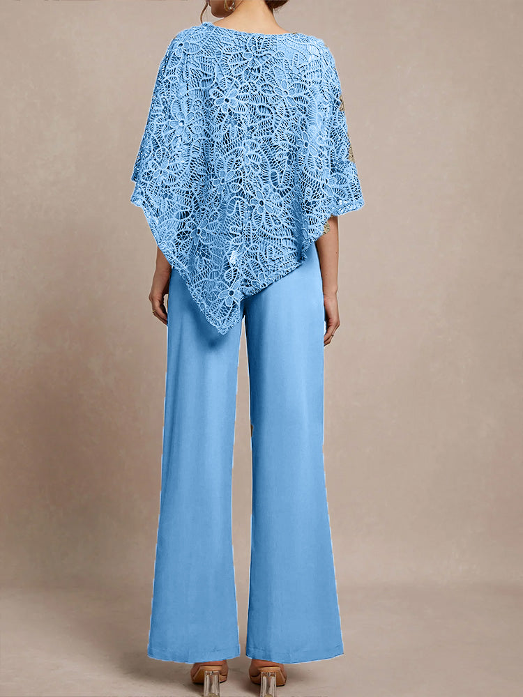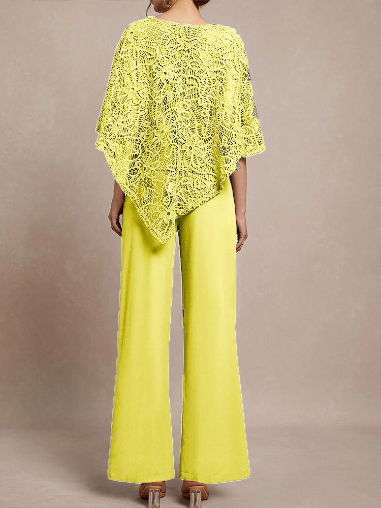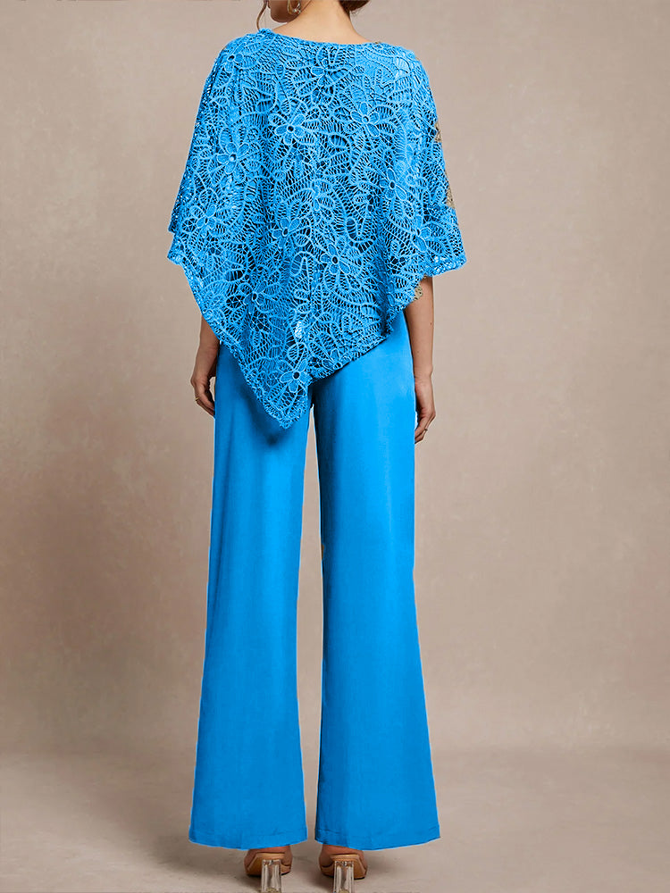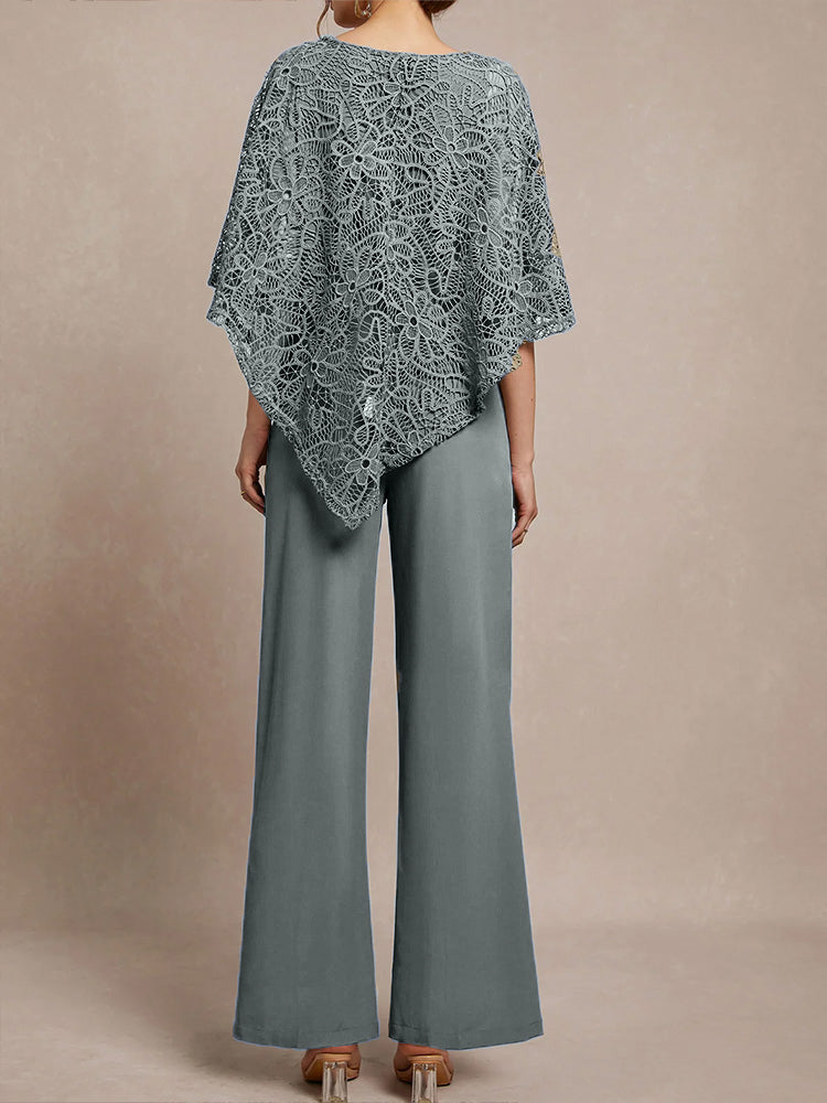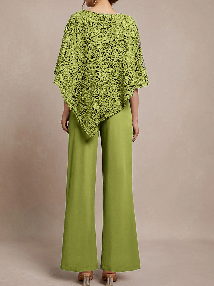 3 Pieces Lace Cape Chiffon Mother of the Bride Pant Suits