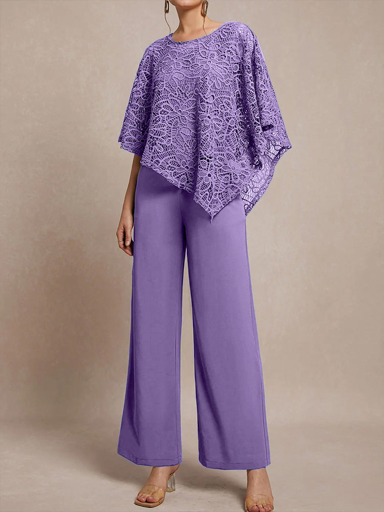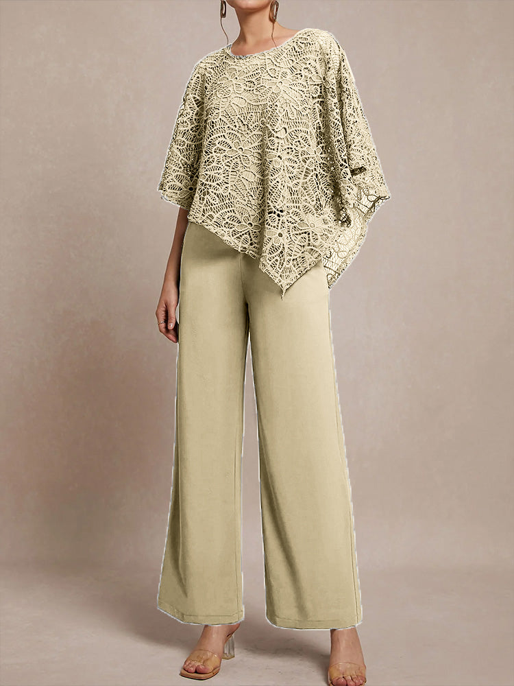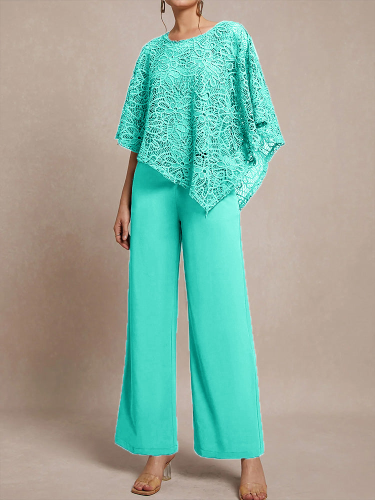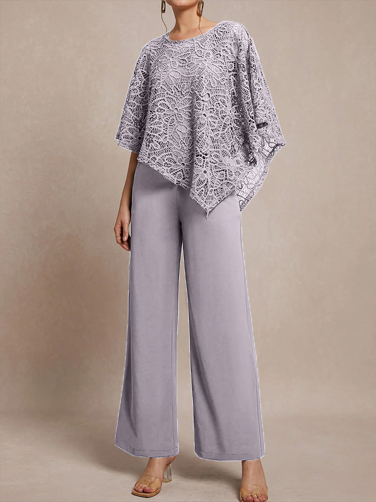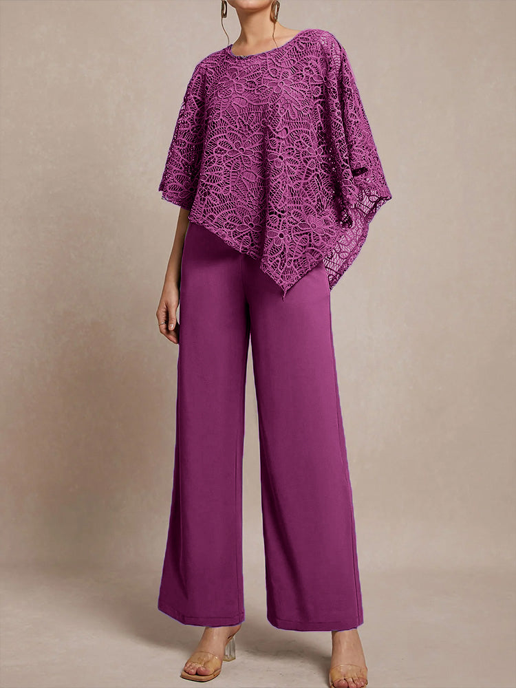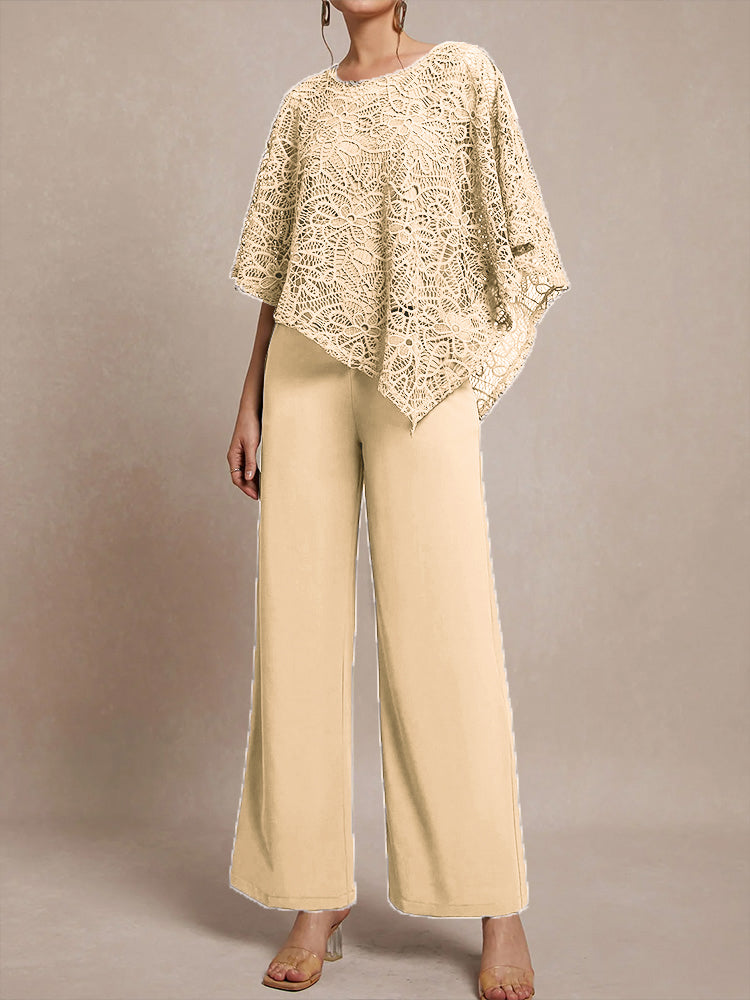 3 Pieces Lace Cape Chiffon Mother of the Bride Pant Suits