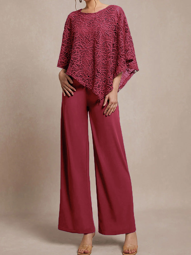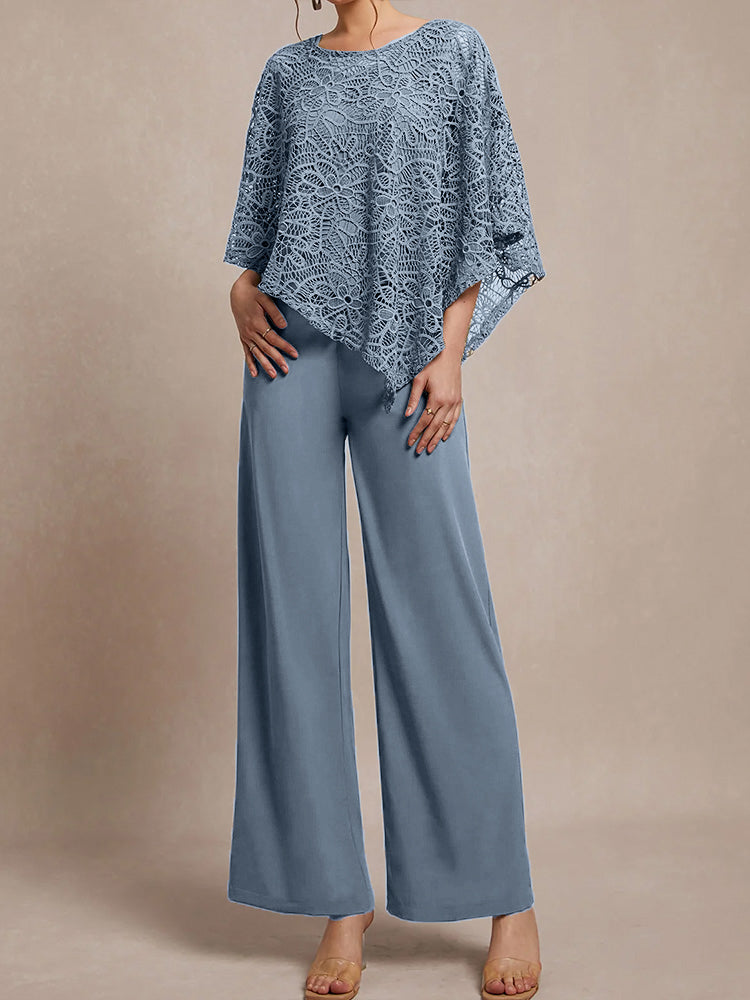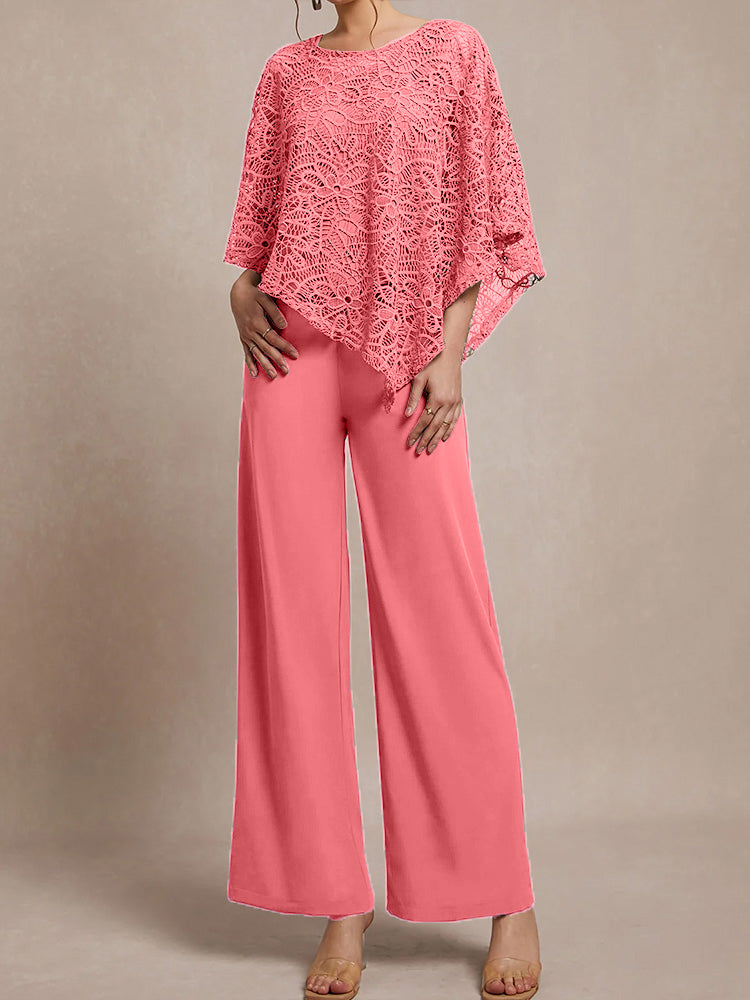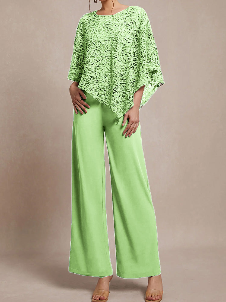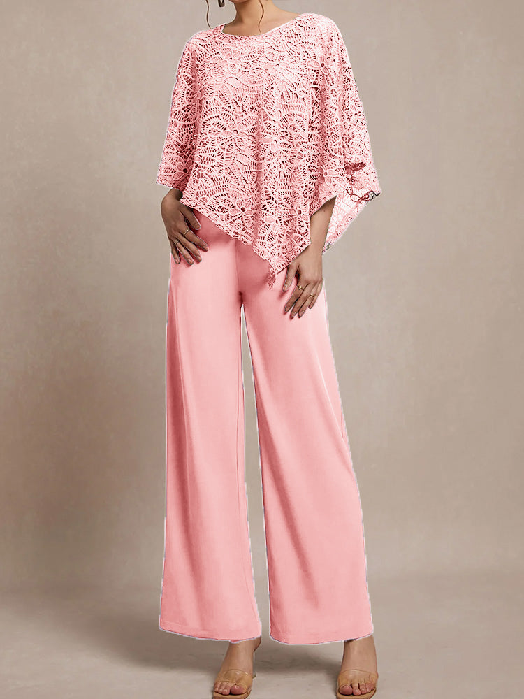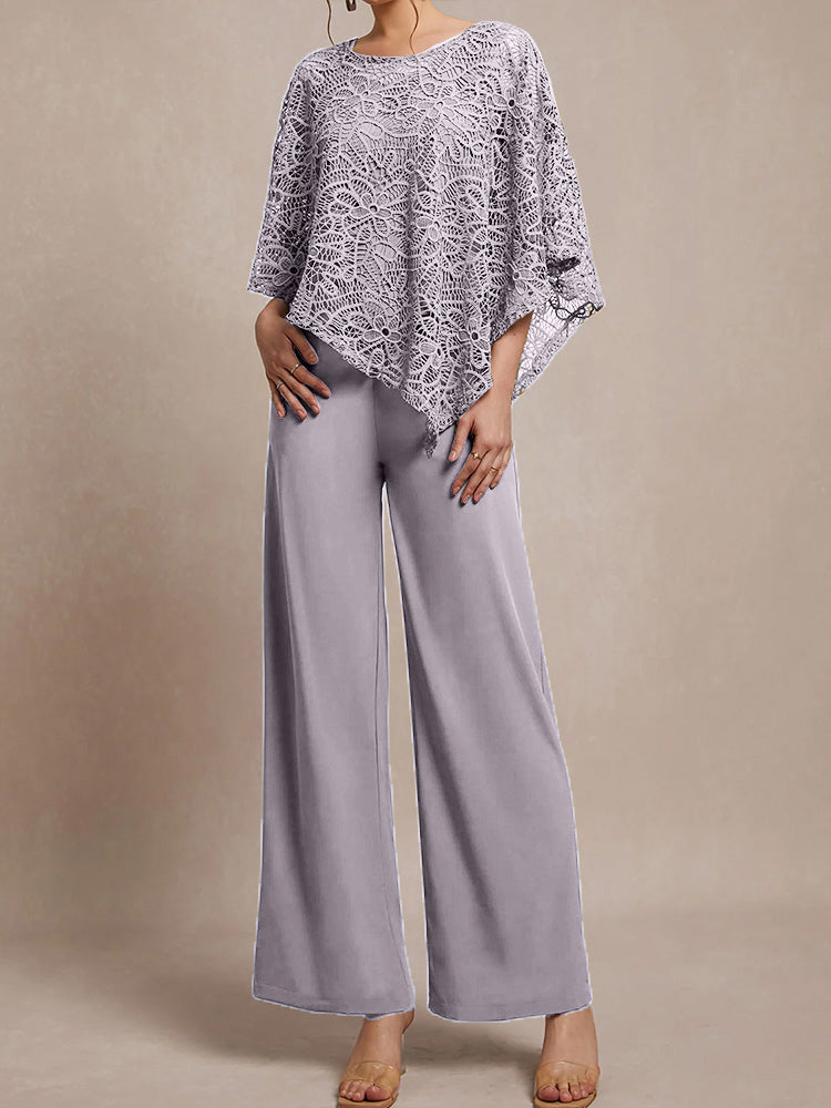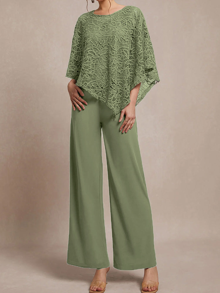 3 Pieces Lace Cape Chiffon Mother of the Bride Pant Suits