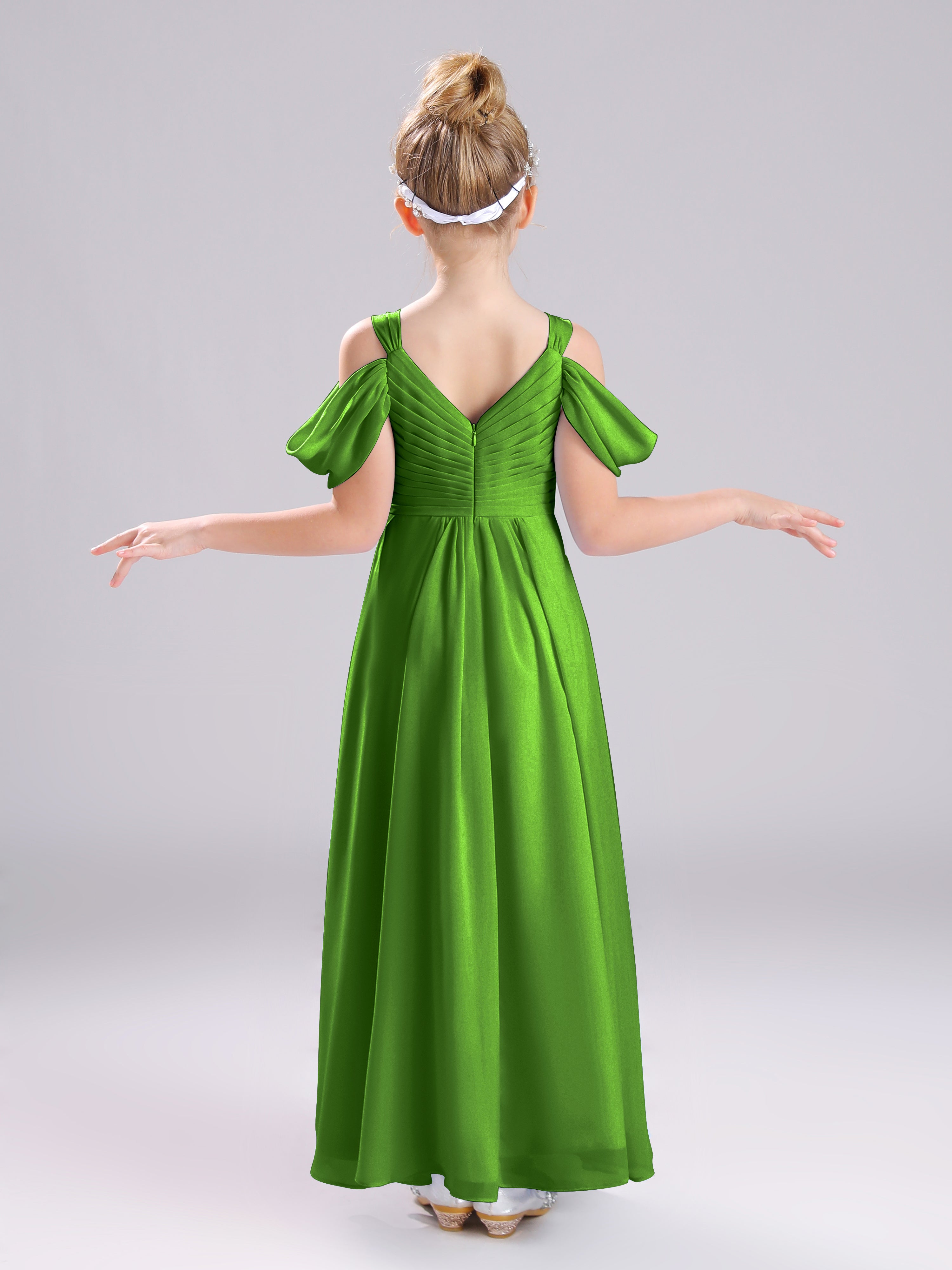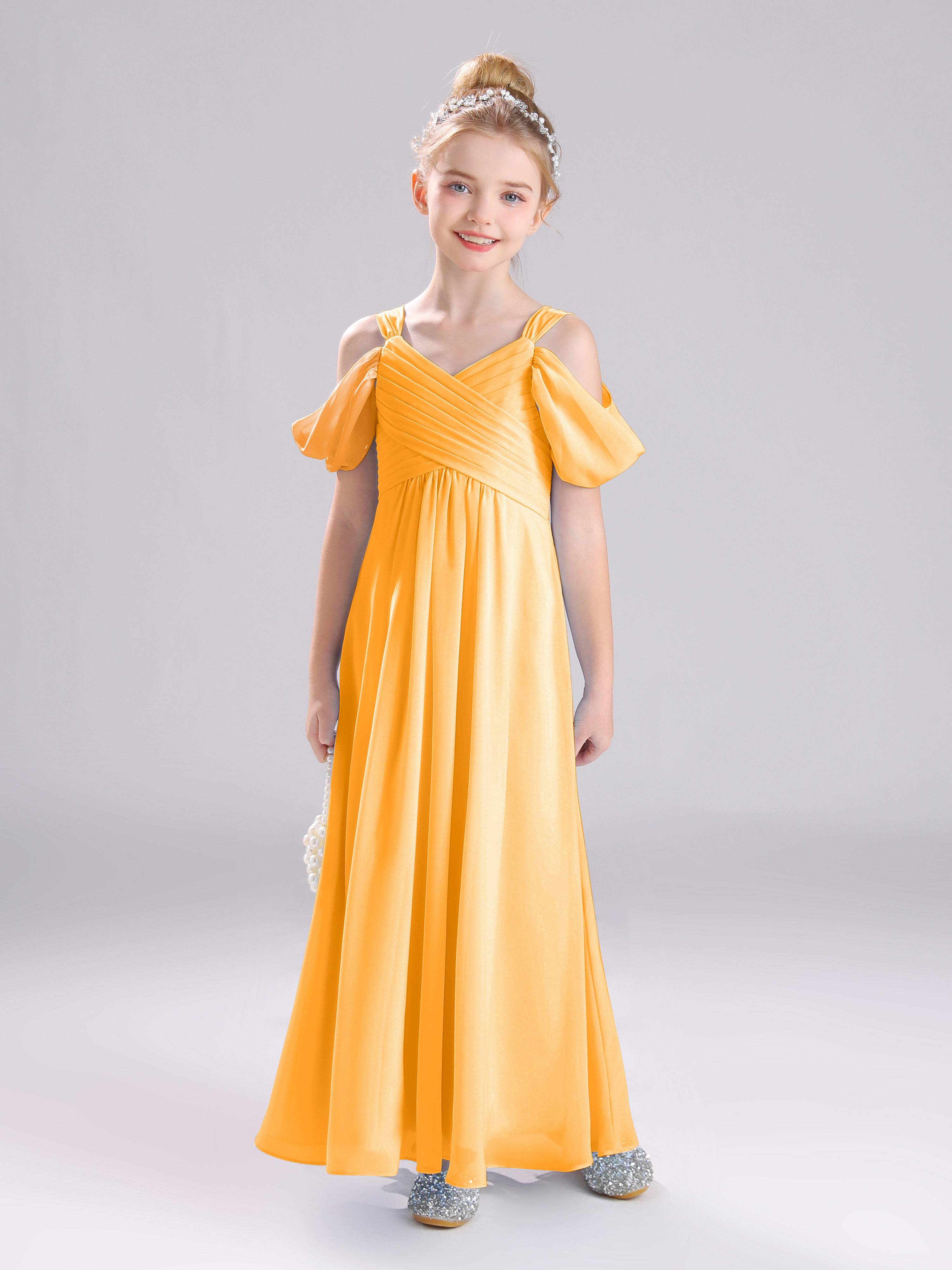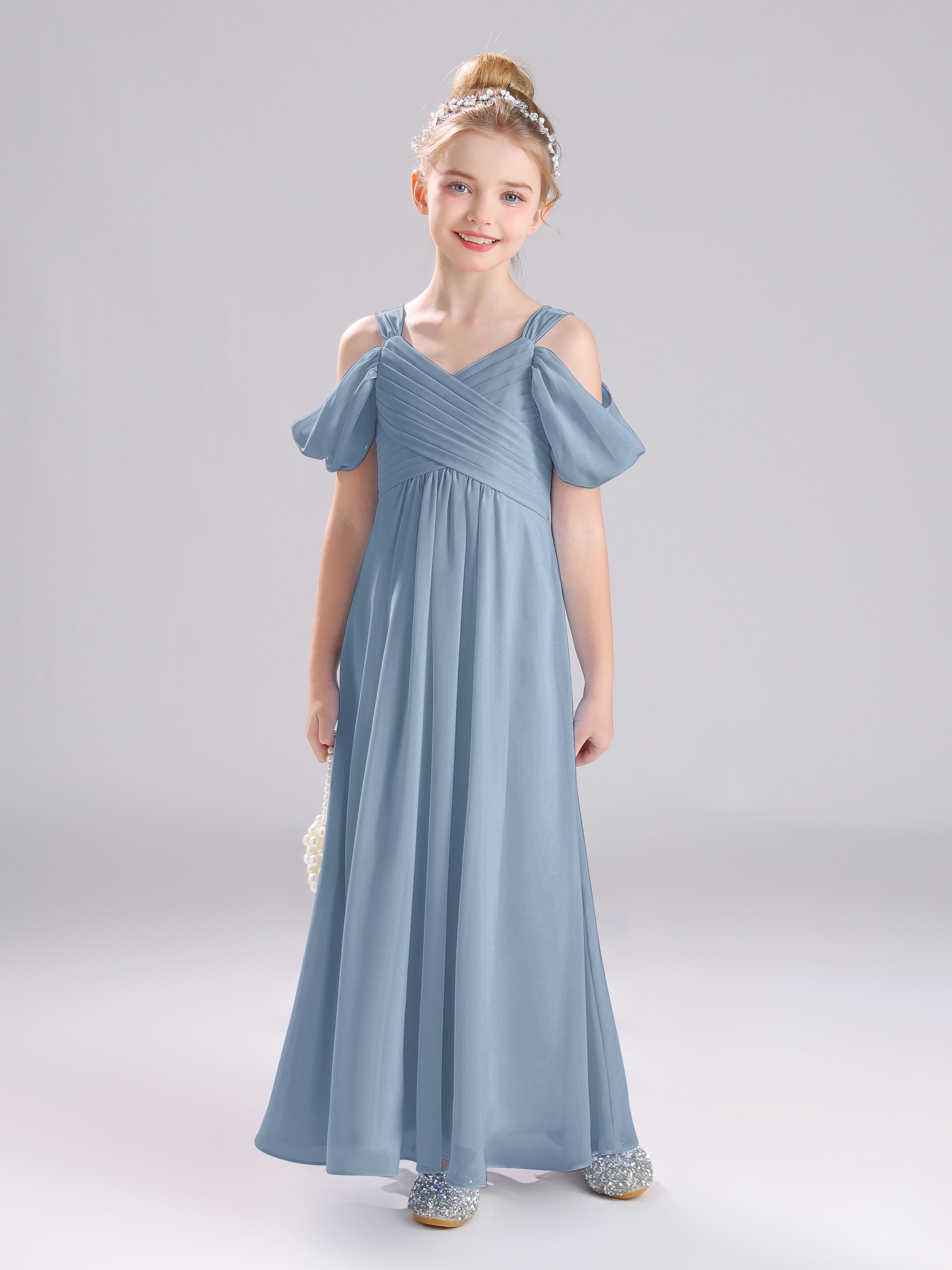 A-Line Off The Shoulder Straps Pleats Chiffon Junior Bridesmaid Dresses