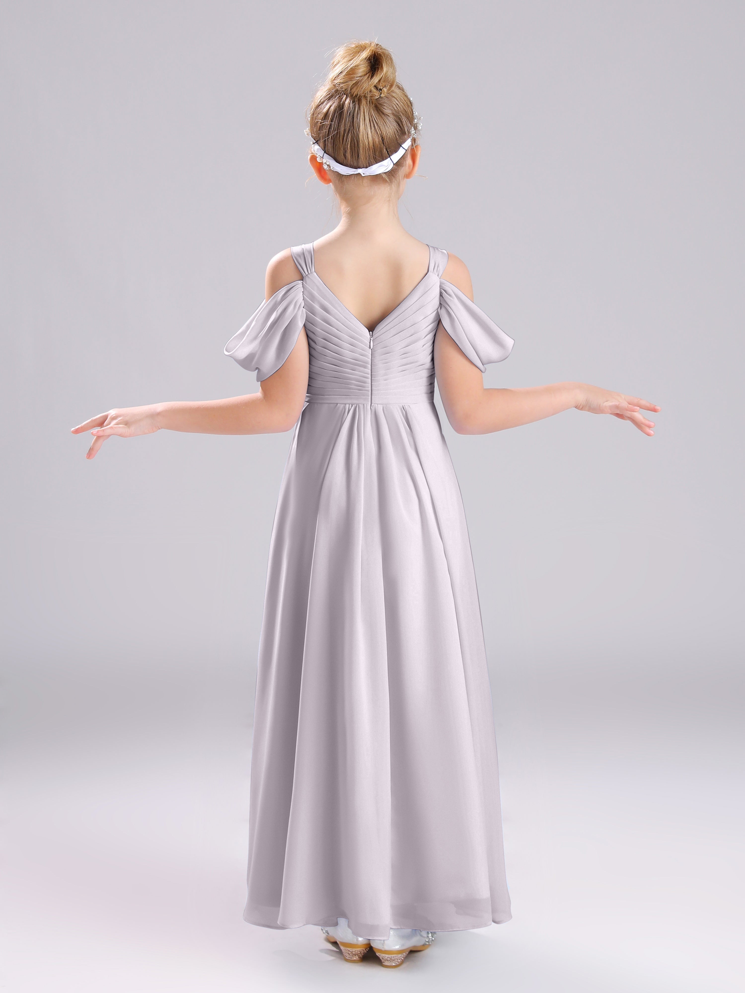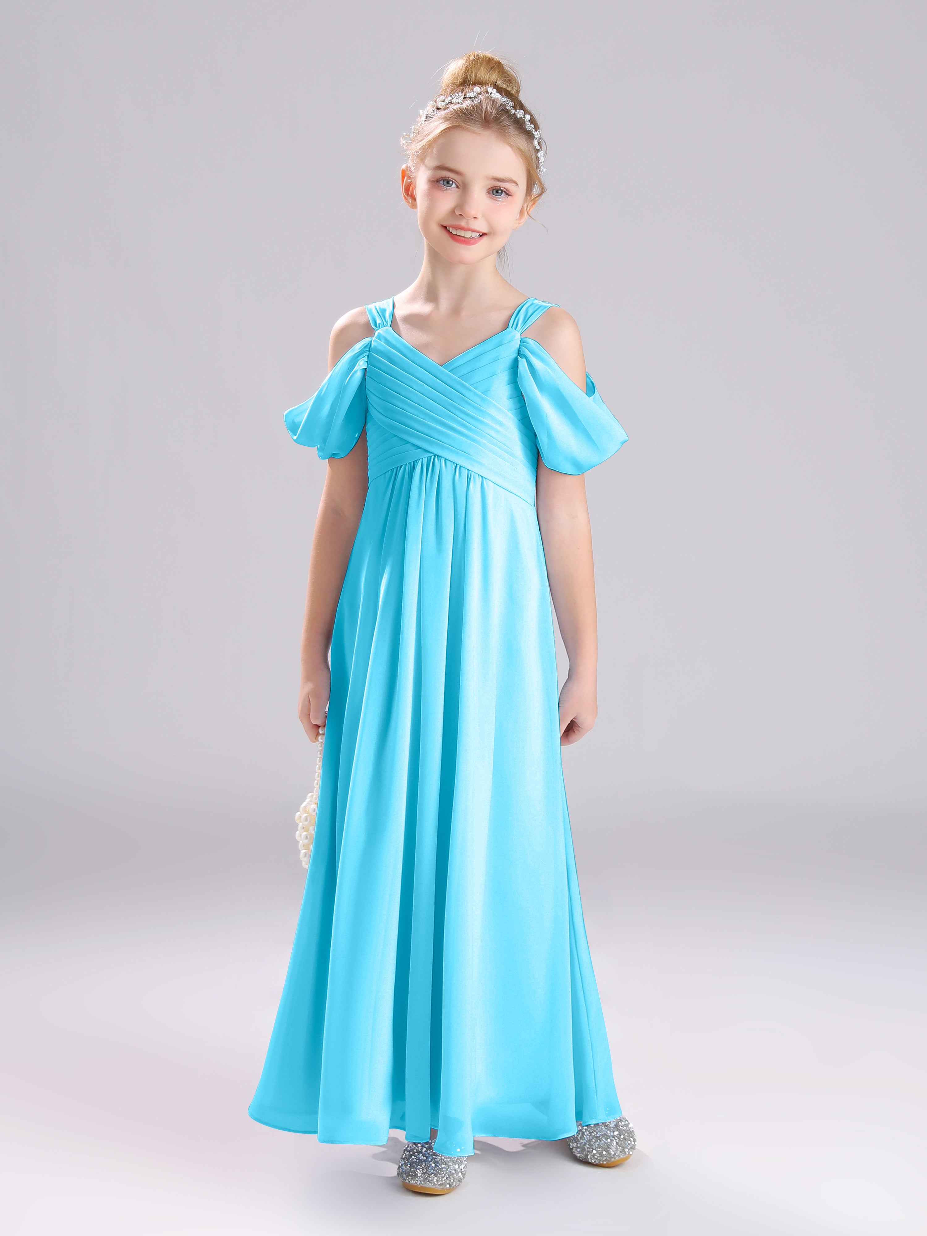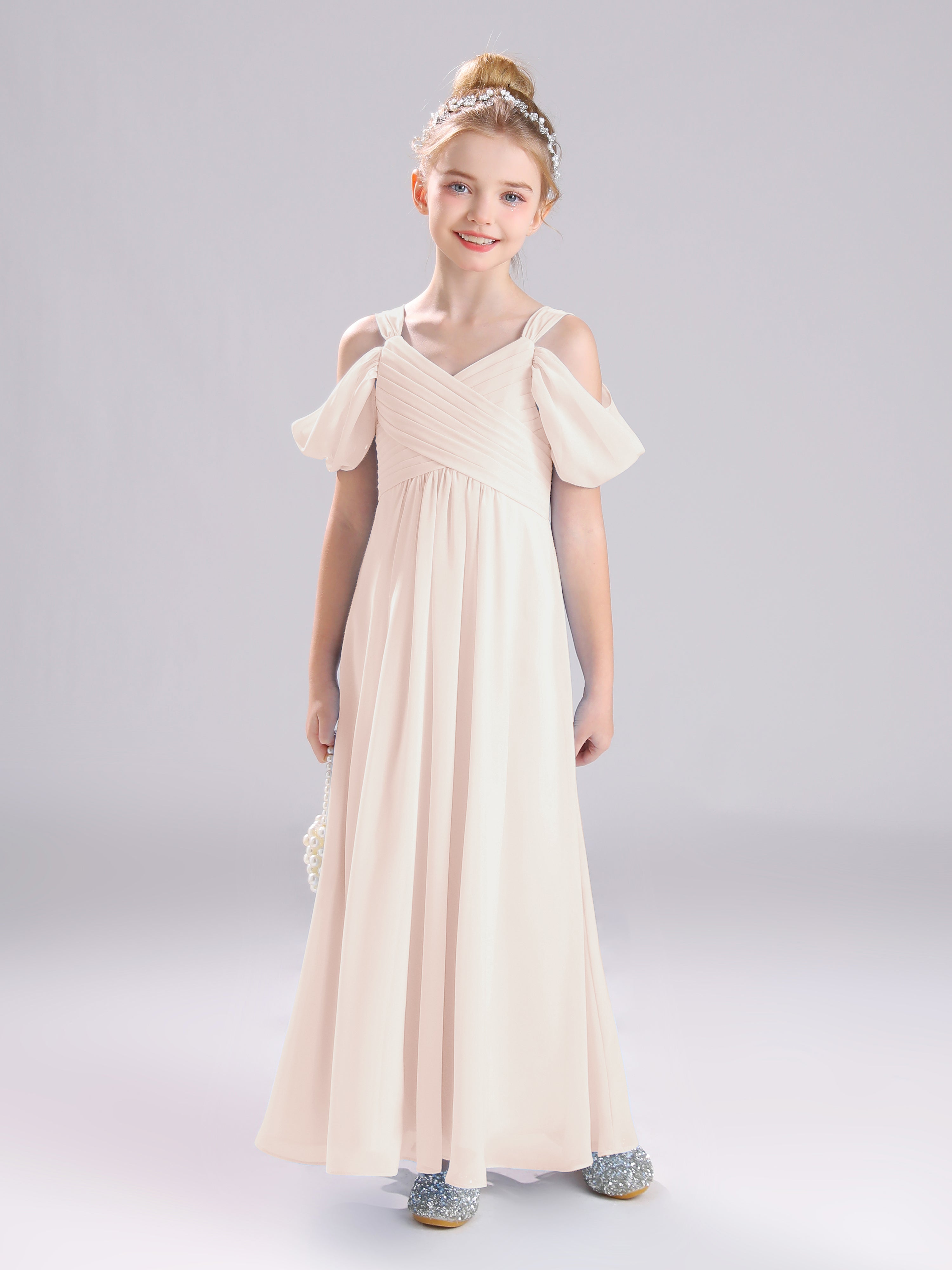 A-Line Off The Shoulder Straps Pleats Chiffon Junior Bridesmaid Dresses