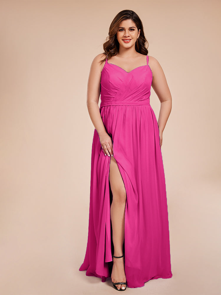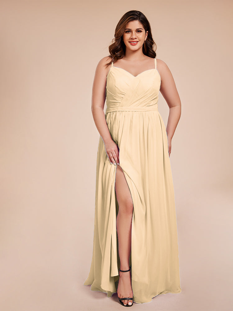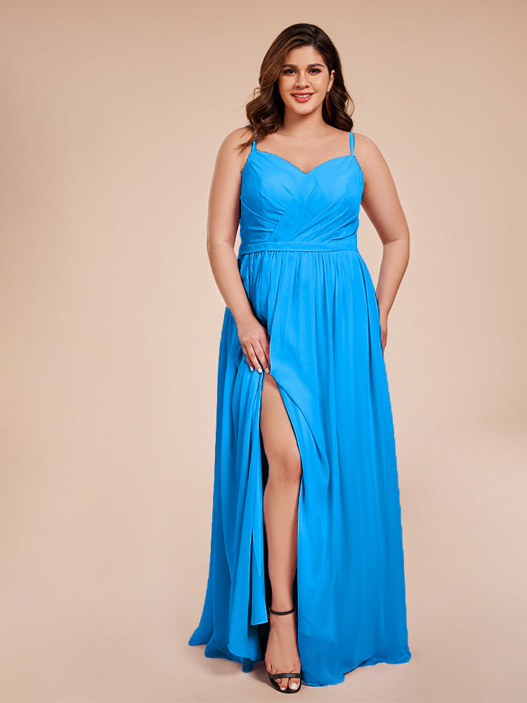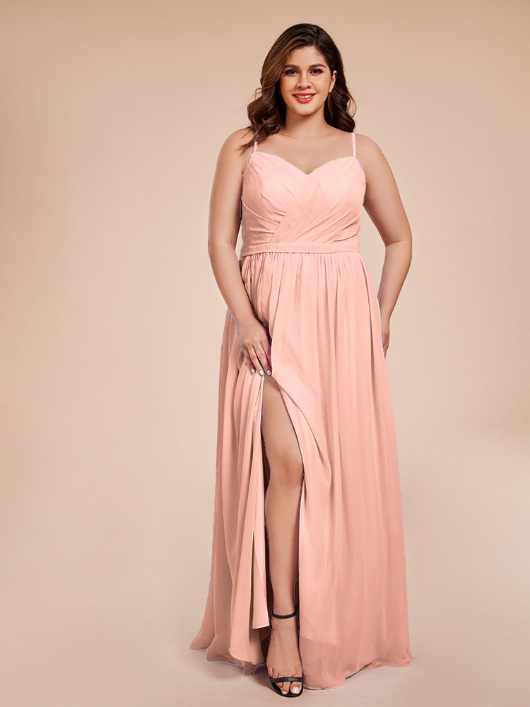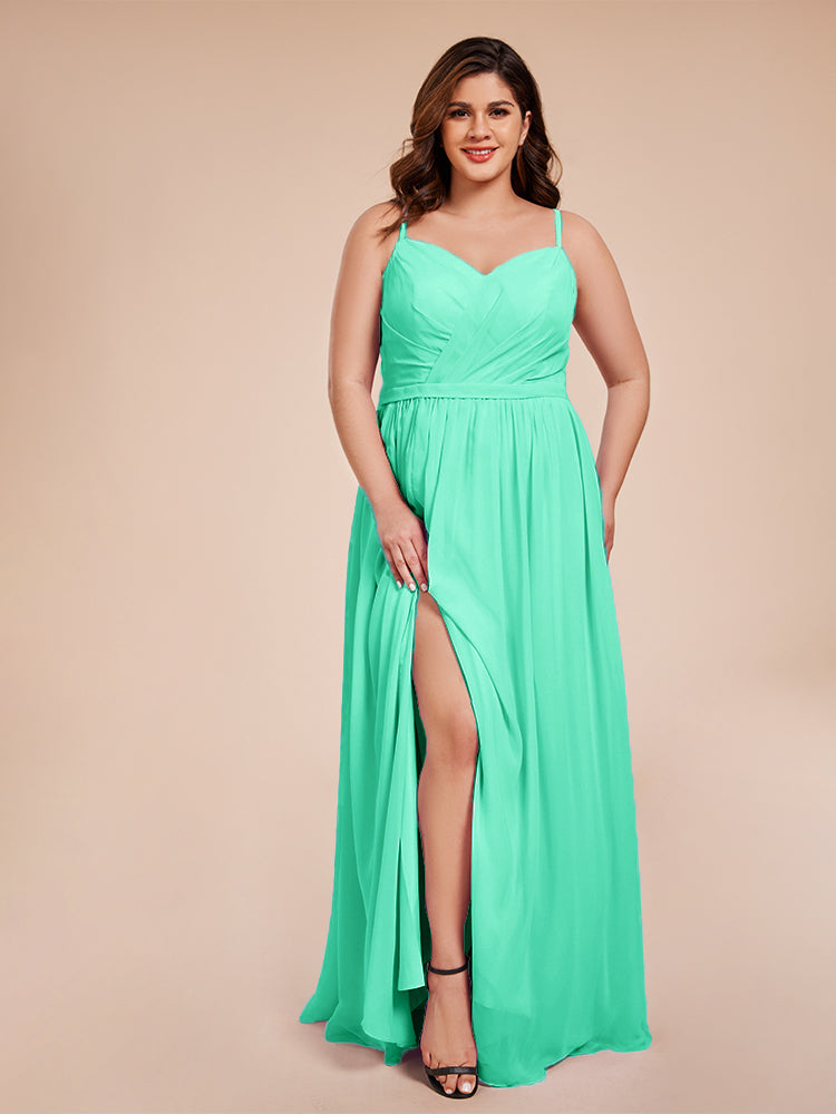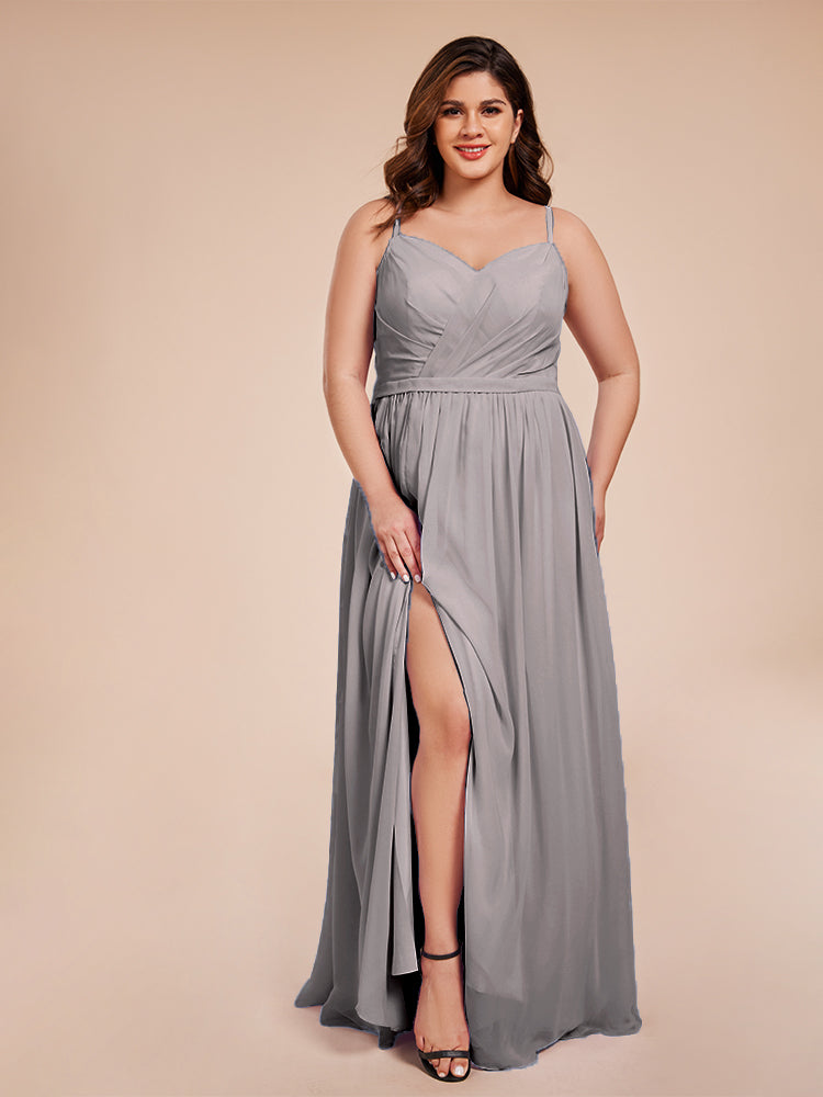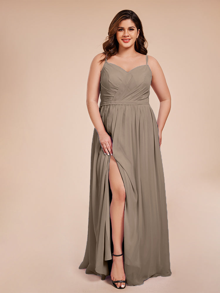 A-Line Spaghetti Straps Chiffon Plus Size Bridesmaid Dresses With Split