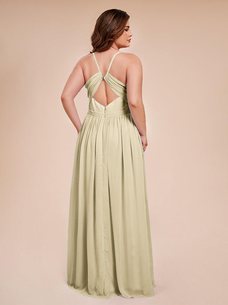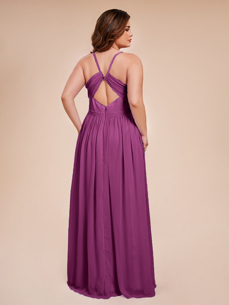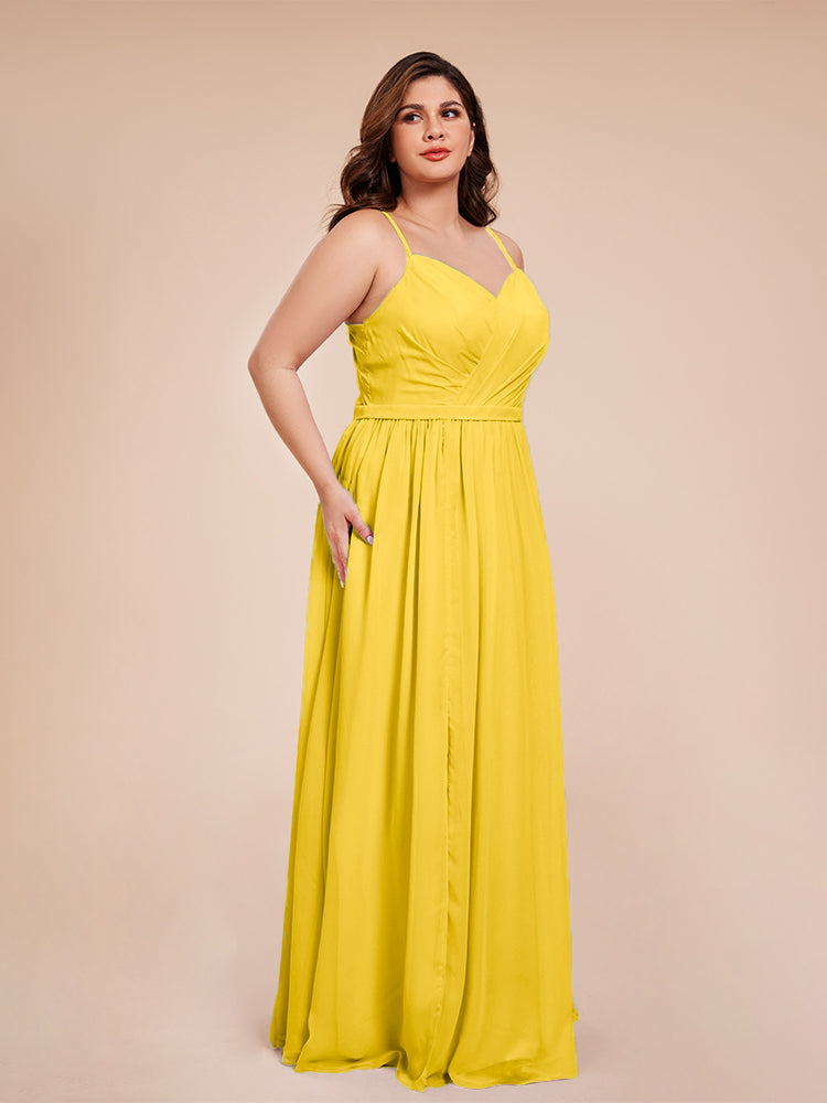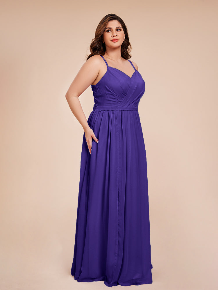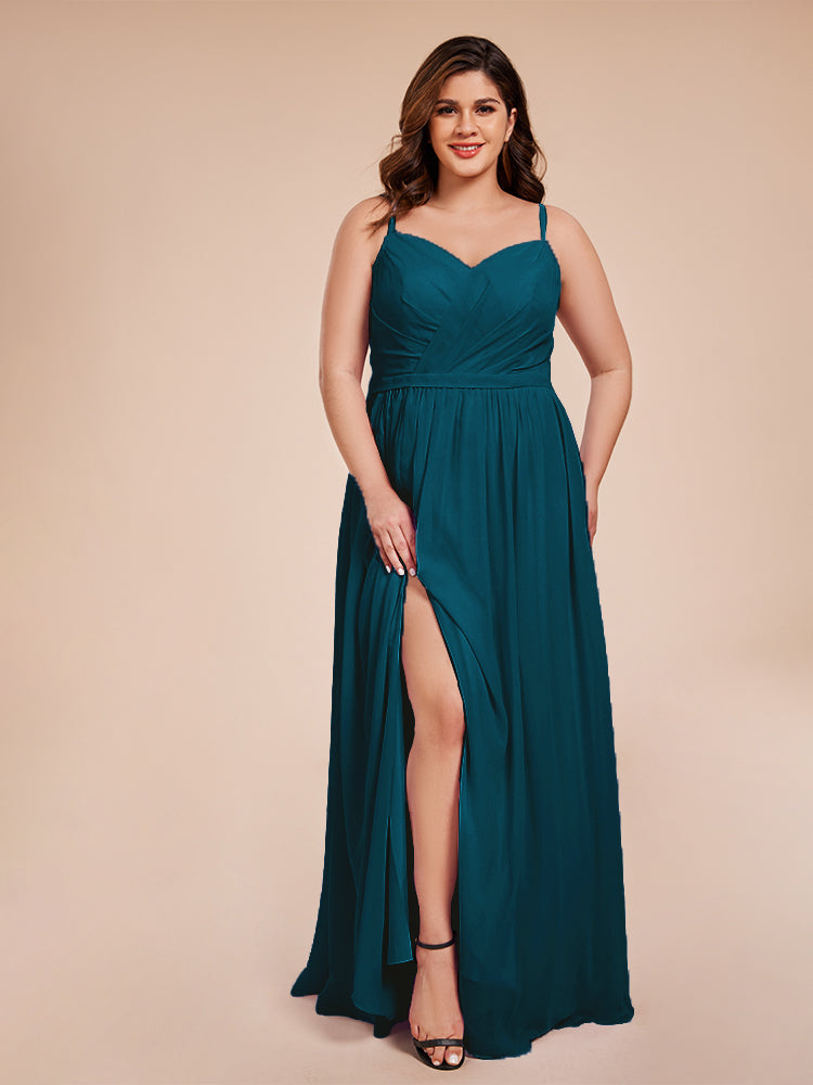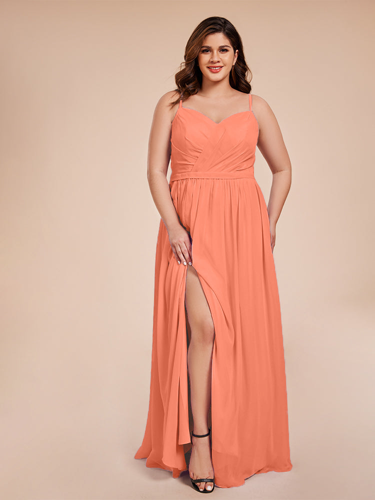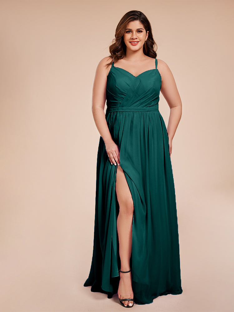 A-Line Spaghetti Straps Chiffon Plus Size Bridesmaid Dresses With Split