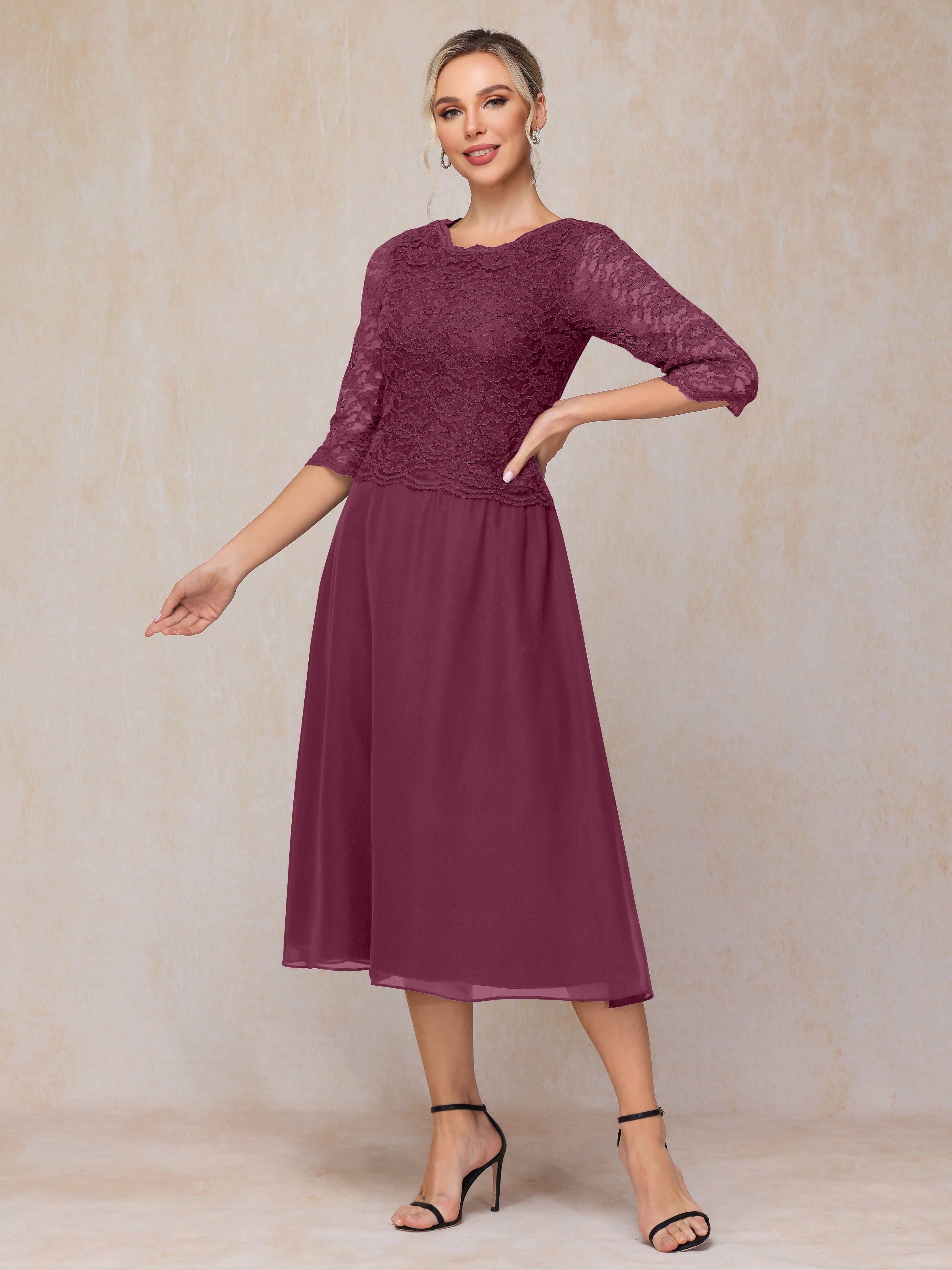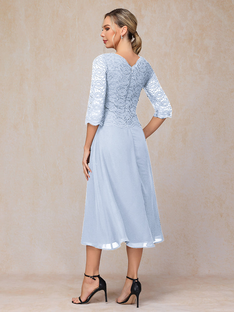 A-Line Tea Length Chiffon Mother of the Bride Dresses With Lace