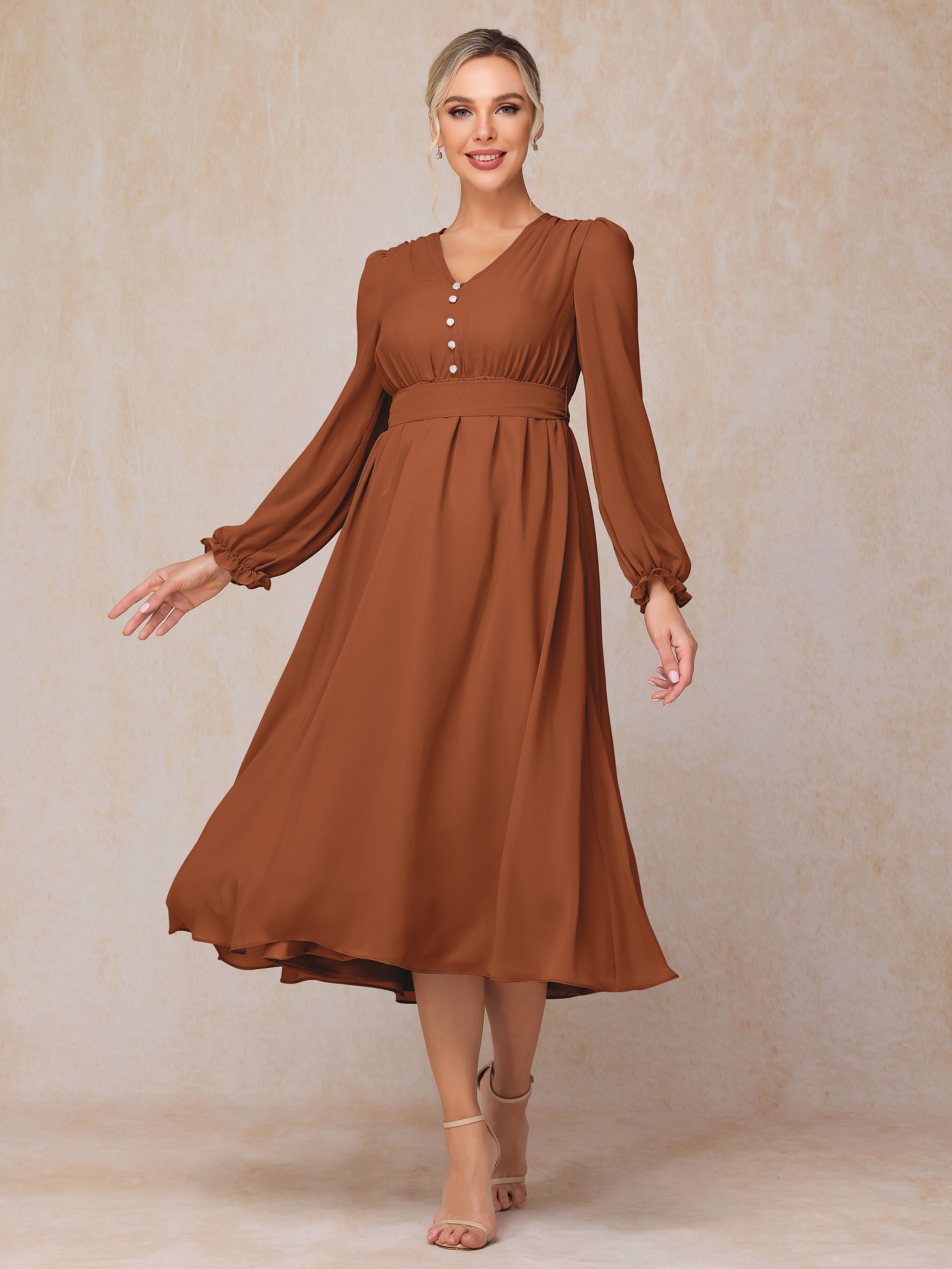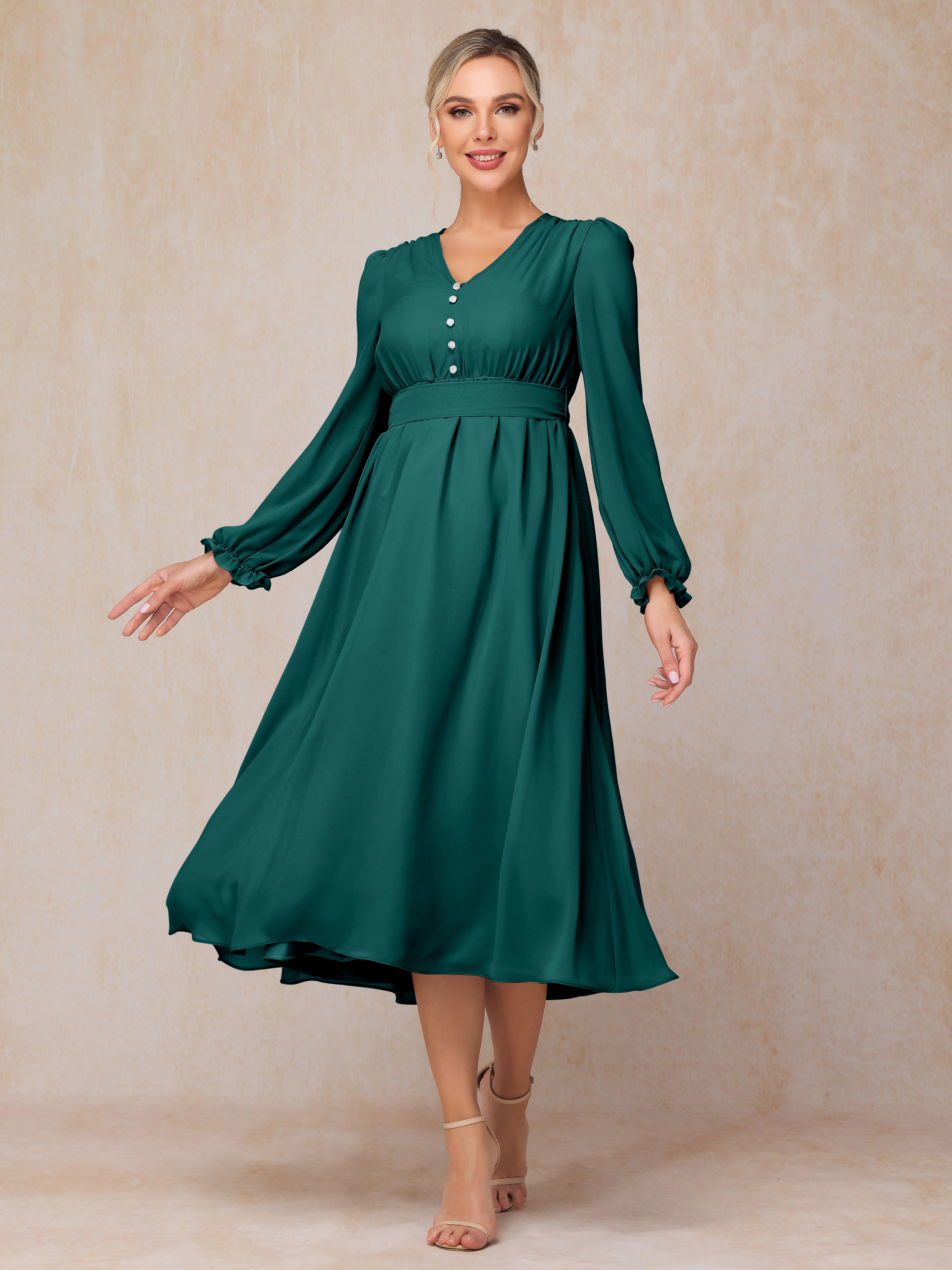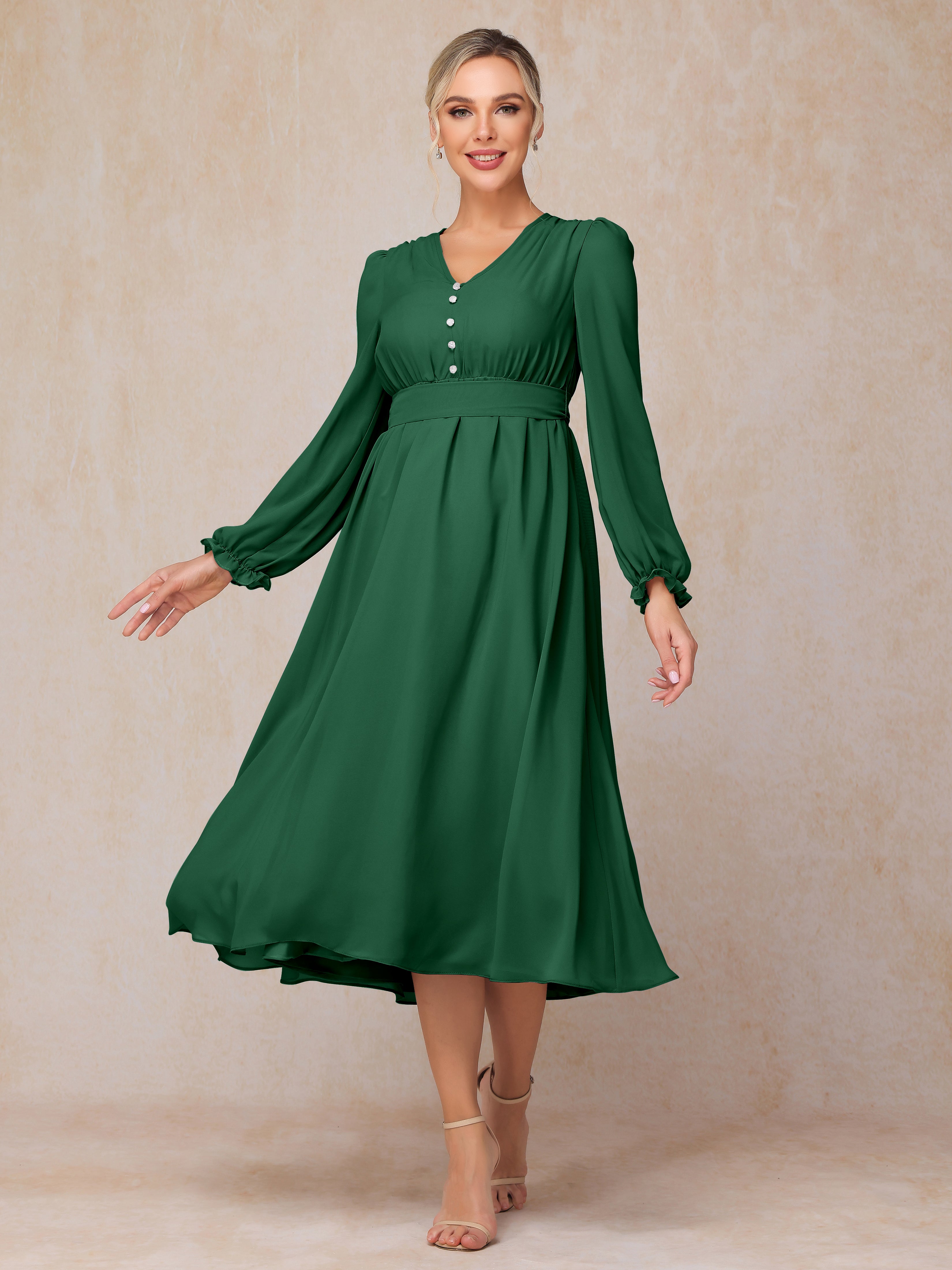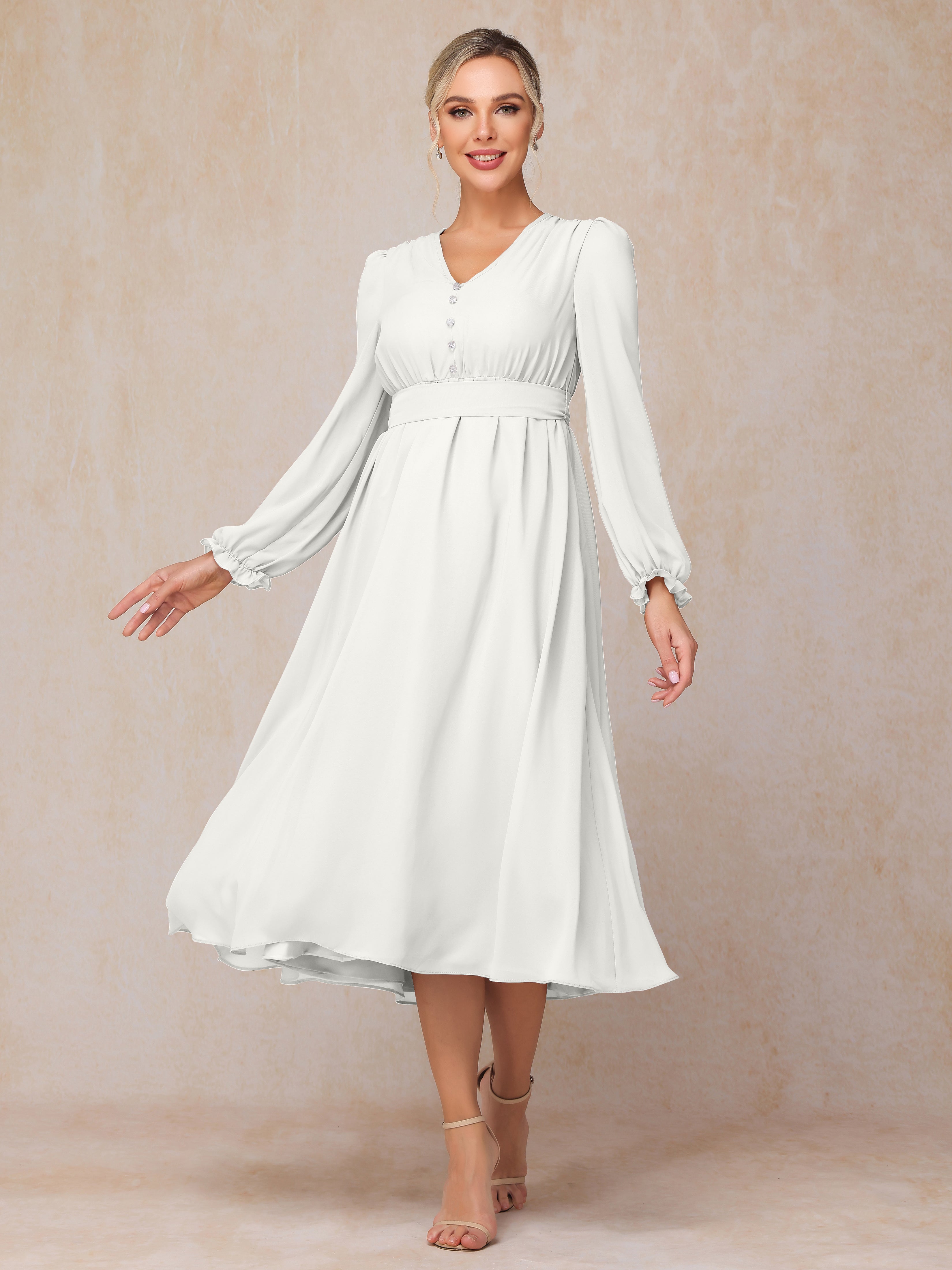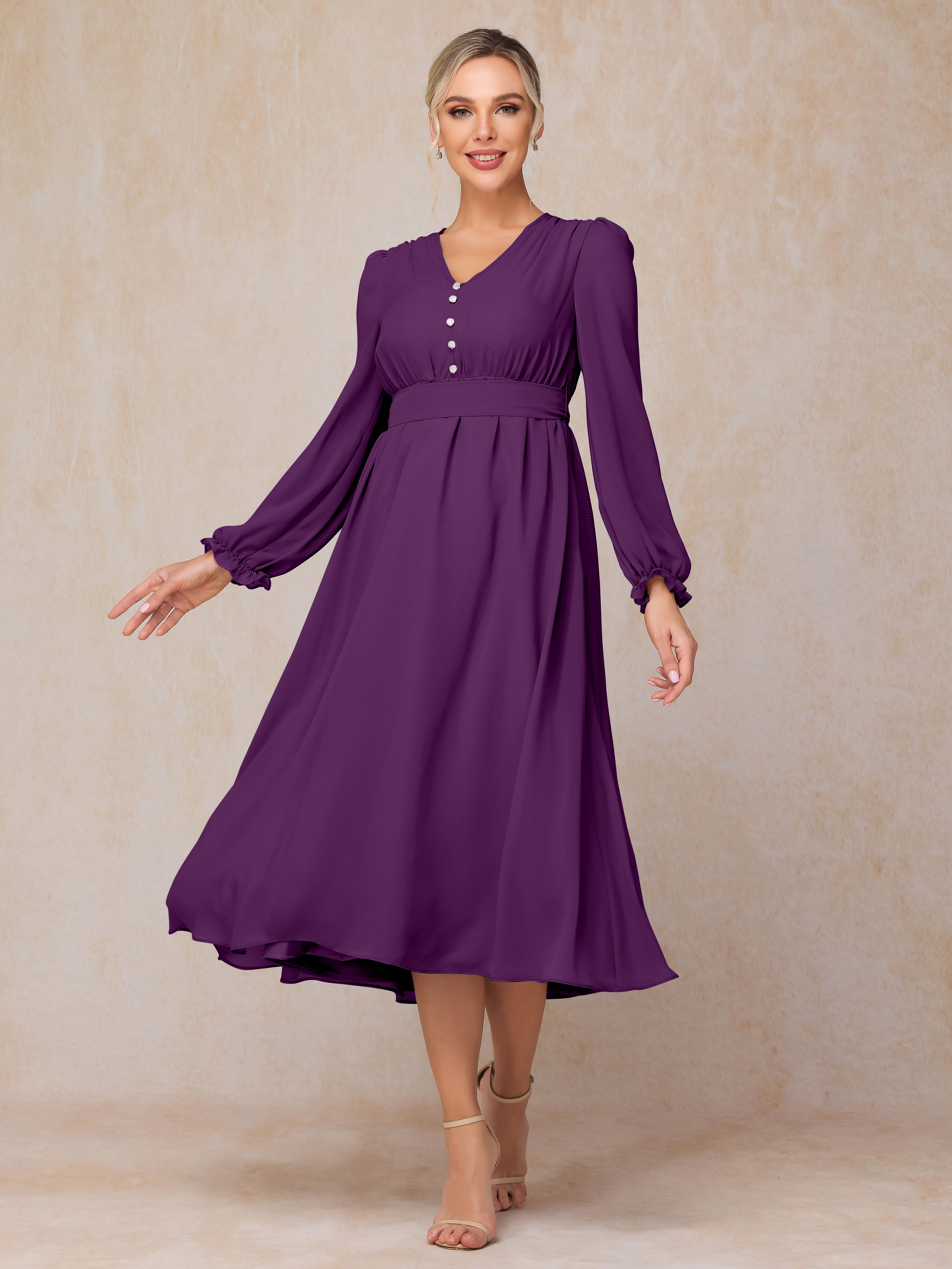 A-Line V Neck Tea-Length Chiffon Mother of the Bride Dresses With Belt