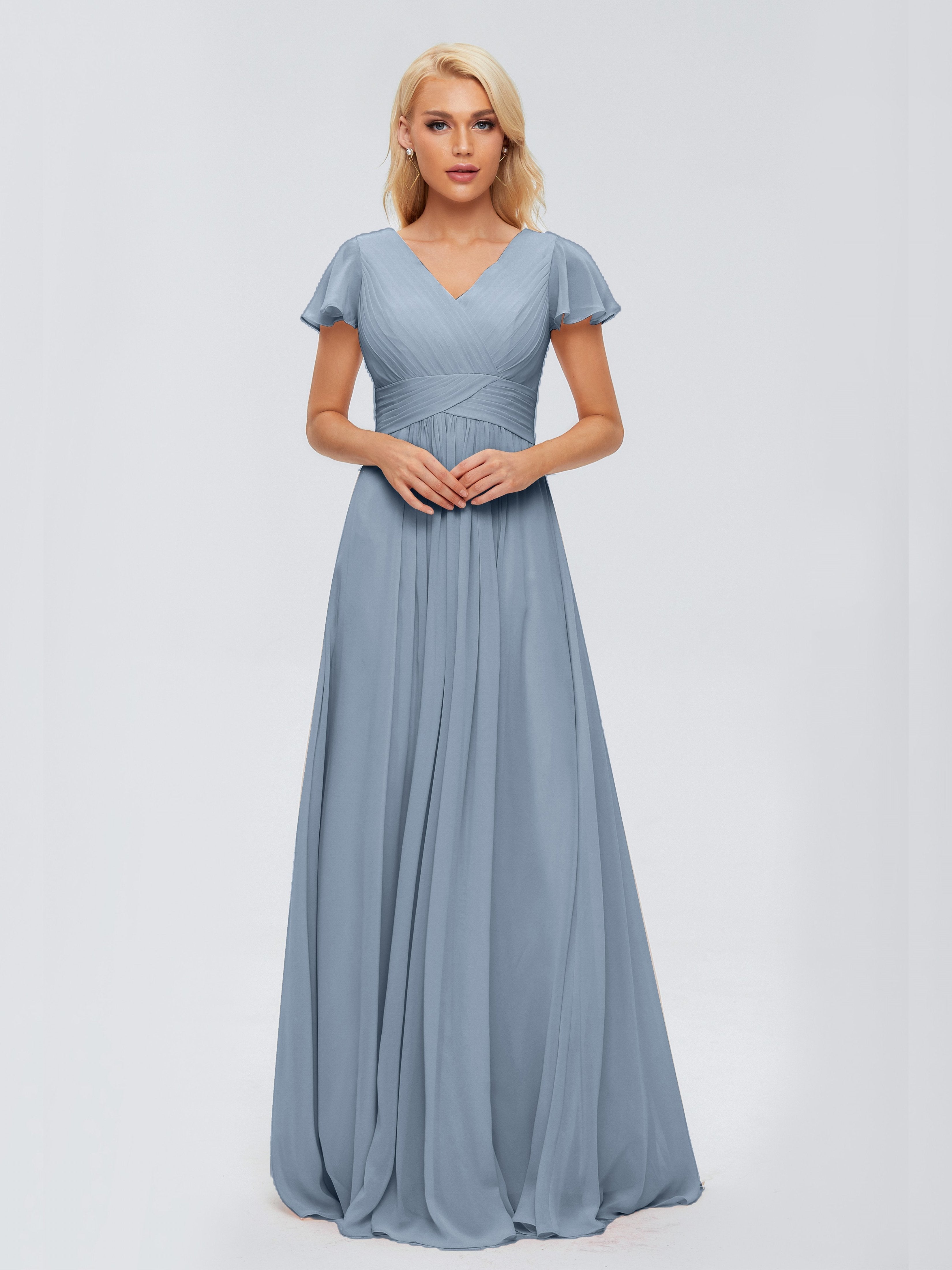 Bridesmaid Dress Dusty Blue Charlie Cap Sleeves Elegant Chiffon Bridesmaid Dresses