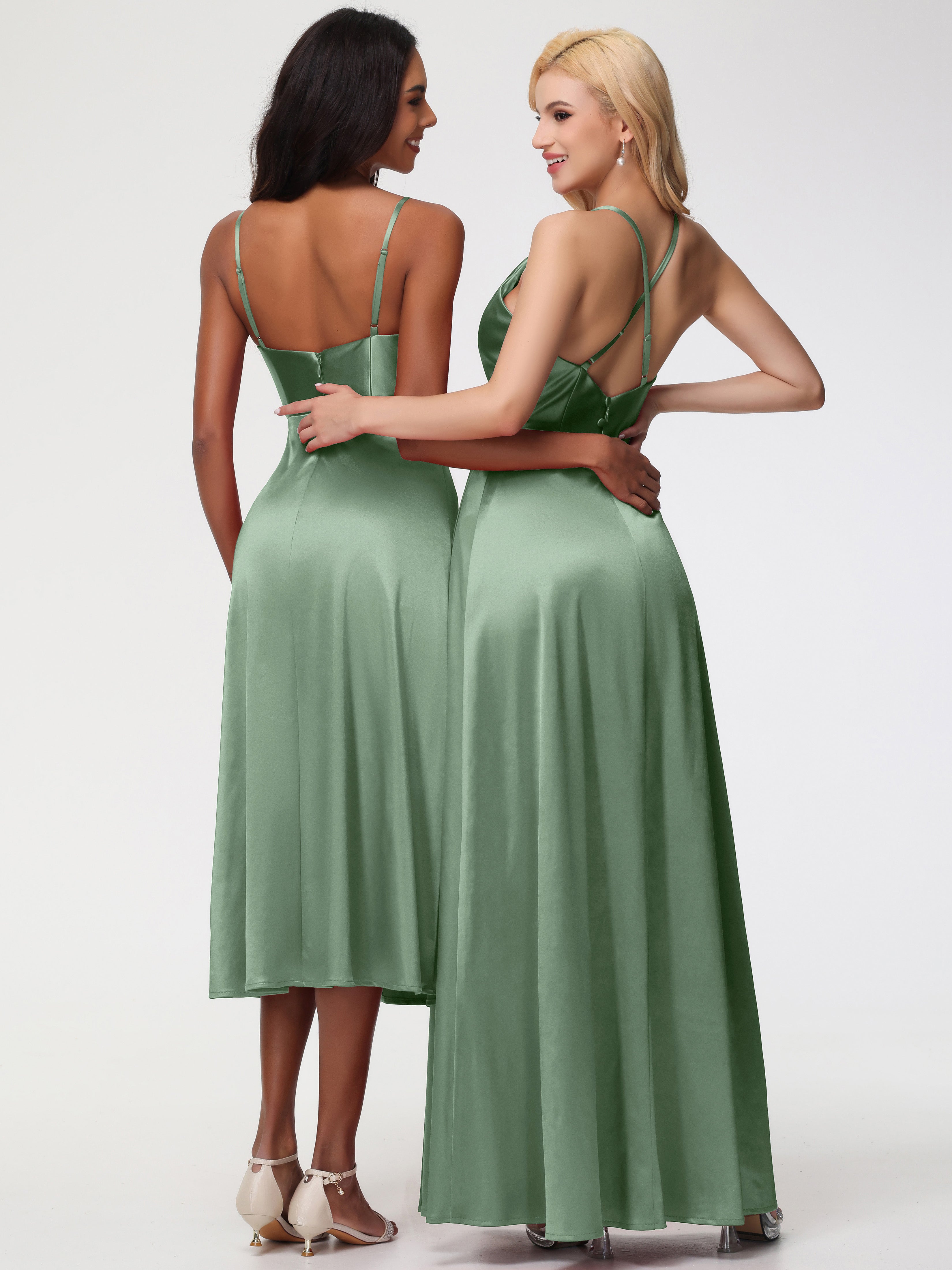 Bridesmaid Dresses Dusty Sage Trumpet/Mermaid Cowl Floor Length Stretch Satin Bridesmaid Dresses