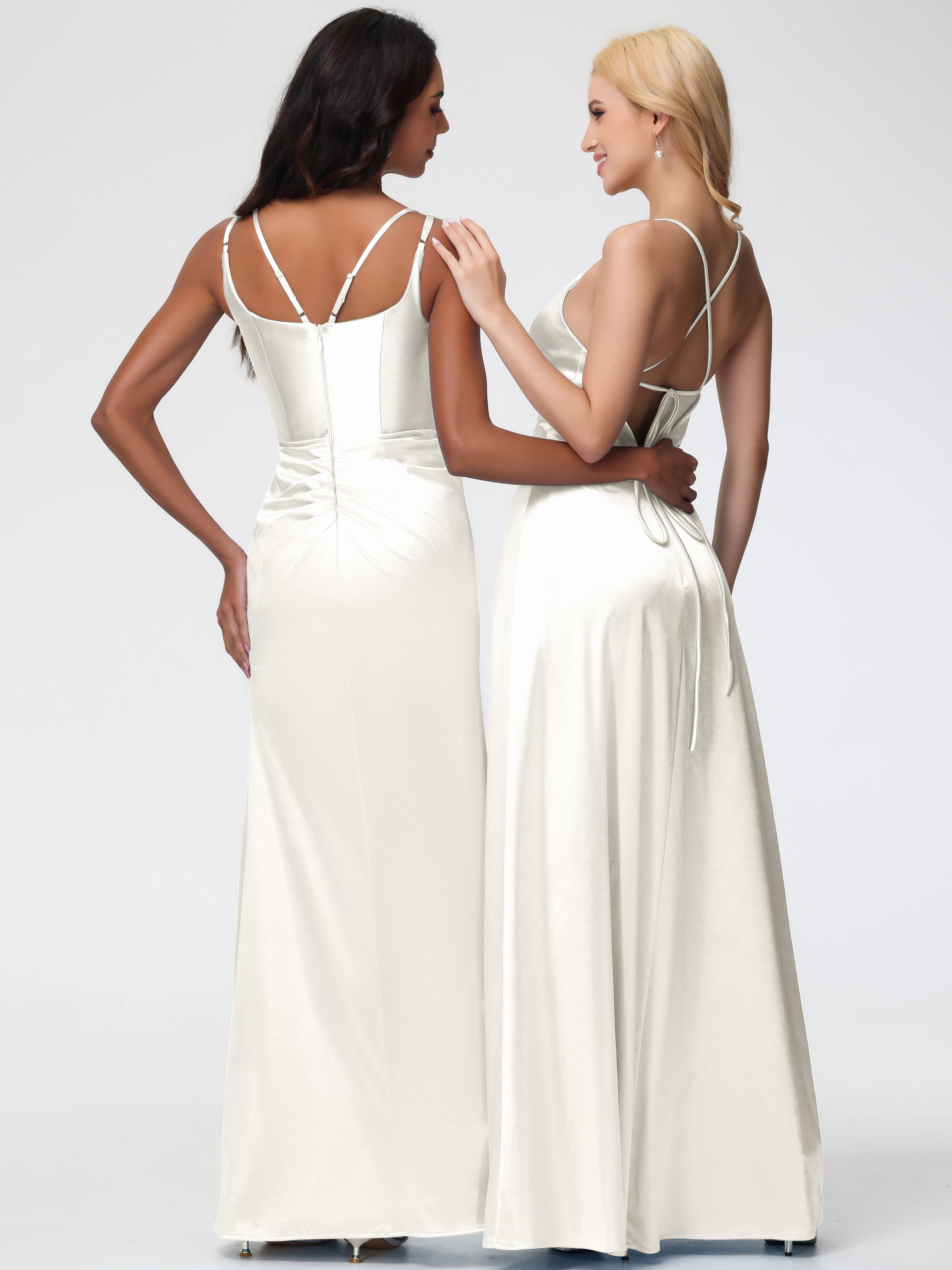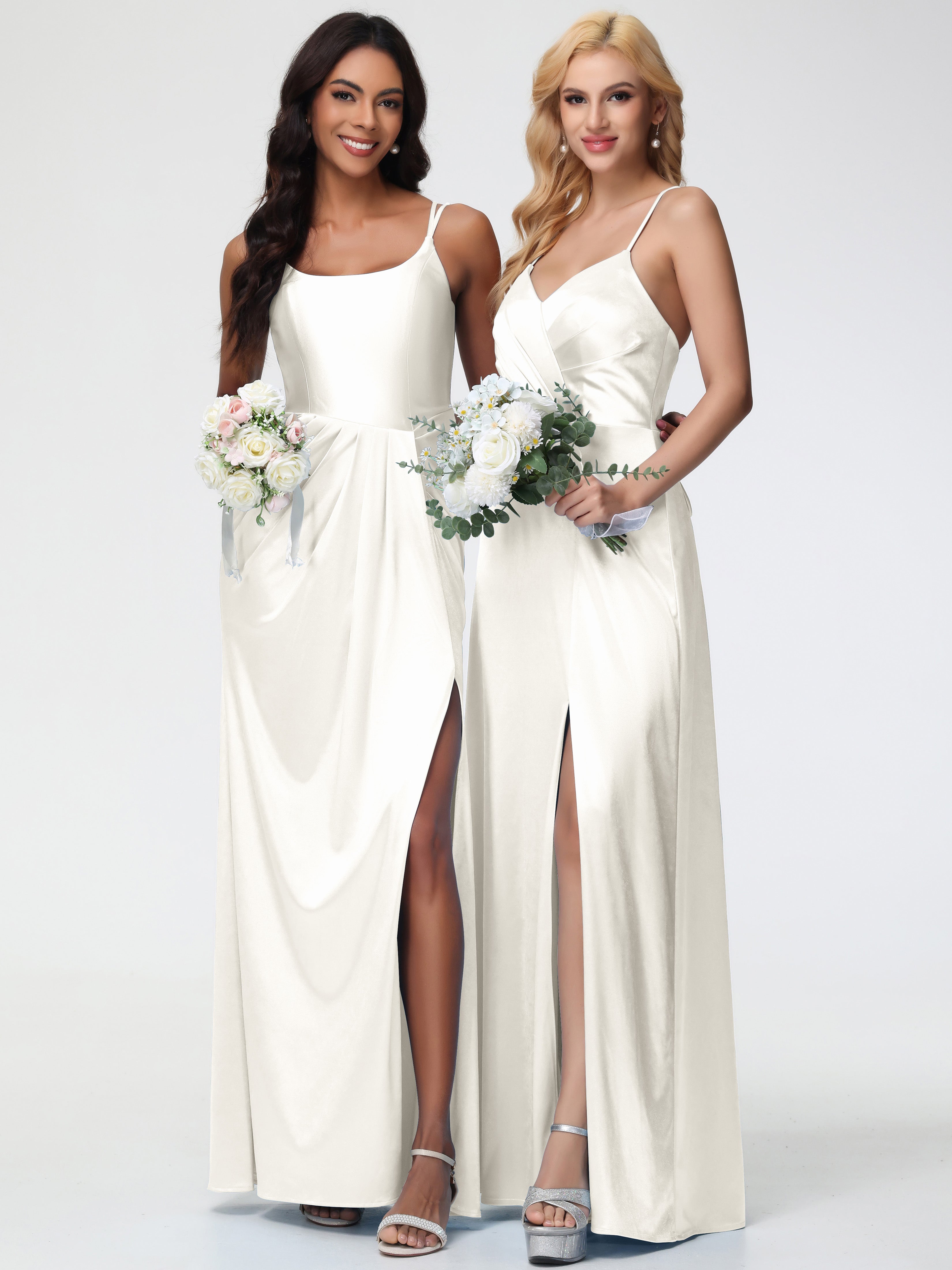 Bridesmaid Dresses Ivory Chic Stretch Satin Sheath/Column Spaghetti Straps Bridesmaid Dress With Slit