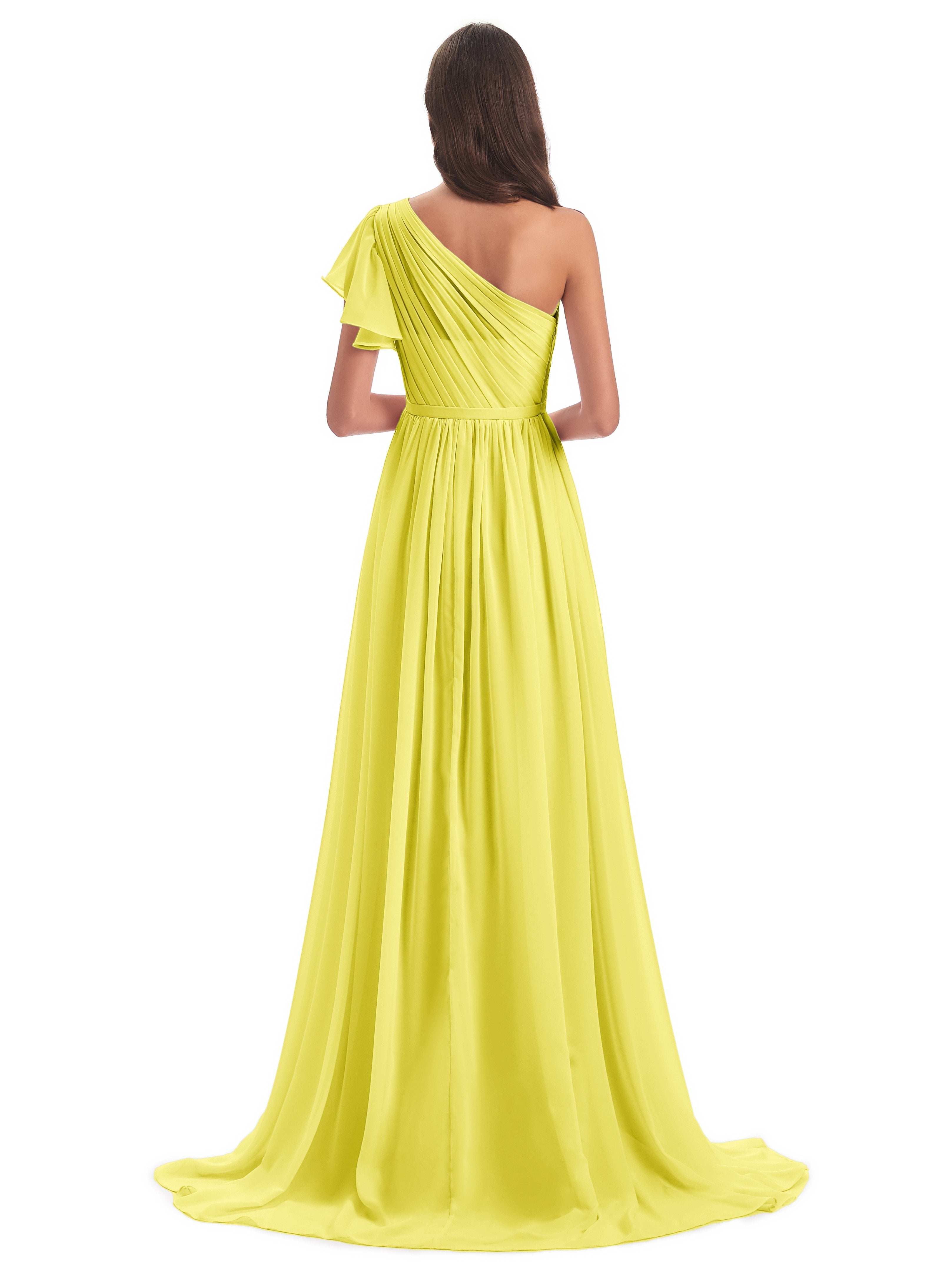 Bridesmaid Dresses Lemon Gemma Vintage Sweep-Brush Train Long Chiffon Bridesmaid Dresses
