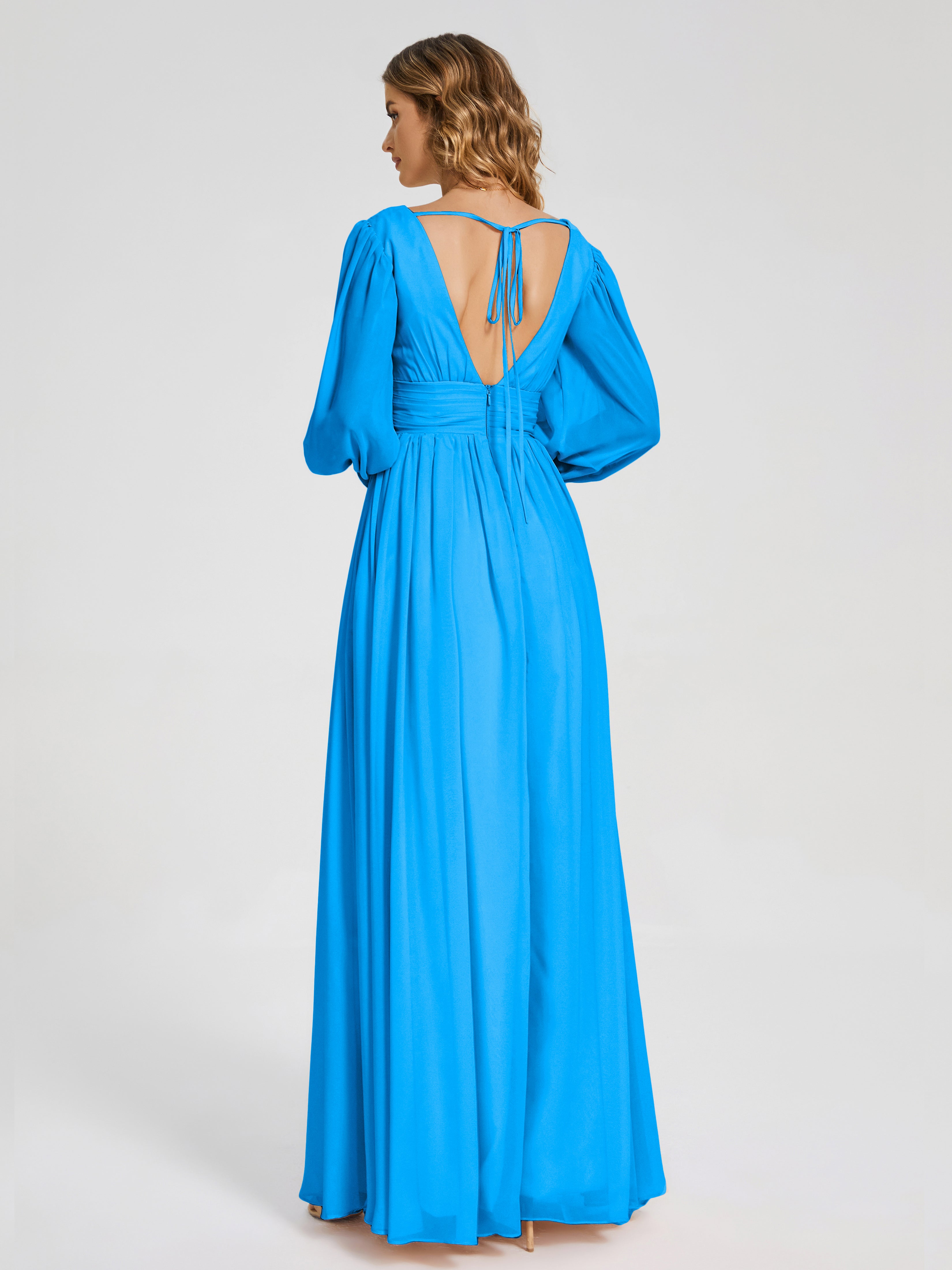 Bridesmaid Dresses Ocean Blue Journey Long Sleeves Split Chiffon Bridesmaid Dresses