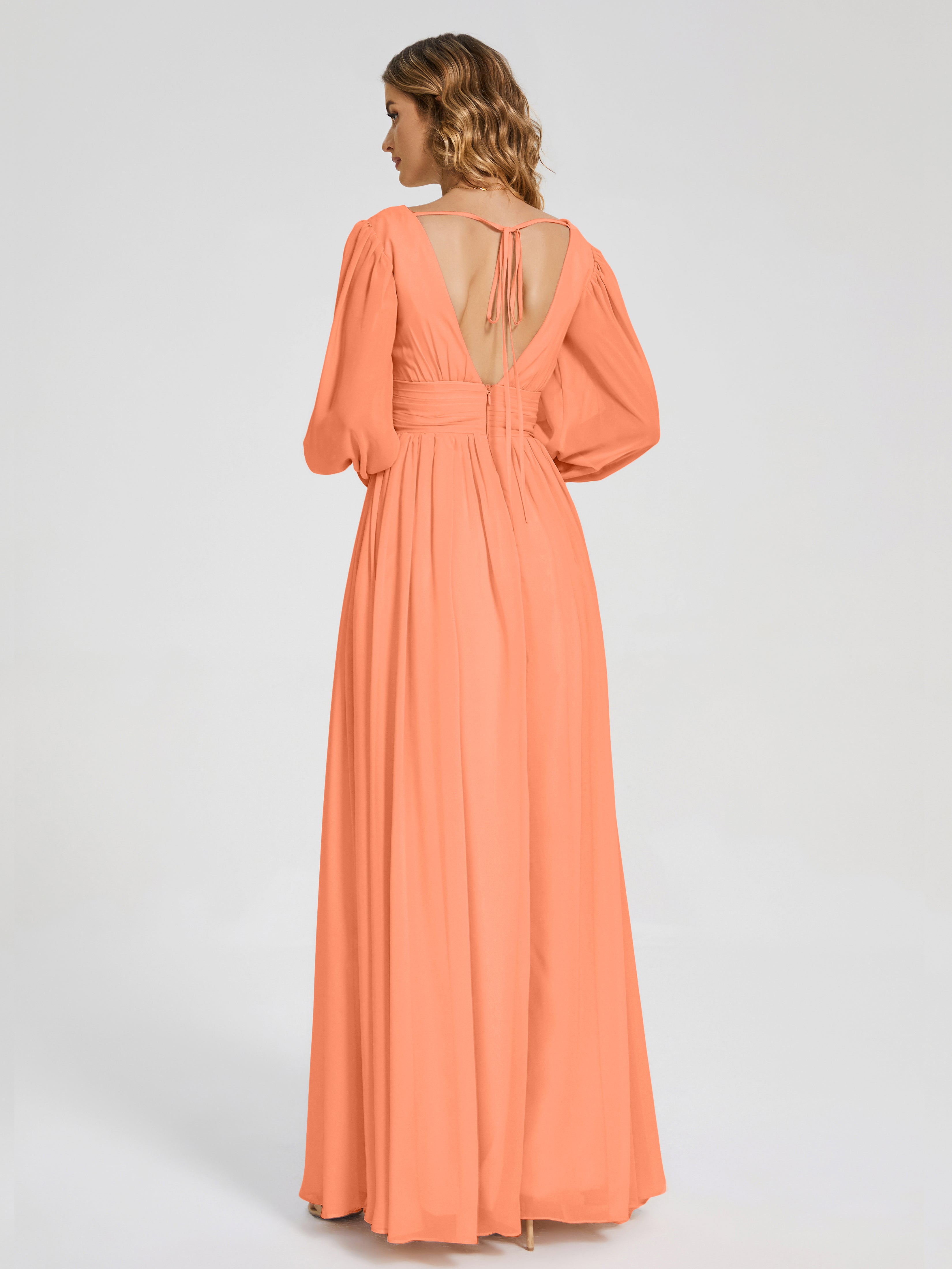 Bridesmaid Dresses Papaya Journey Long Sleeves Split Chiffon Bridesmaid Dresses