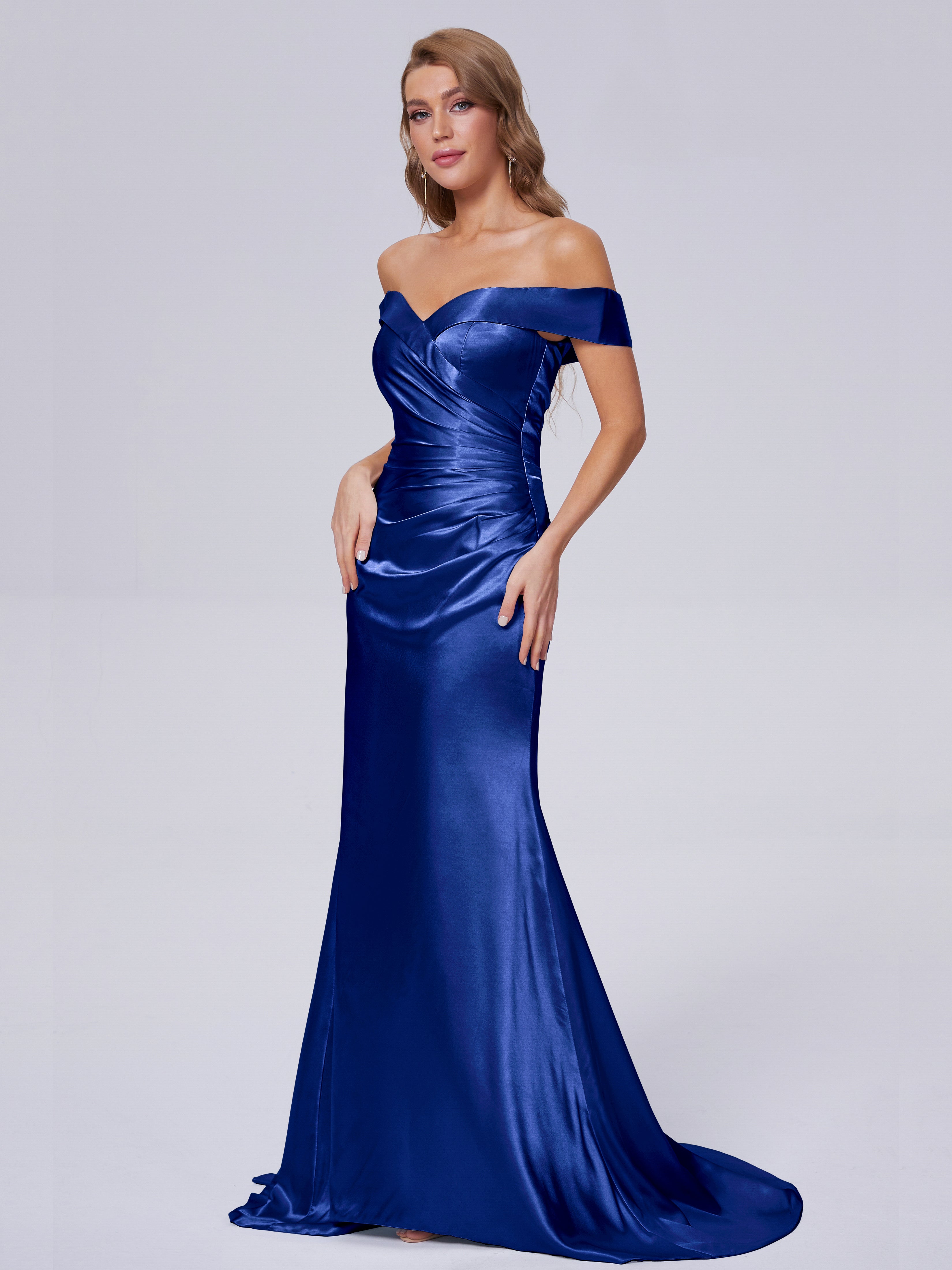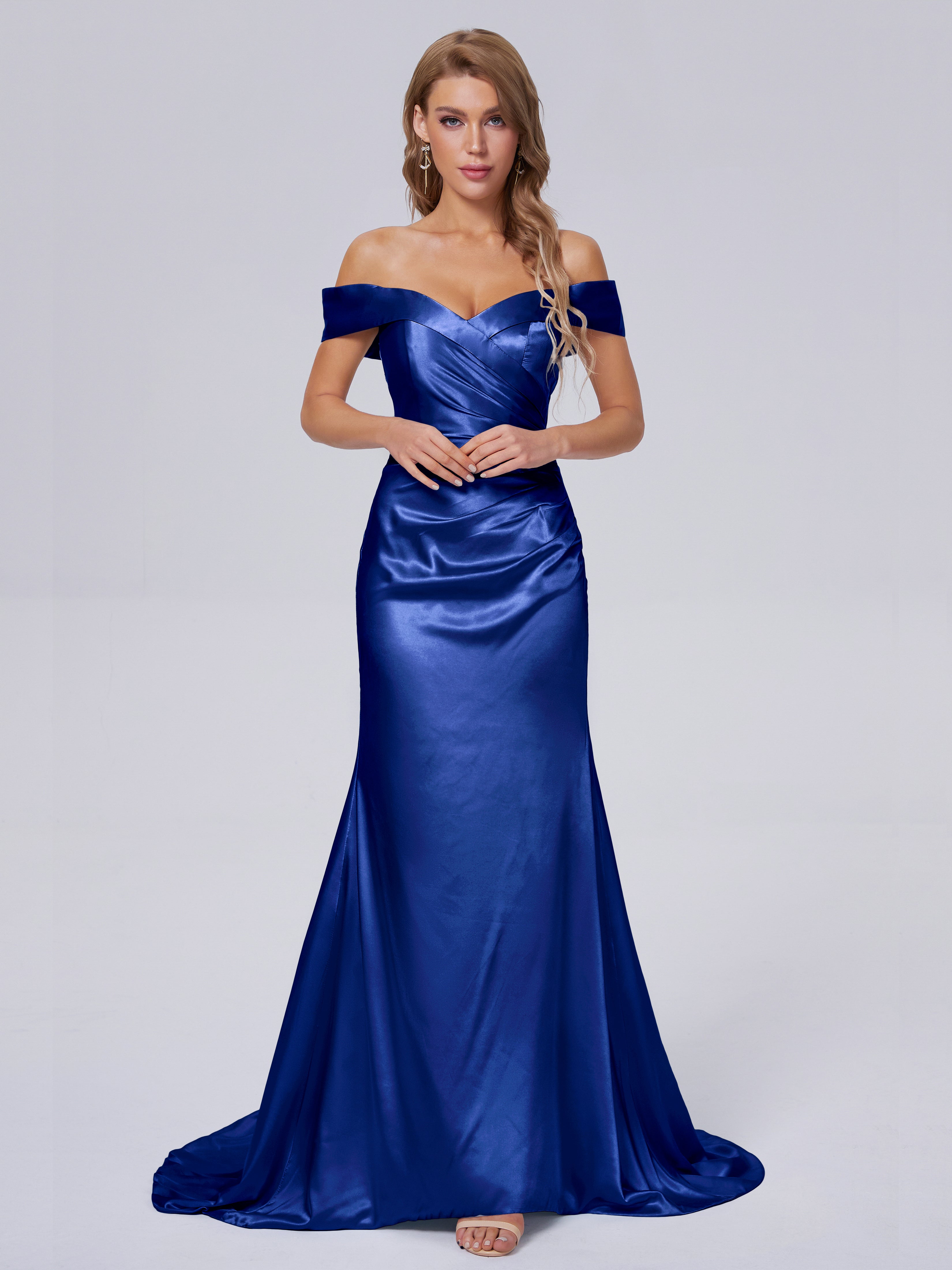 Bridesmaid Navy Blue Dresses For Wedding Hourglass Soft Satin Bridesmaid Dresses Off The Shoulder Long Bridesmaid Dresses