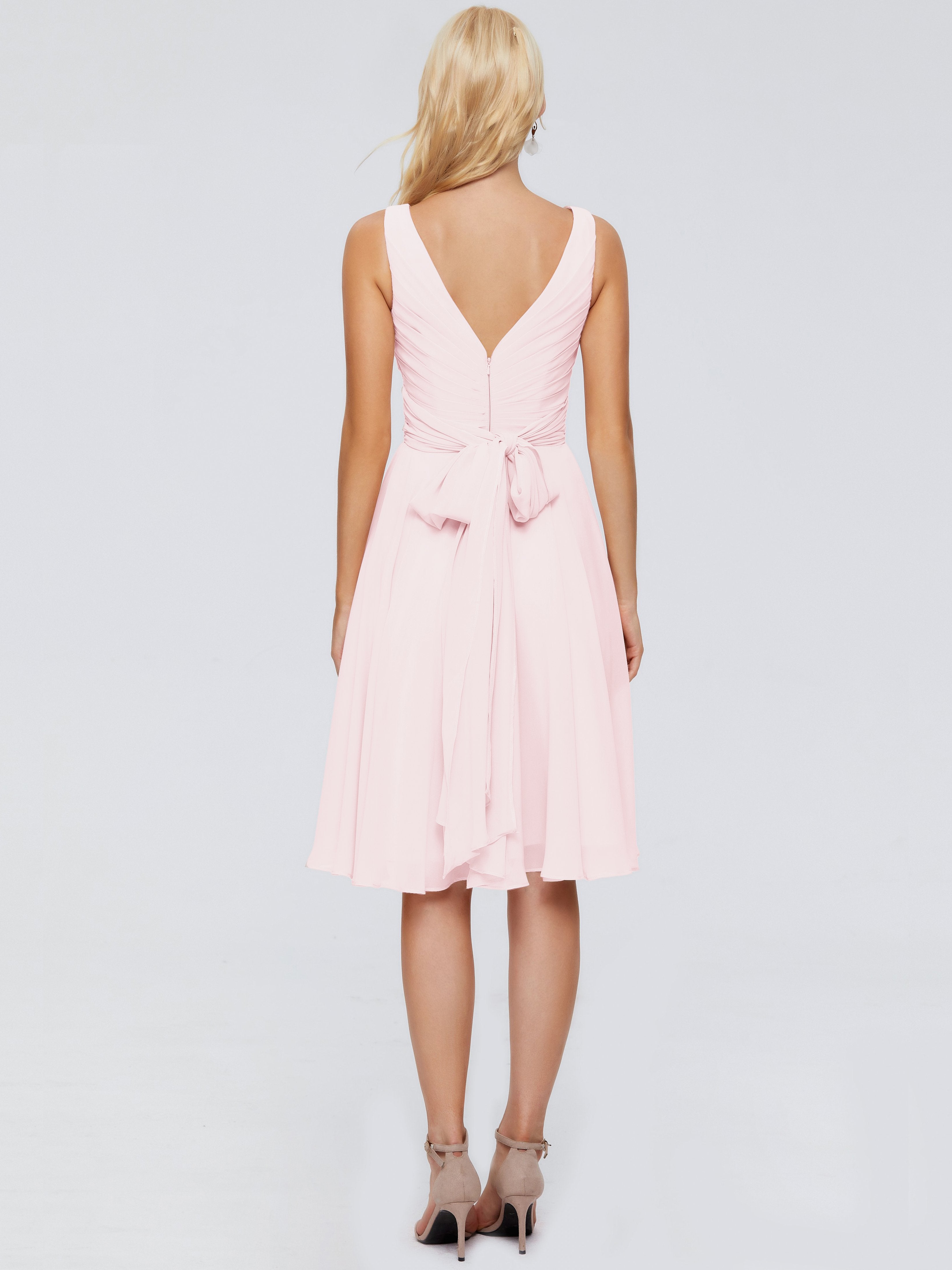 Bridesmaids Dresses Blush Pink Jocelyn Lovely V-Neck Short Chiffon Bridesmaid Dresses