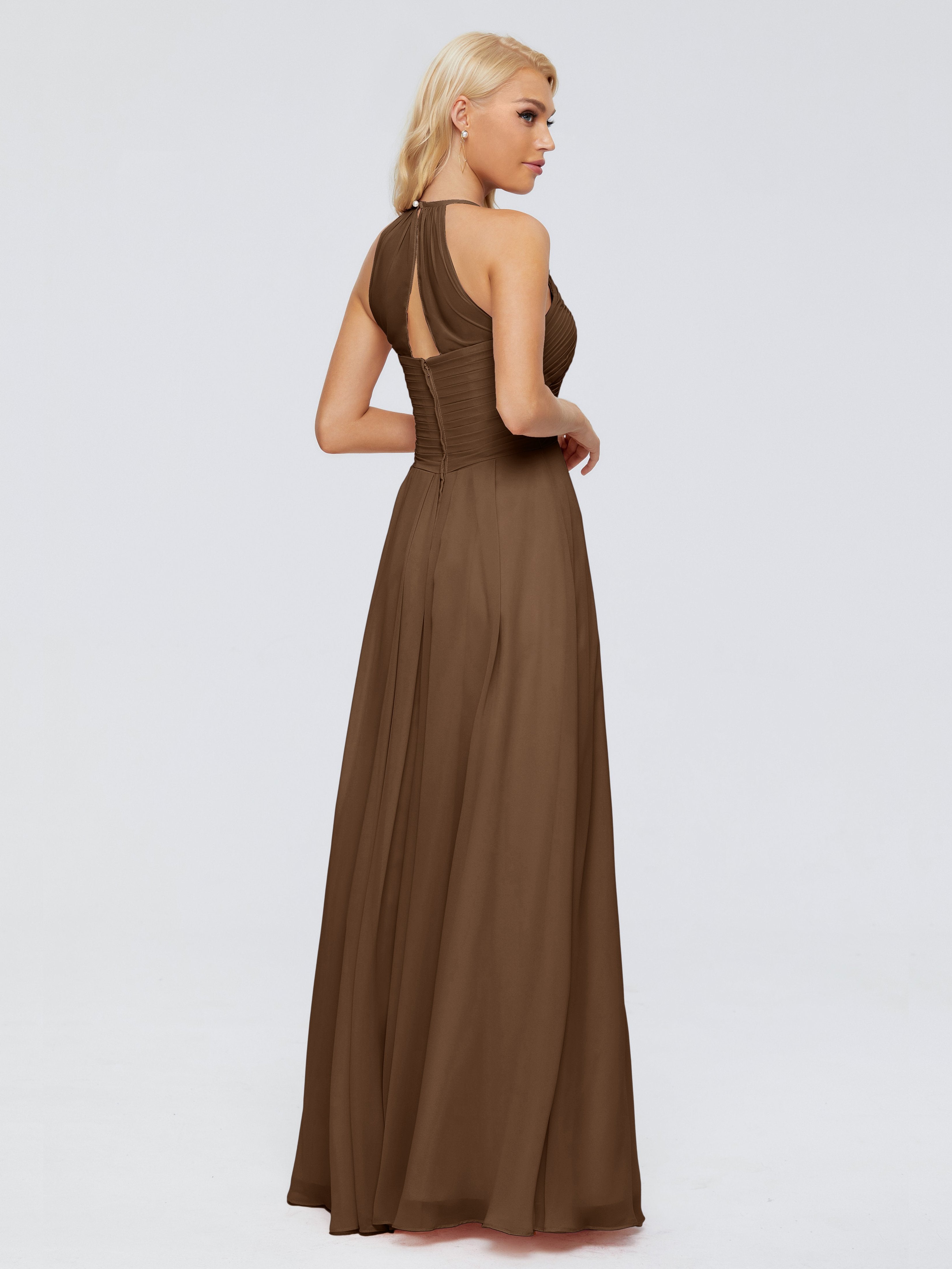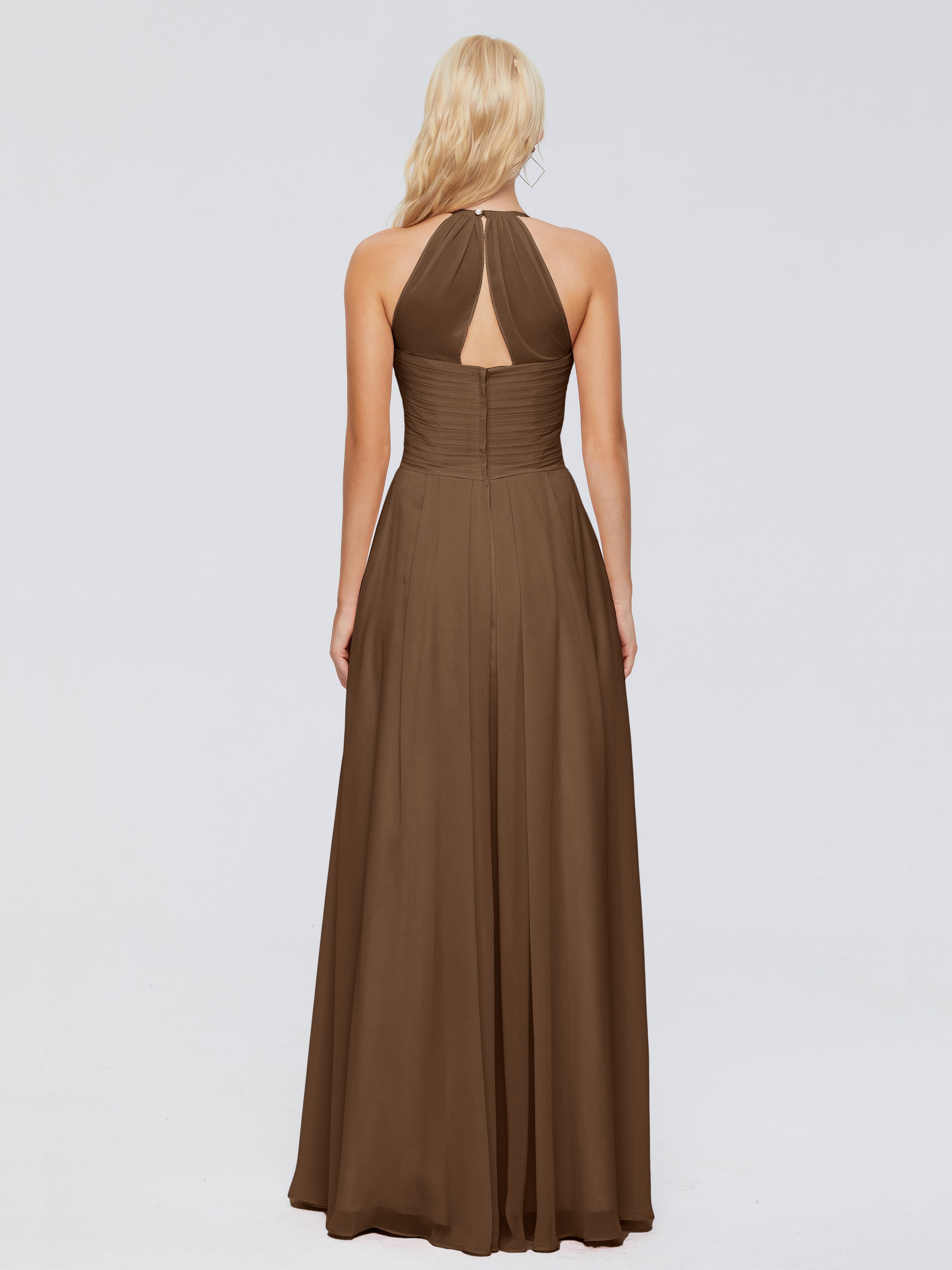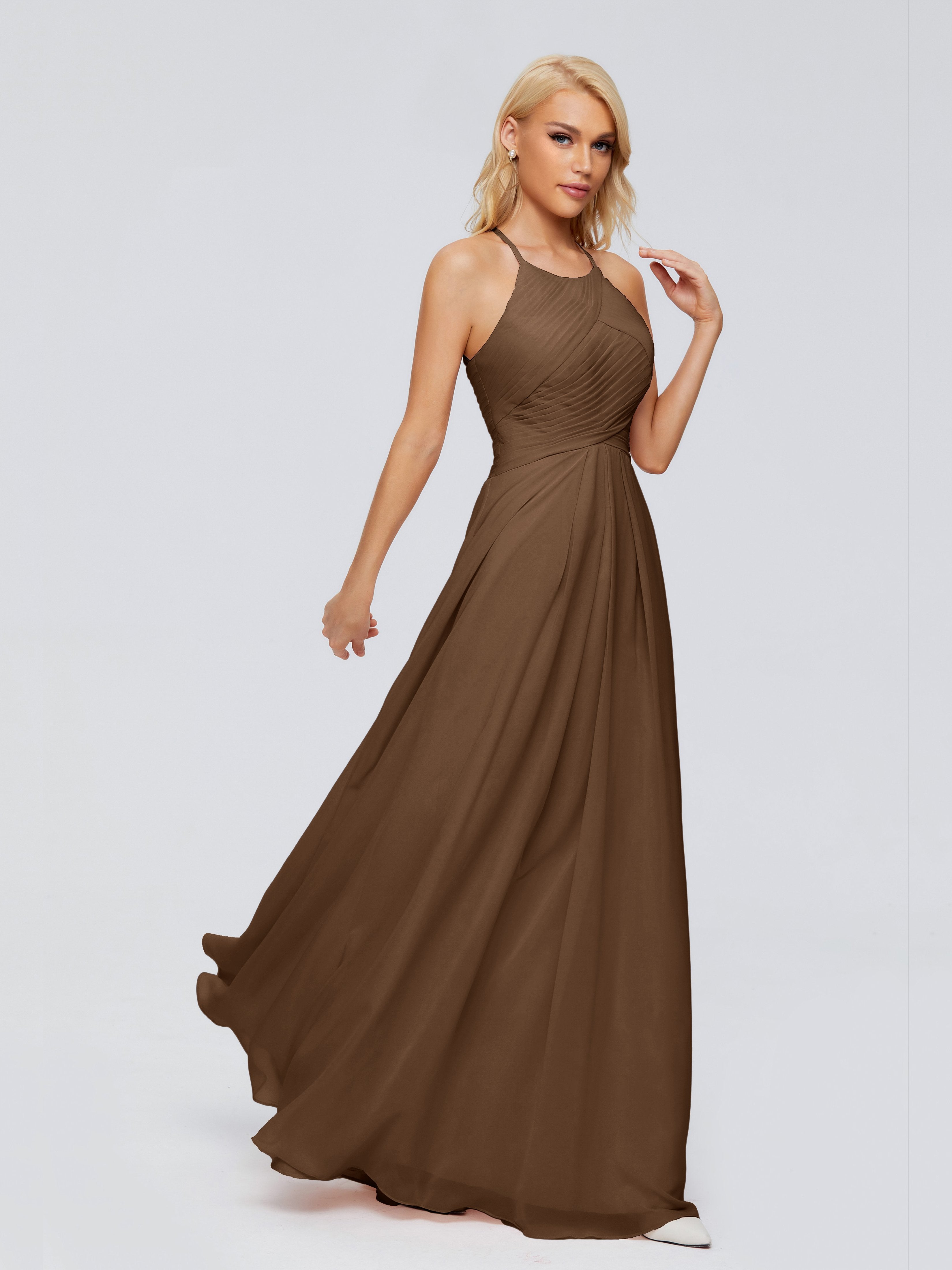 Bridesmaids Dresses Brown Finley Charming Halter Ruched Chiffon Bridesmaid Dresses