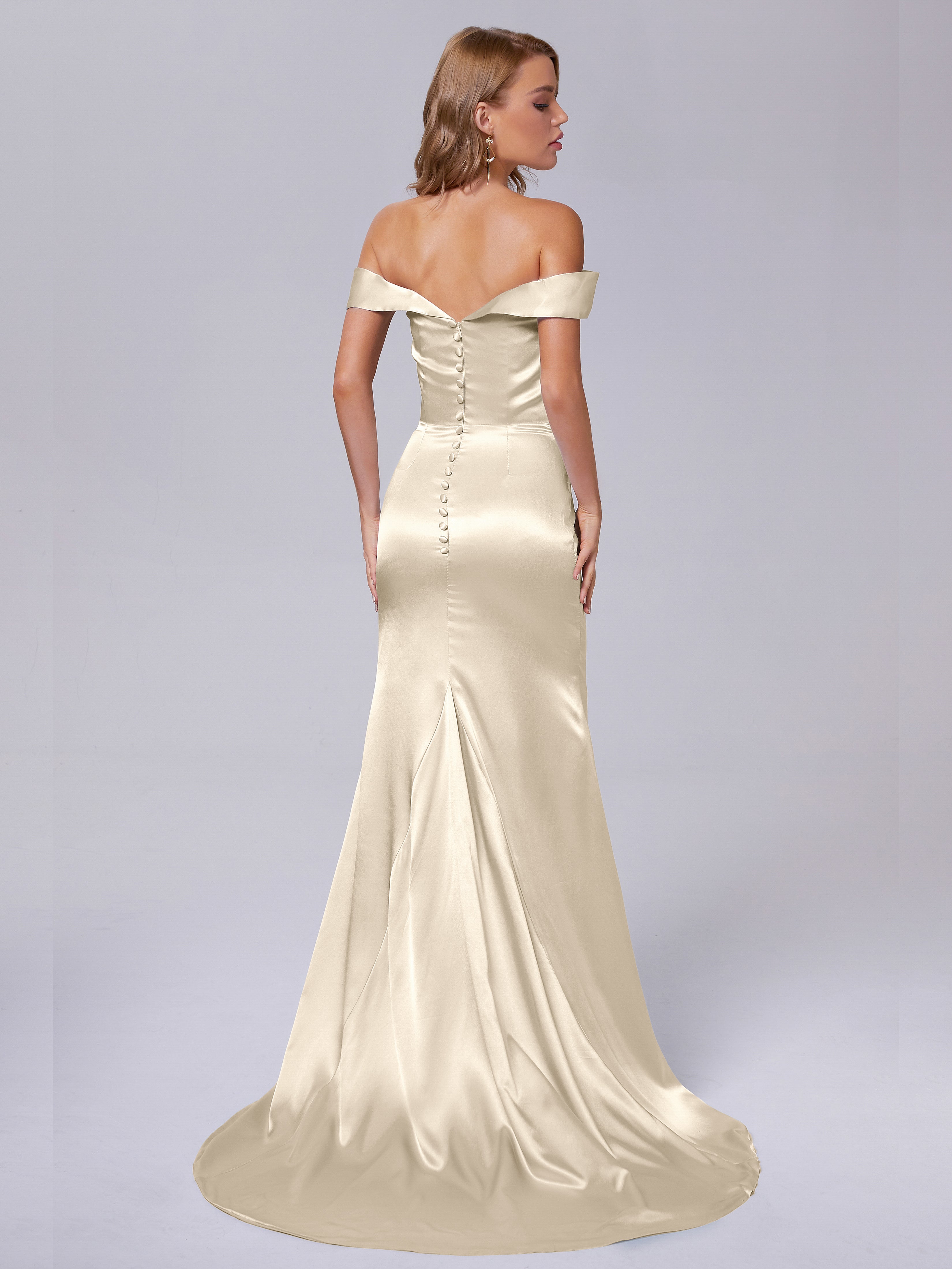 Bridesmaids Dresses In Champagne Hourglass Soft Satin Bridesmaid Dresses Off The Shoulder Bridesmaid Gown