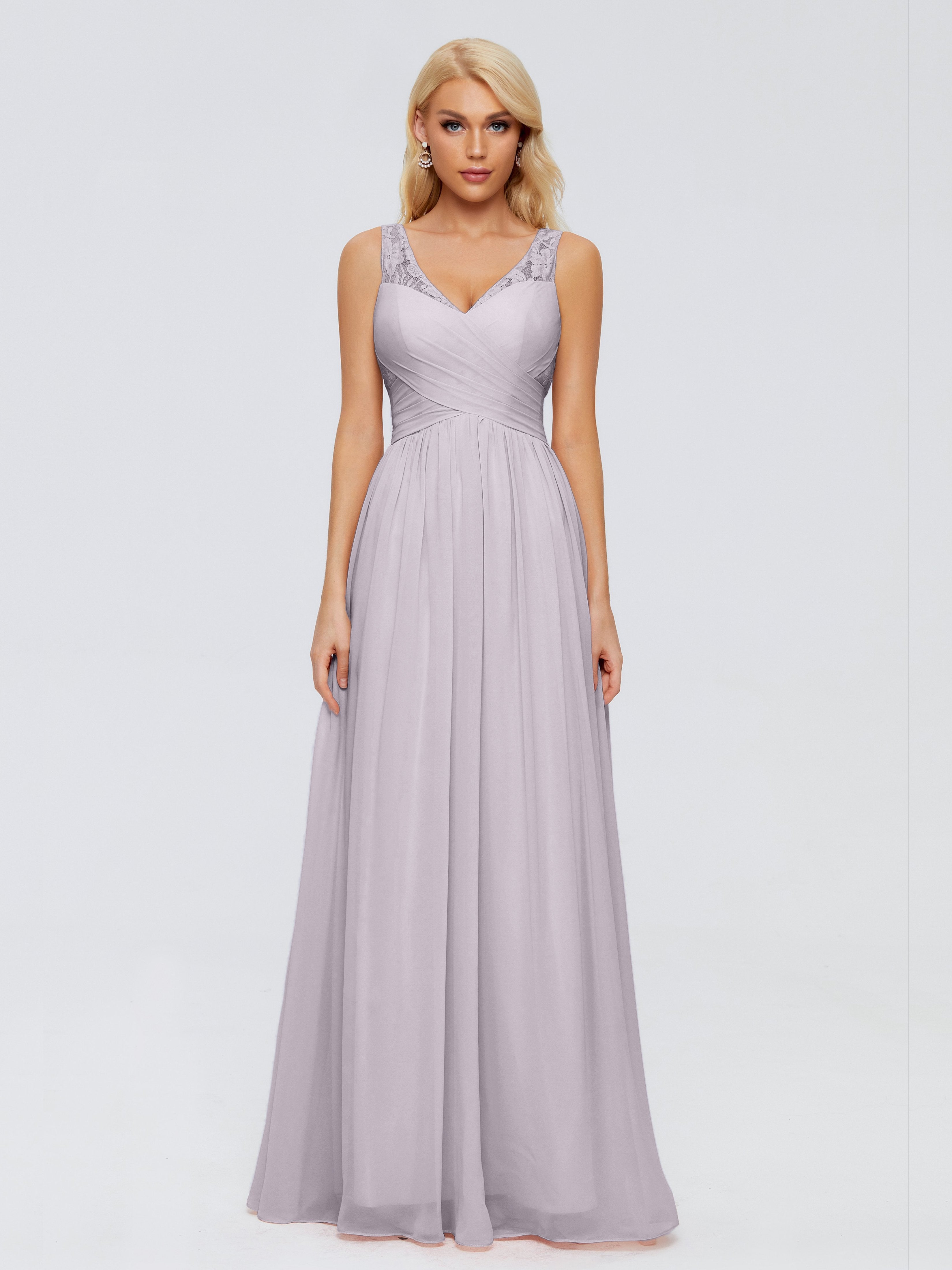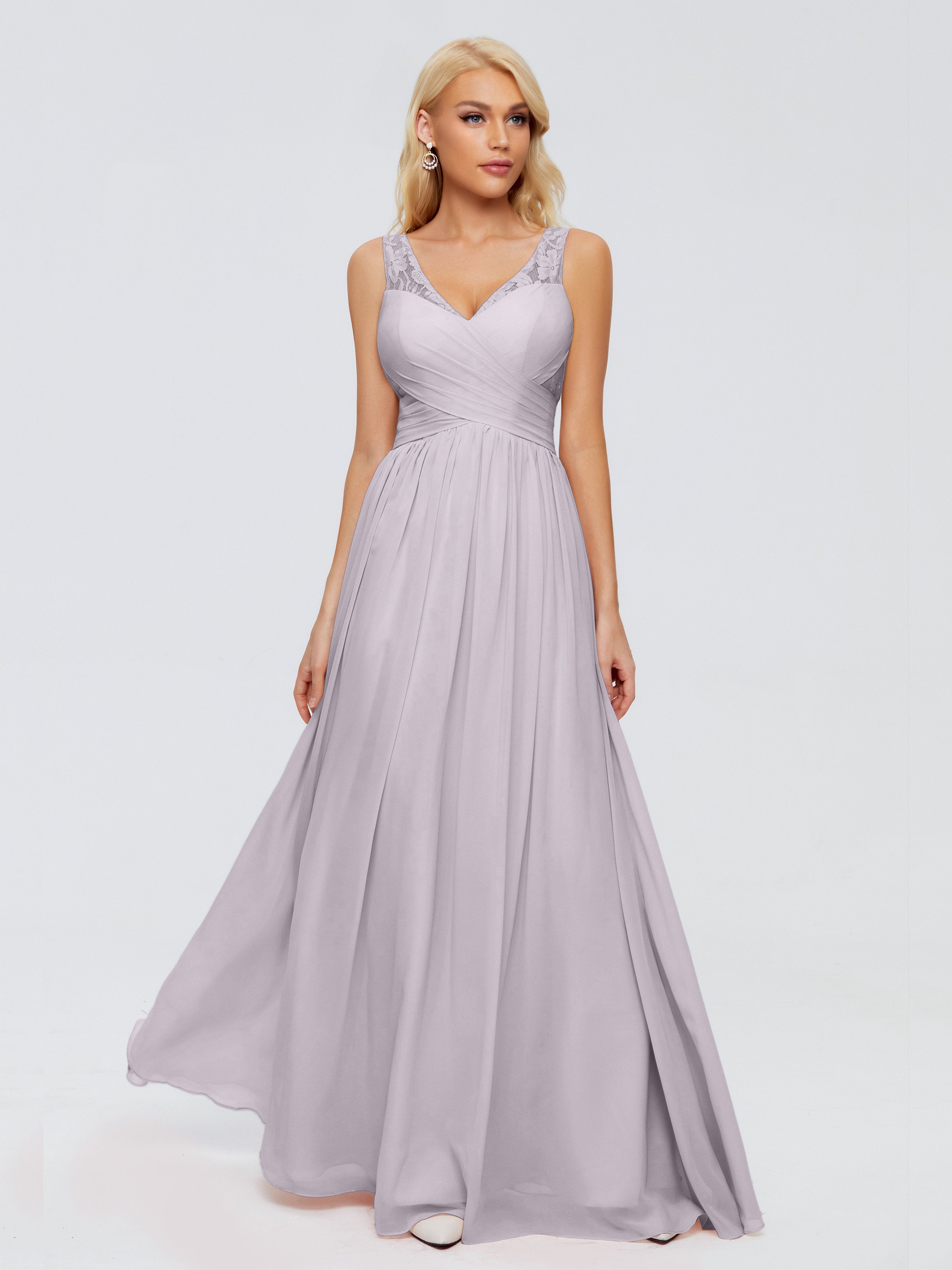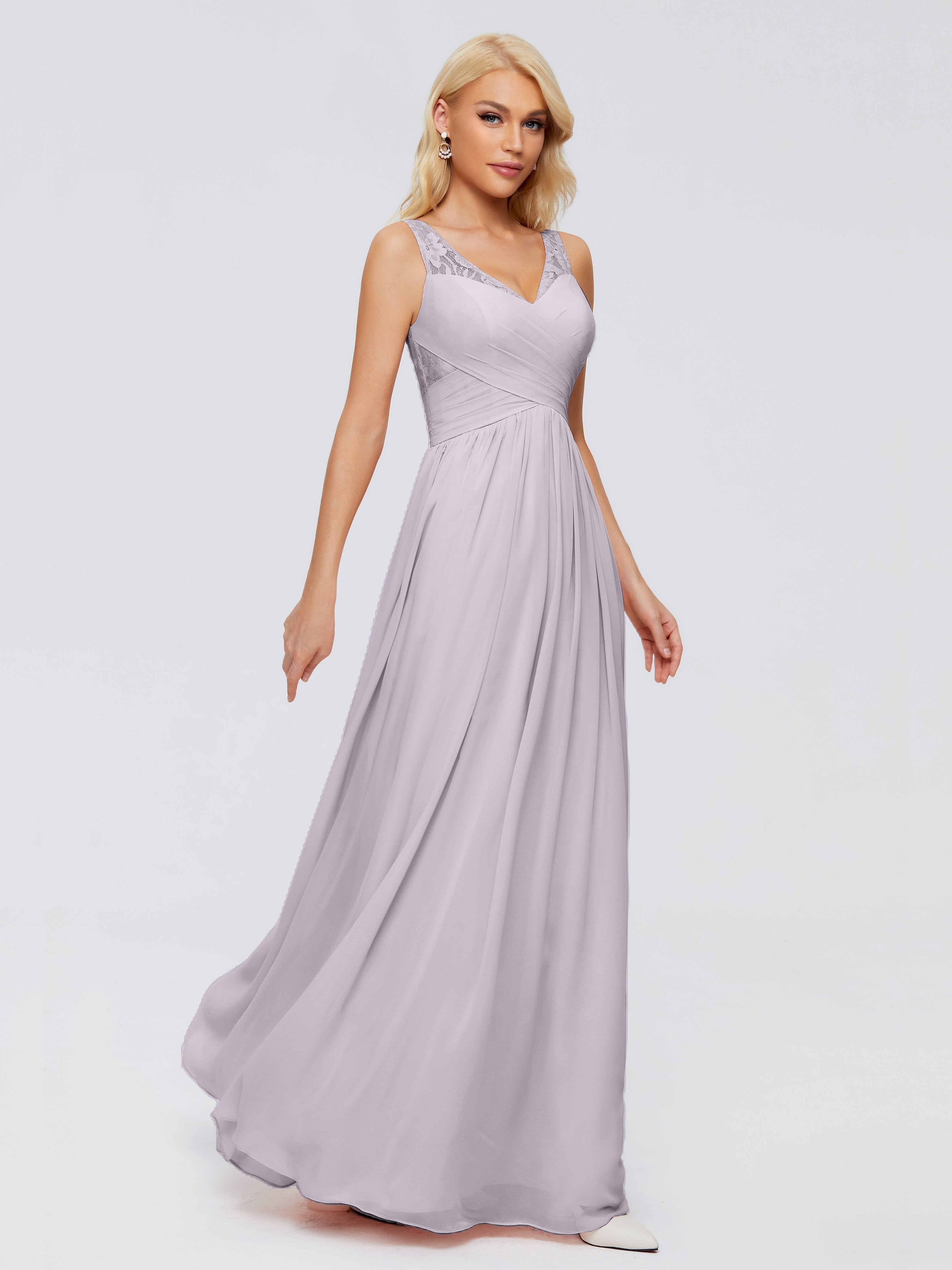 Bridesmaids Dusk Kayla Straps Lace Chiffon Bridesmaid Dresses A Line V Neck Floor Length Bridesmaid Dress