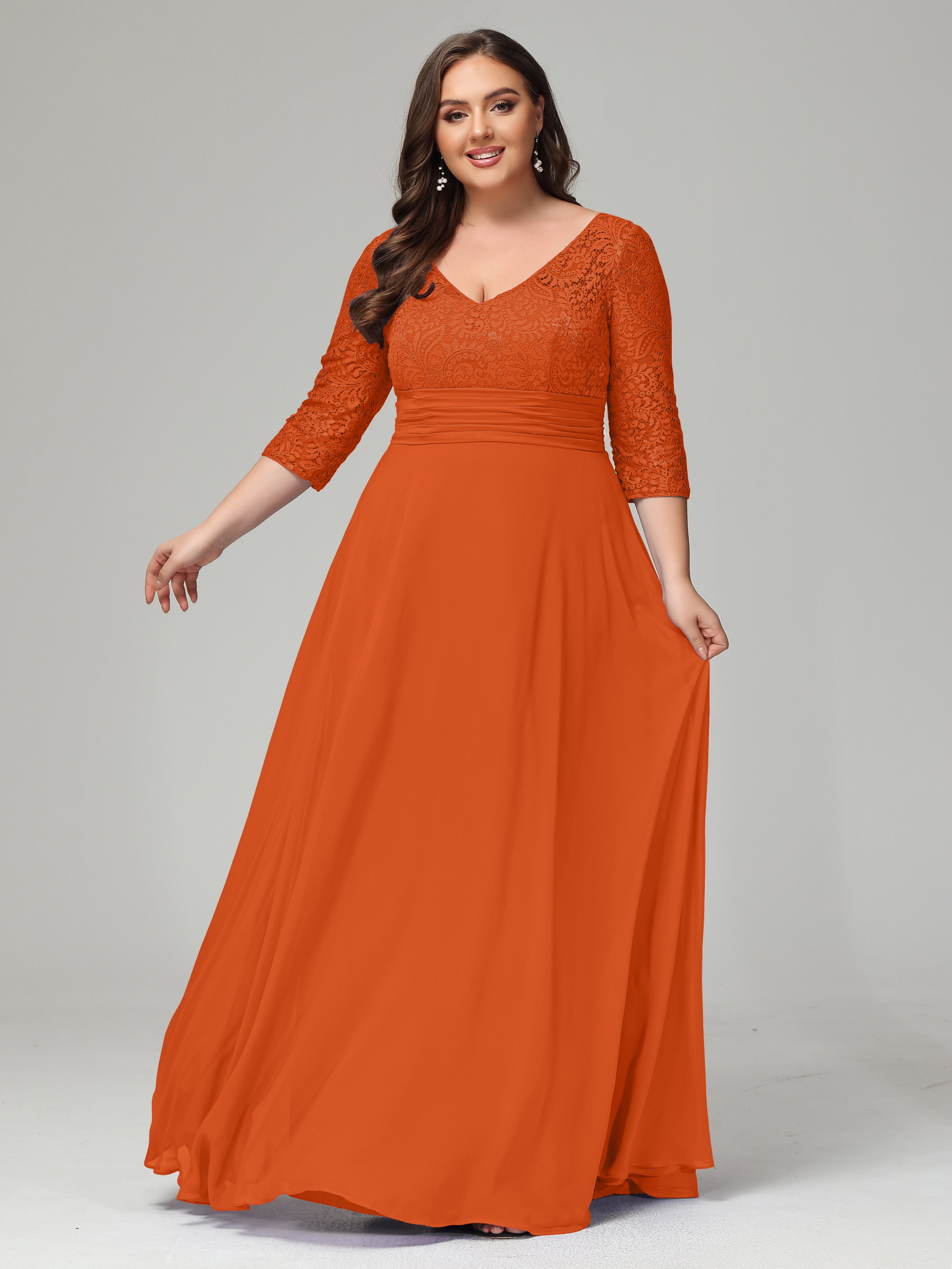 Burnt Orange Bridesmaid Dresses Chiffon Lace Sleeves Floor Length Bridesmaid Dresses