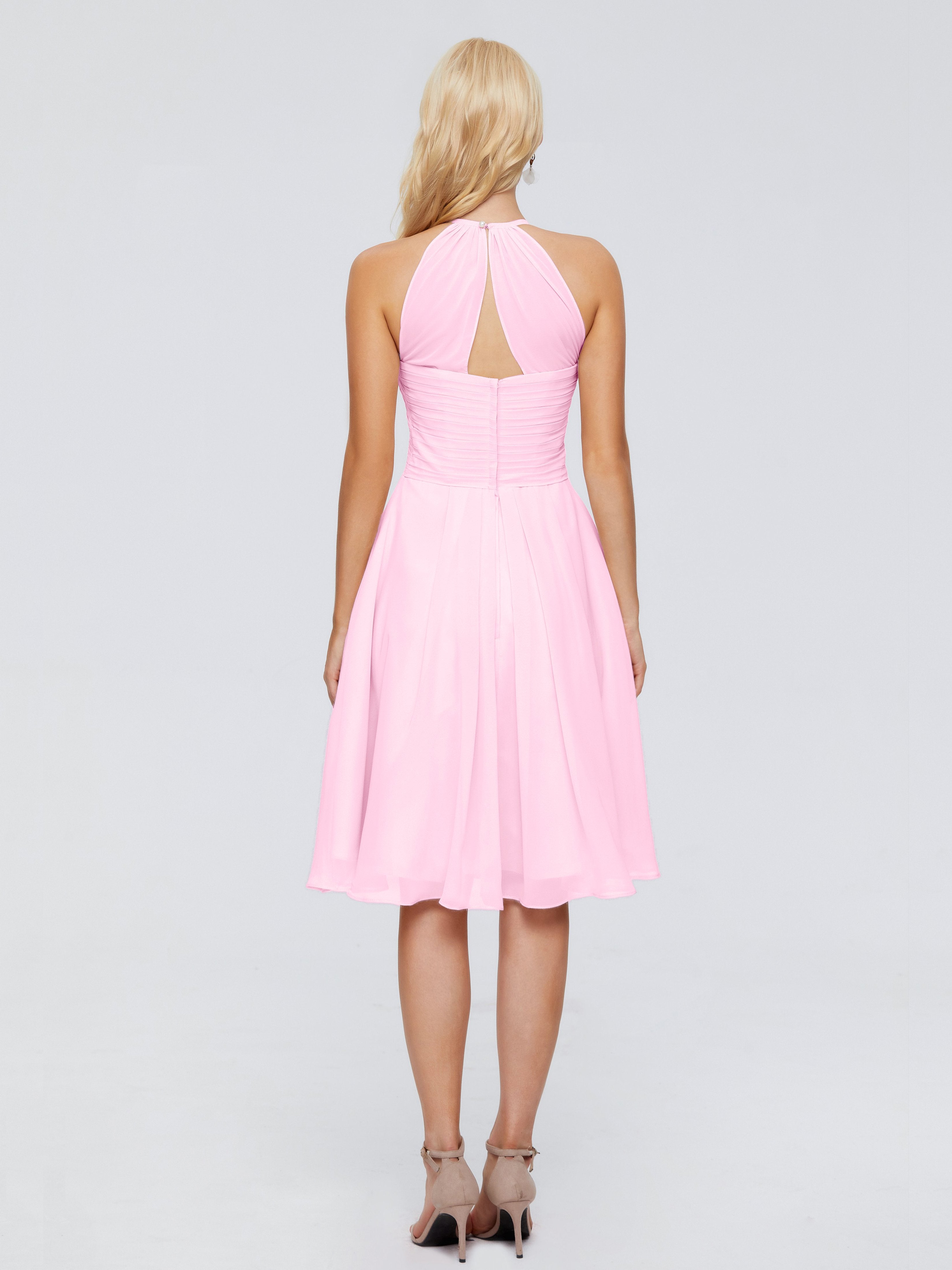 Candy Pink Bridesmaids Dresses Knee Length Bridesmaid Dresses Chiffon Halter Bridesmaid Dresses