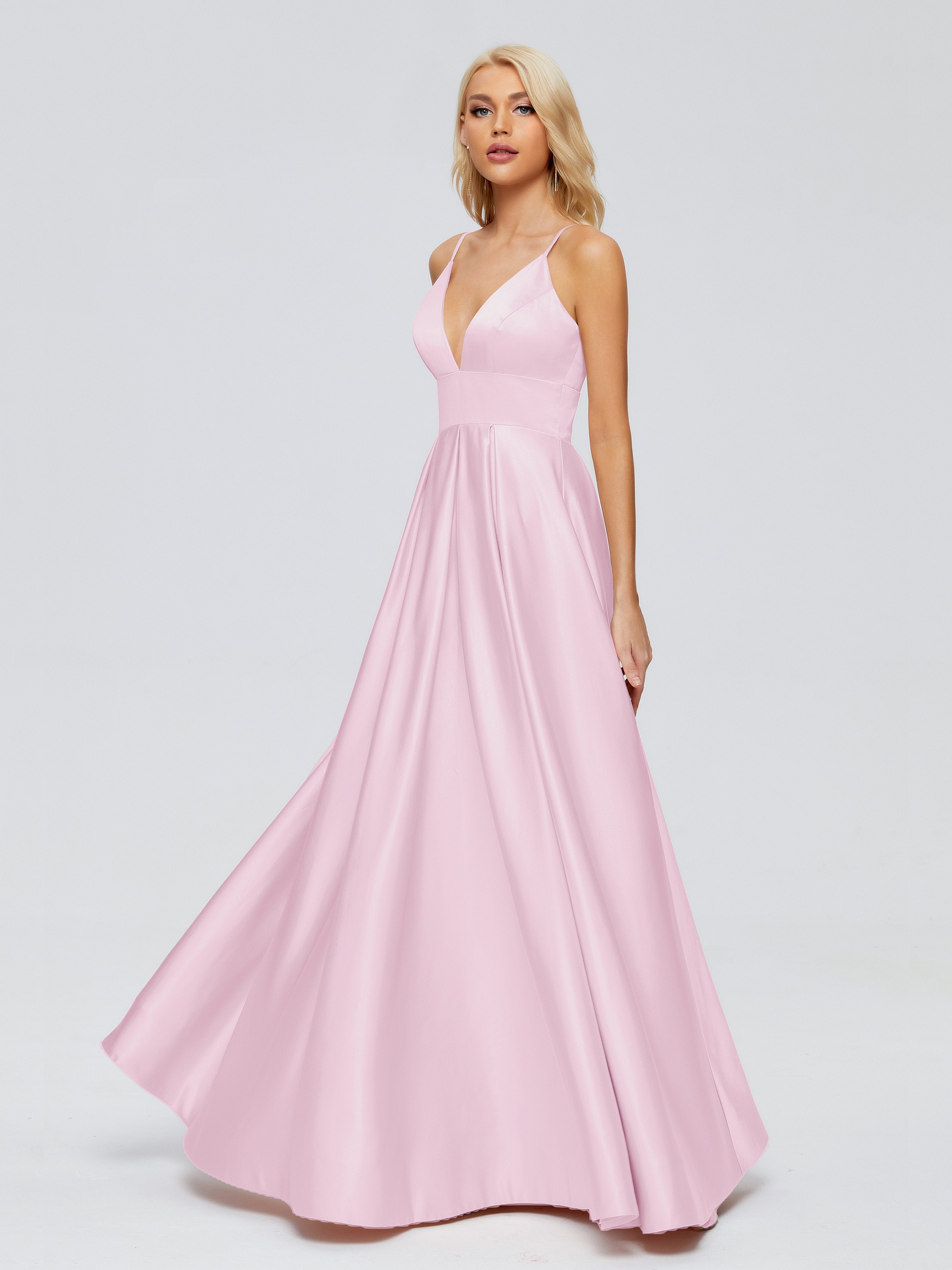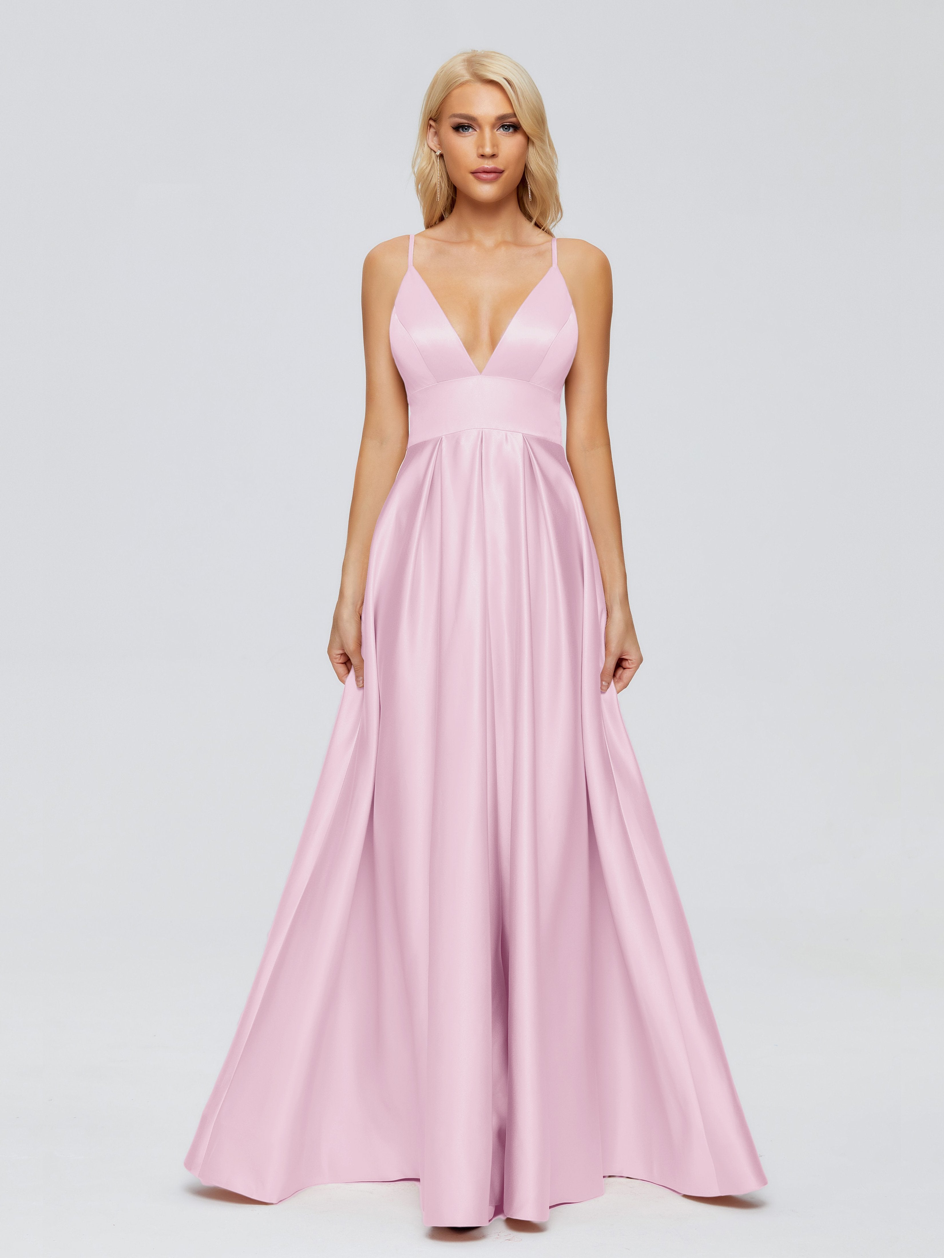 Candy Pink Bridesmaids Dresses Spaghetti Straps Satin Long Bridesmaid Dresses