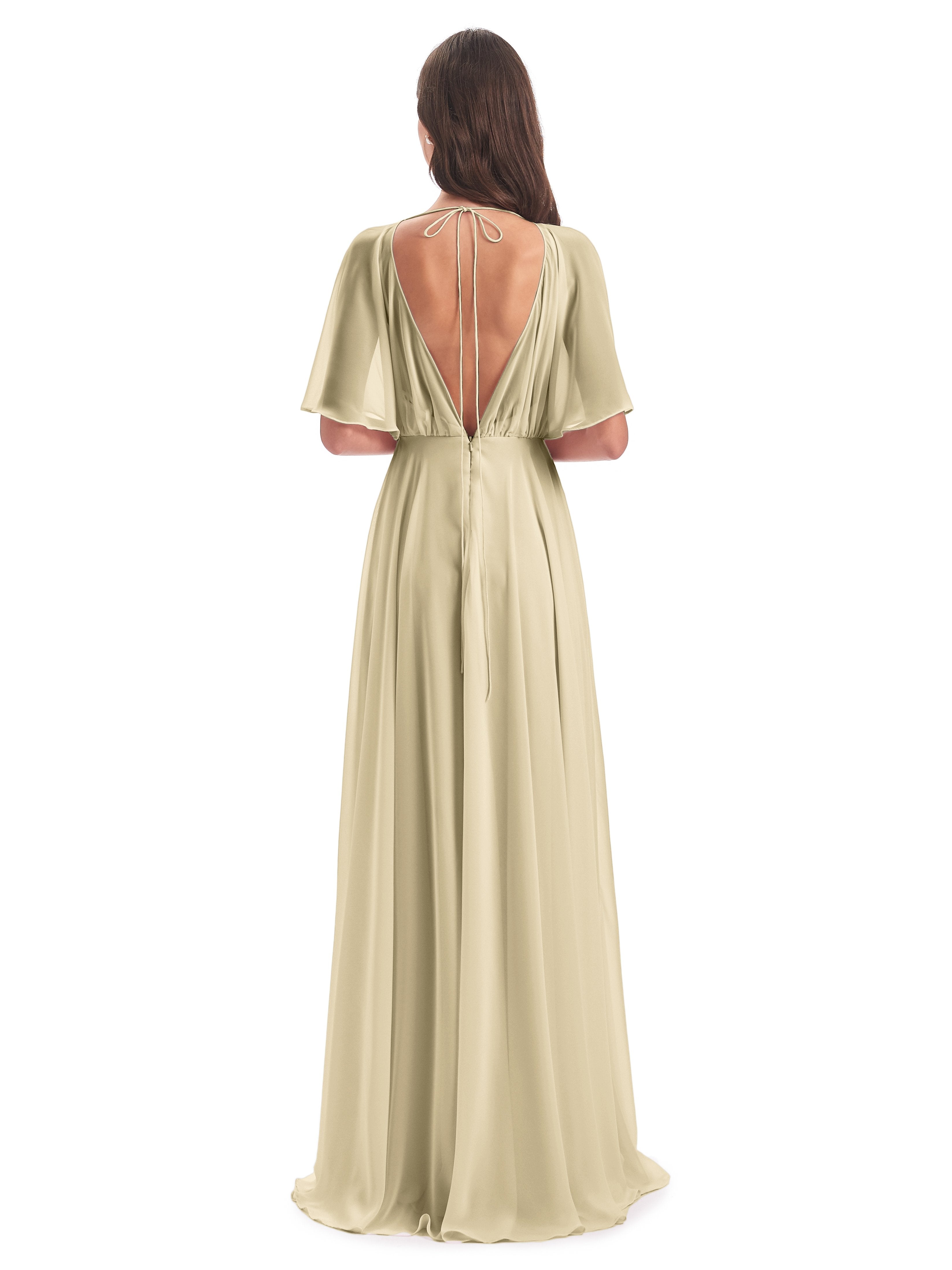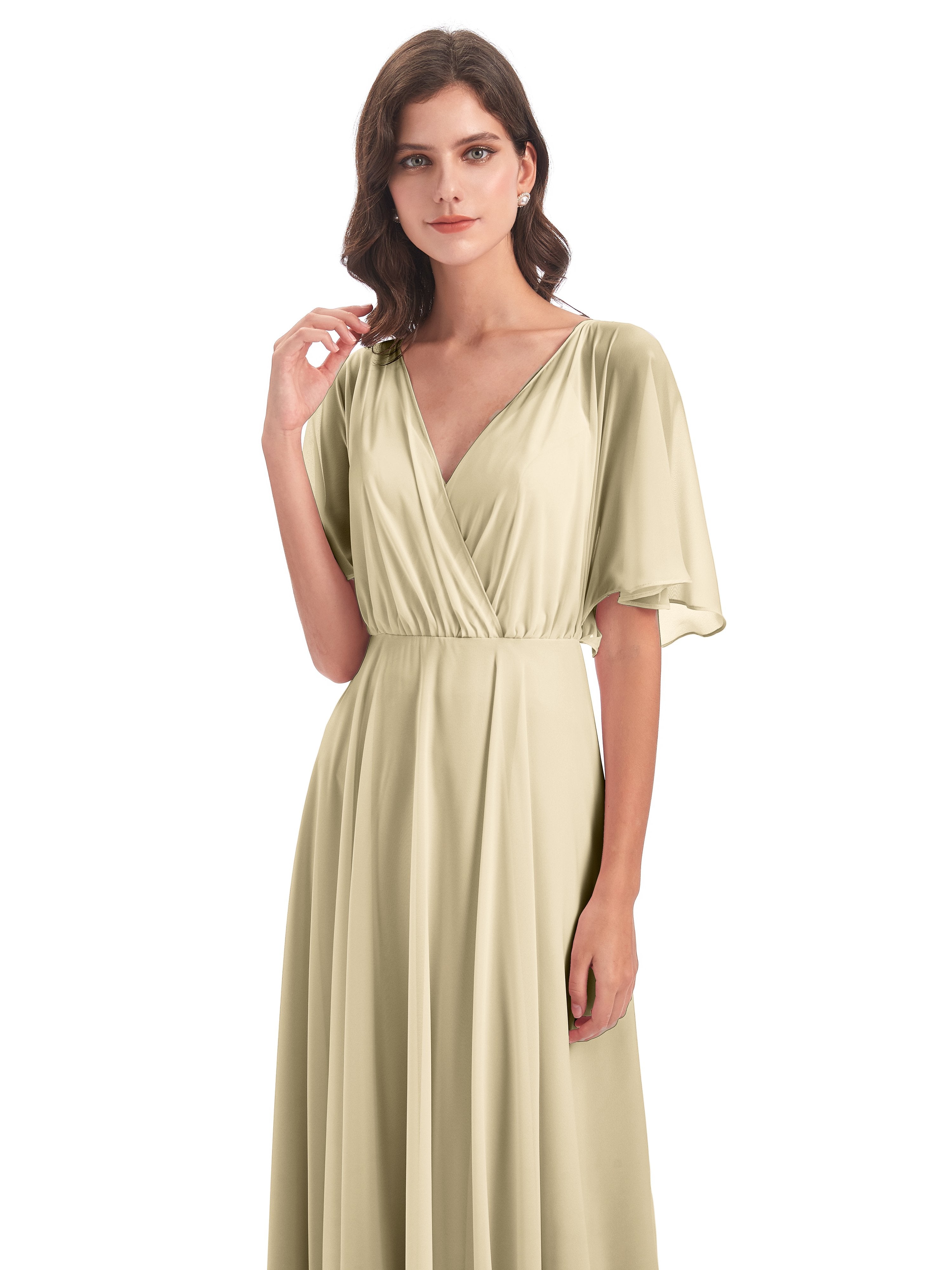 Champagne Gold Bridesmaid Dress Ada Casual Chiffon A-Line Short Sleeves Long Chiffon Bridesmaid Dresses