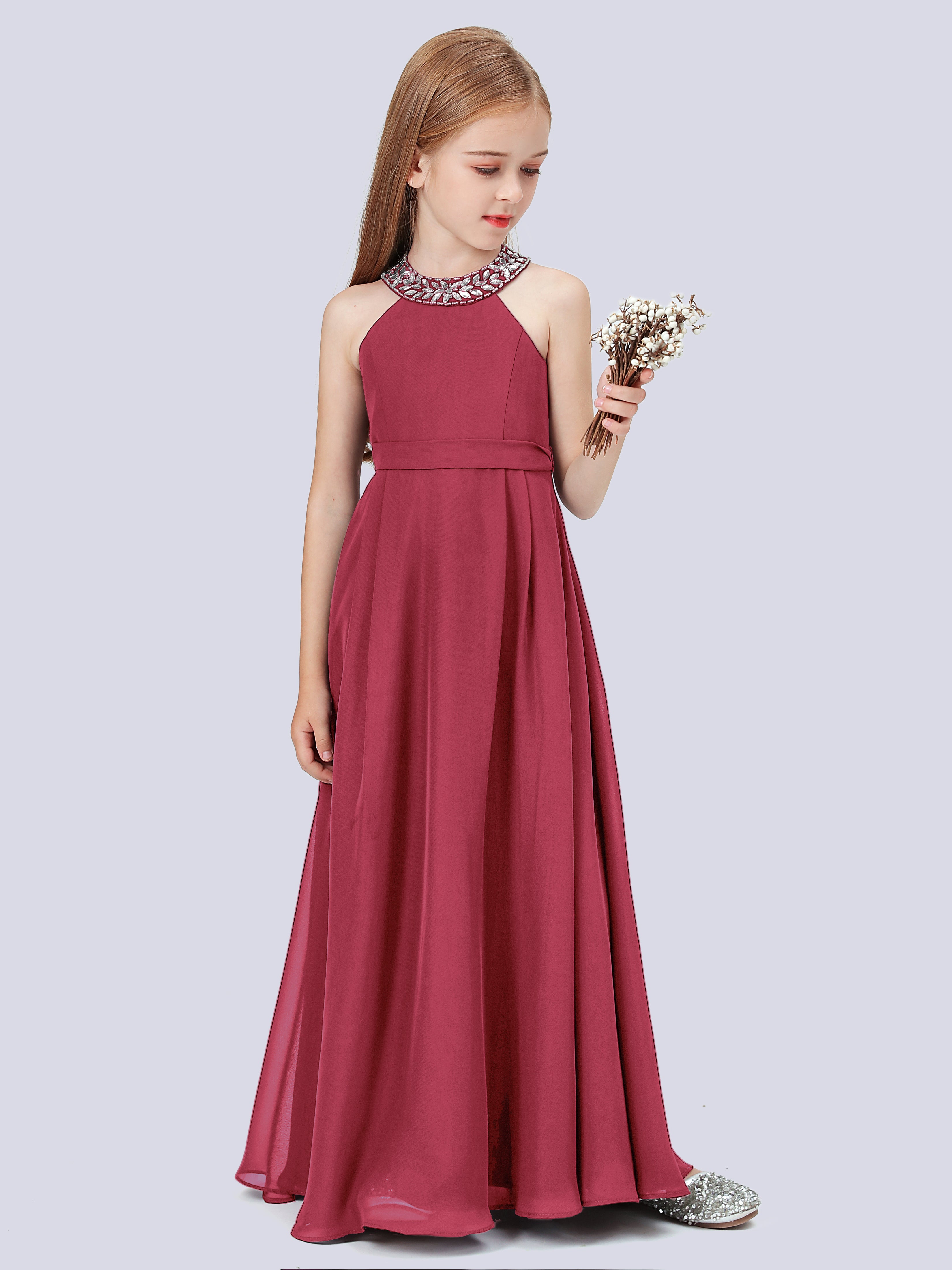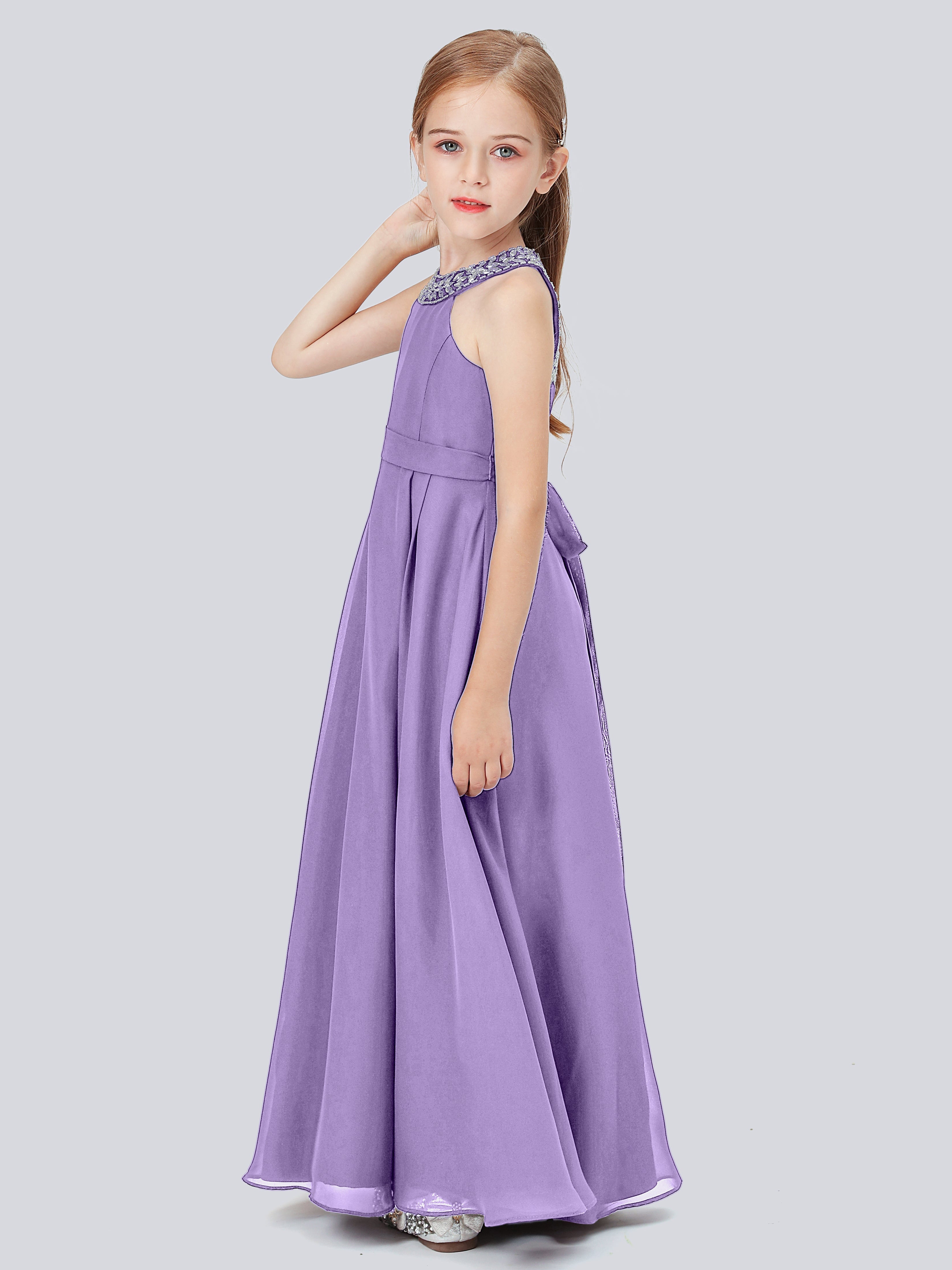 Chiffon Junior Bridesmaid Dress with Beaded Neckline