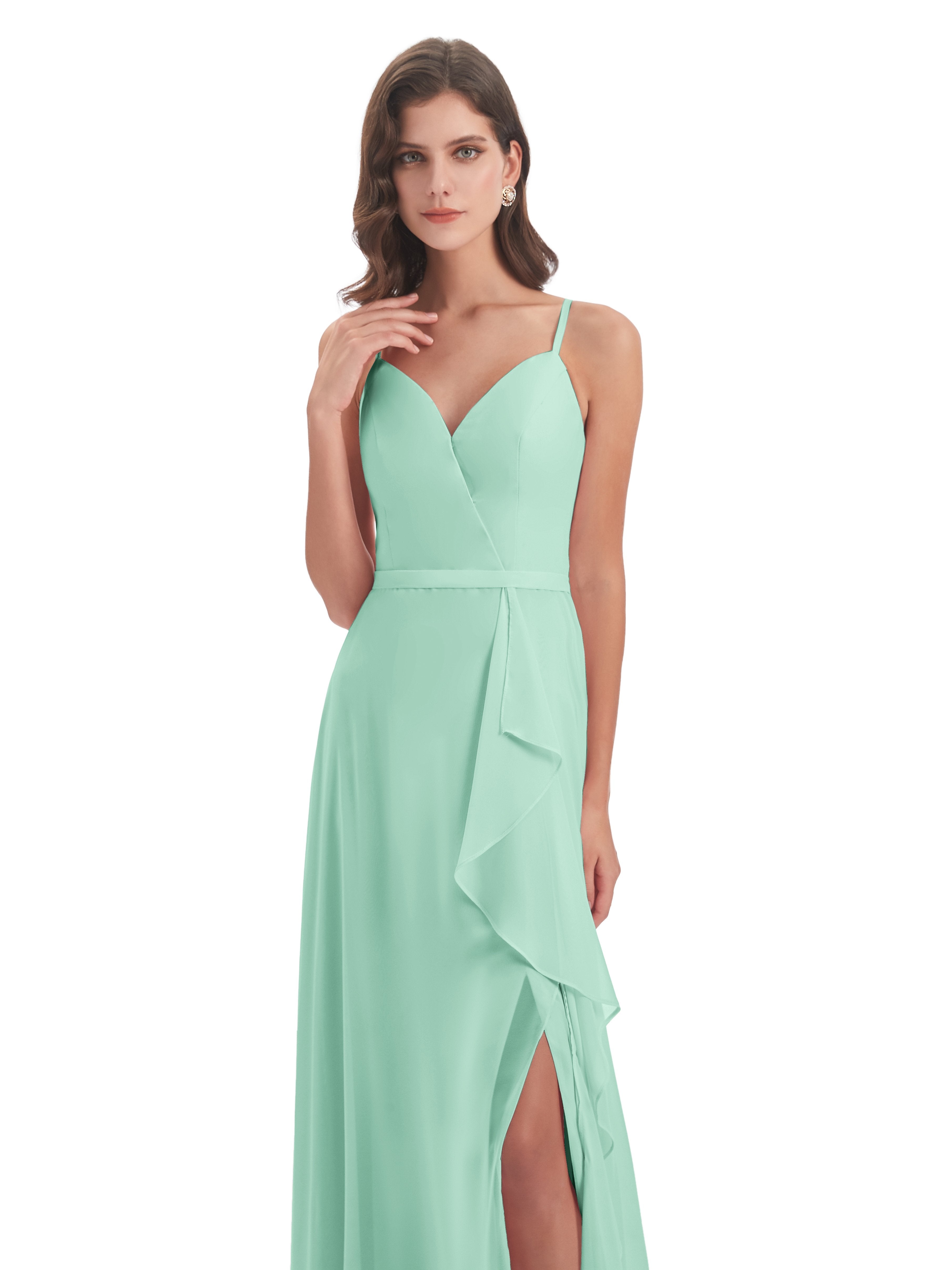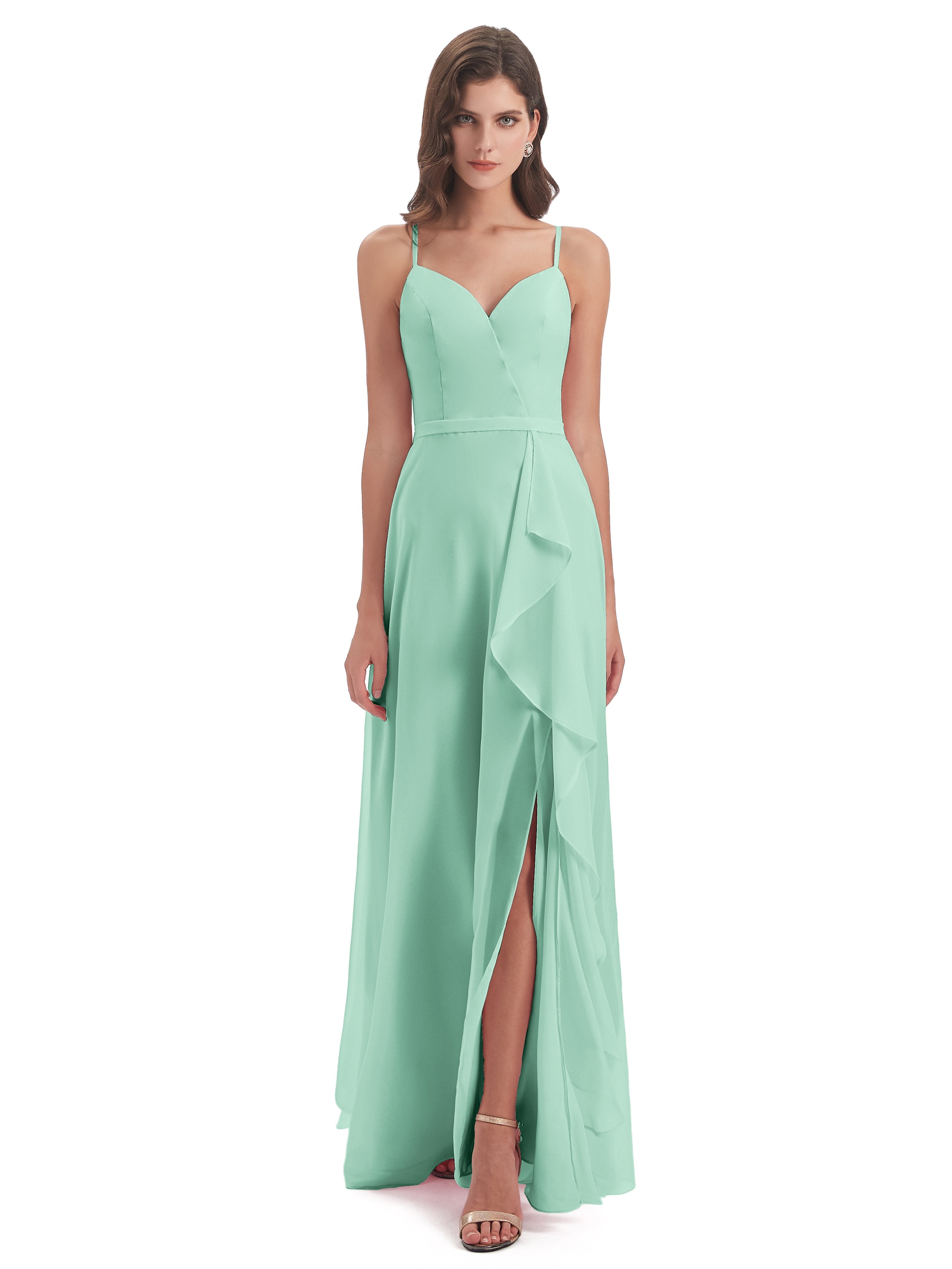 Chiffon Mint Green Bridesmaid Dresses Chiffon Spaghetti Straps Long Bridesmaid Dresses
