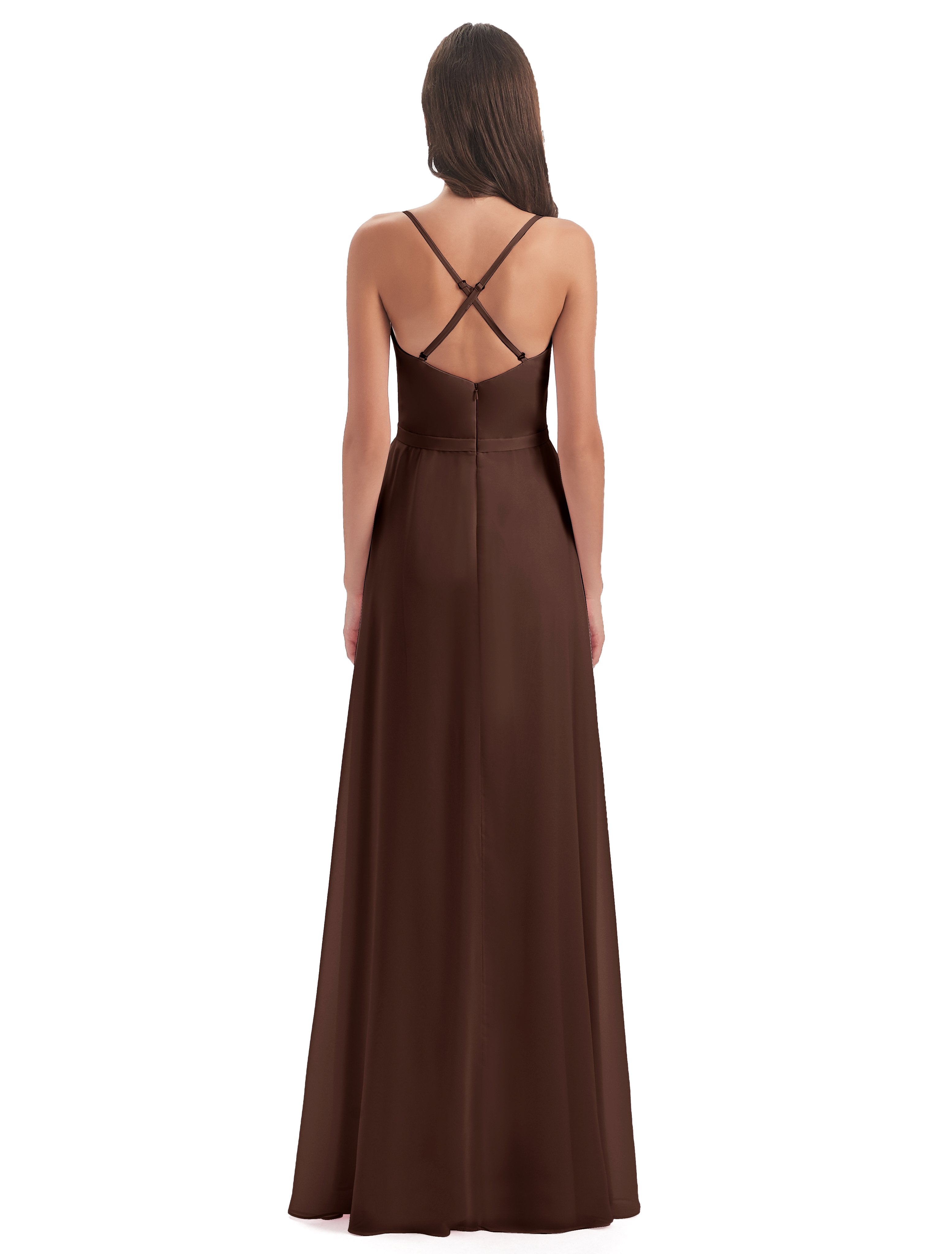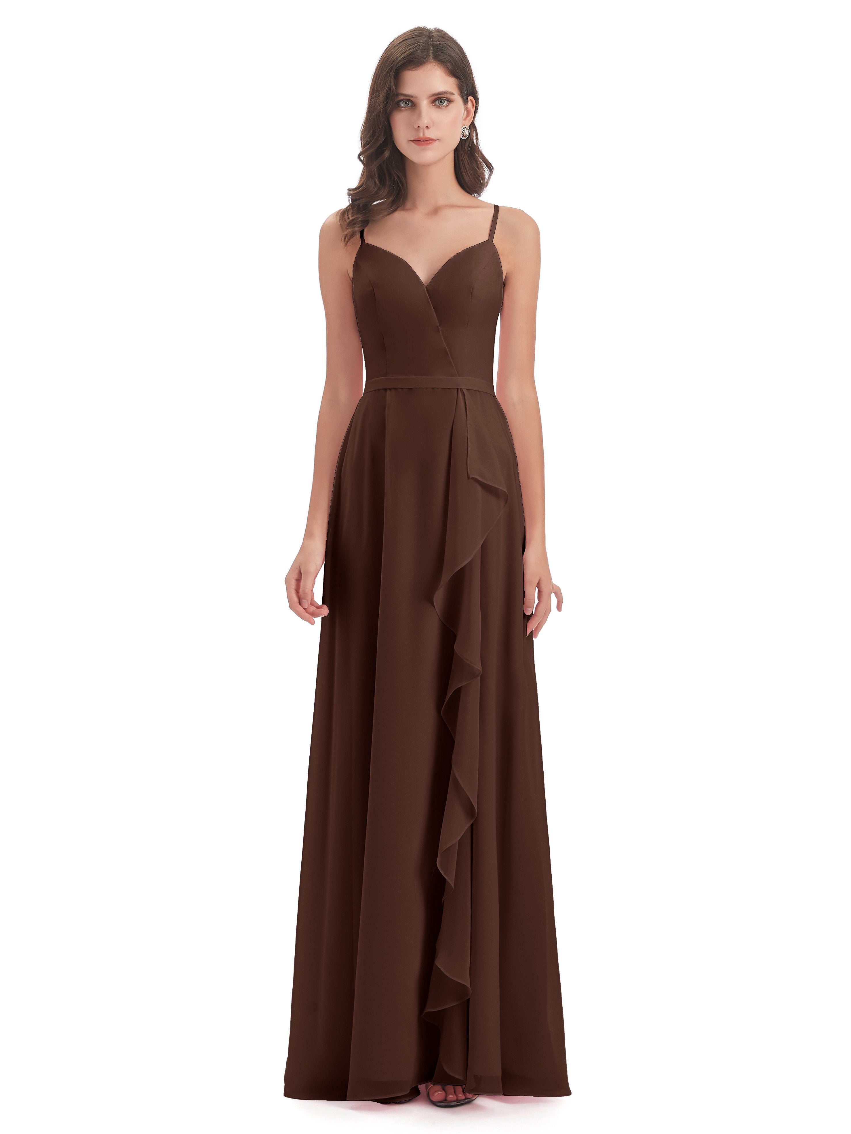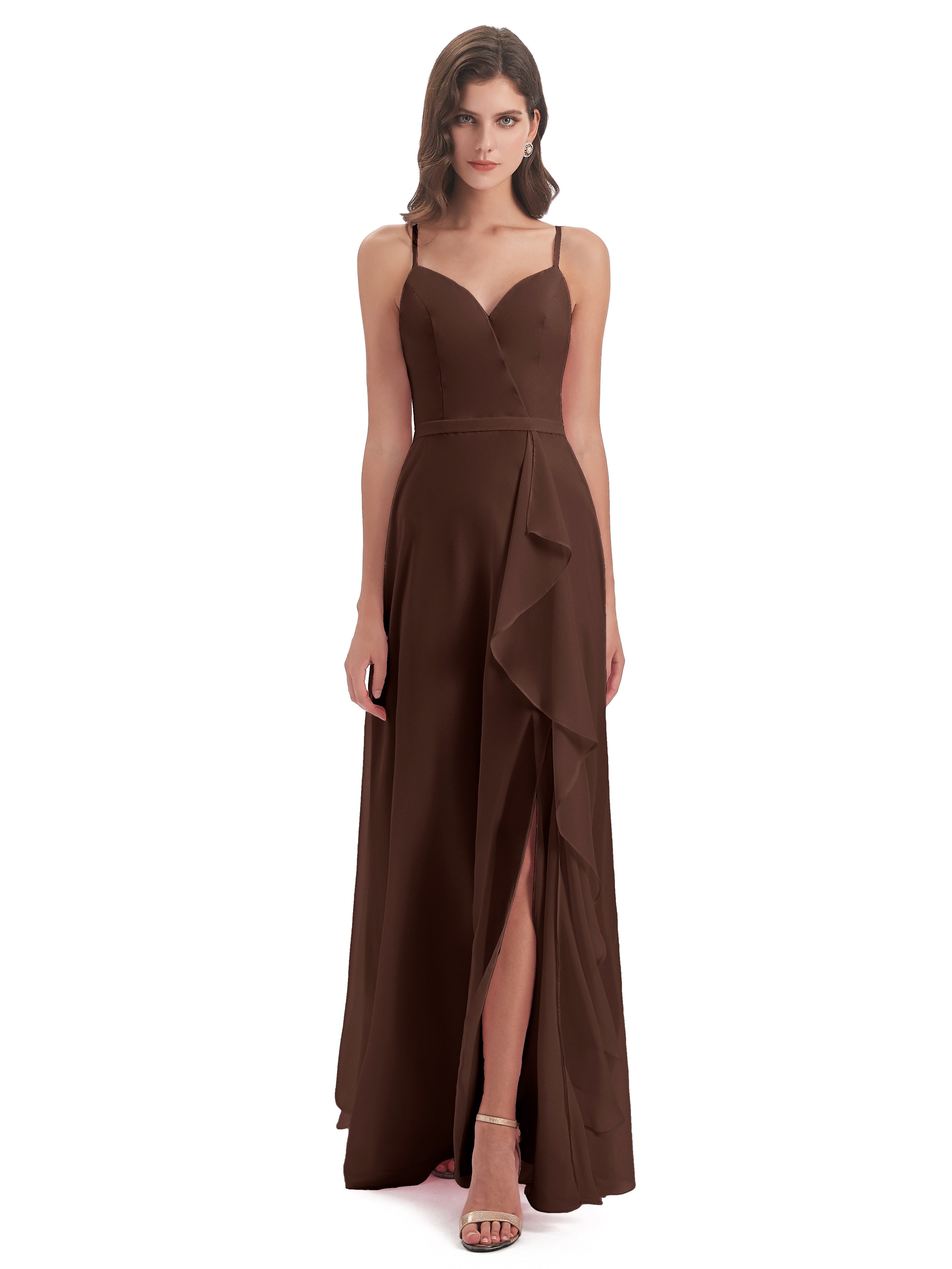 Chocolate Colored Bridesmaids Dresses Chiffon Spaghetti Straps Long Bridesmaid Dresses