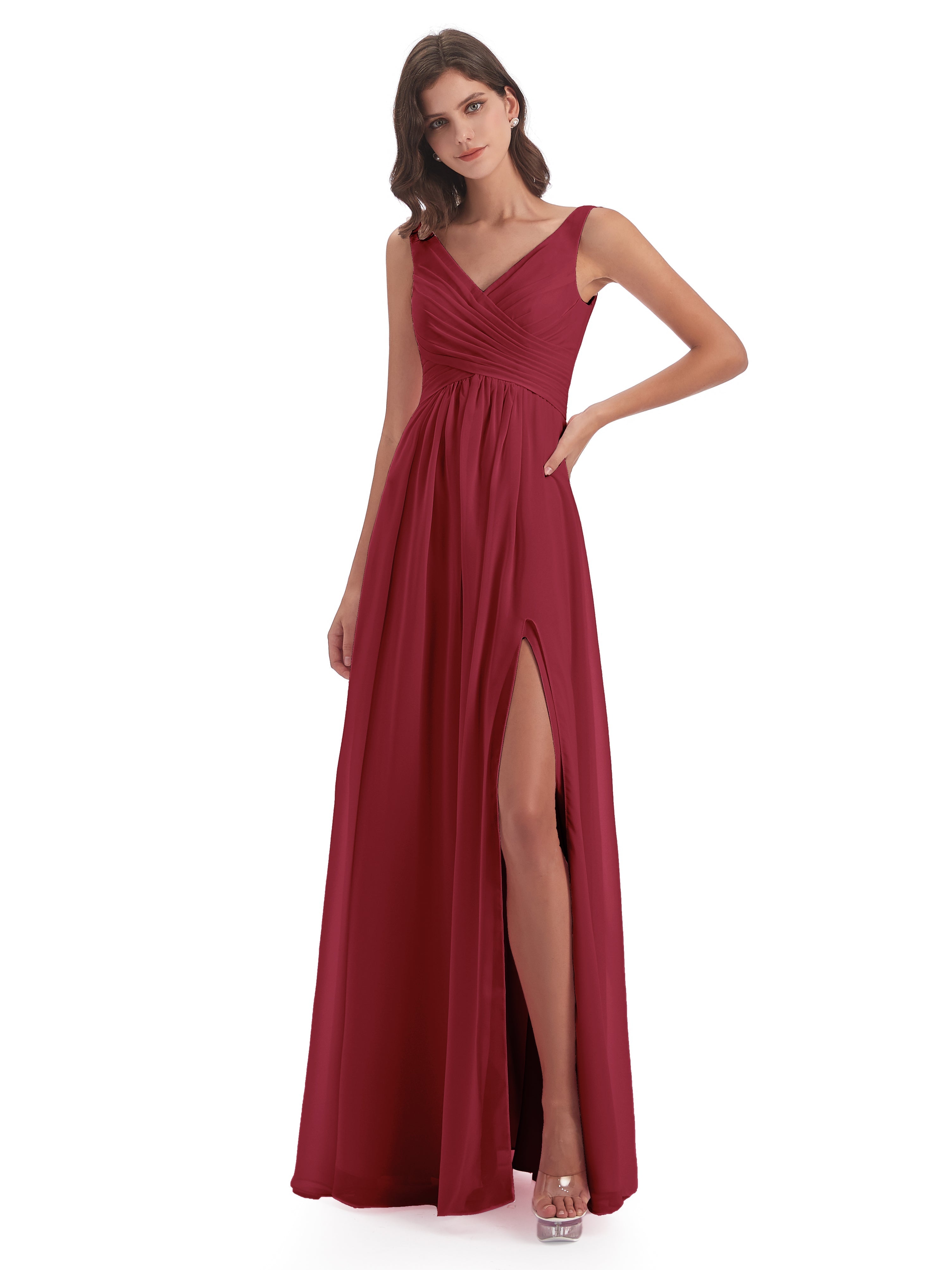 Cinnamon Rose Color Bridesmaid Dresses Chiffon Column Long Bridesmaid Dresses V Neck Bridesmaid Dresses