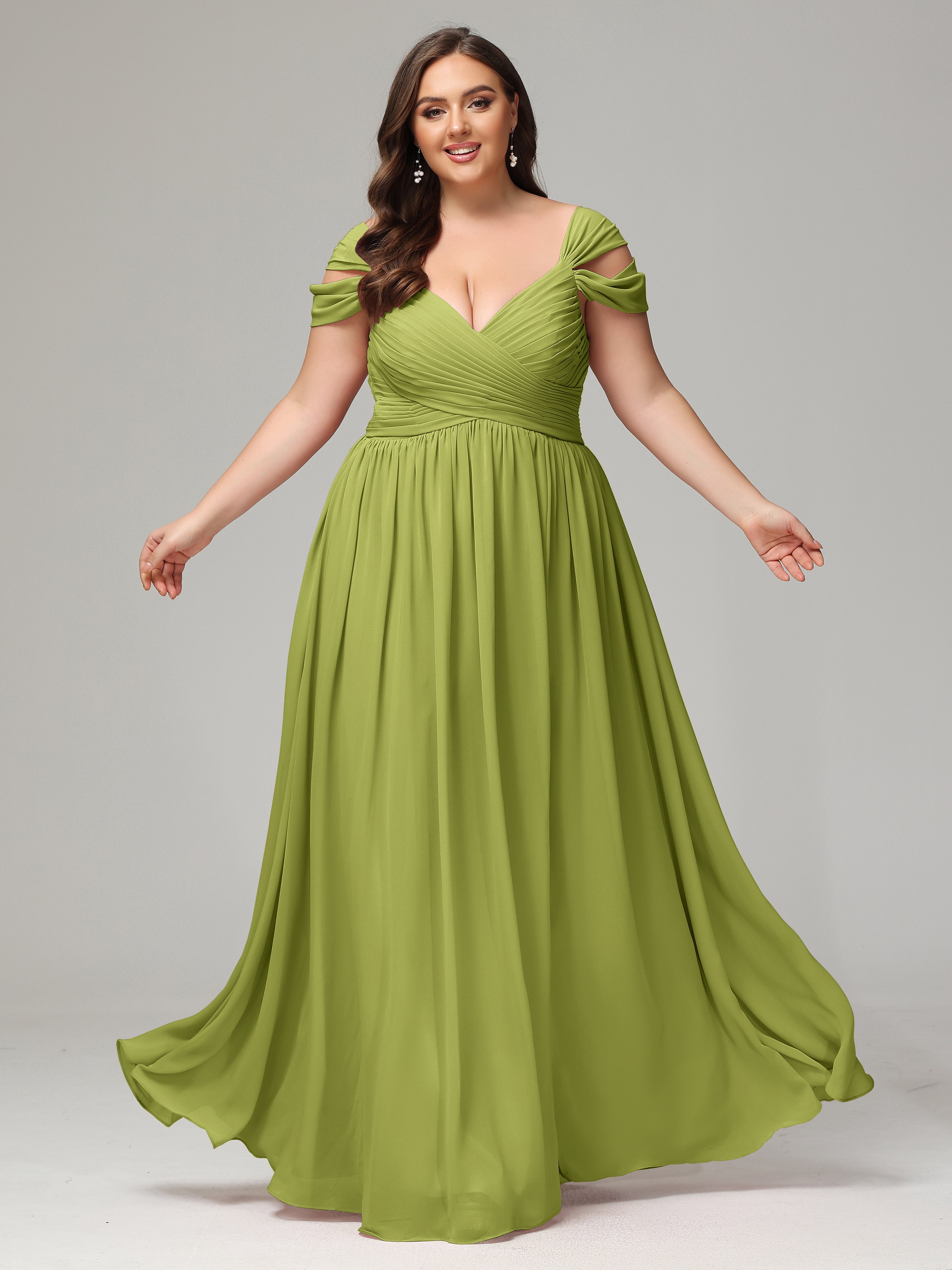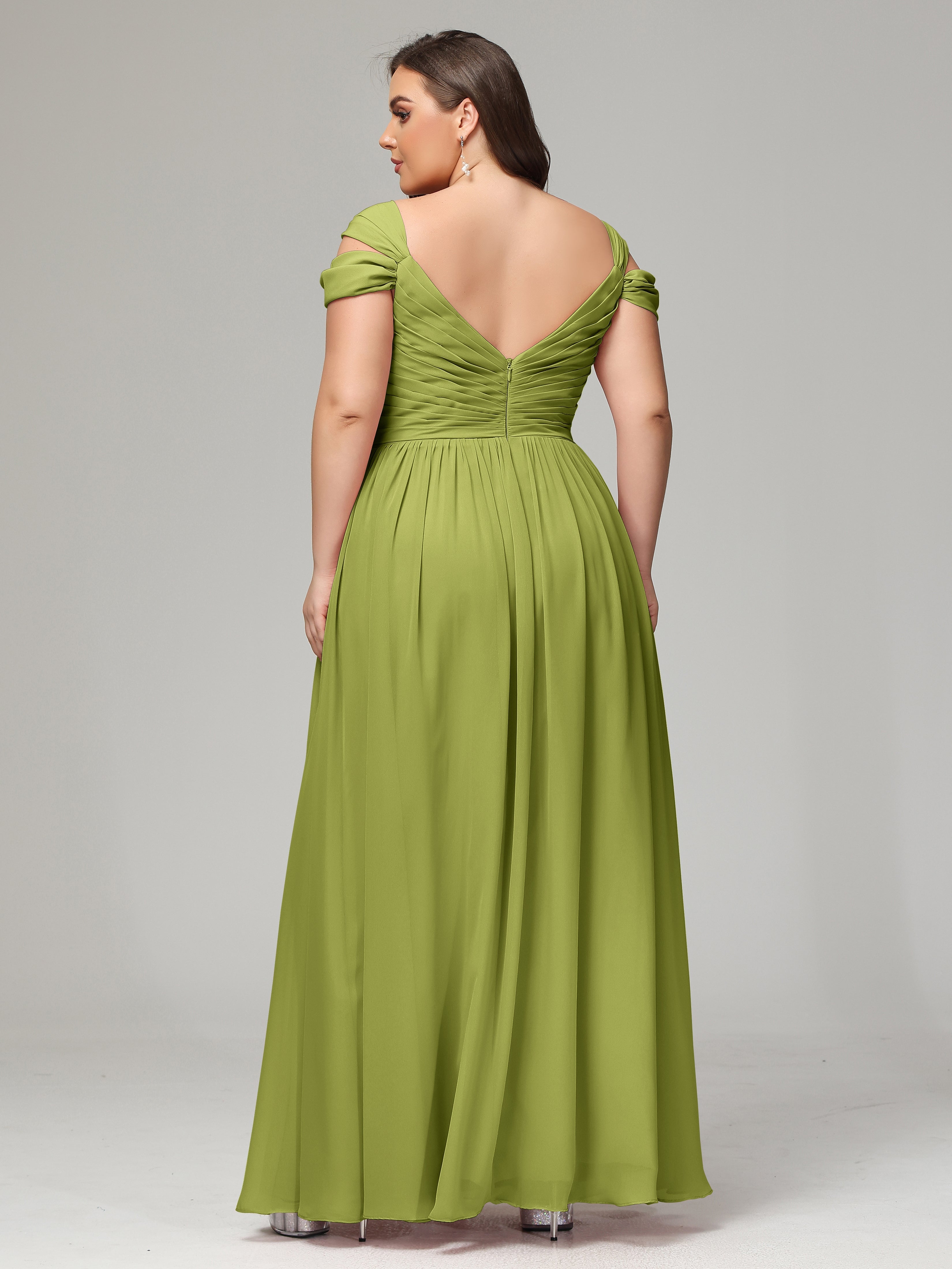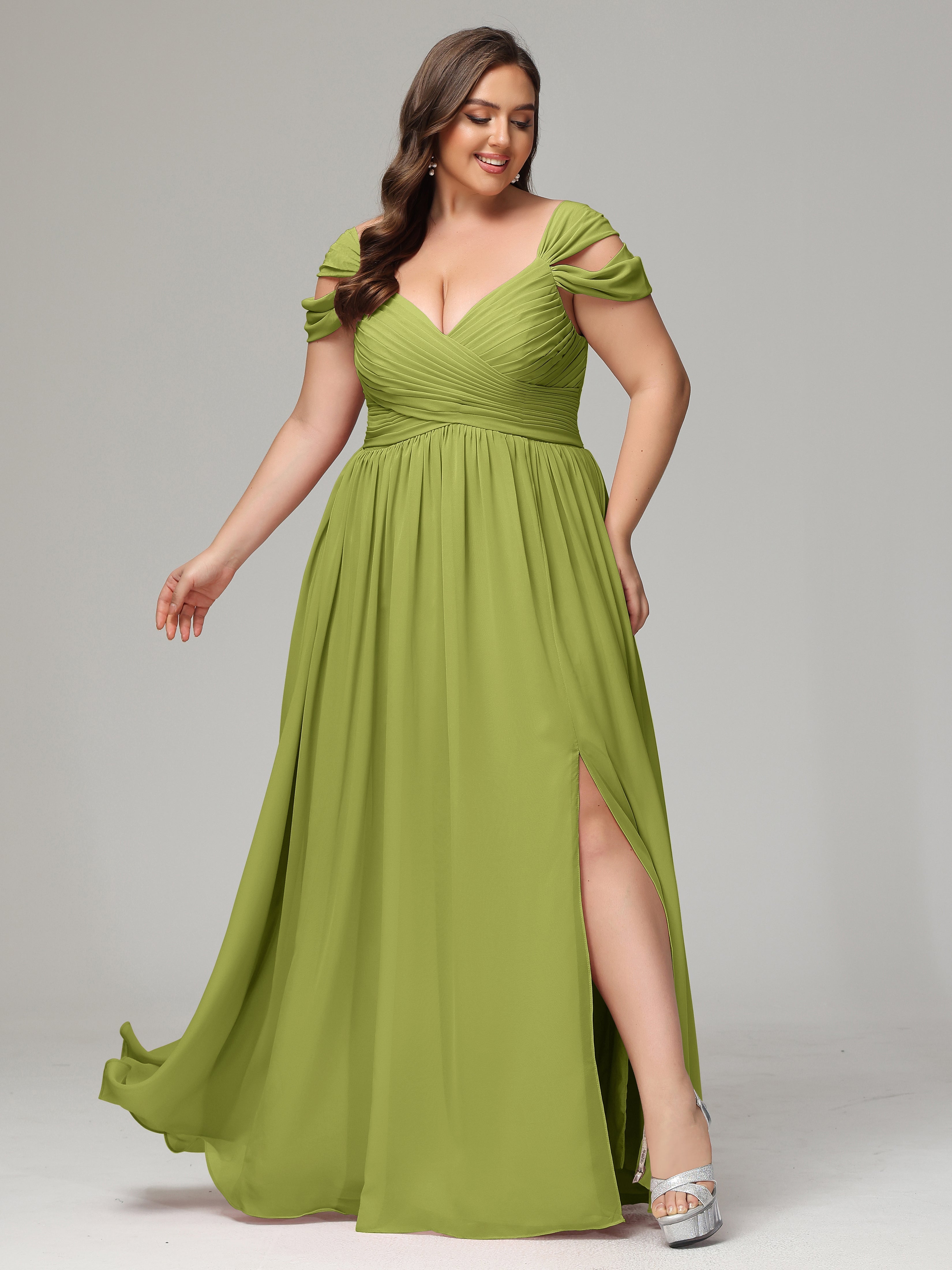 Clover Bridesmaid Dresses Cap Sleeves Chiffon With Split Plus Size Bridesmaid Dresses Store