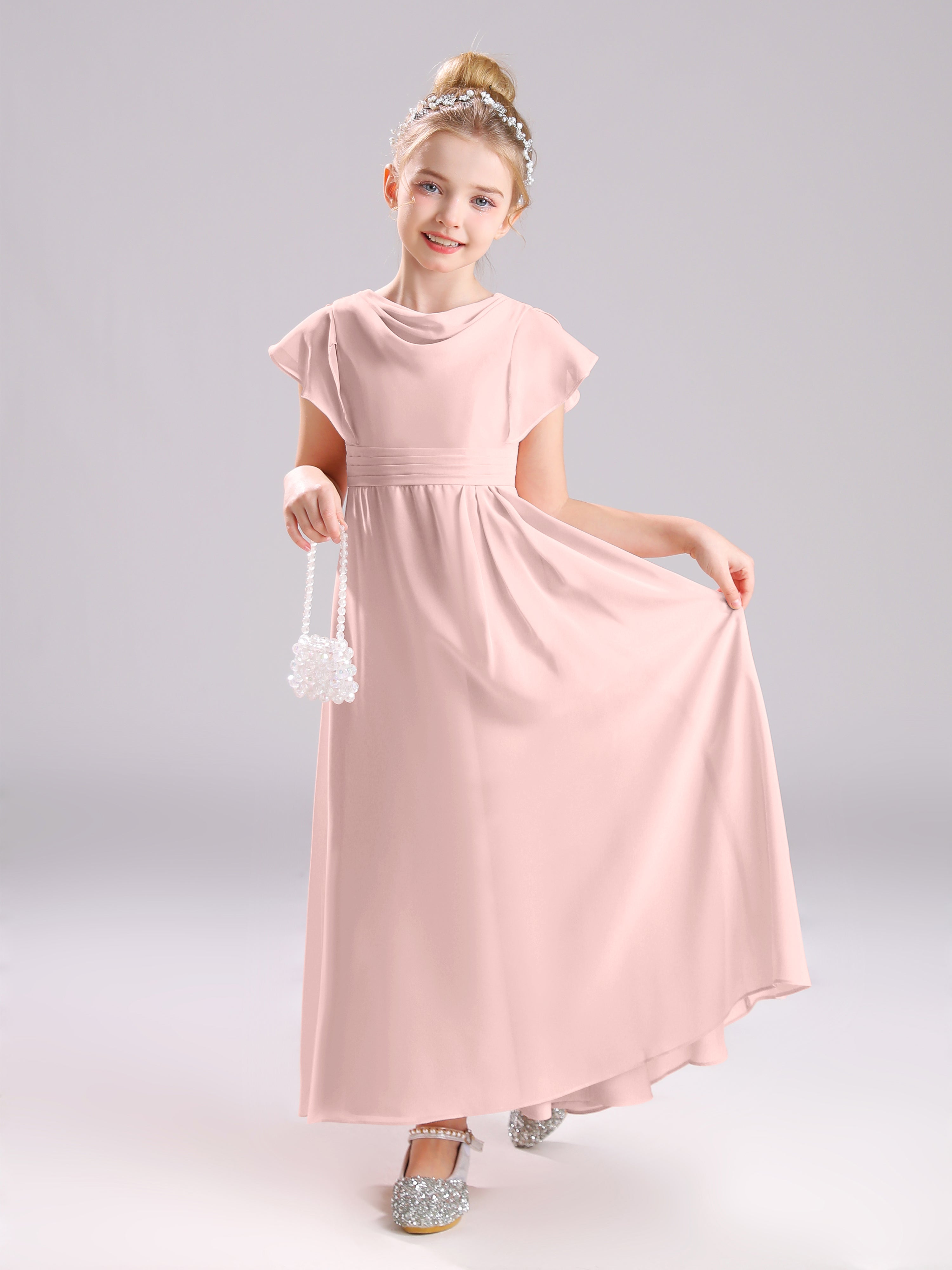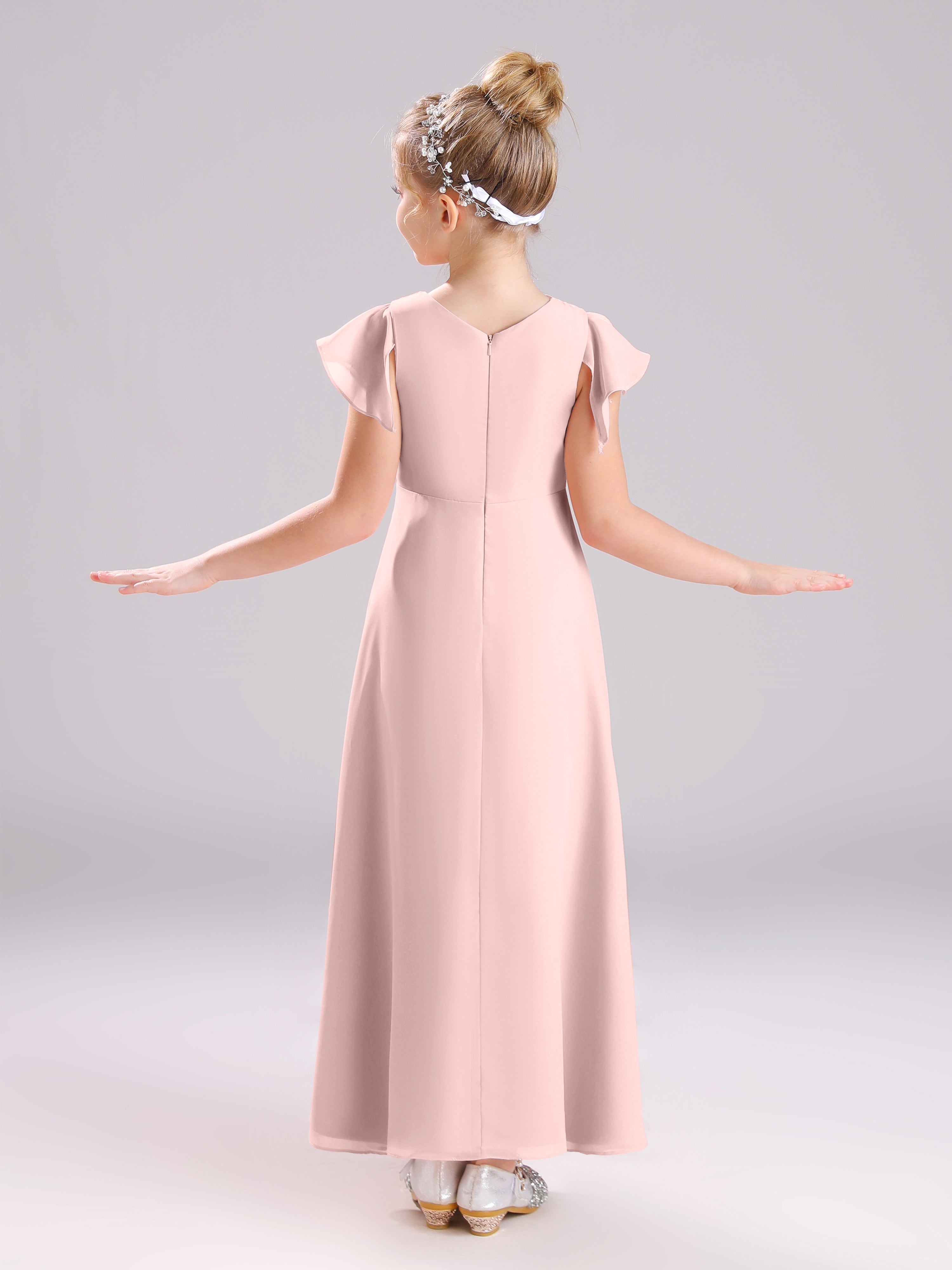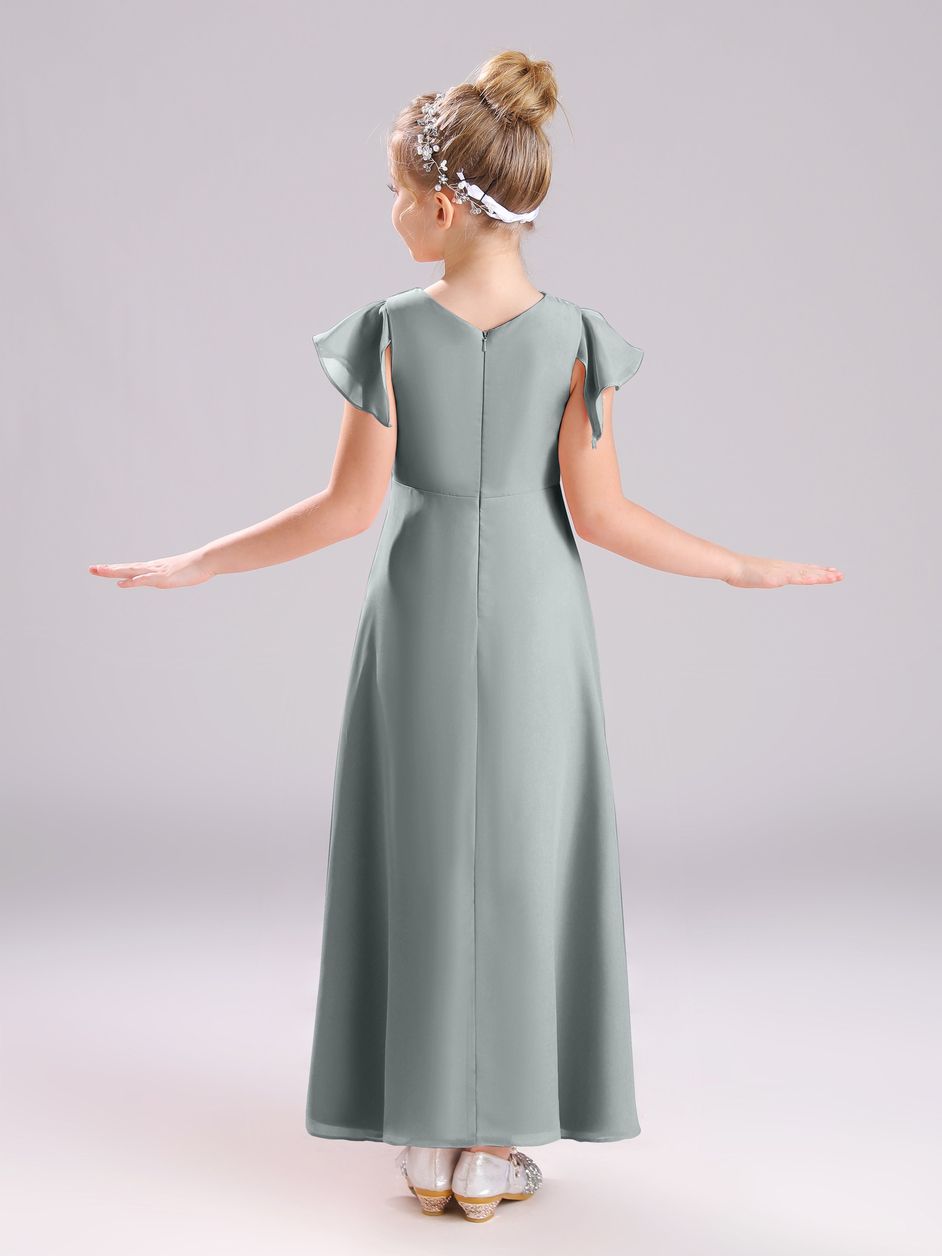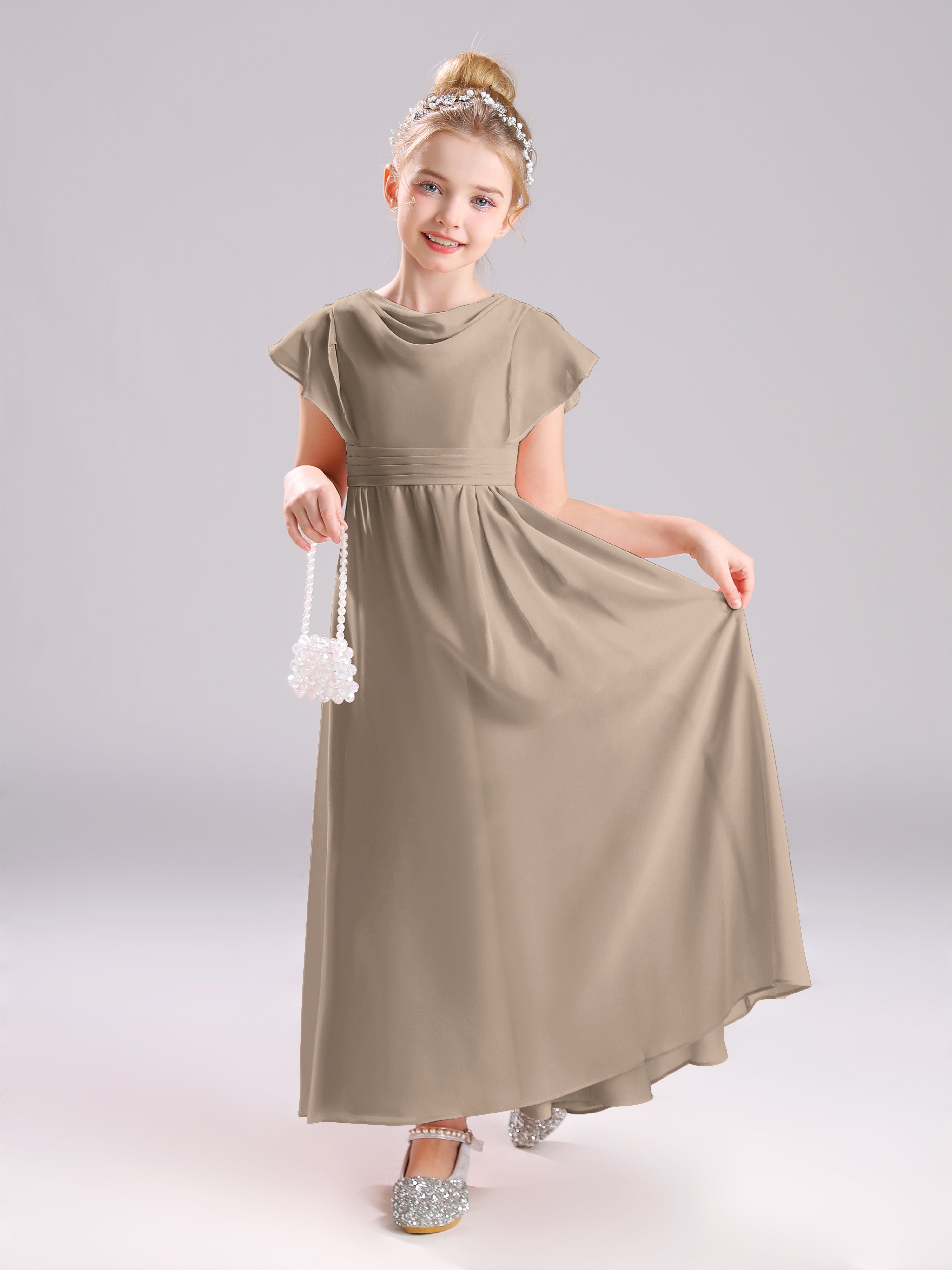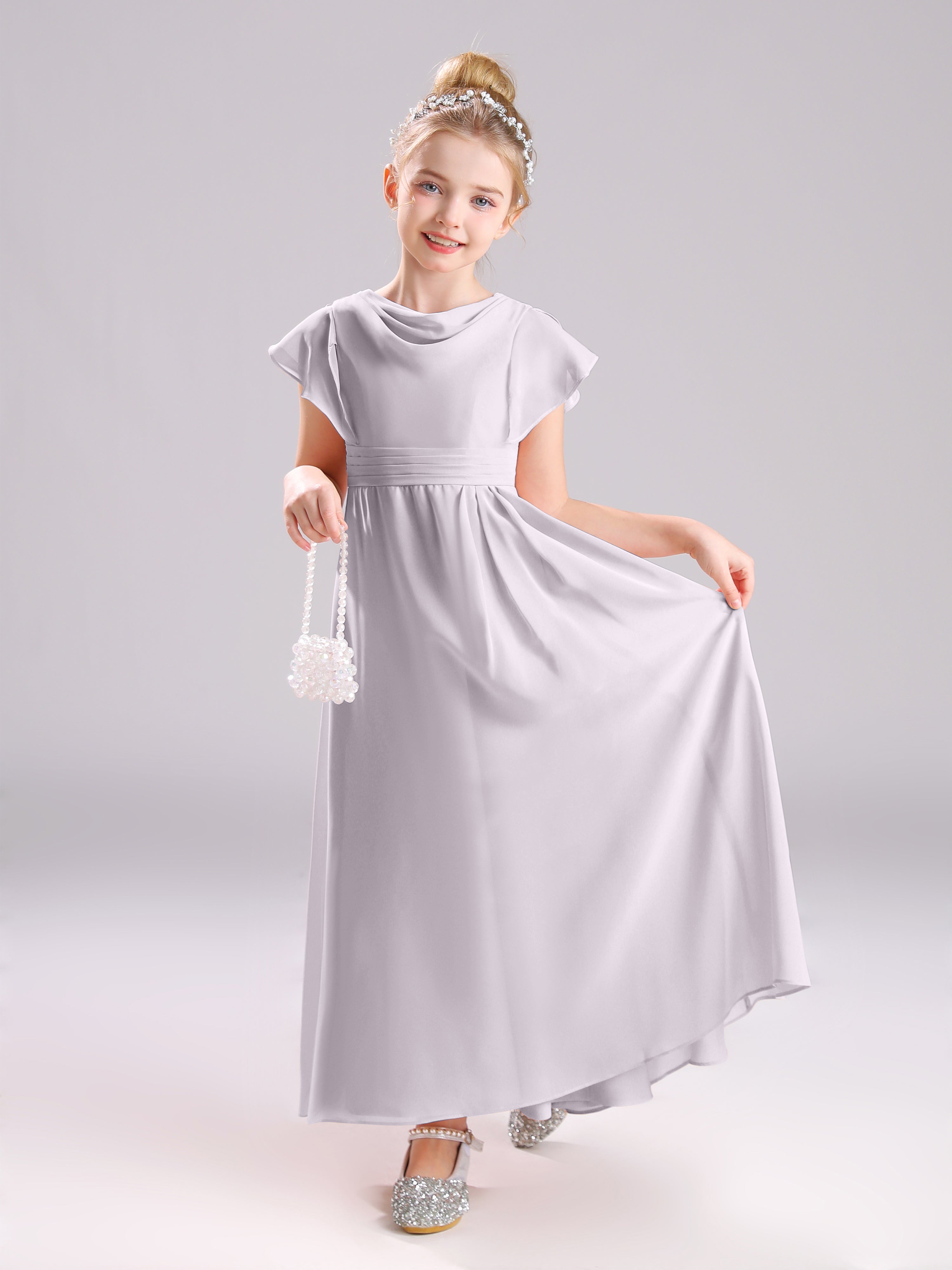 Cowl Short Sleeves Zipper Chiffon Junior Bridesmaid Dresses