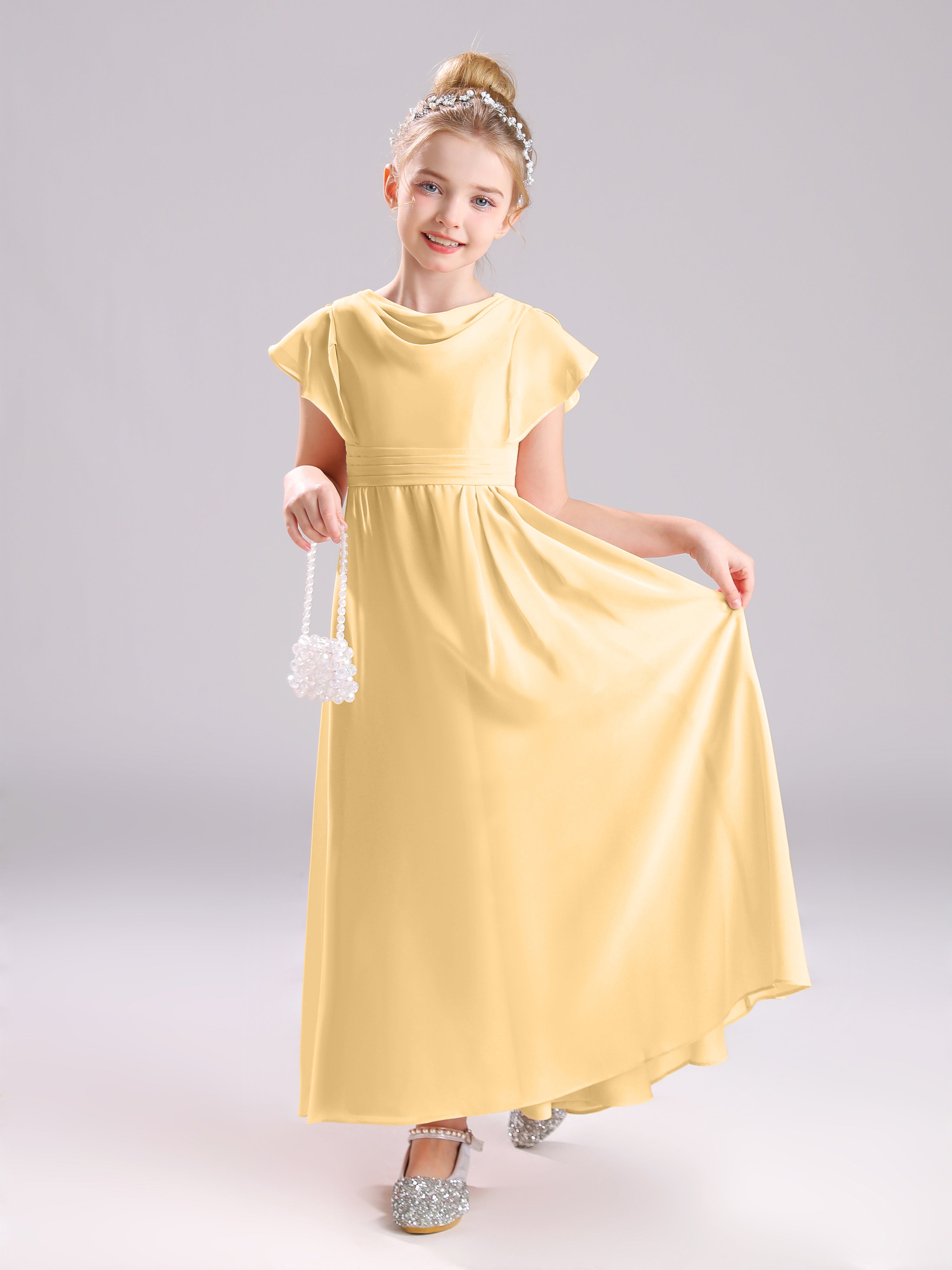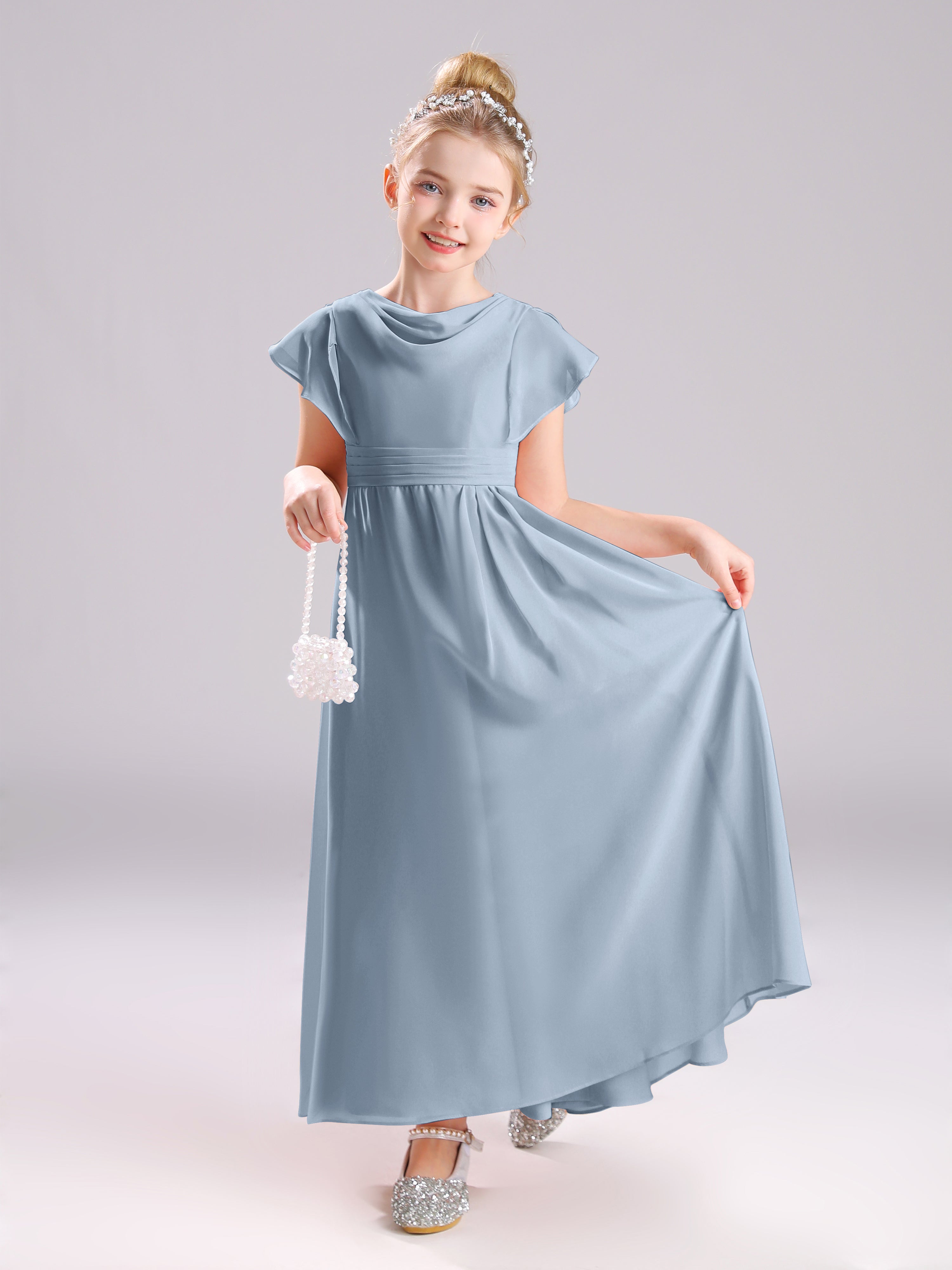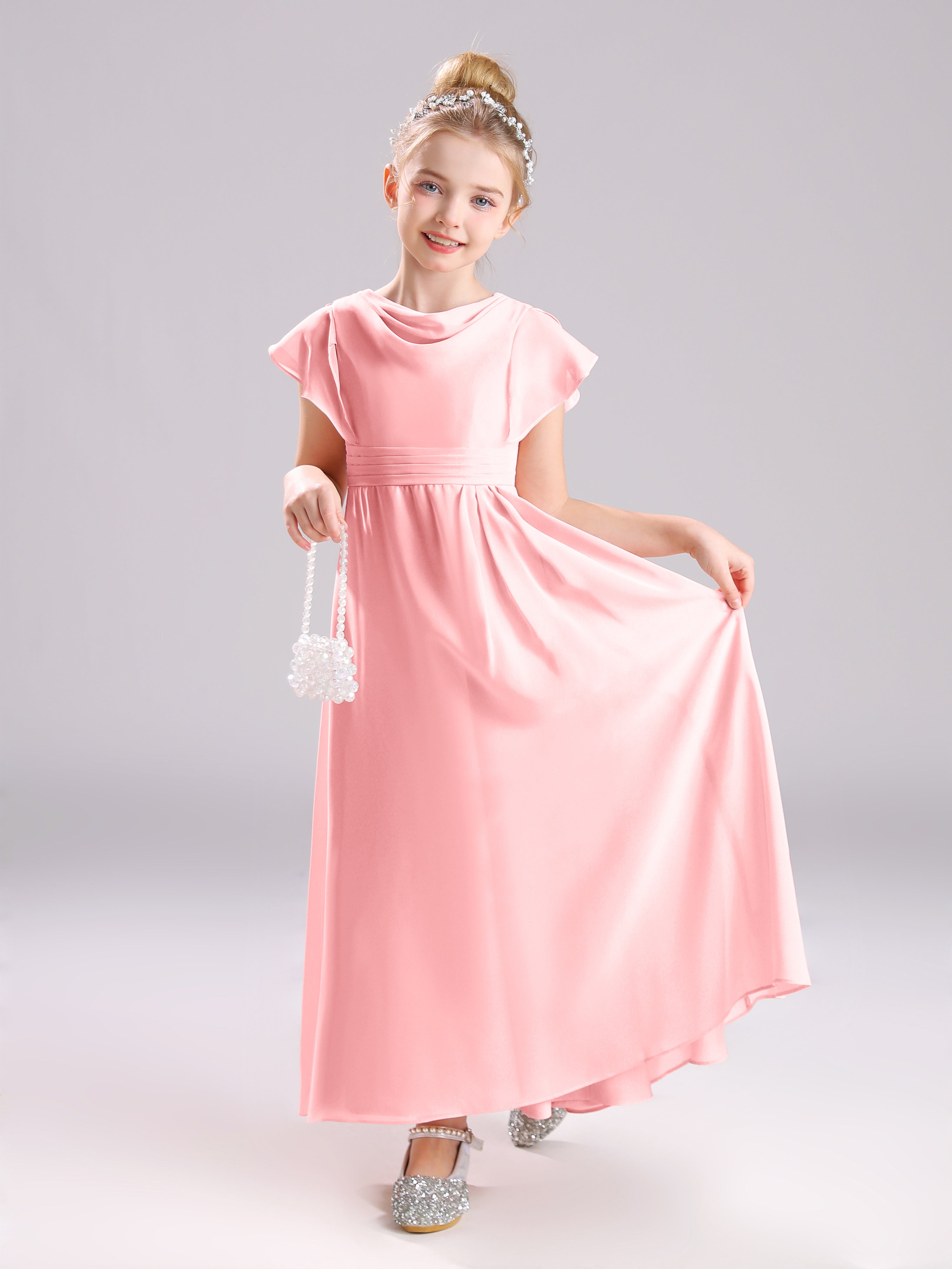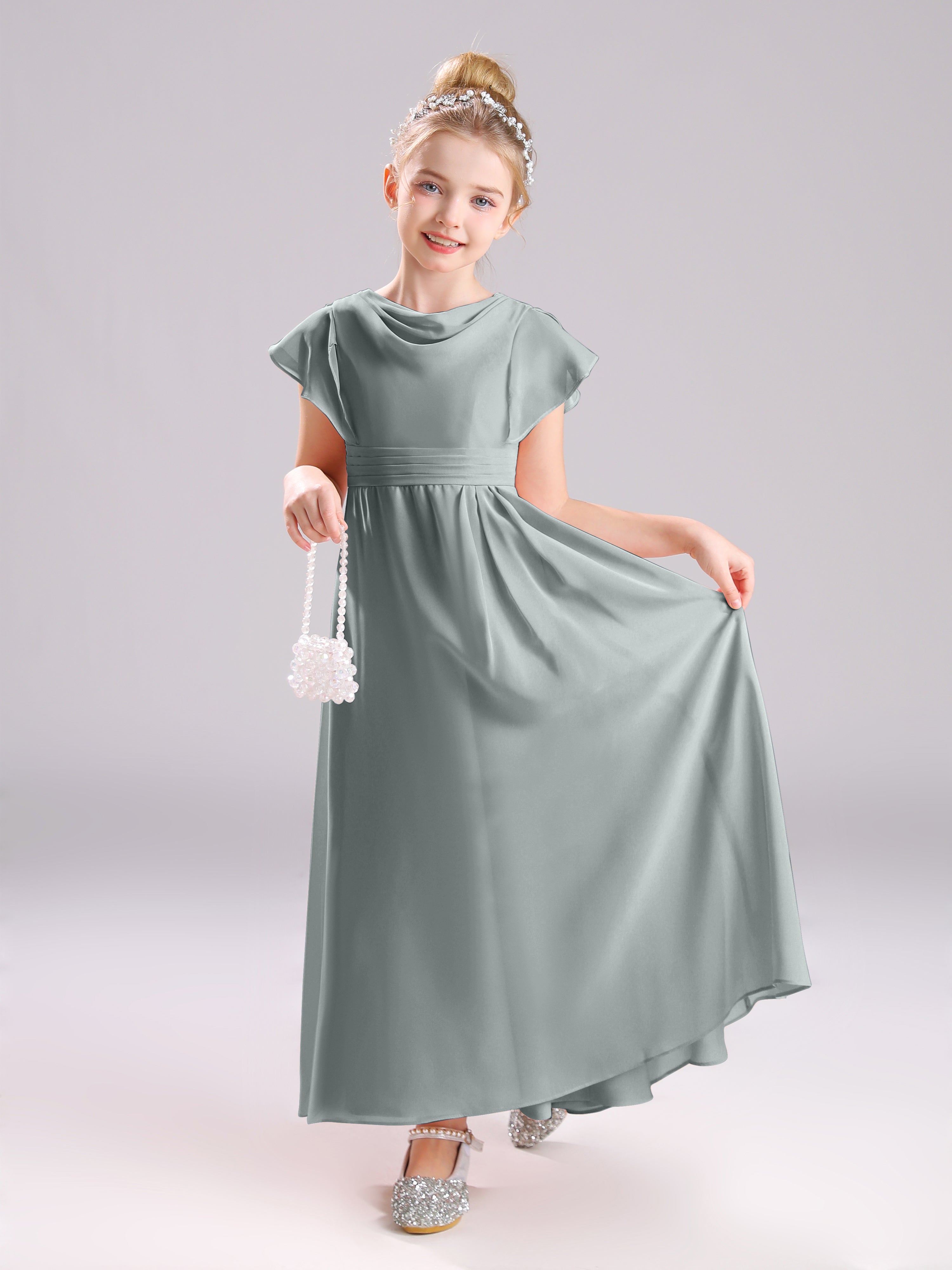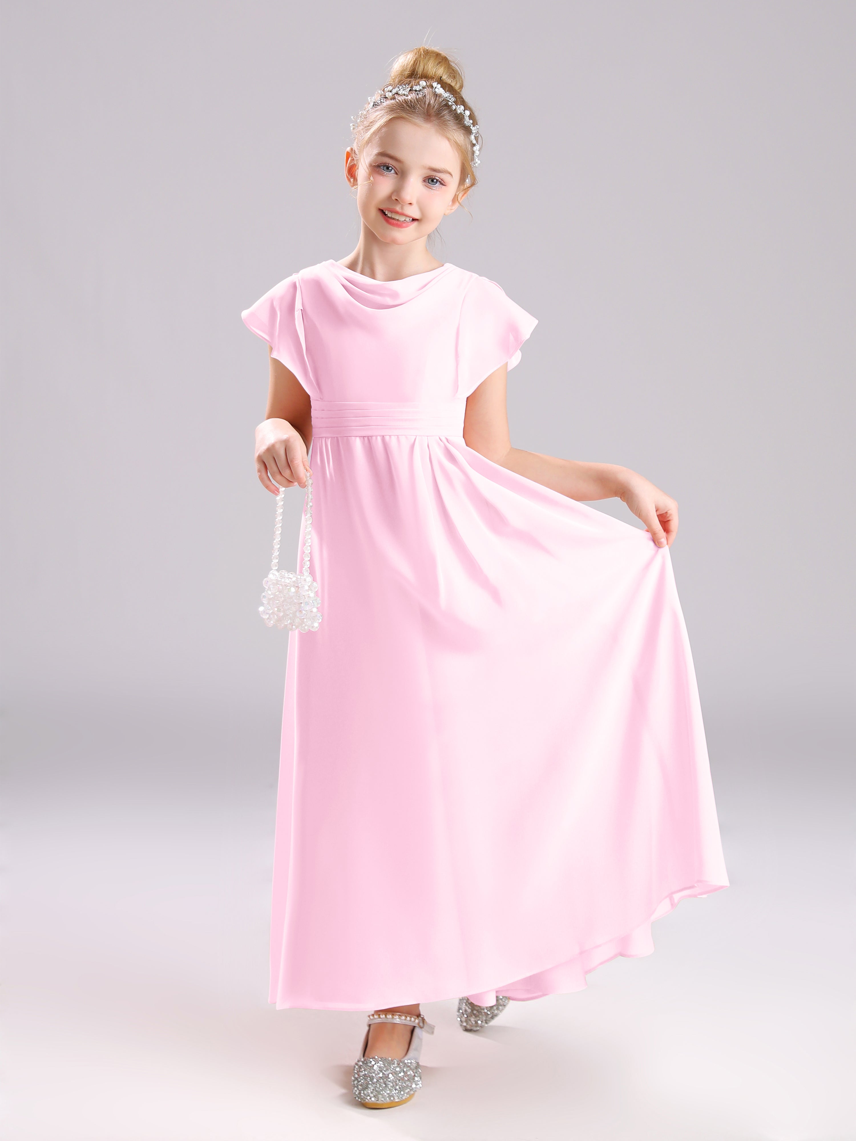 Cowl Short Sleeves Zipper Chiffon Junior Bridesmaid Dresses