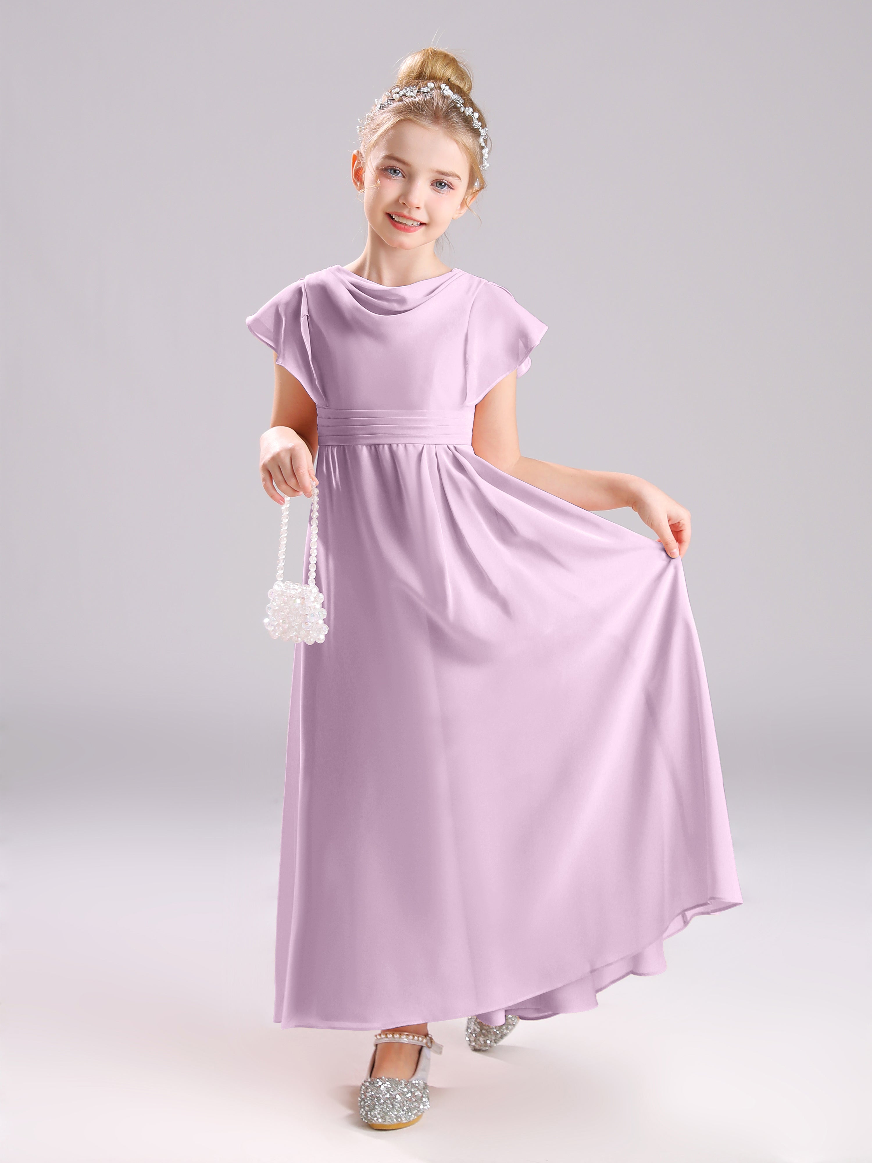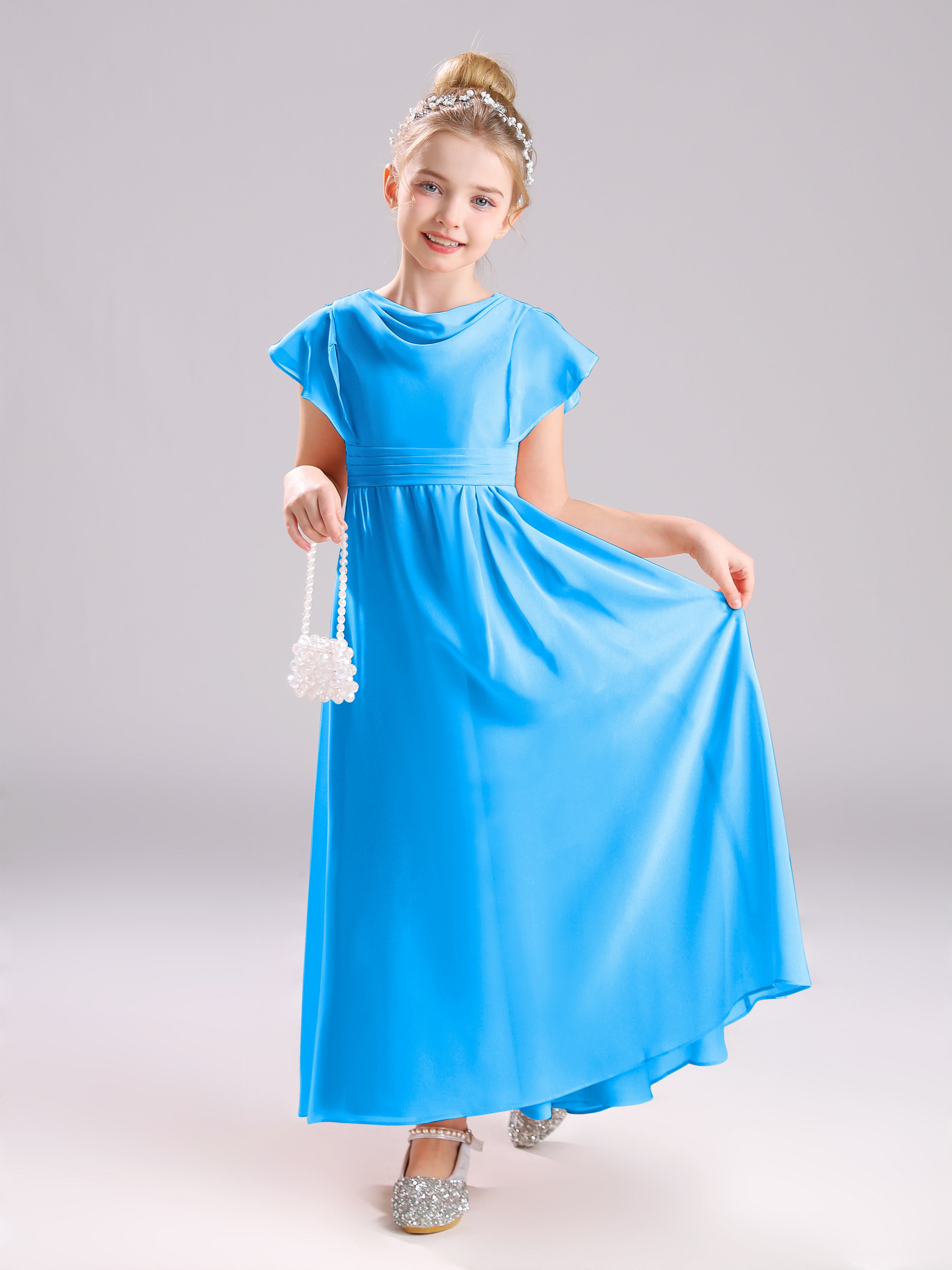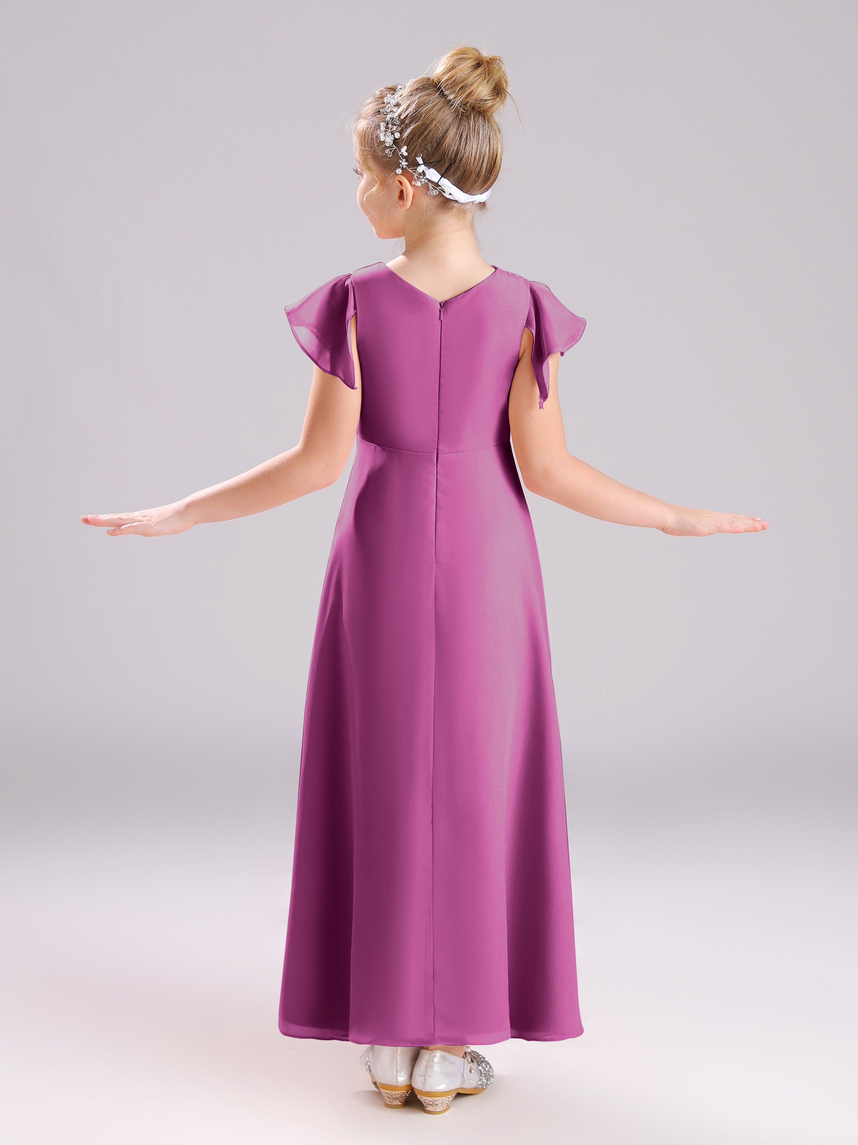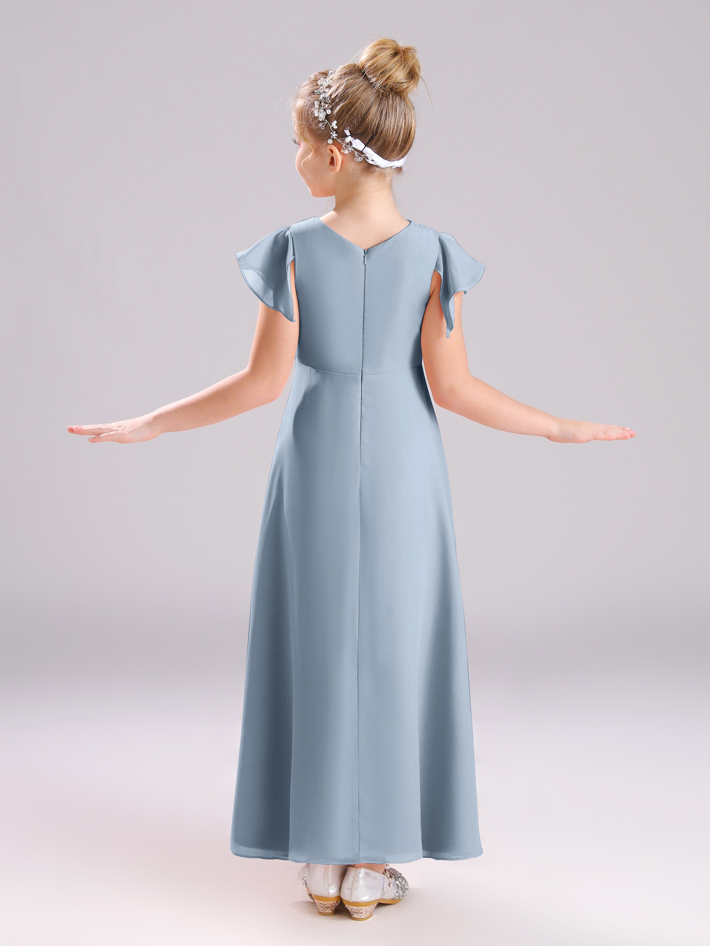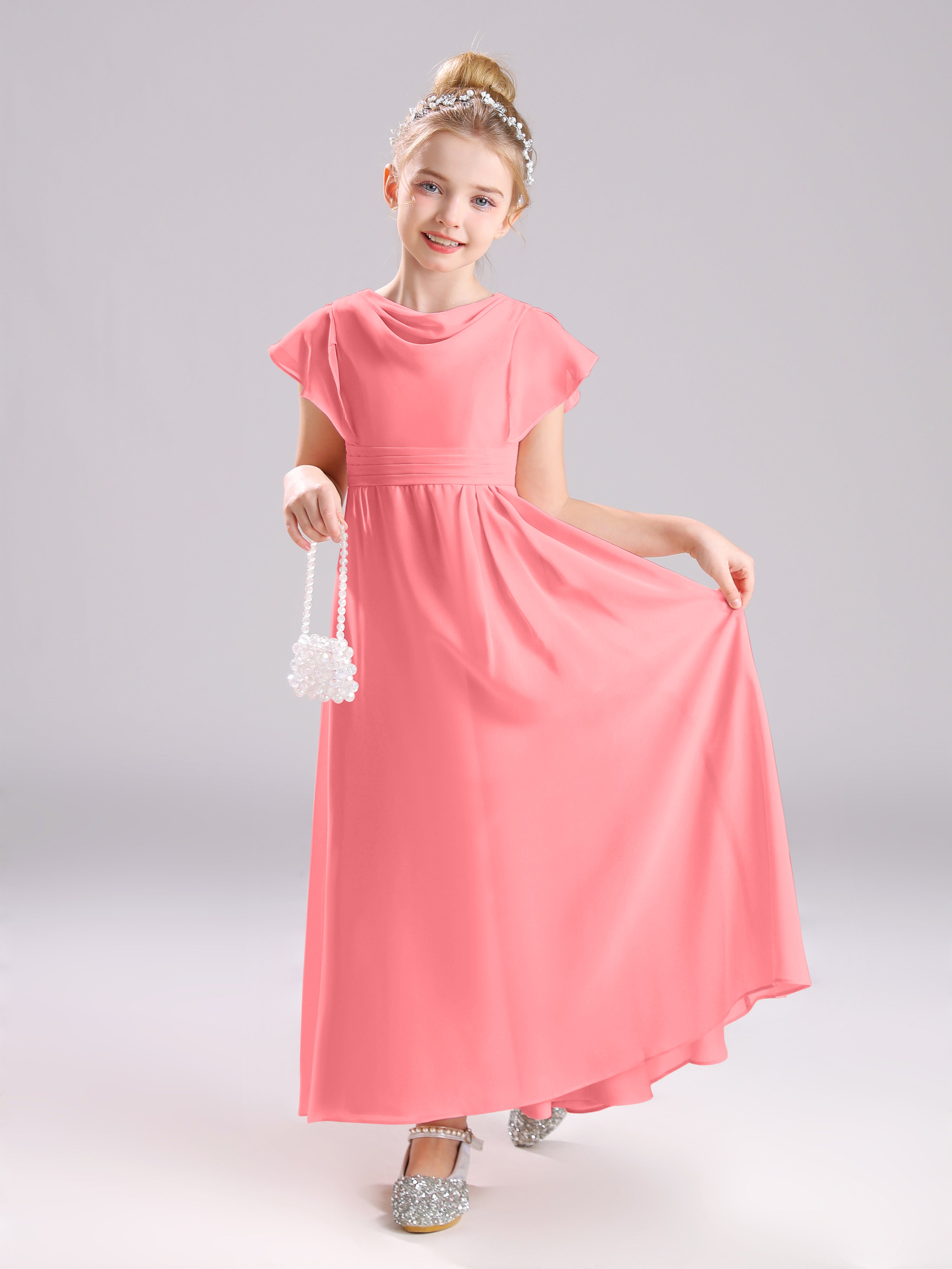 Cowl Short Sleeves Zipper Chiffon Junior Bridesmaid Dresses