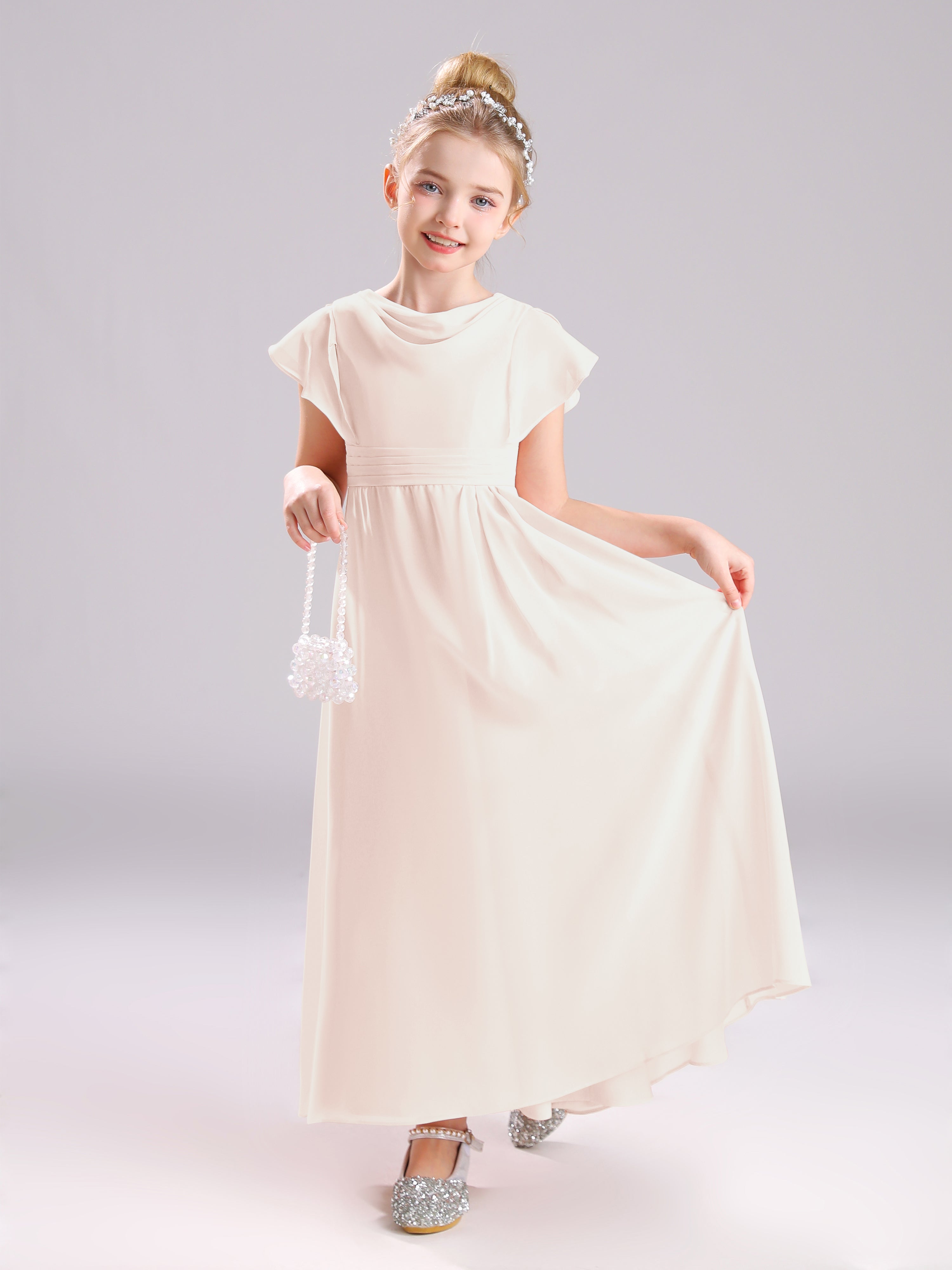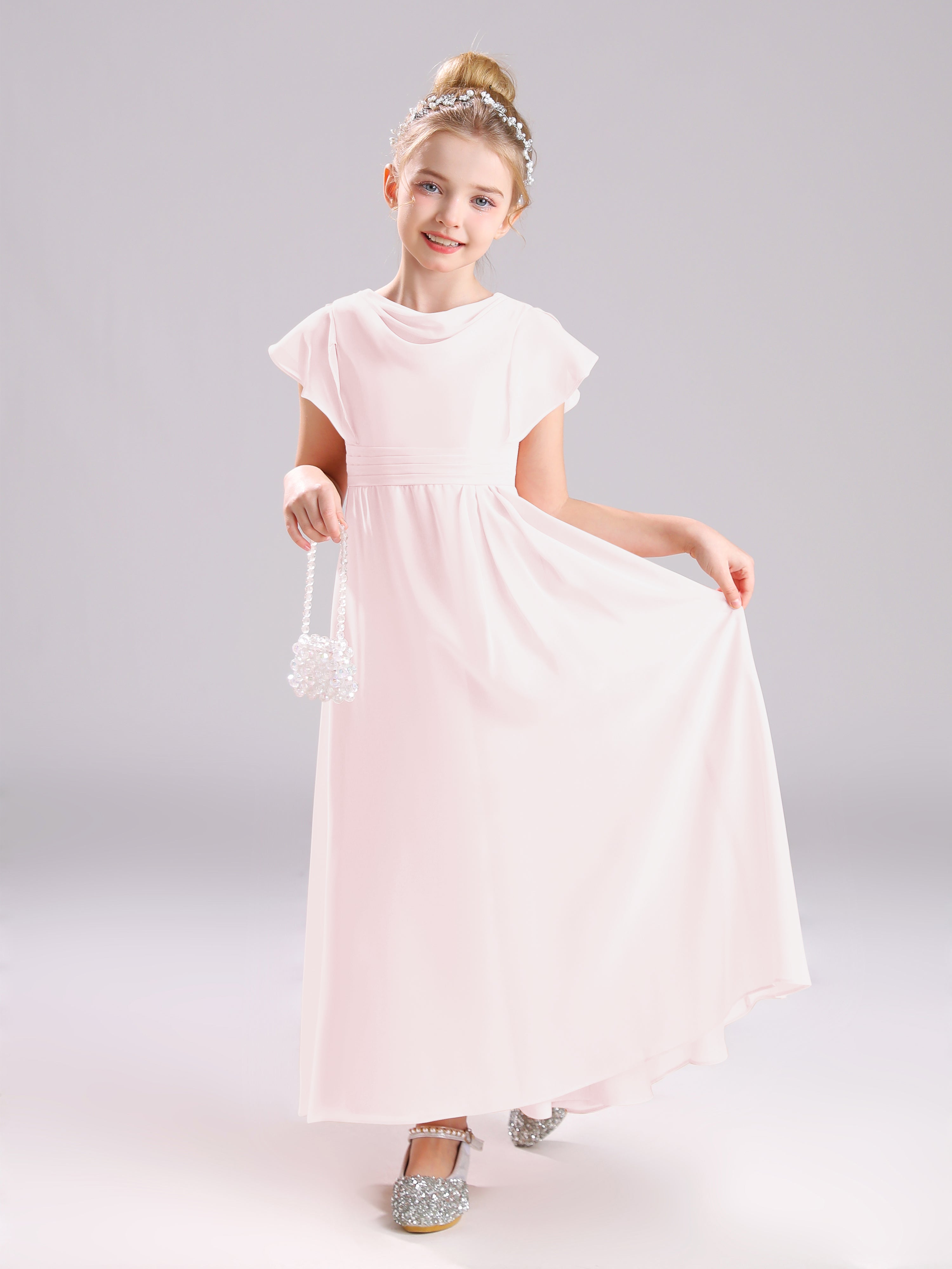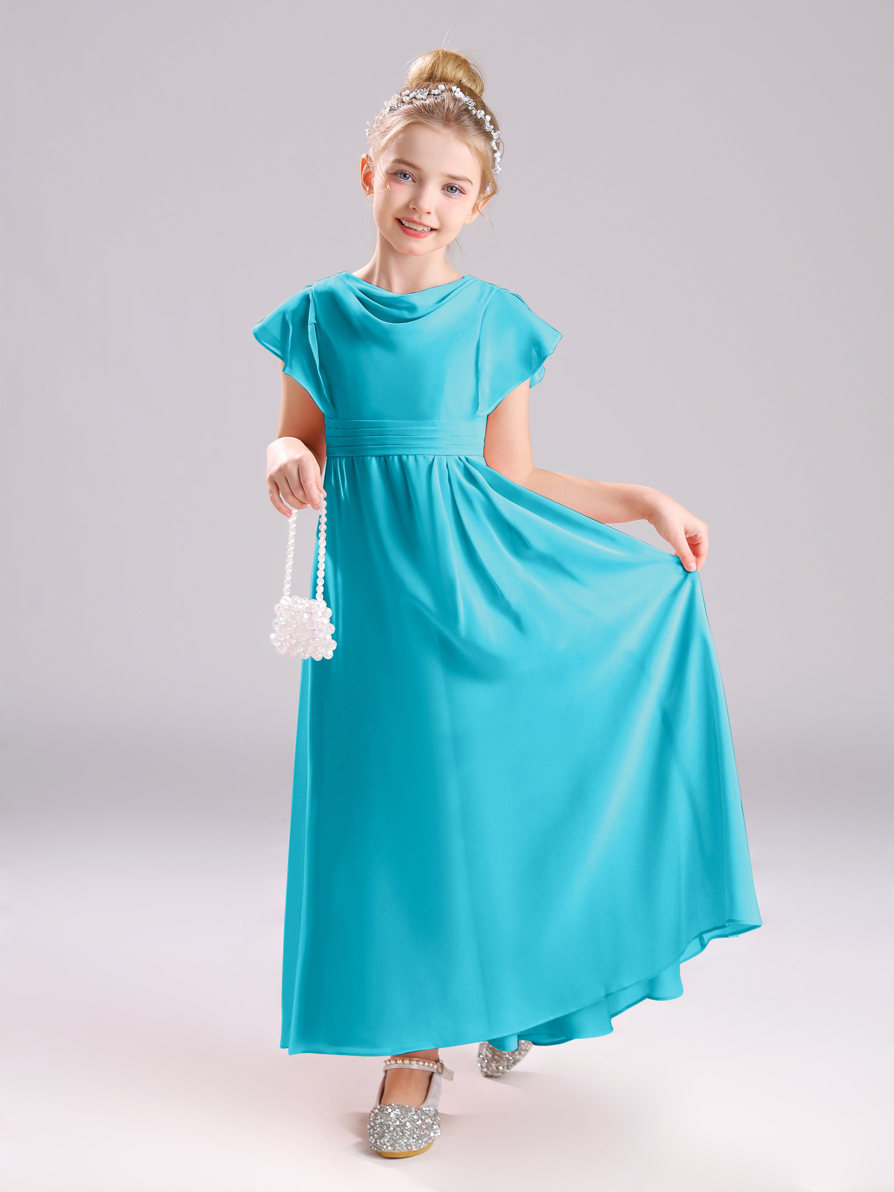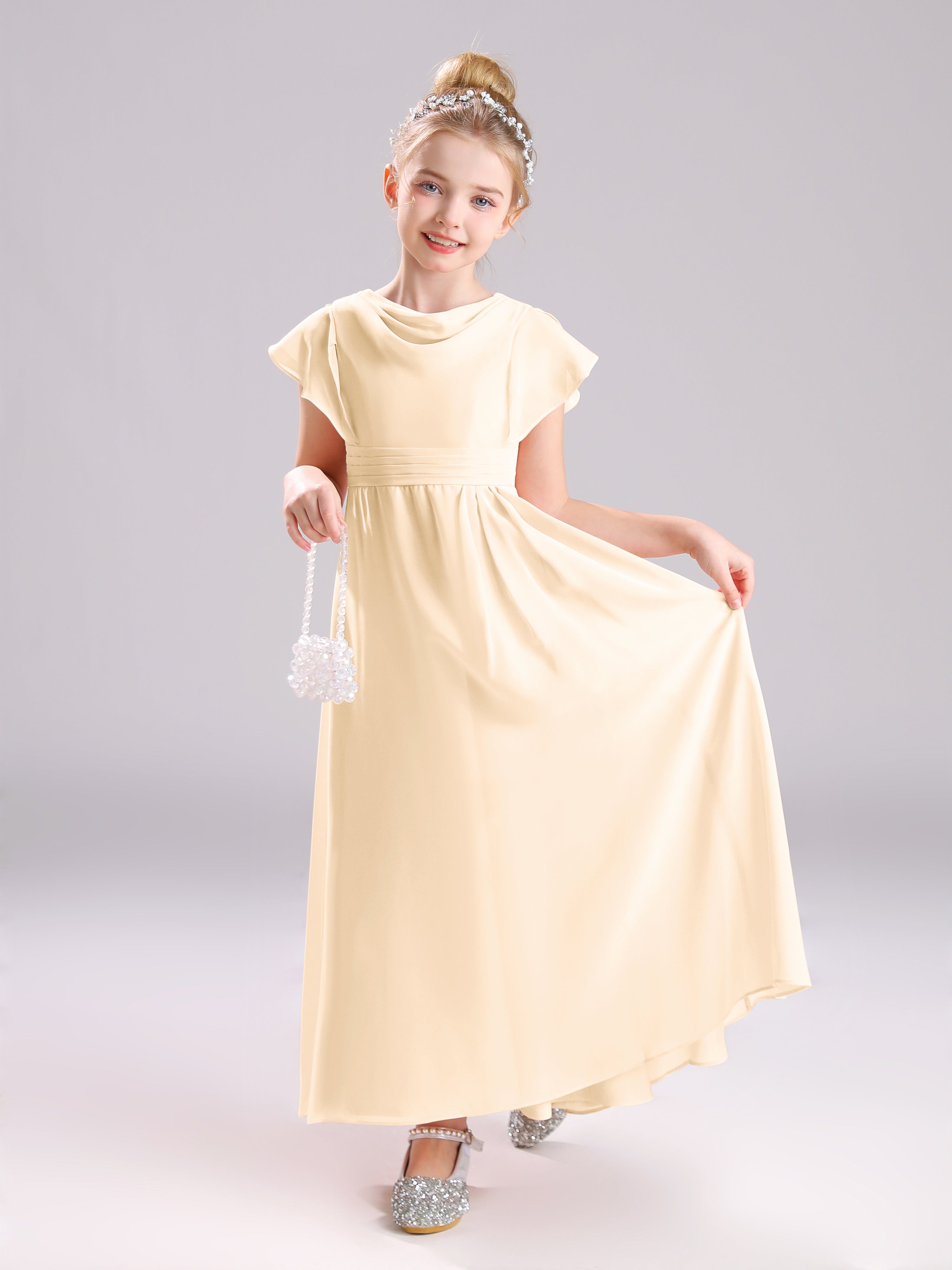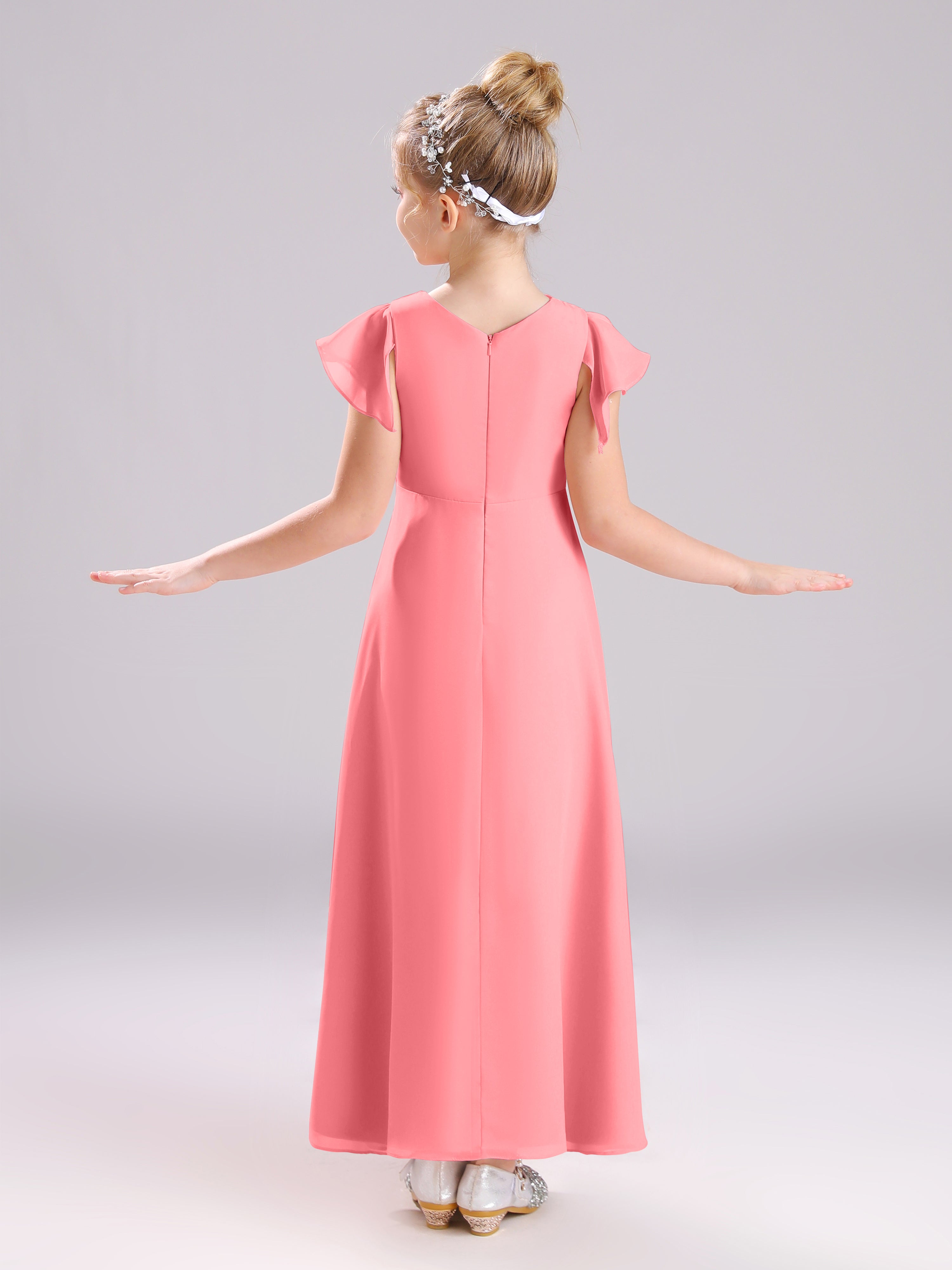 Cowl Short Sleeves Zipper Chiffon Junior Bridesmaid Dresses