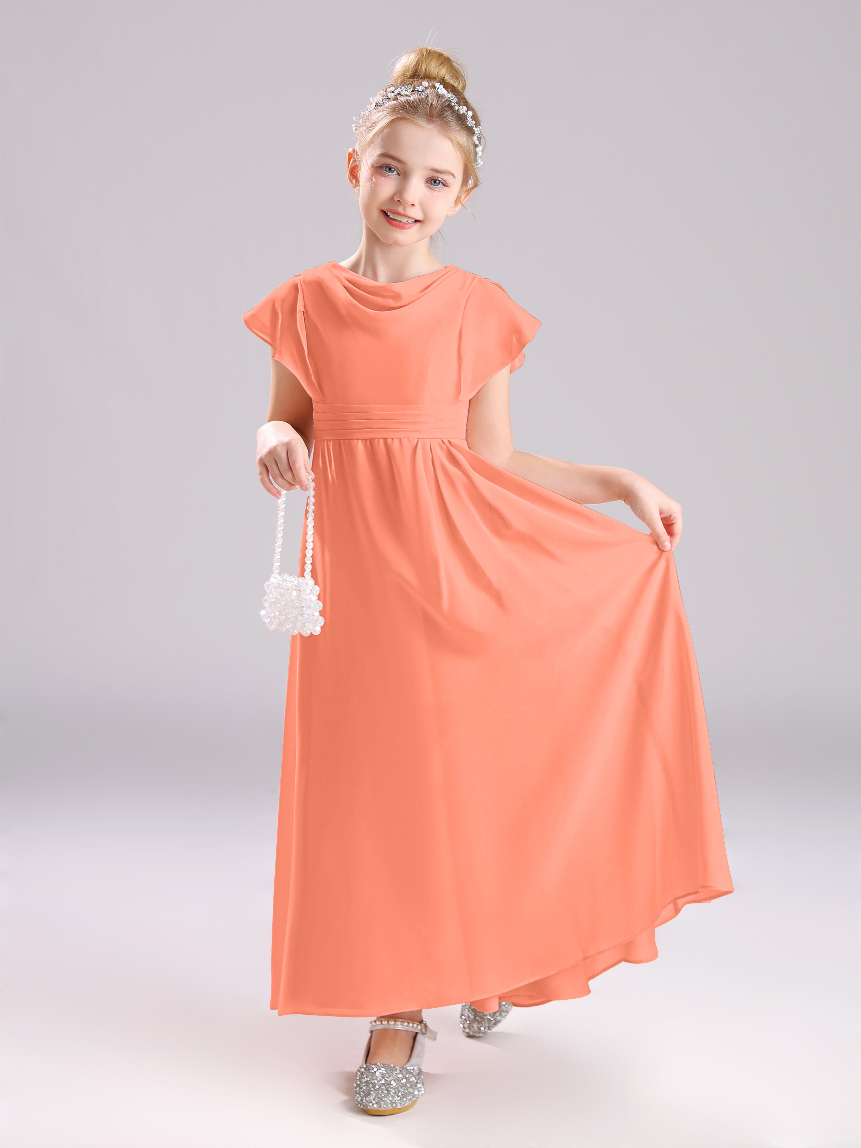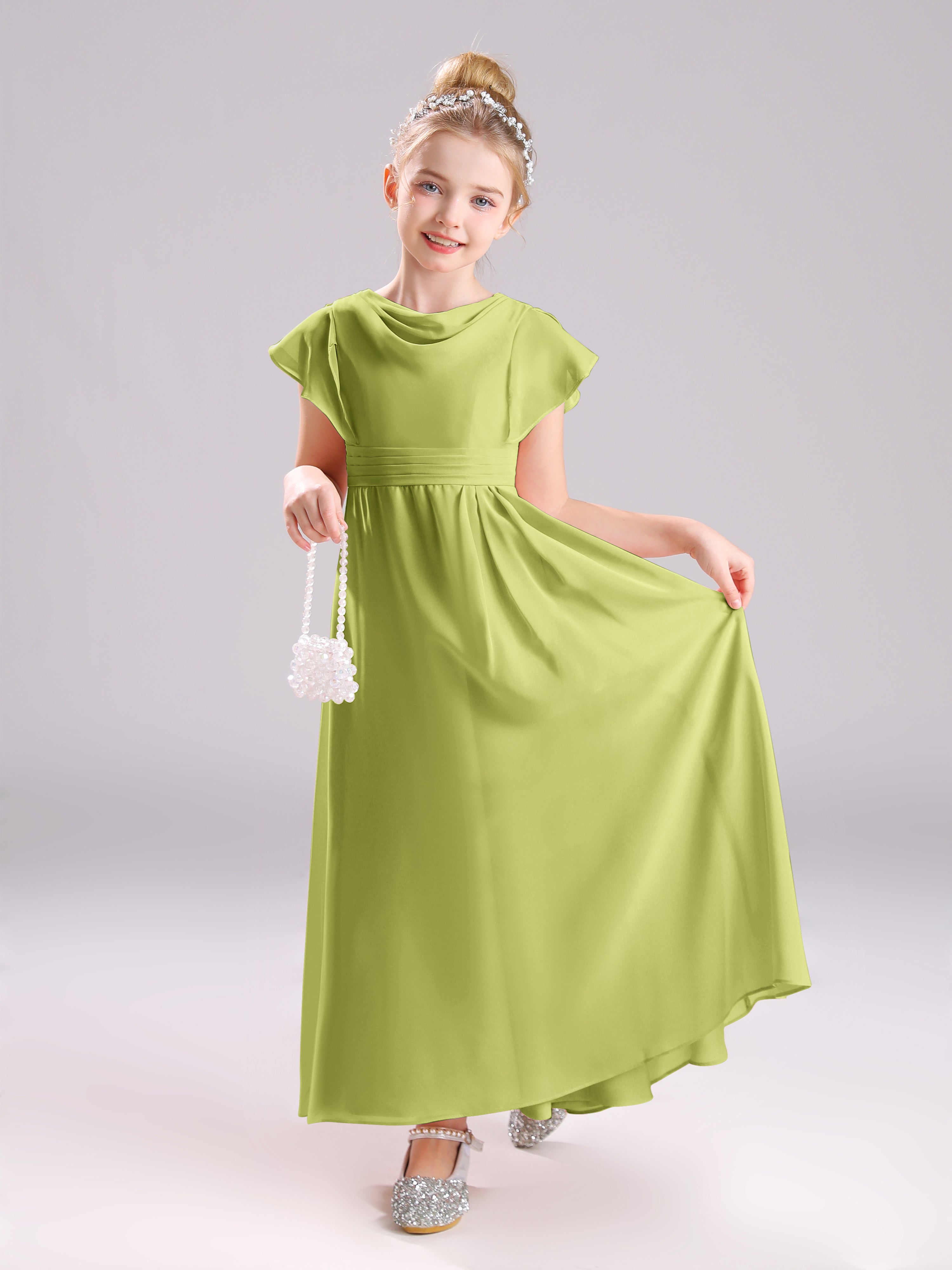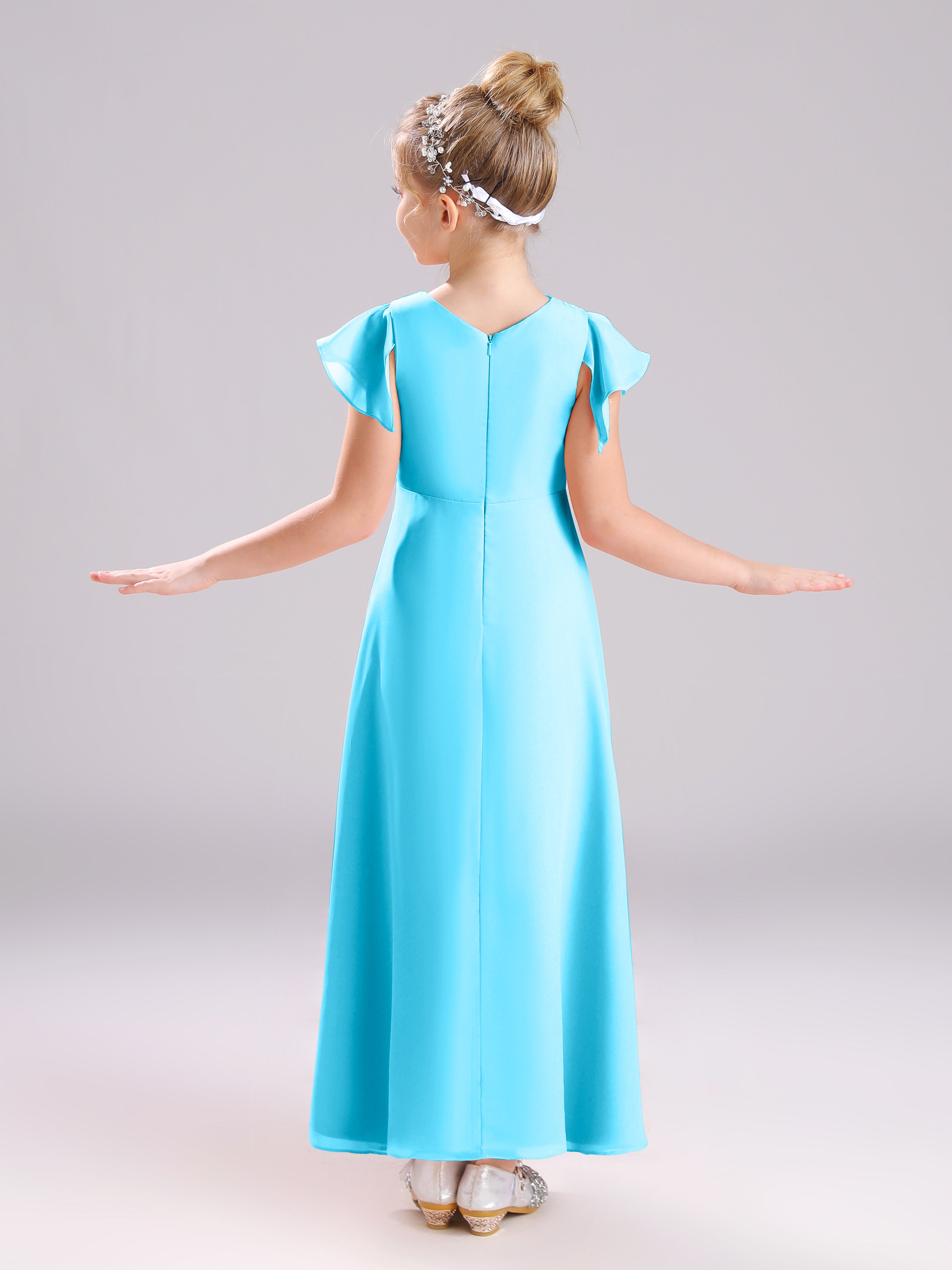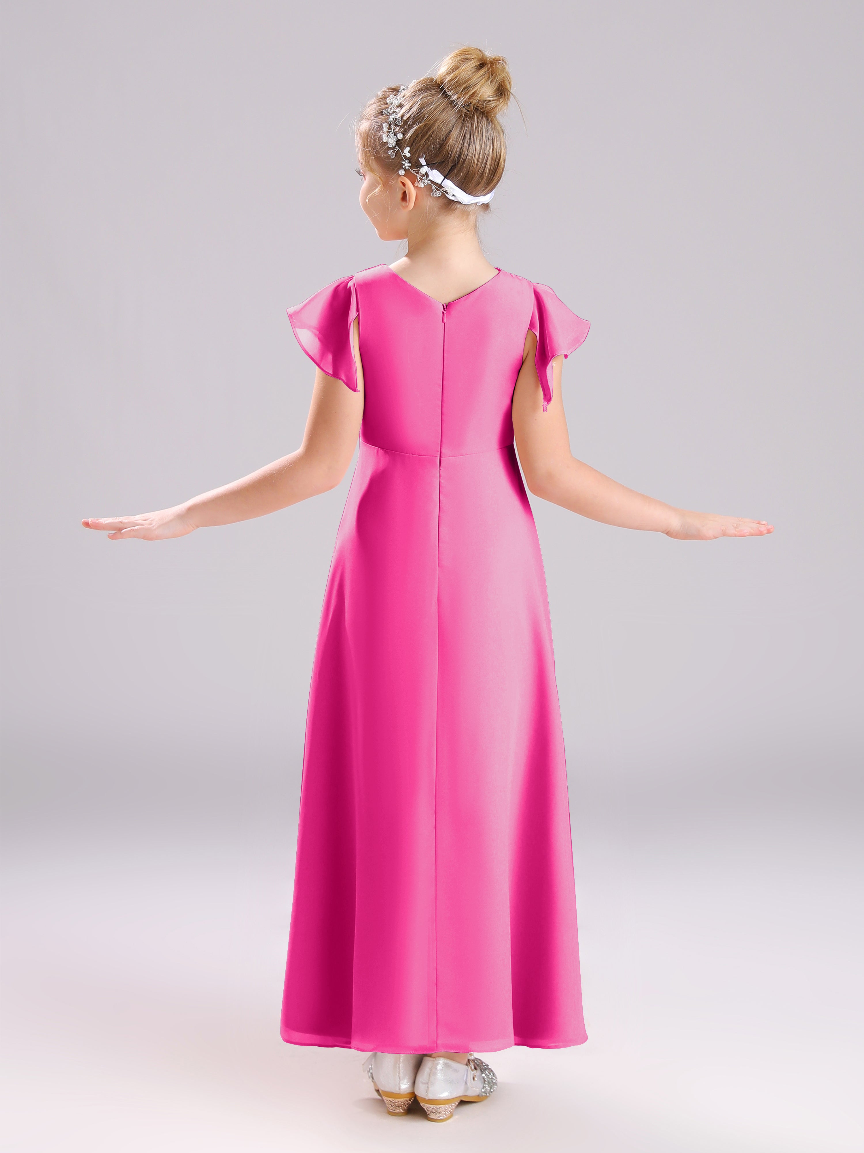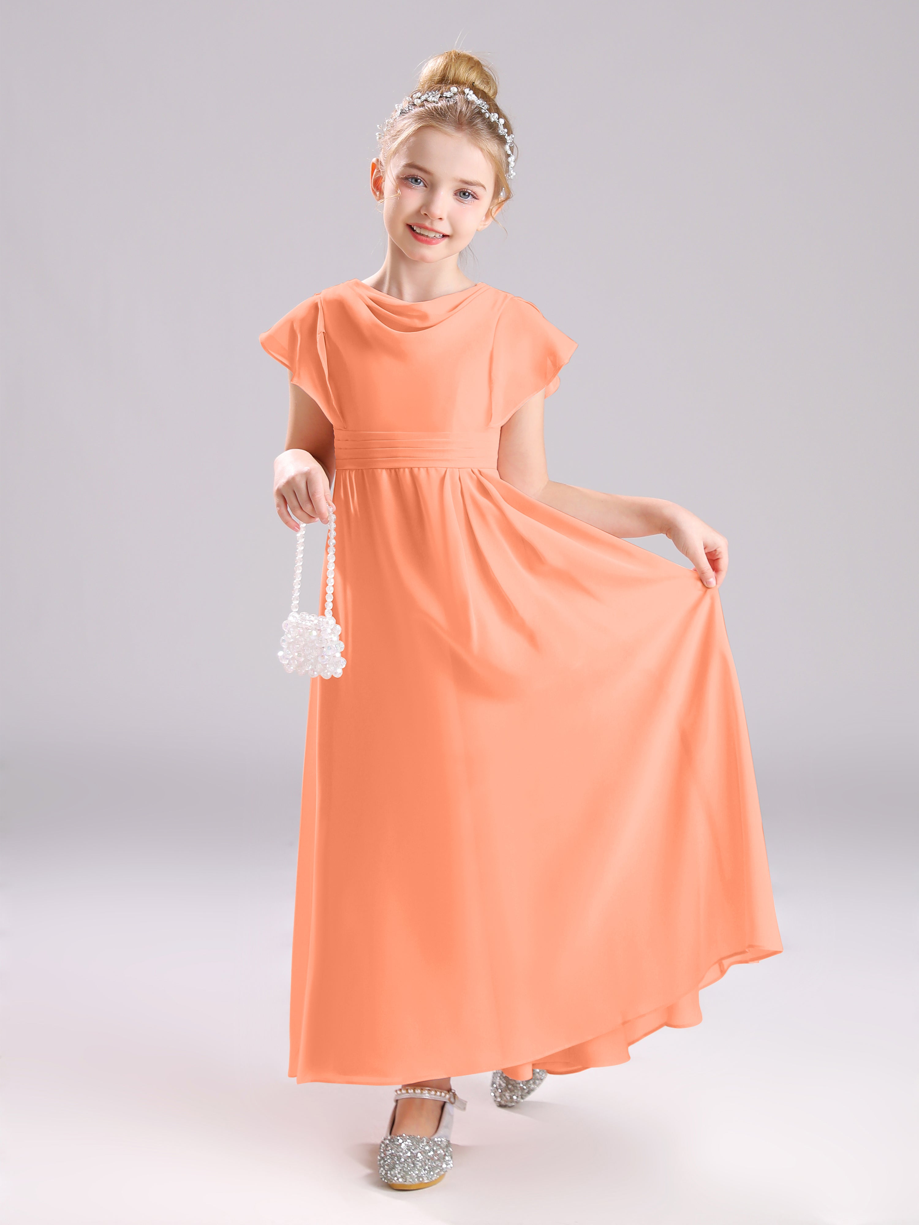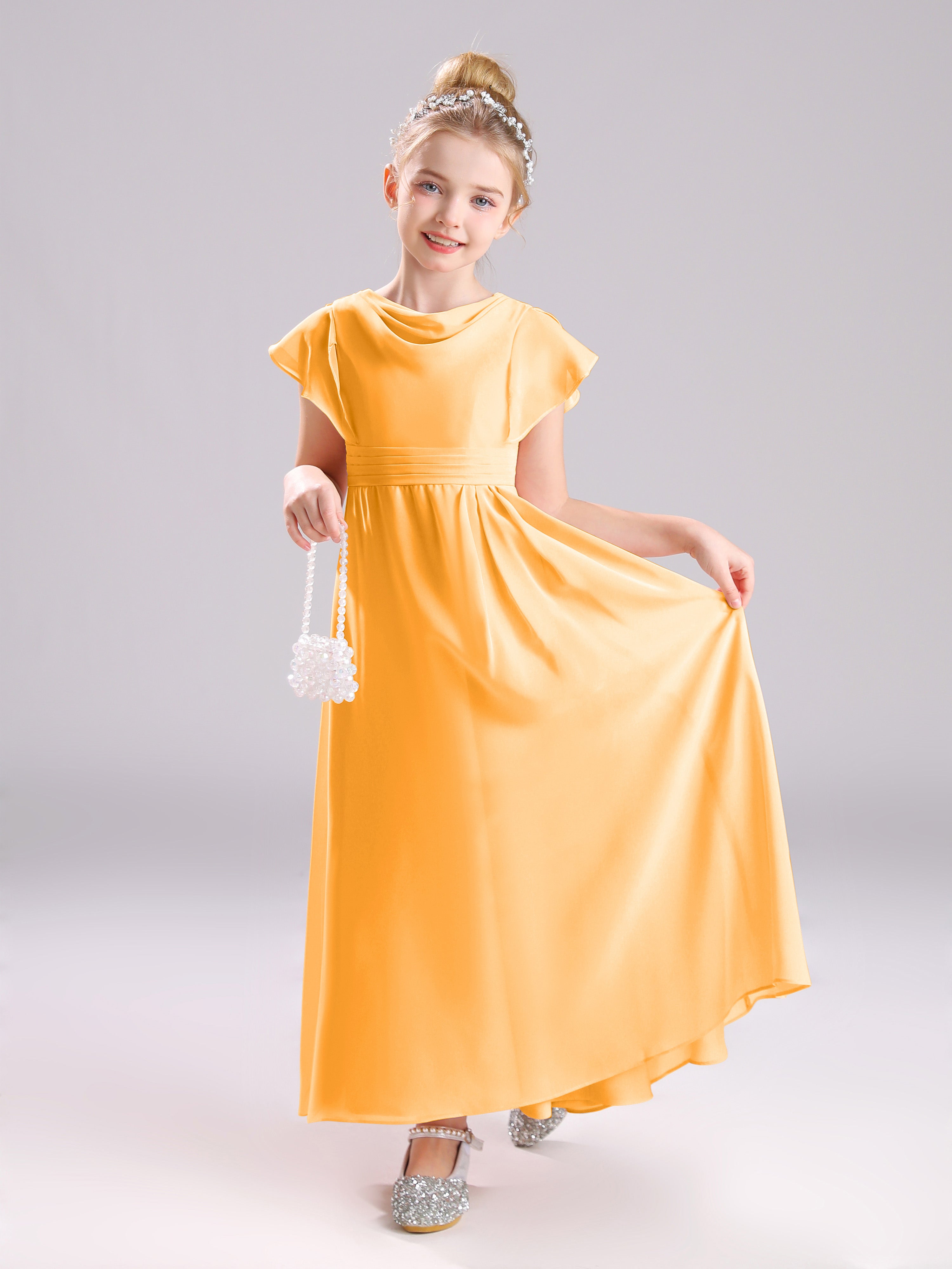 Cowl Short Sleeves Zipper Chiffon Junior Bridesmaid Dresses