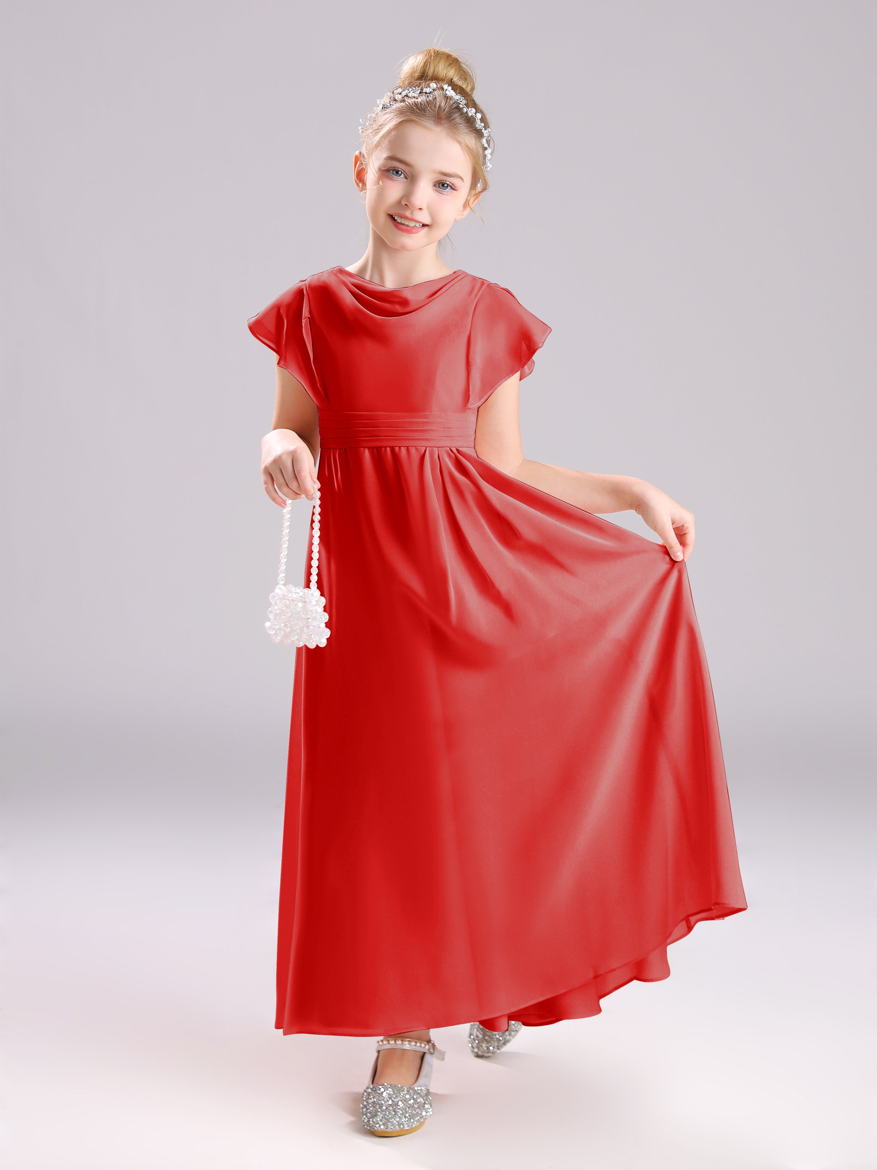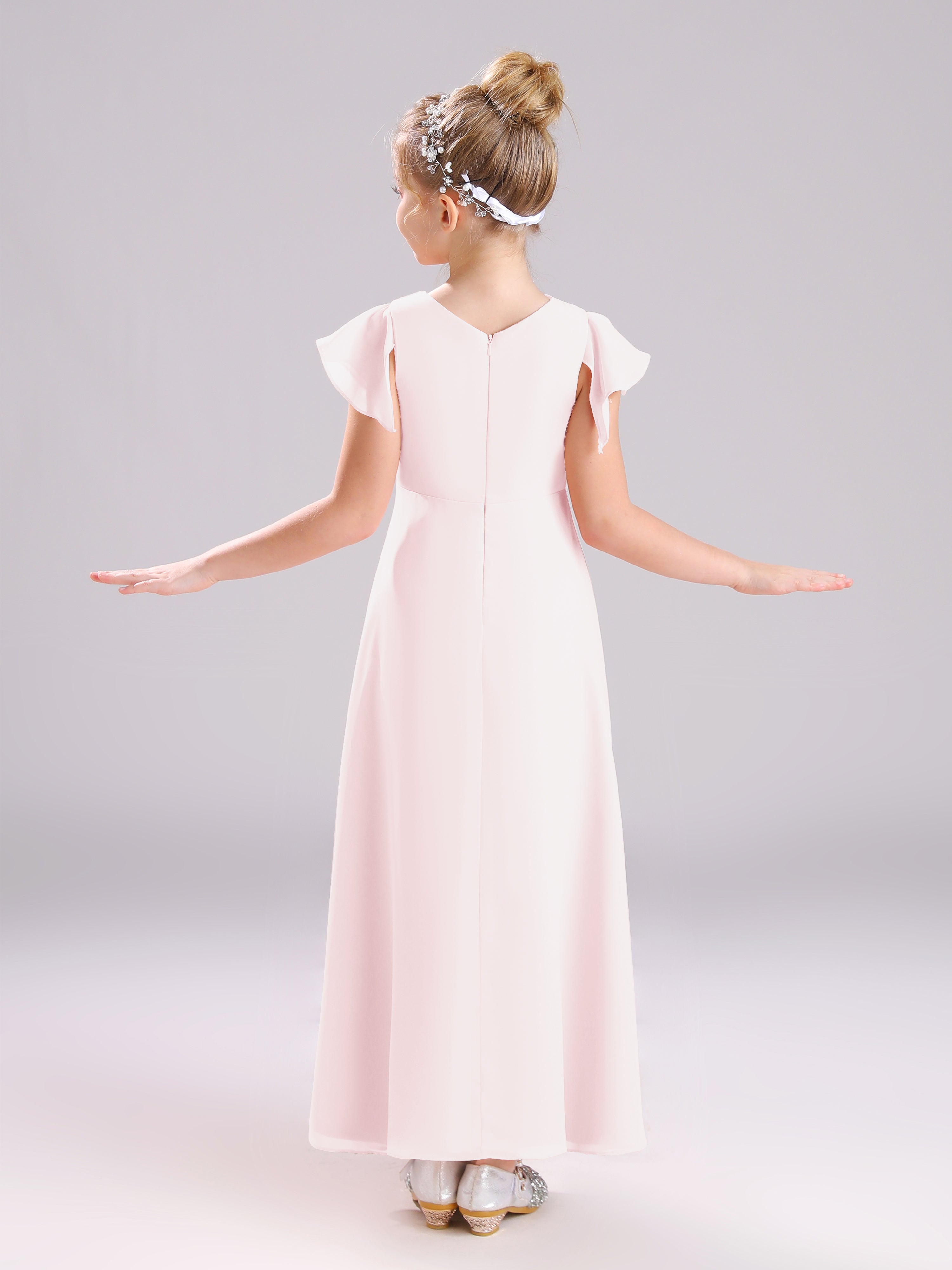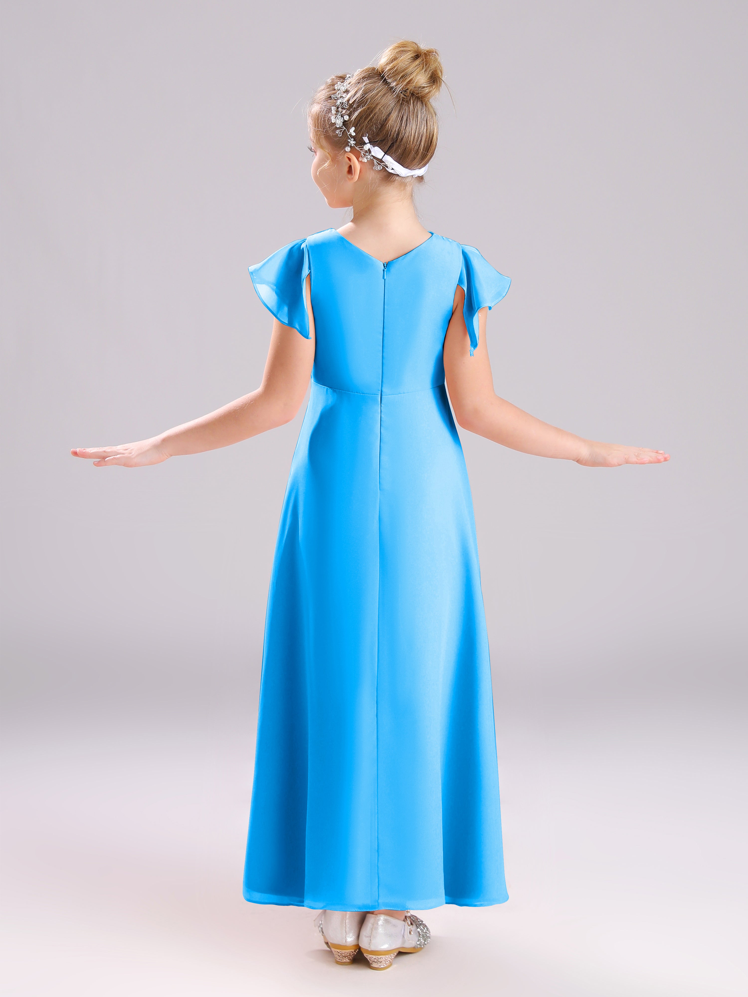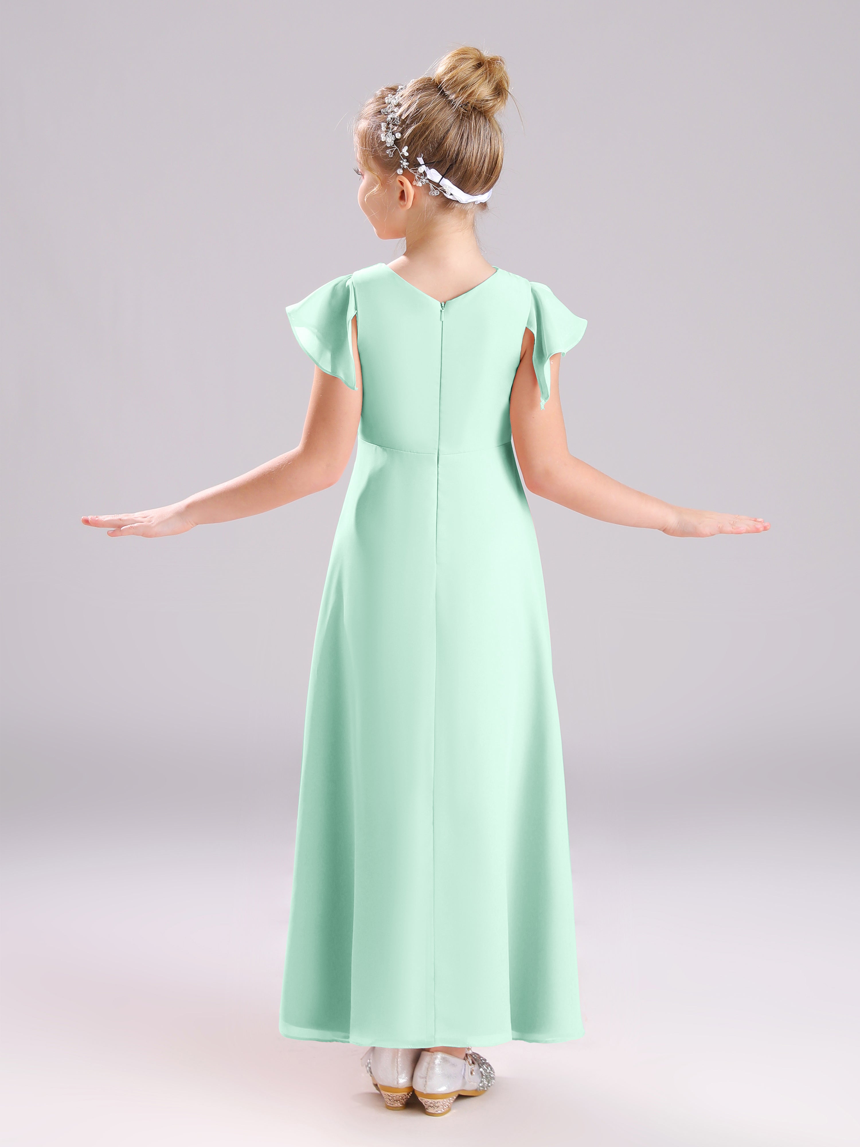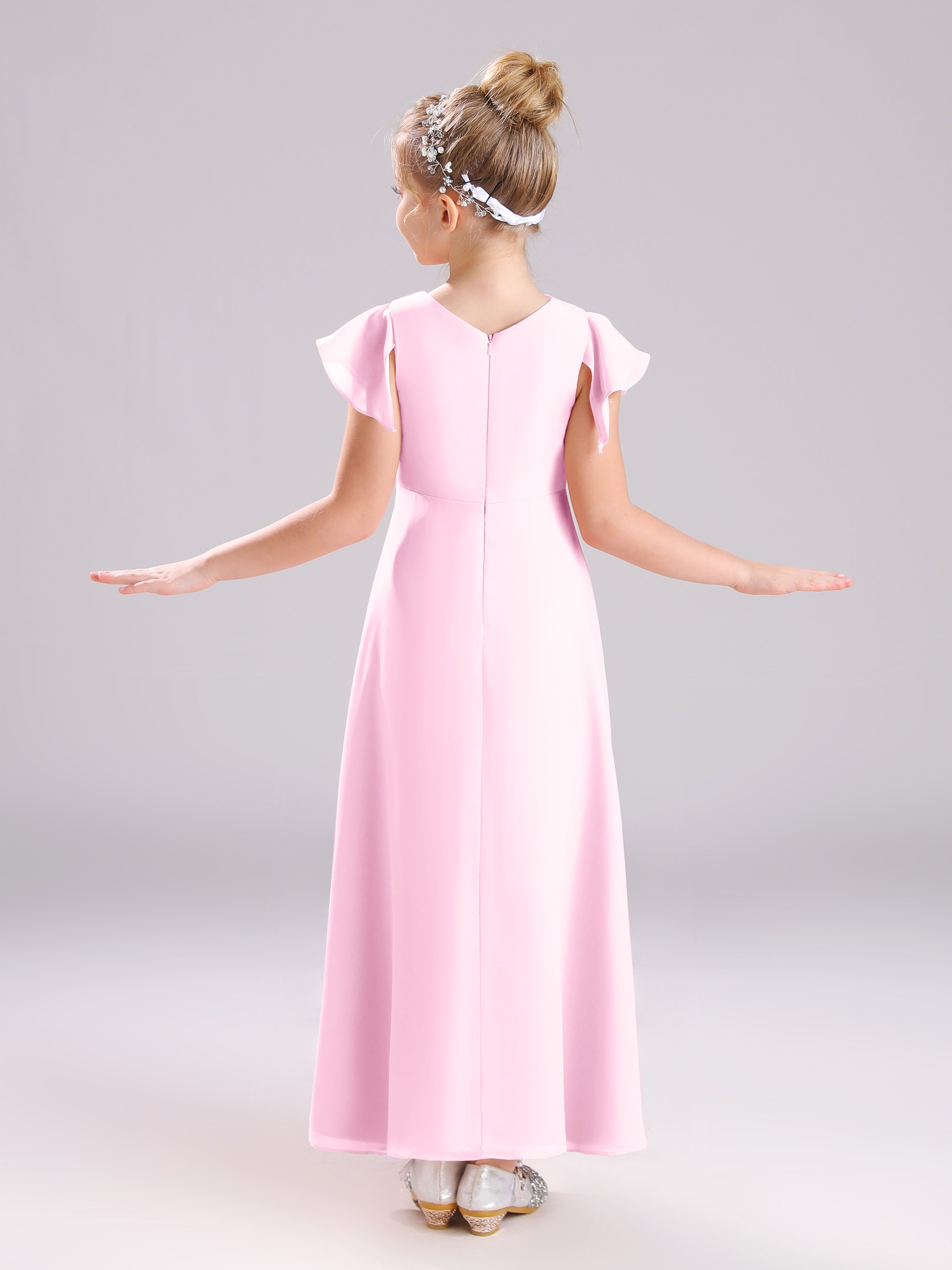 Cowl Short Sleeves Zipper Chiffon Junior Bridesmaid Dresses