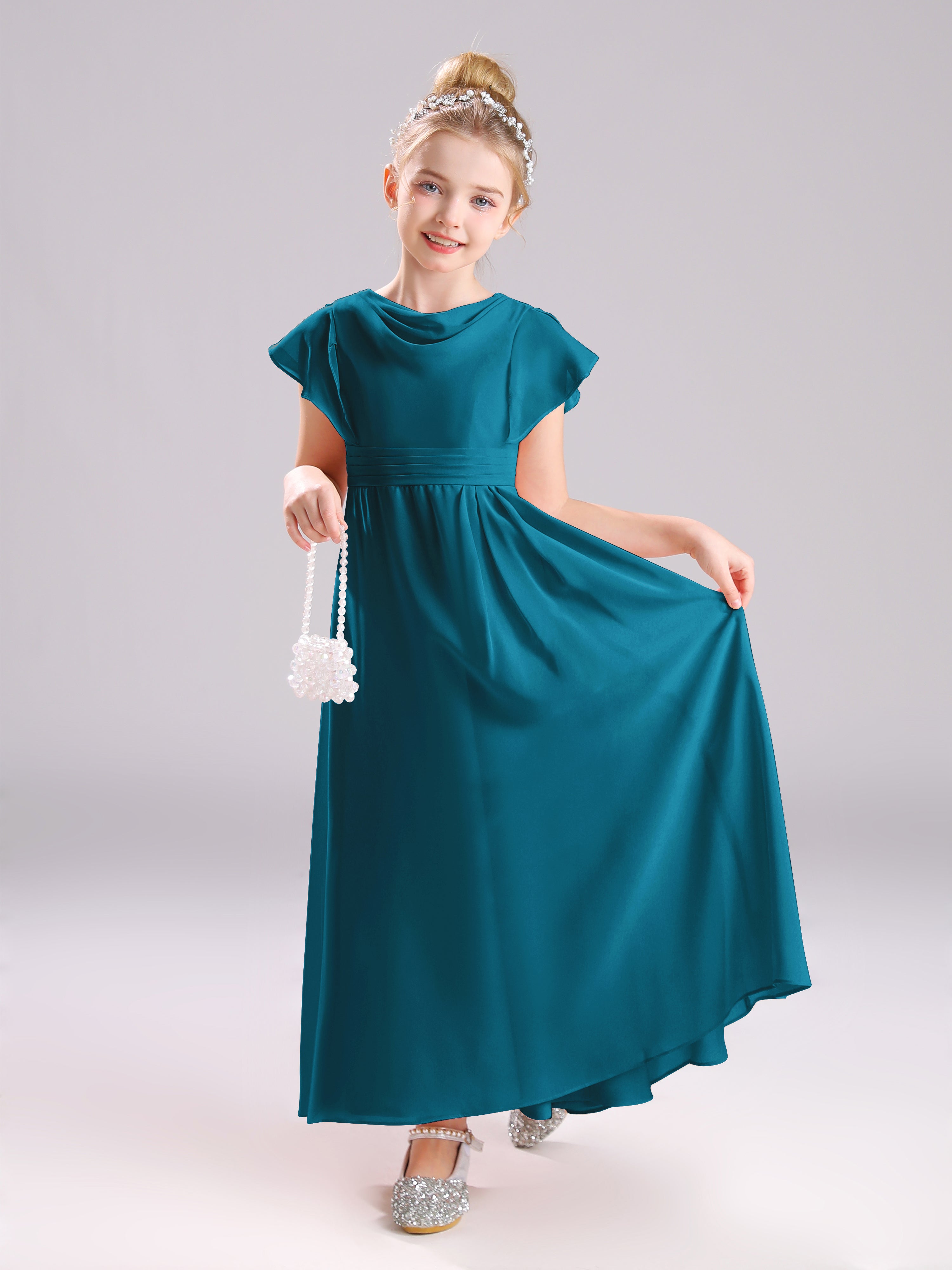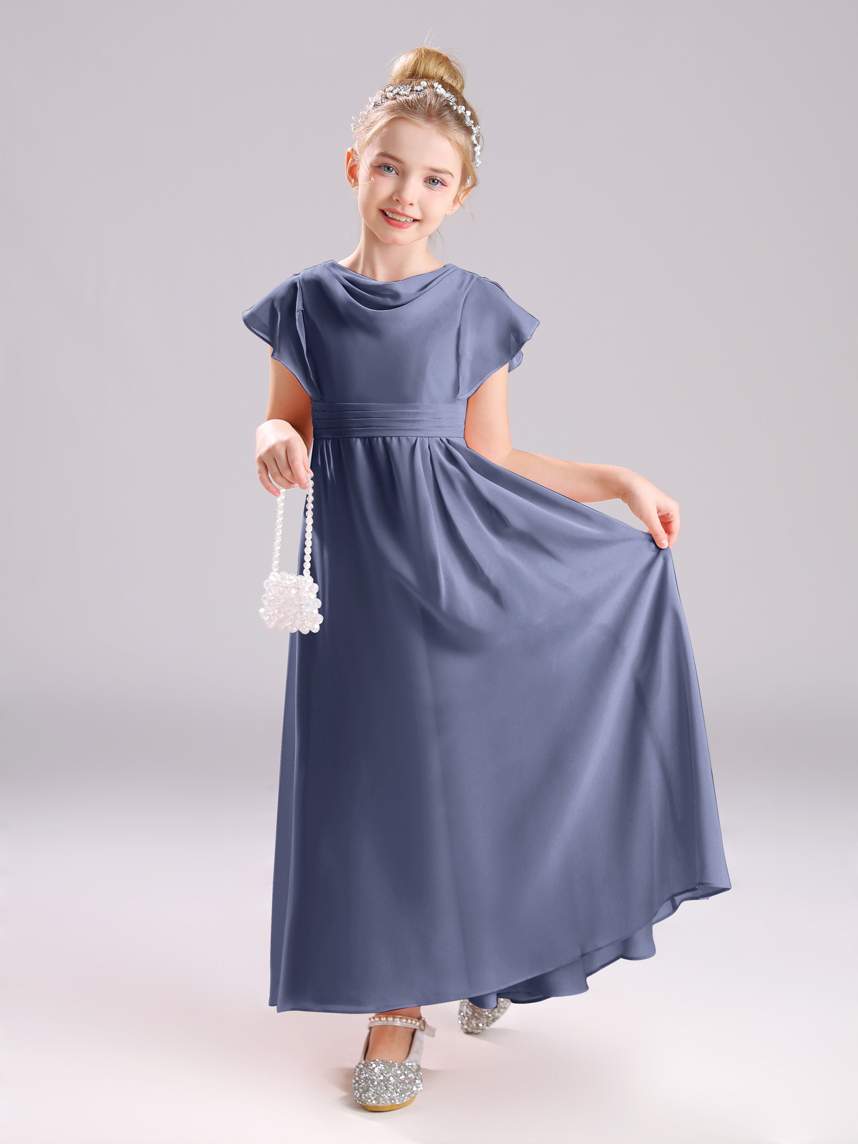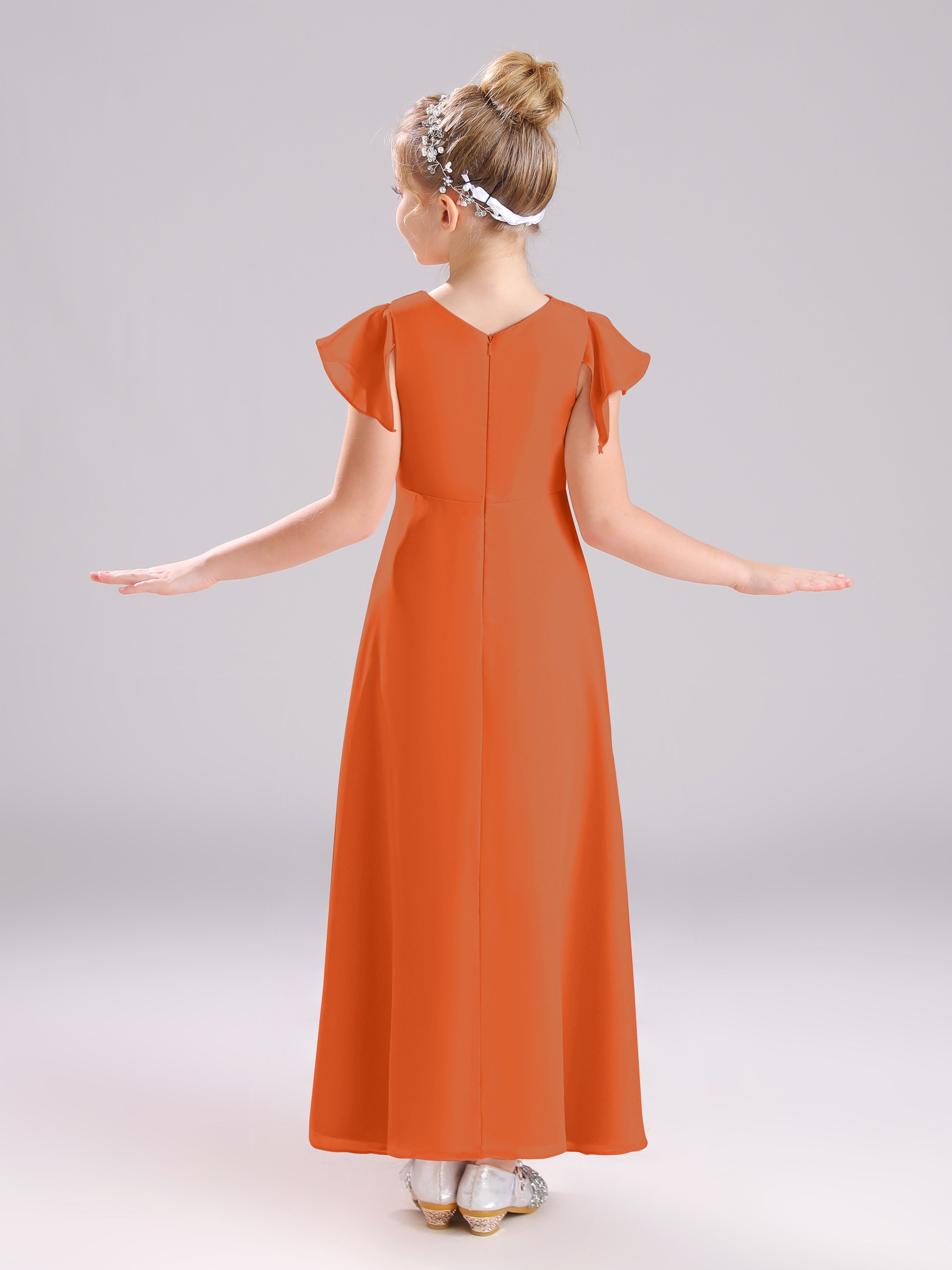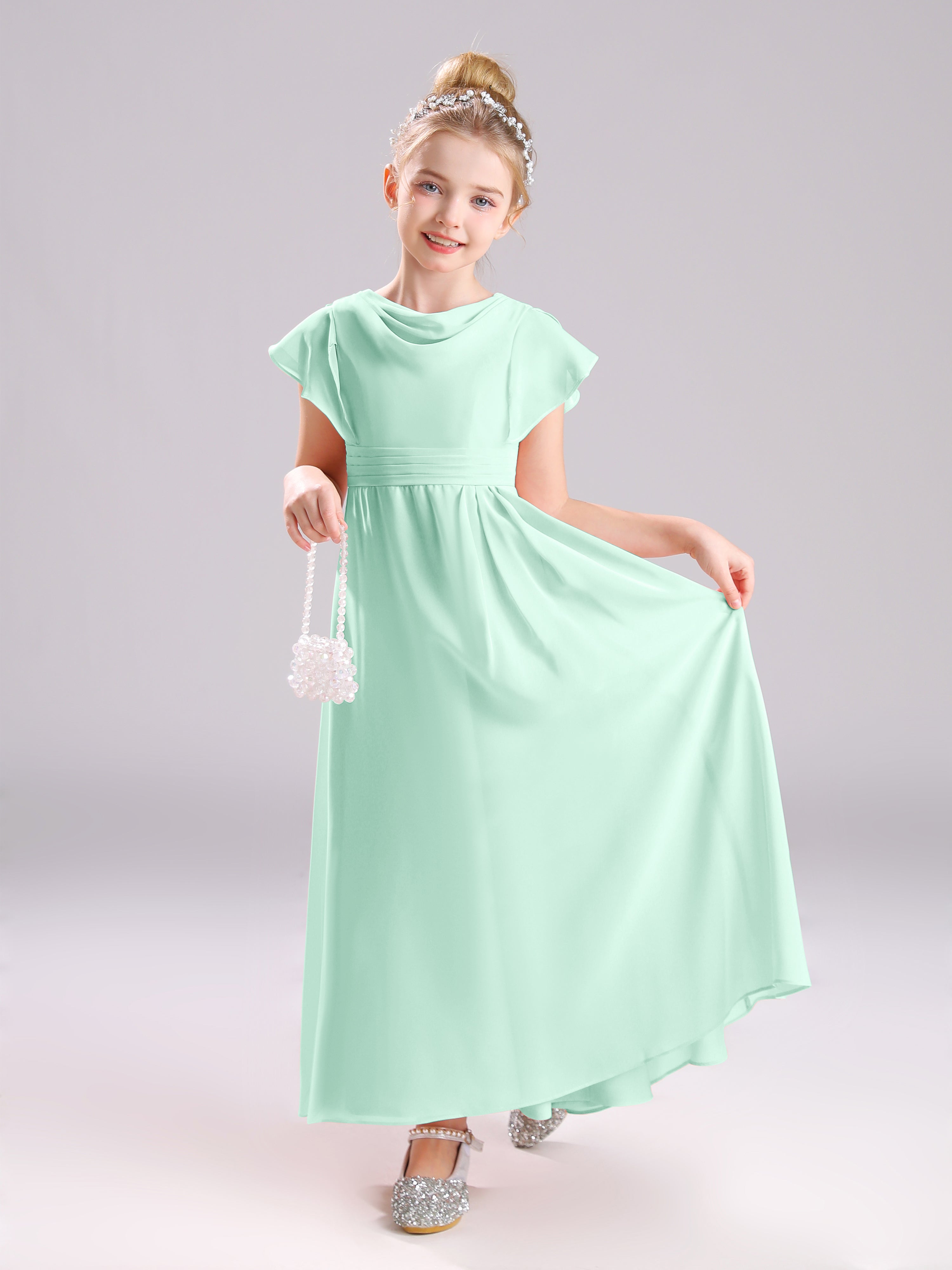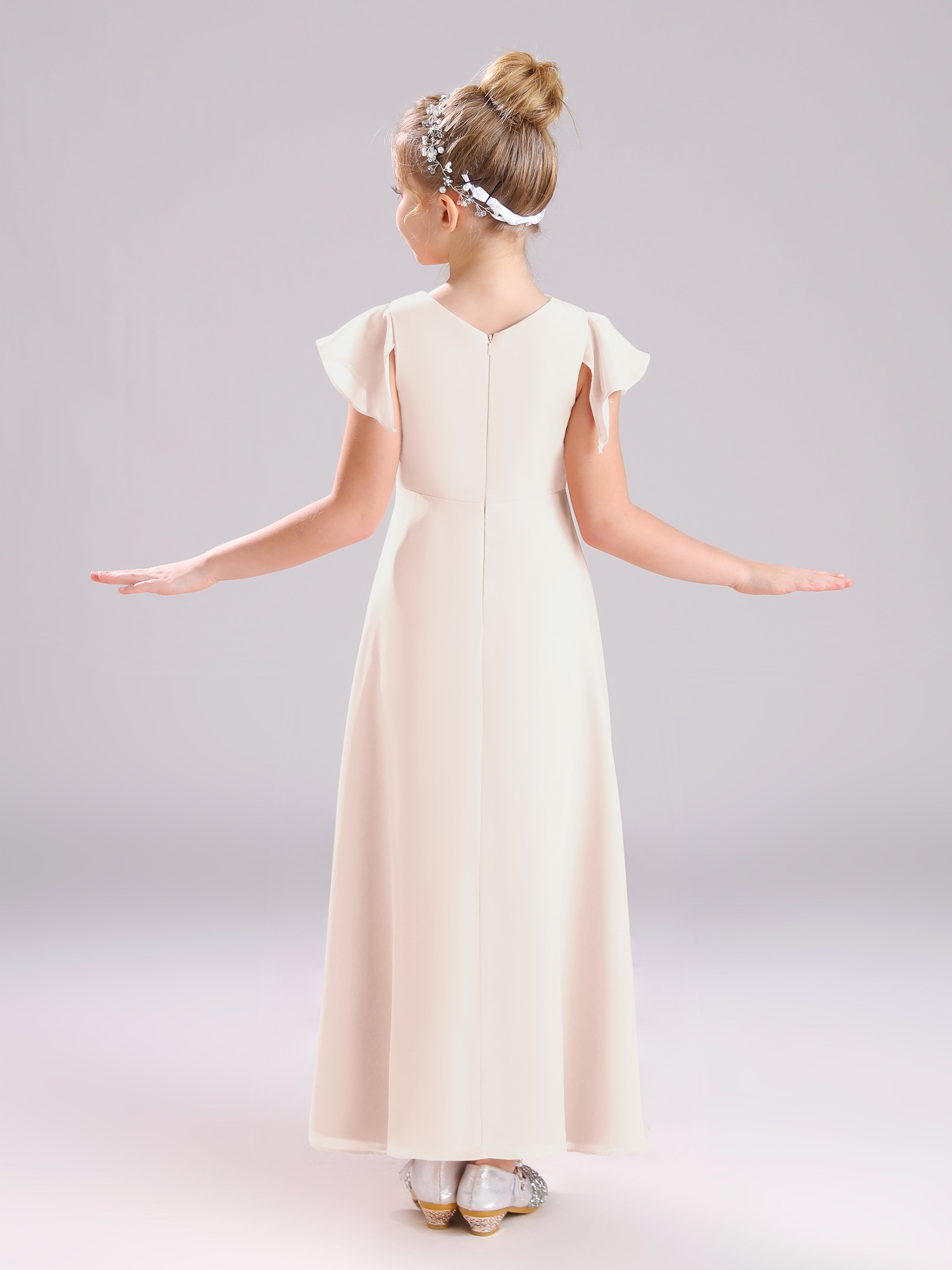 Cowl Short Sleeves Zipper Chiffon Junior Bridesmaid Dresses