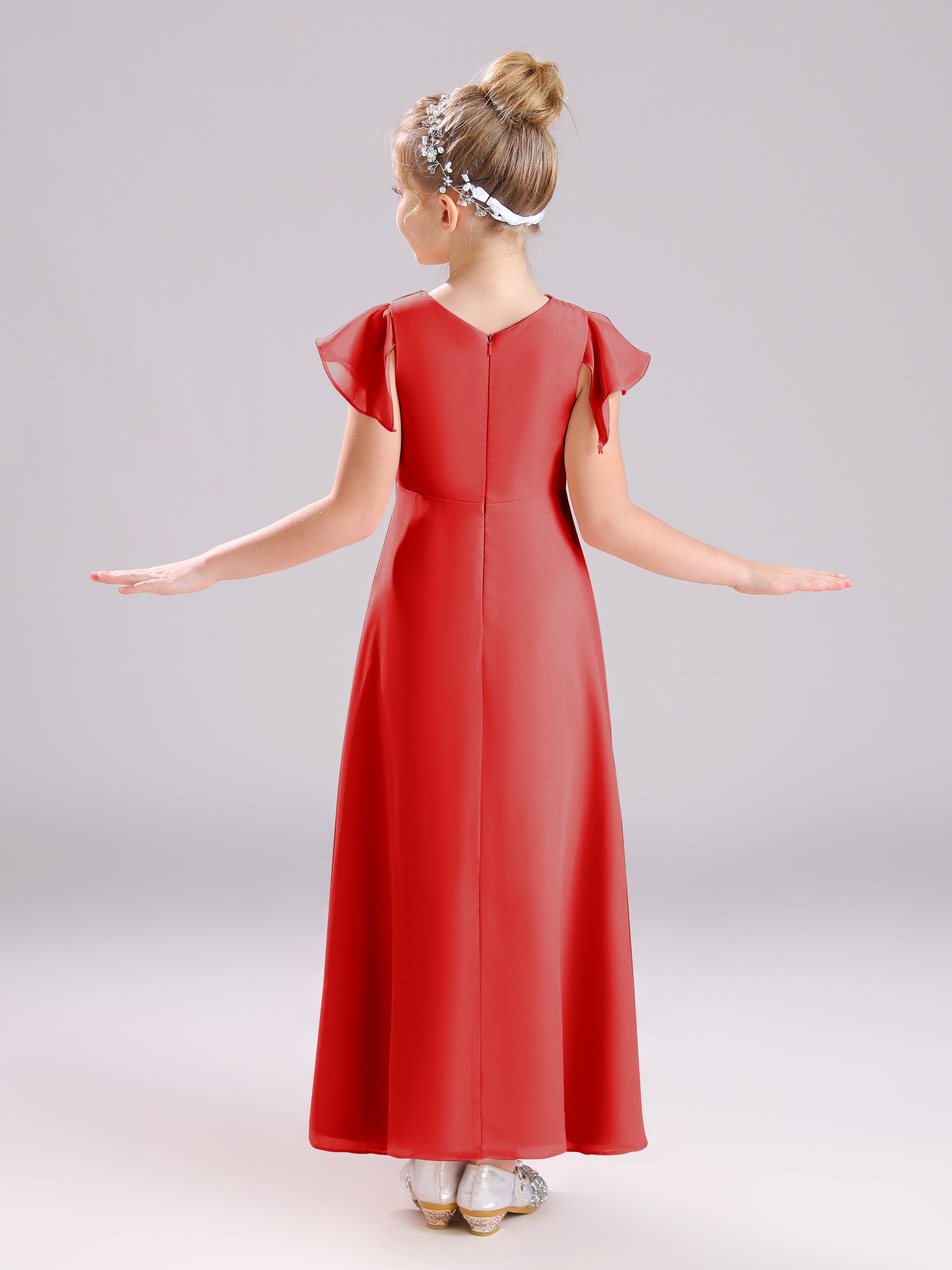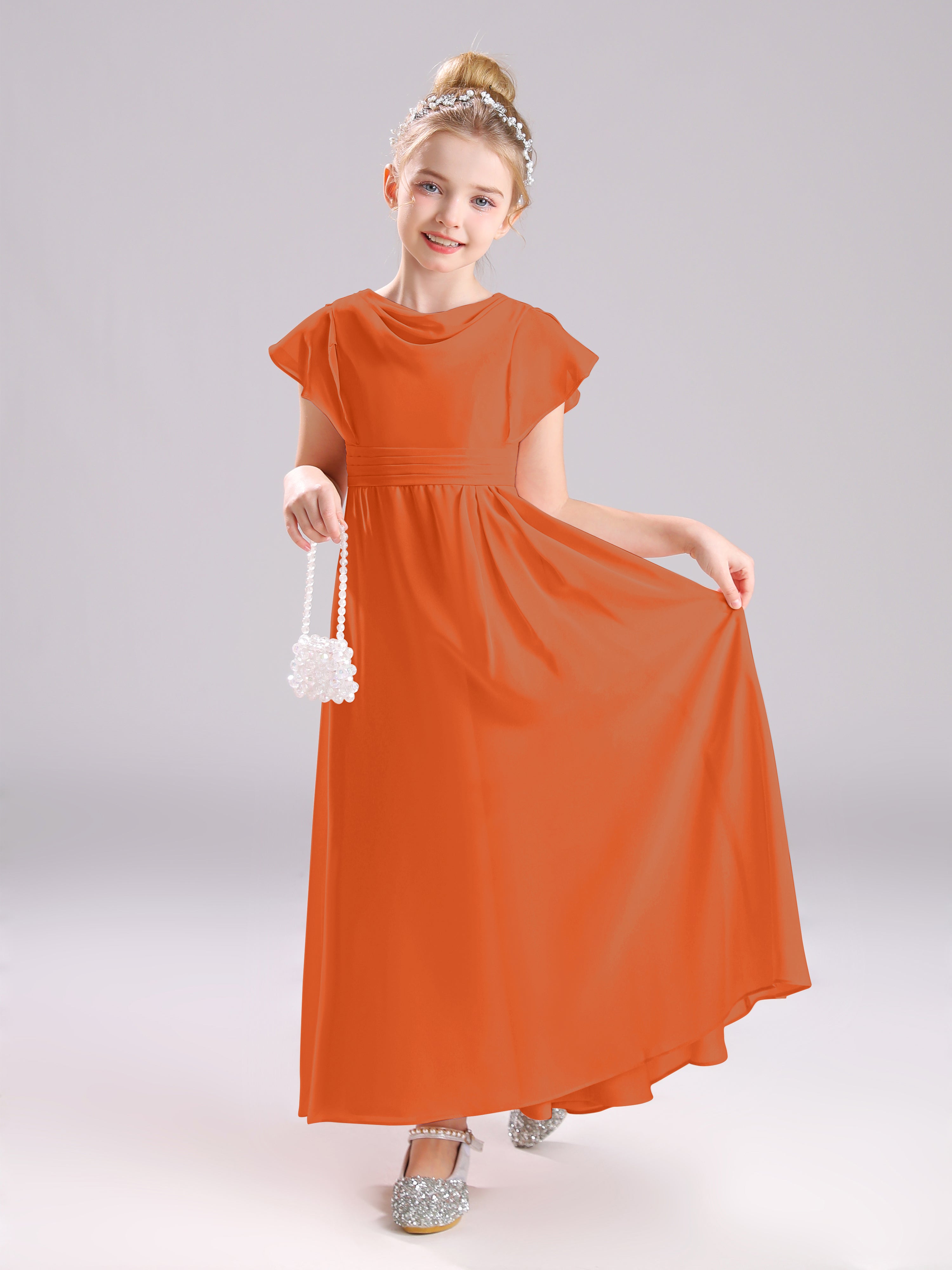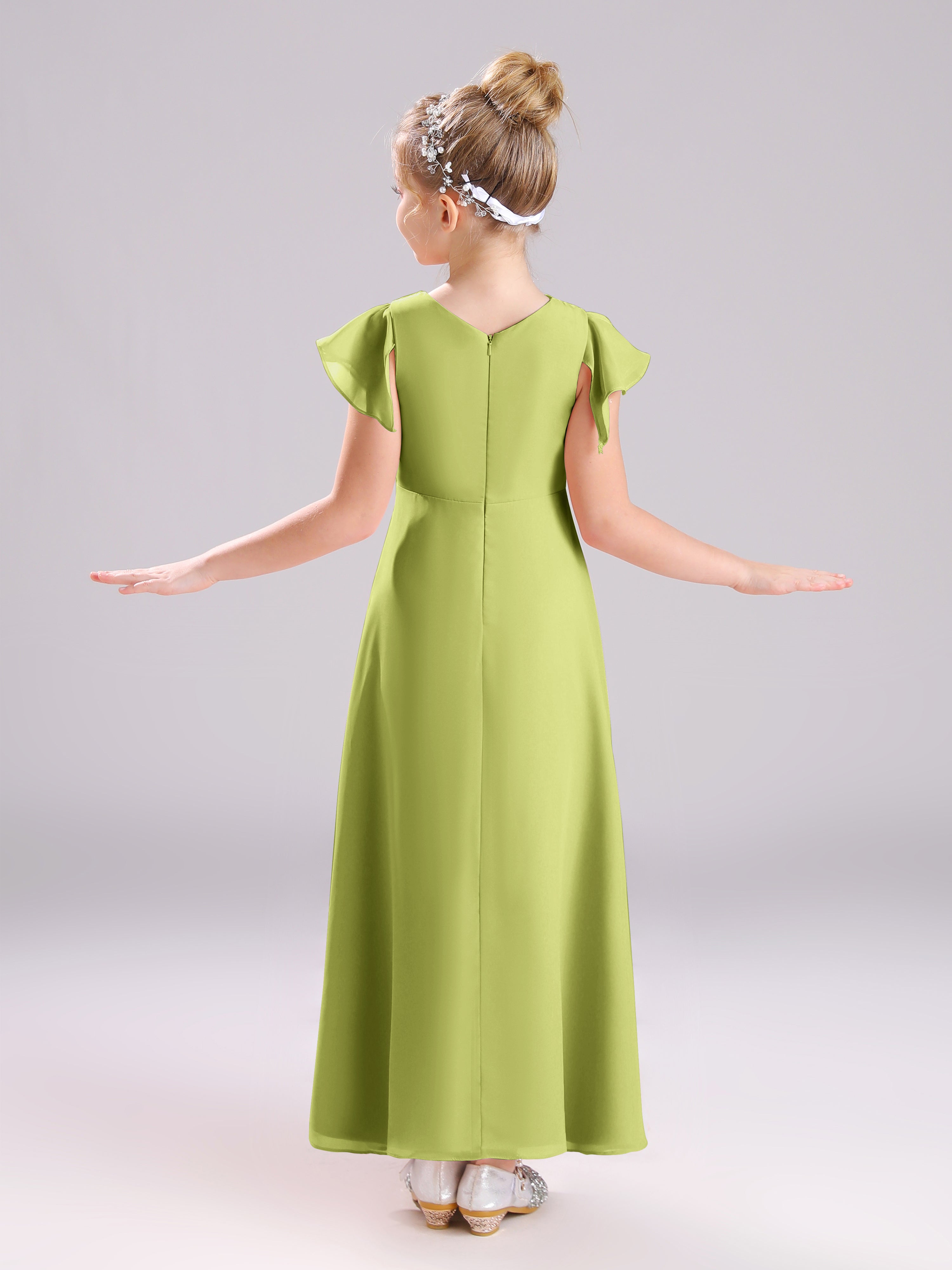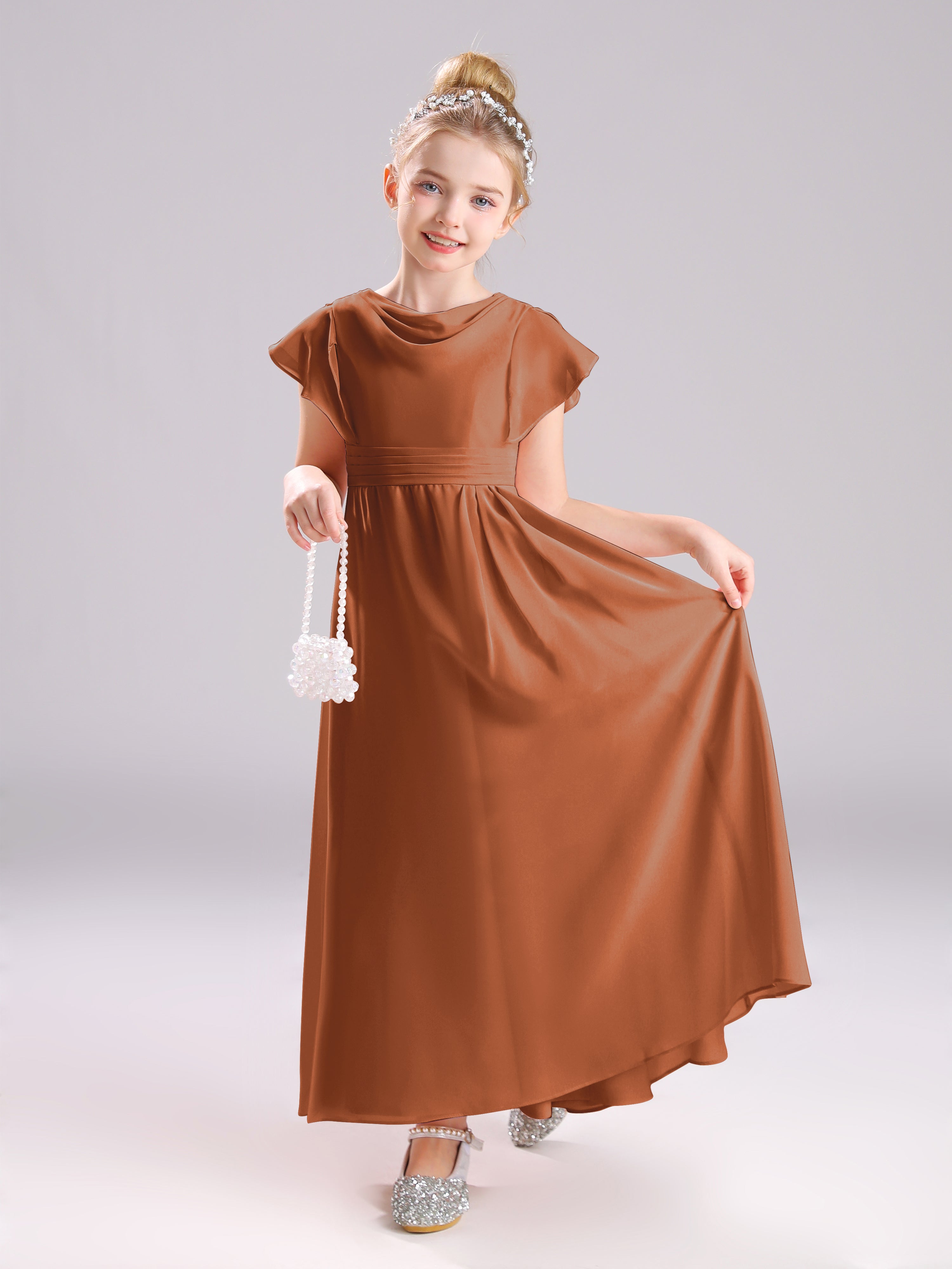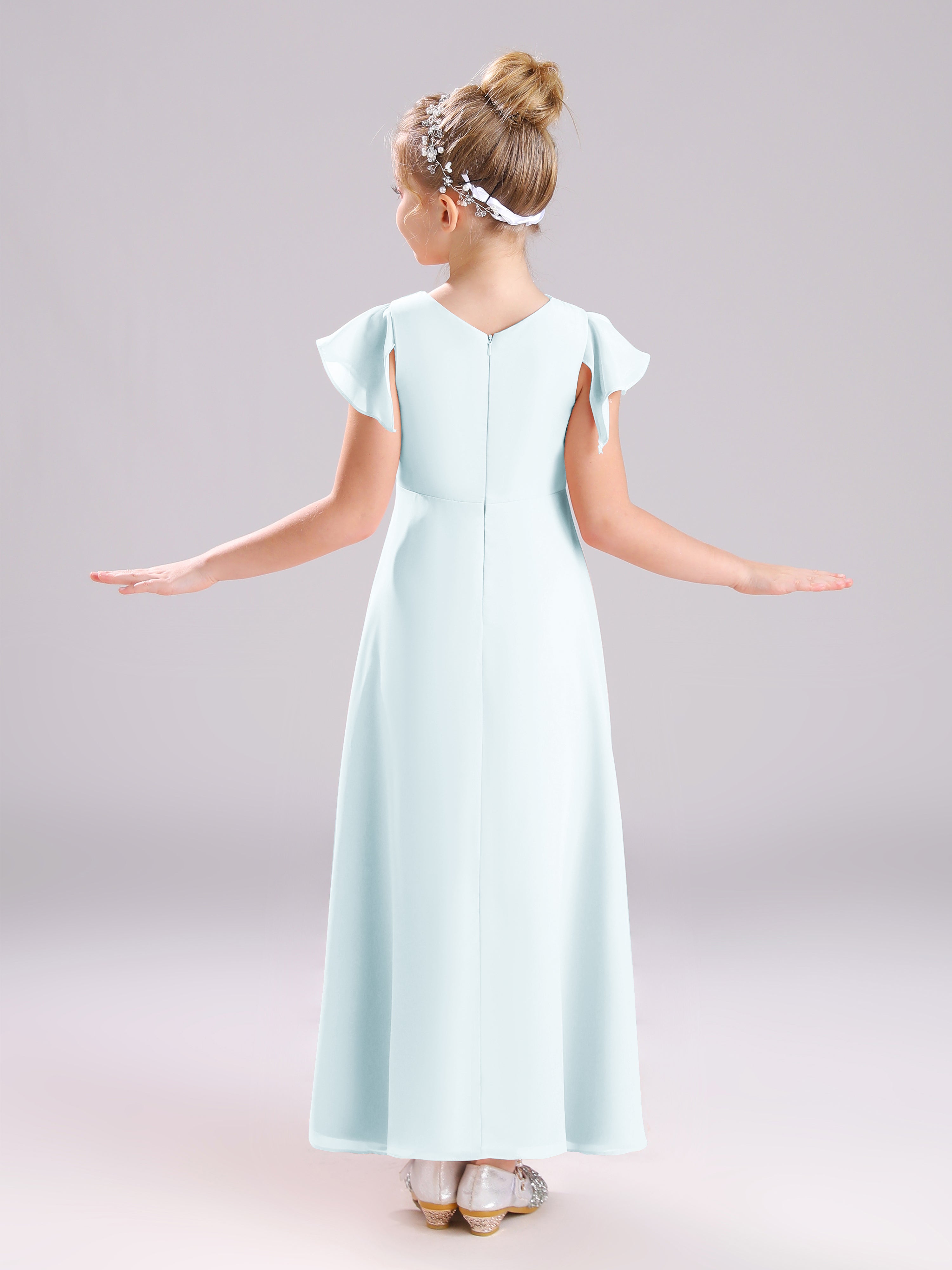 Cowl Short Sleeves Zipper Chiffon Junior Bridesmaid Dresses